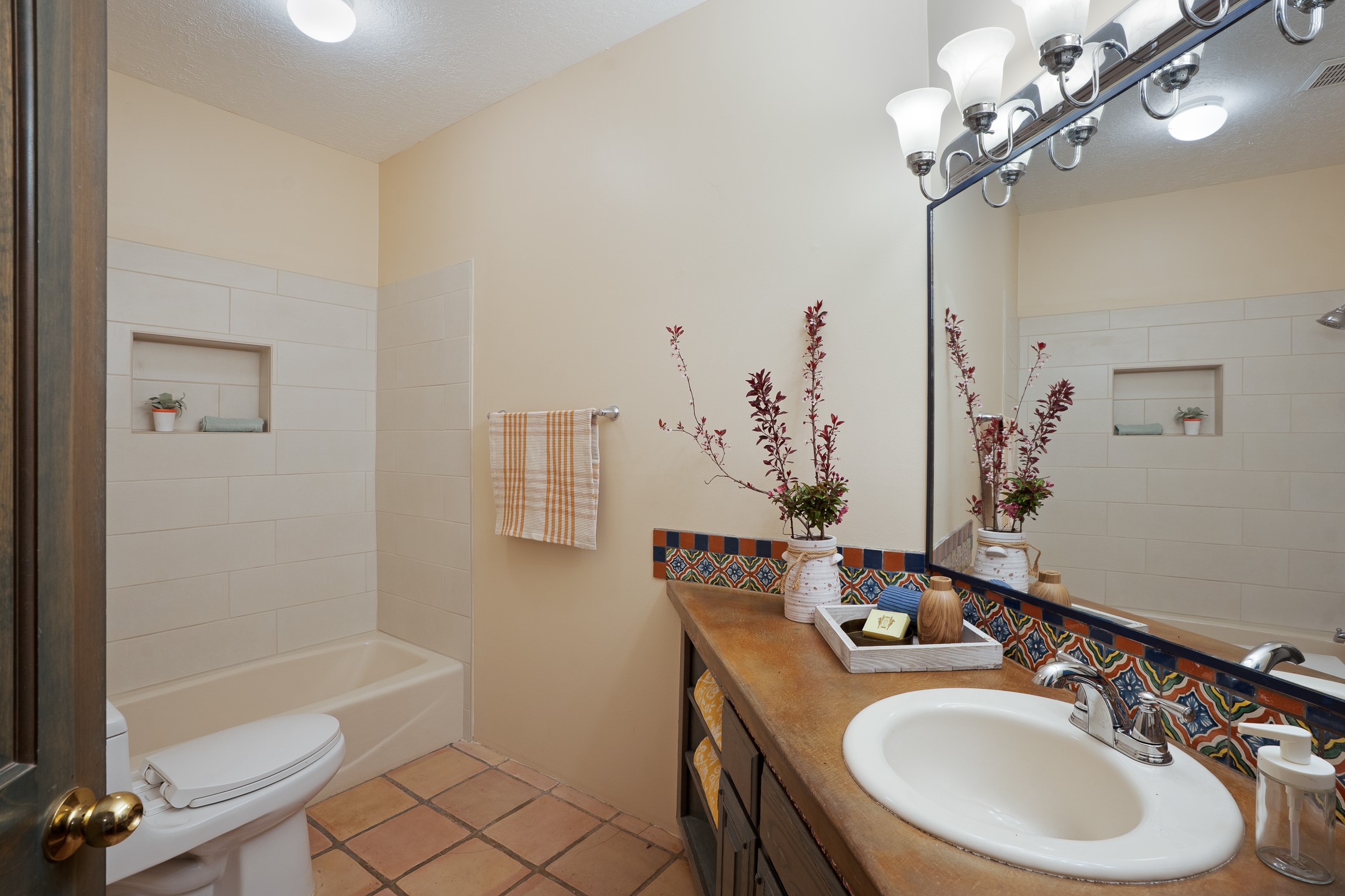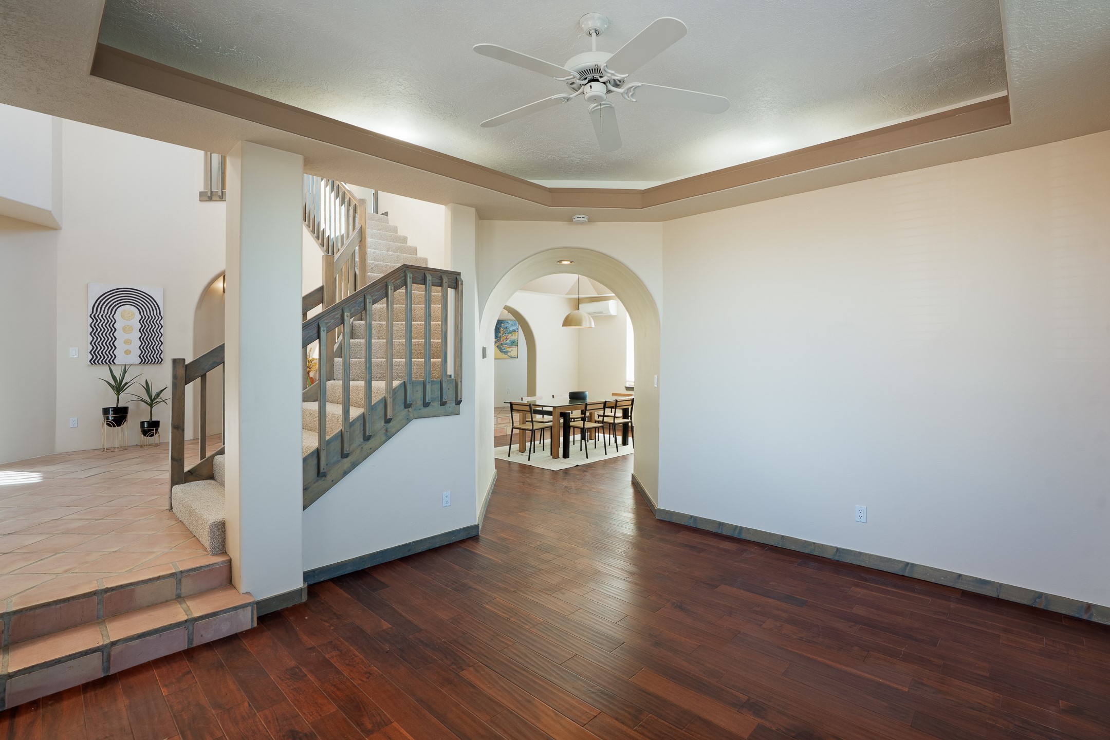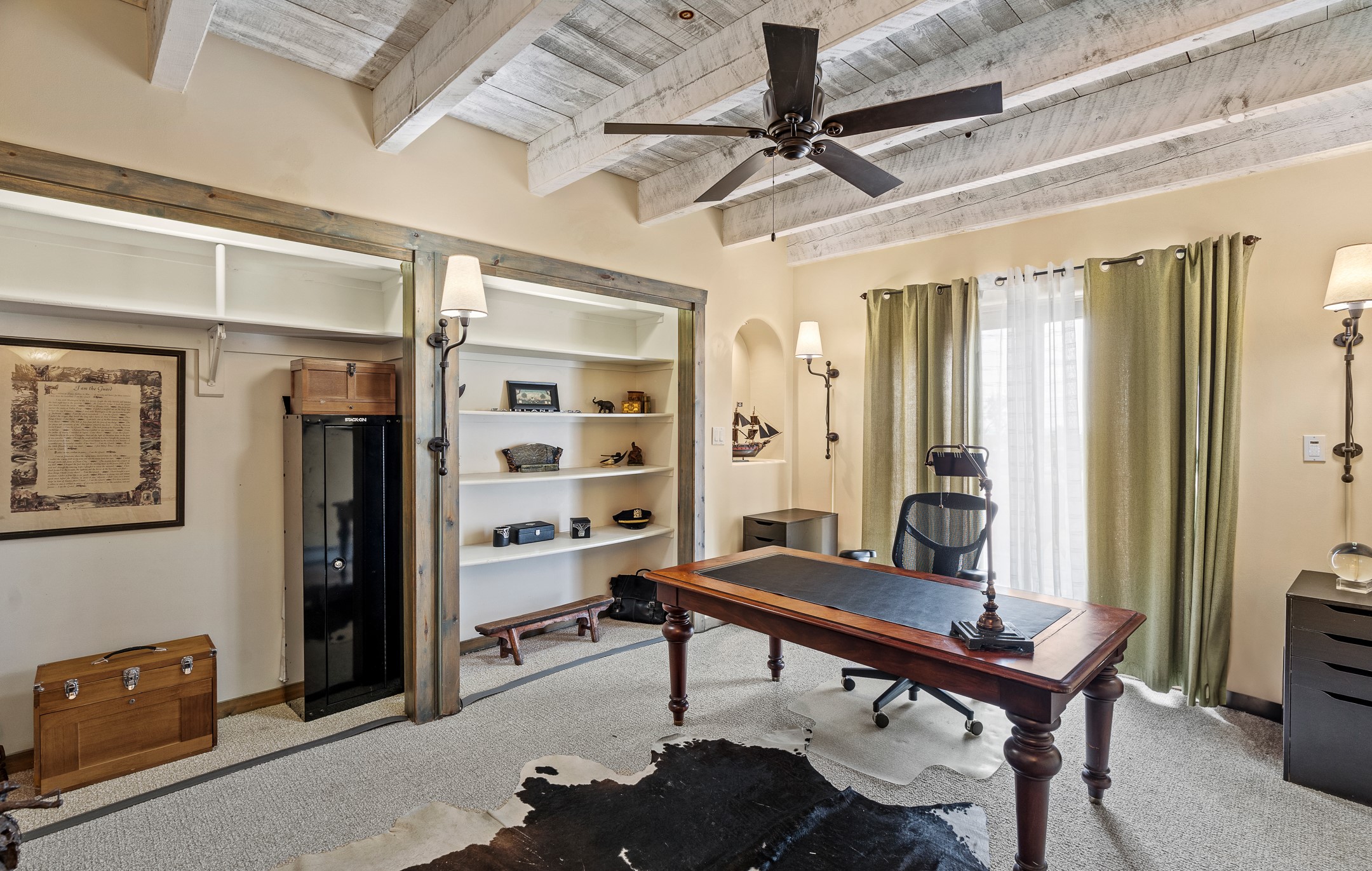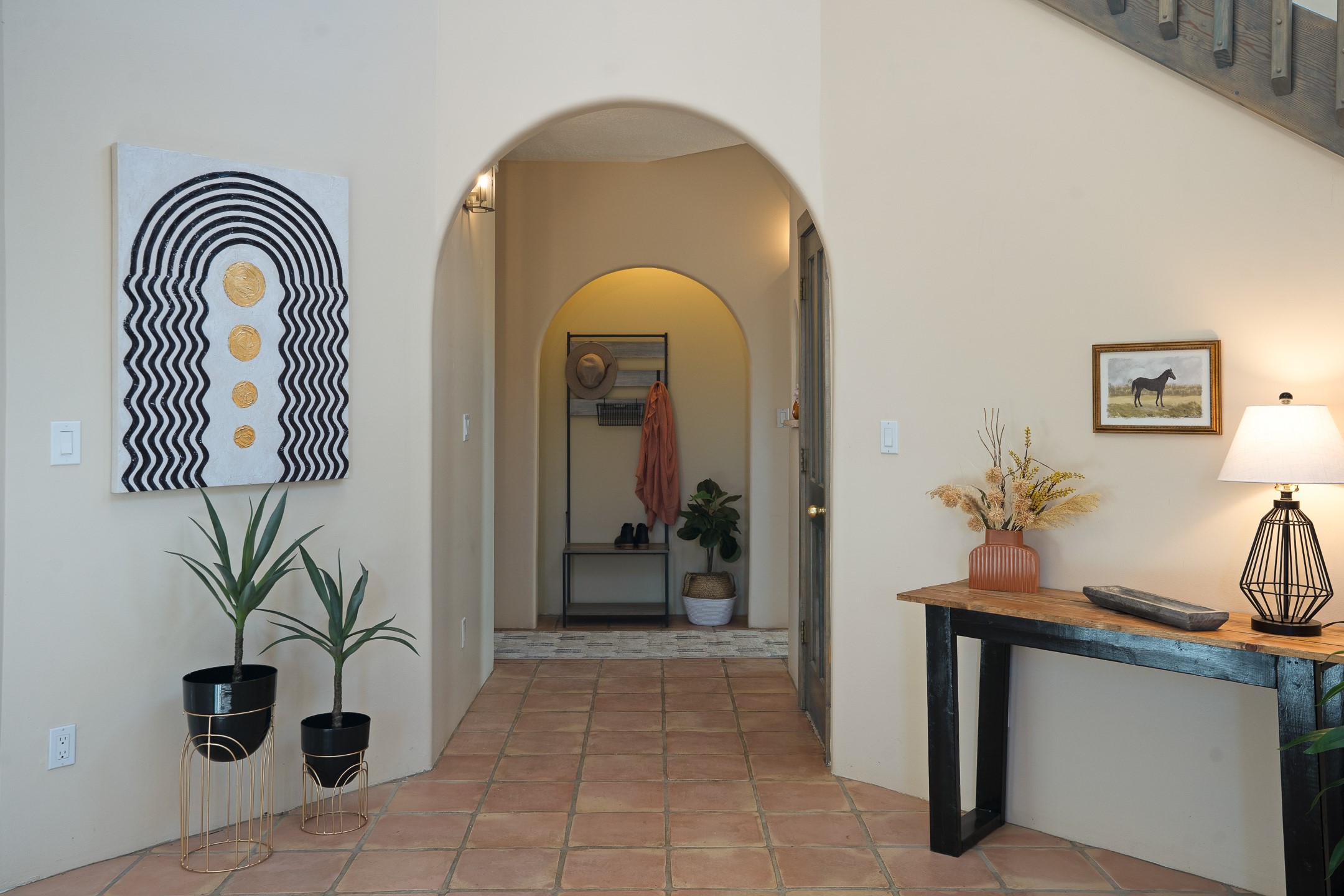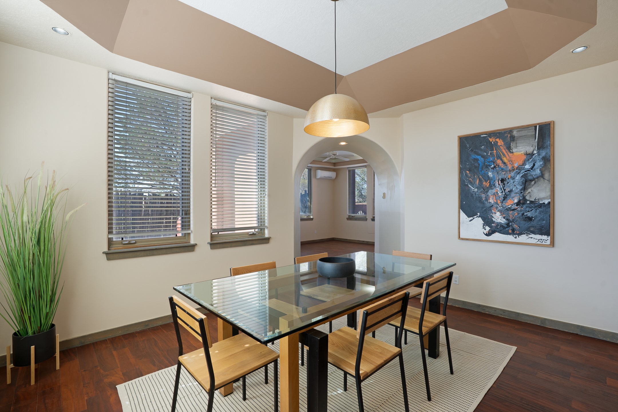 Located at the end of a quiet cul-de-sac in Eldorado, just a short walk from Eldorado Elementary and minutes from The Agora shopping center, this wonderful 4-bedroom, 3-bath home offers 3,294 square feet of comfortable living space on 2.3 acres. Nestled alongside a greenbelt, the property offers both privacy and versatility. The main level features two distinct living areas--one open to the newly renovated kitchen--along with a formal dining space and a guest bedroom currently serving as an office. The kitchen is a standout, showcasing concrete countertops with bar seating, custom tin-inlaid cabinetry, etched glass and tin lighting fixtures, and stainless steel appliances. From here, step outside to a fully fenced backyard complete with an outdoor kiva fireplace and generous space for entertaining or relaxing under the New Mexico sky.Upstairs, the expansive primary suite offers both East- and West-facing balconies, a cozy double-sided gas fireplace, deep soaking tub, glass-enclosed walk-in shower, and dual walk-in closets. Two additional guest bedrooms--each with their own private balcony--and a full guest bath complete the upper level. Recent upgrades include an 18-panel solar array, a new TPO roof with a transferable warranty, a tankless water heater, and a dedicated 30-amp service for RV power. Seamlessly blending modern updates with Southwestern charm, this home offers spacious, serene living in one of Santa Fe's most desirable communities.