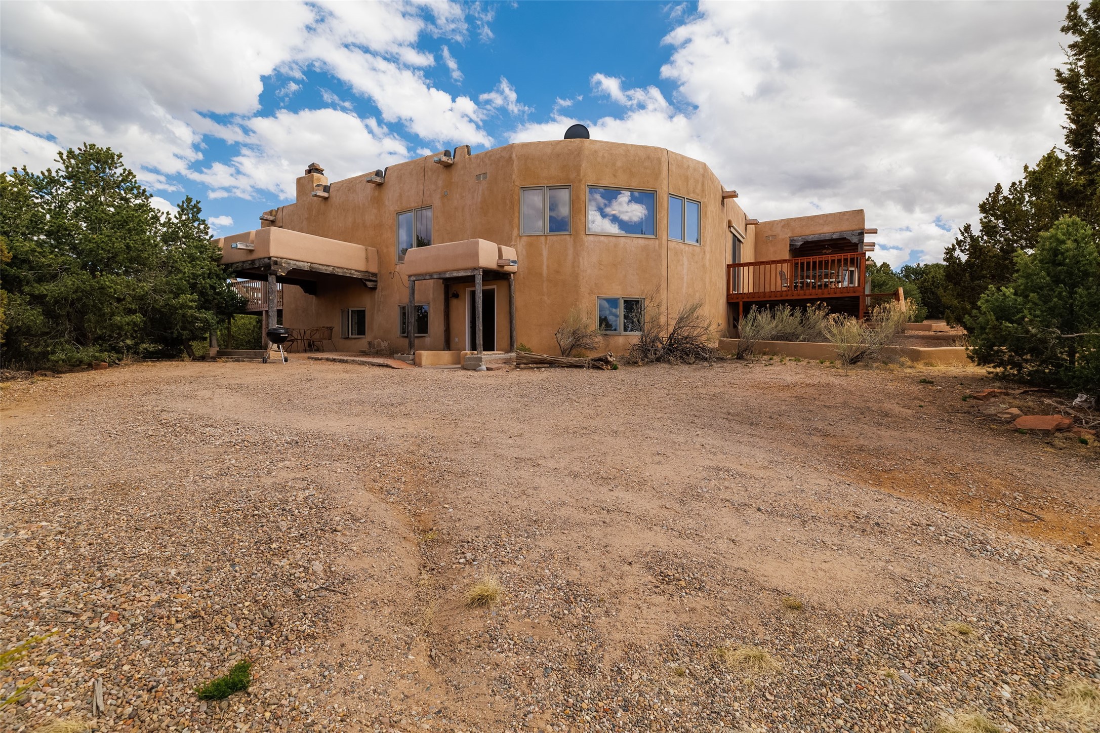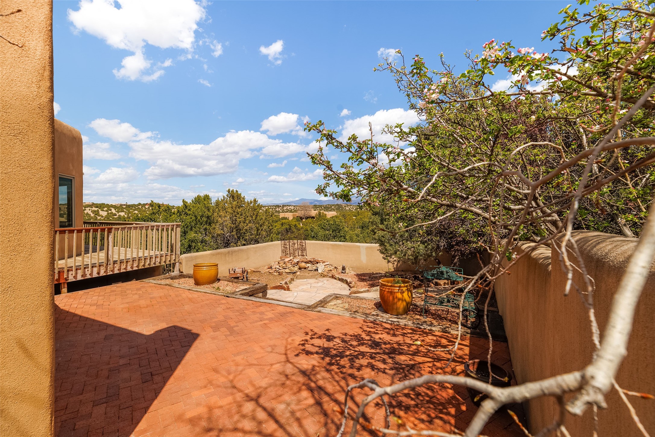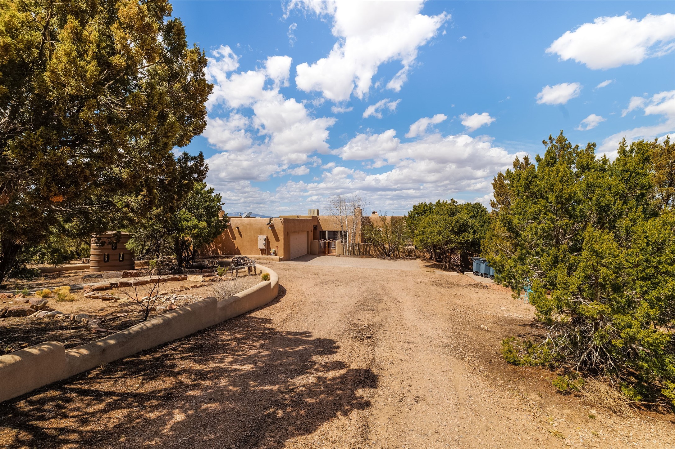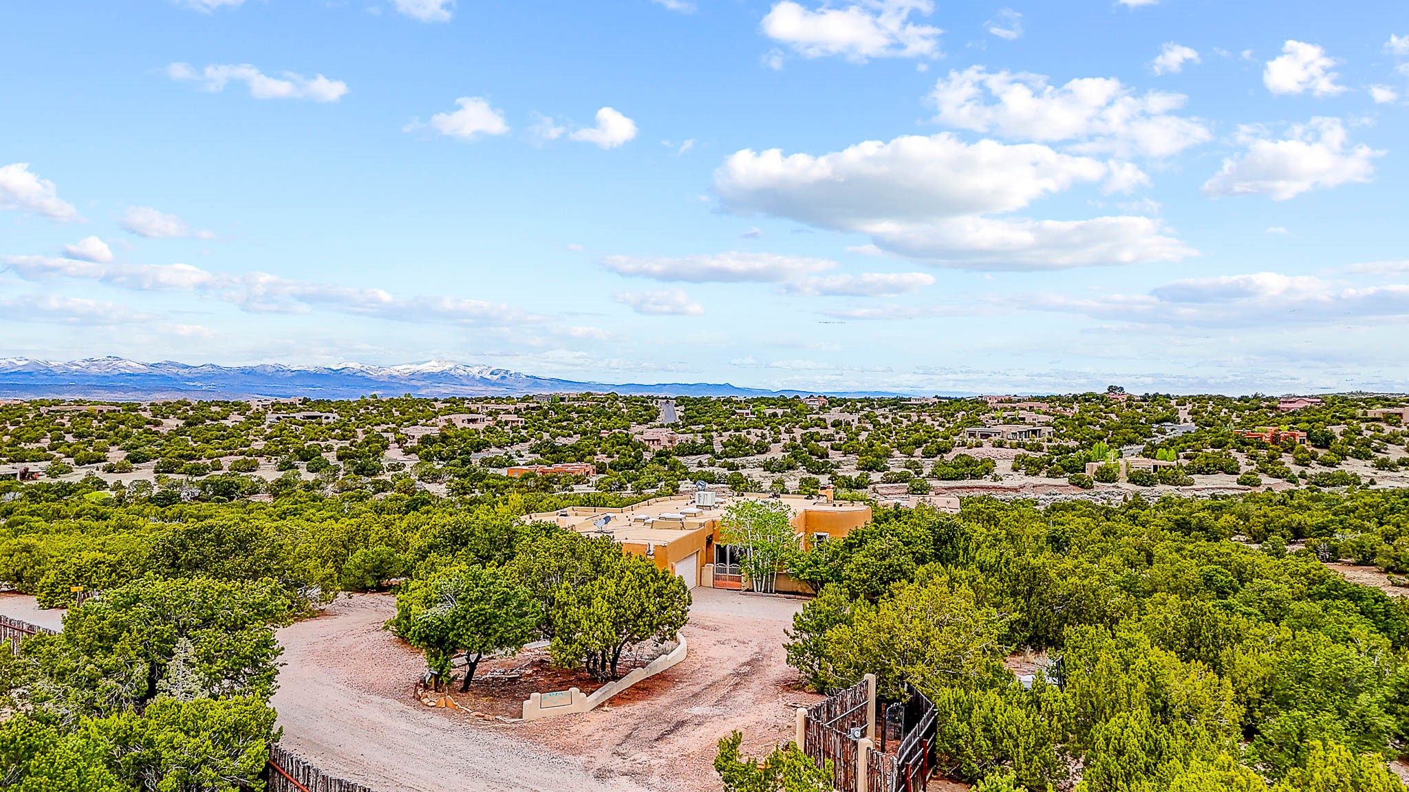 Prime investment opportunity just minutes from the Santa Fe Plaza! This property offers two fully independent living spaces: a 2,908 sq.ft. custom main home and a BONUS 1,405 sq.ft. 2BD/1BA unit with separate address, entrance, electric, and parking--ideal for rental income, Airbnb, or long-term tenants. Situated on 1.64 acres near Las Campanas with no HOA, the main home features skylights, diamond plaster walls, vigas, 3 interior kiva fireplaces, and an exterior kiva off the ensuite deck. Ample parking, oversized 2-car garage, and private road access enhance functionality and appeal.