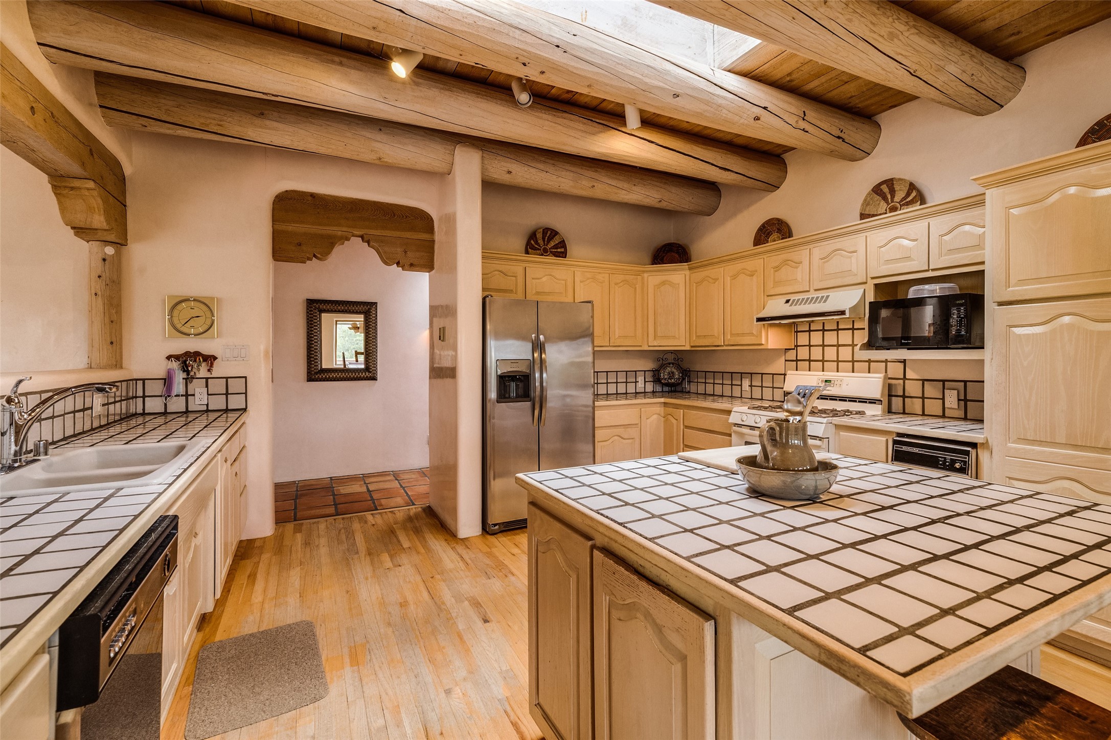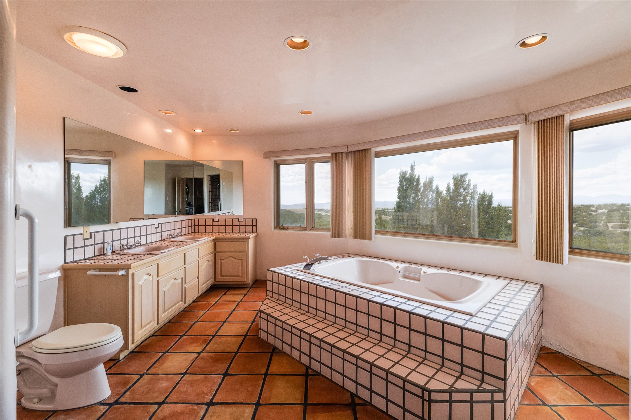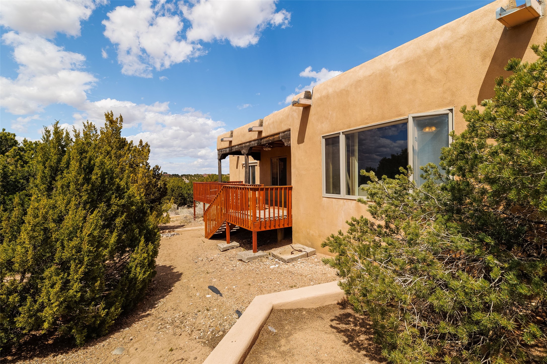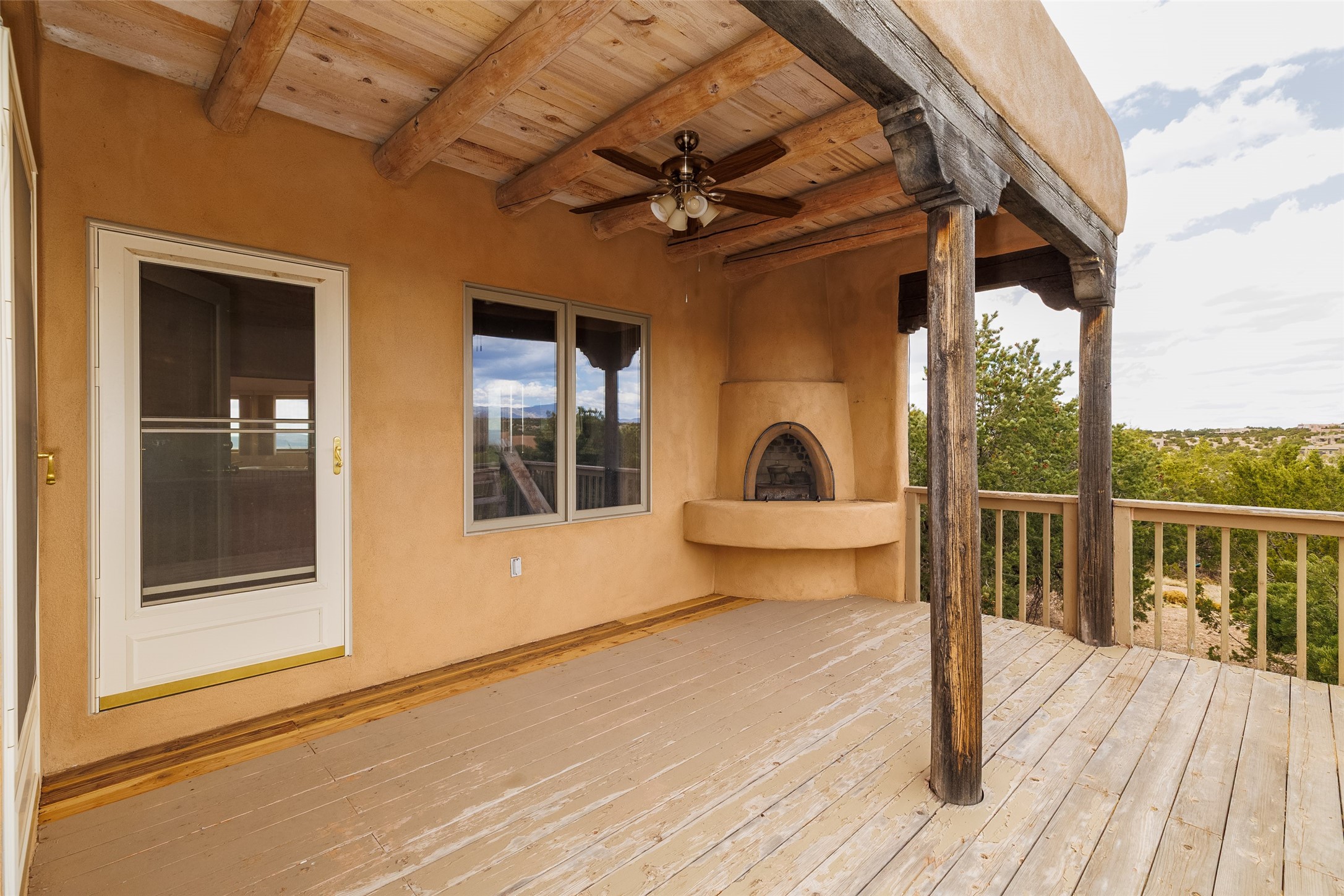 Prime investment opportunity just minutes from the Santa Fe Plaza! This property offers two fully independent living spaces: a 2,908 sq.ft. custom main home and a BONUS 1,405 sq.ft. 2BD/1BA unit with separate address, entrance, electric, and parking--ideal for rental income, Airbnb, or long-term tenants. Situated on 1.64 acres near Las Campanas with no HOA, the main home features skylights, diamond plaster walls, vigas, 3 interior kiva fireplaces, and an exterior kiva off the ensuite deck. Ample parking, oversized 2-car garage, and private road access enhance functionality and appeal.