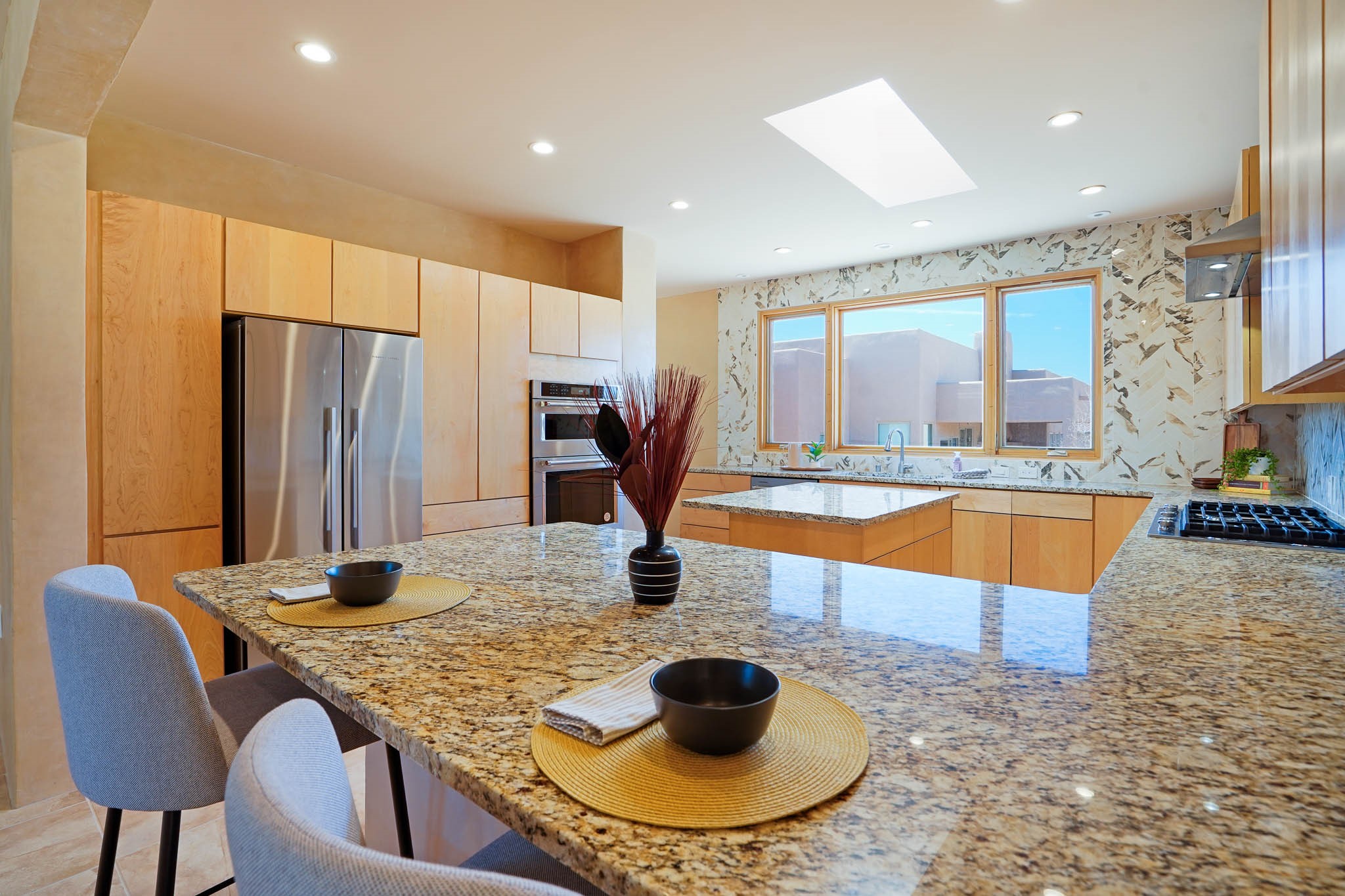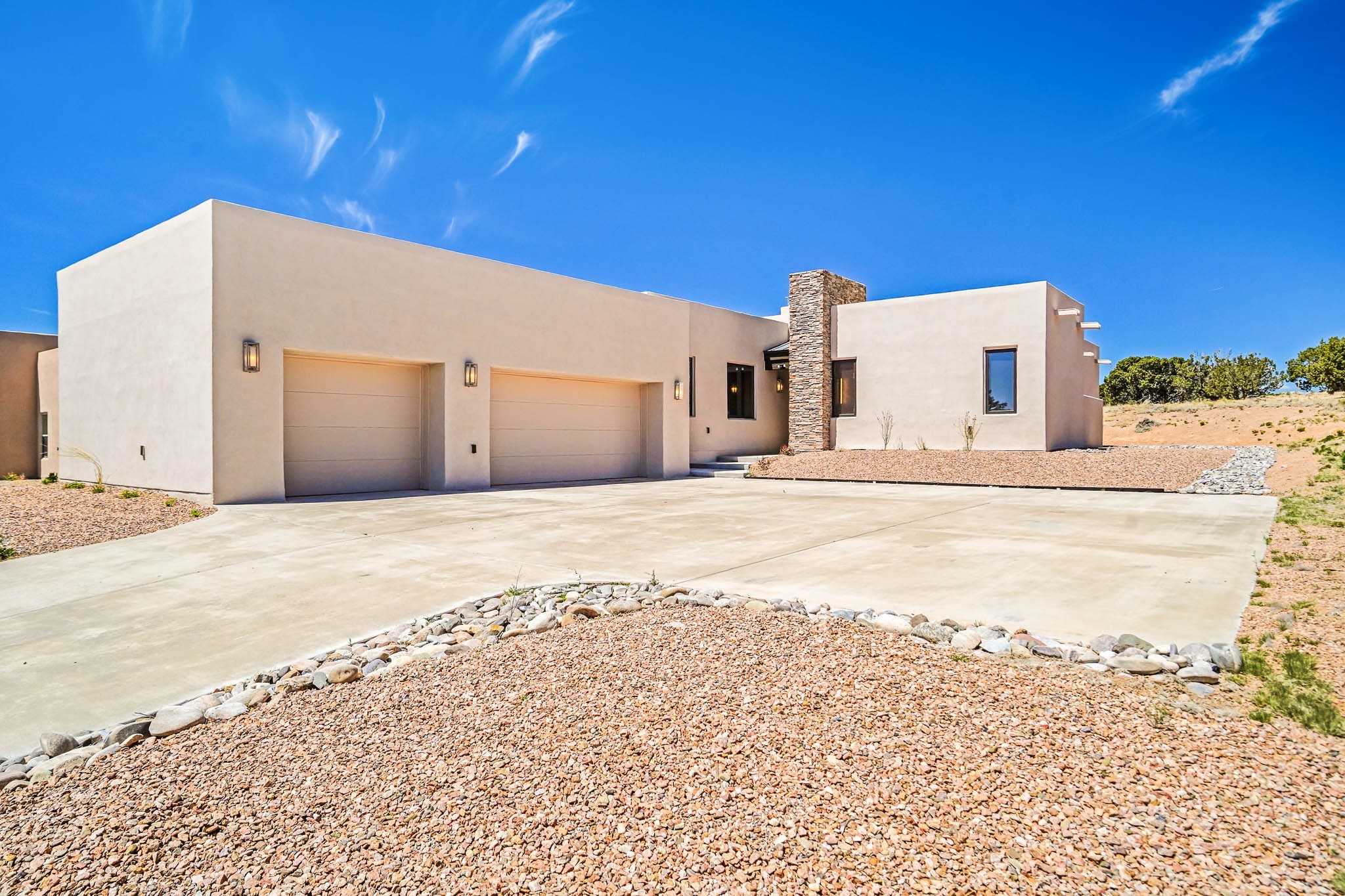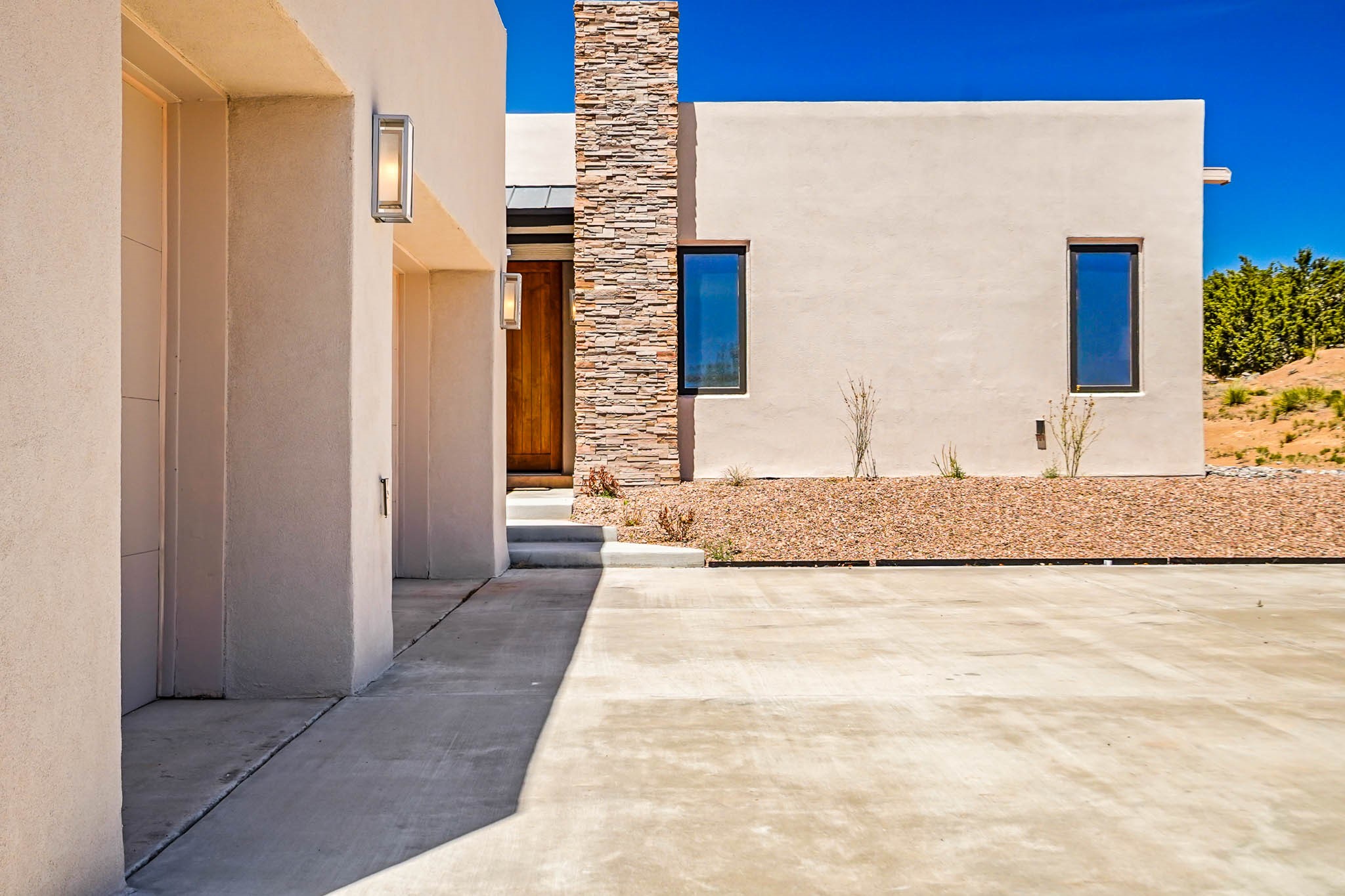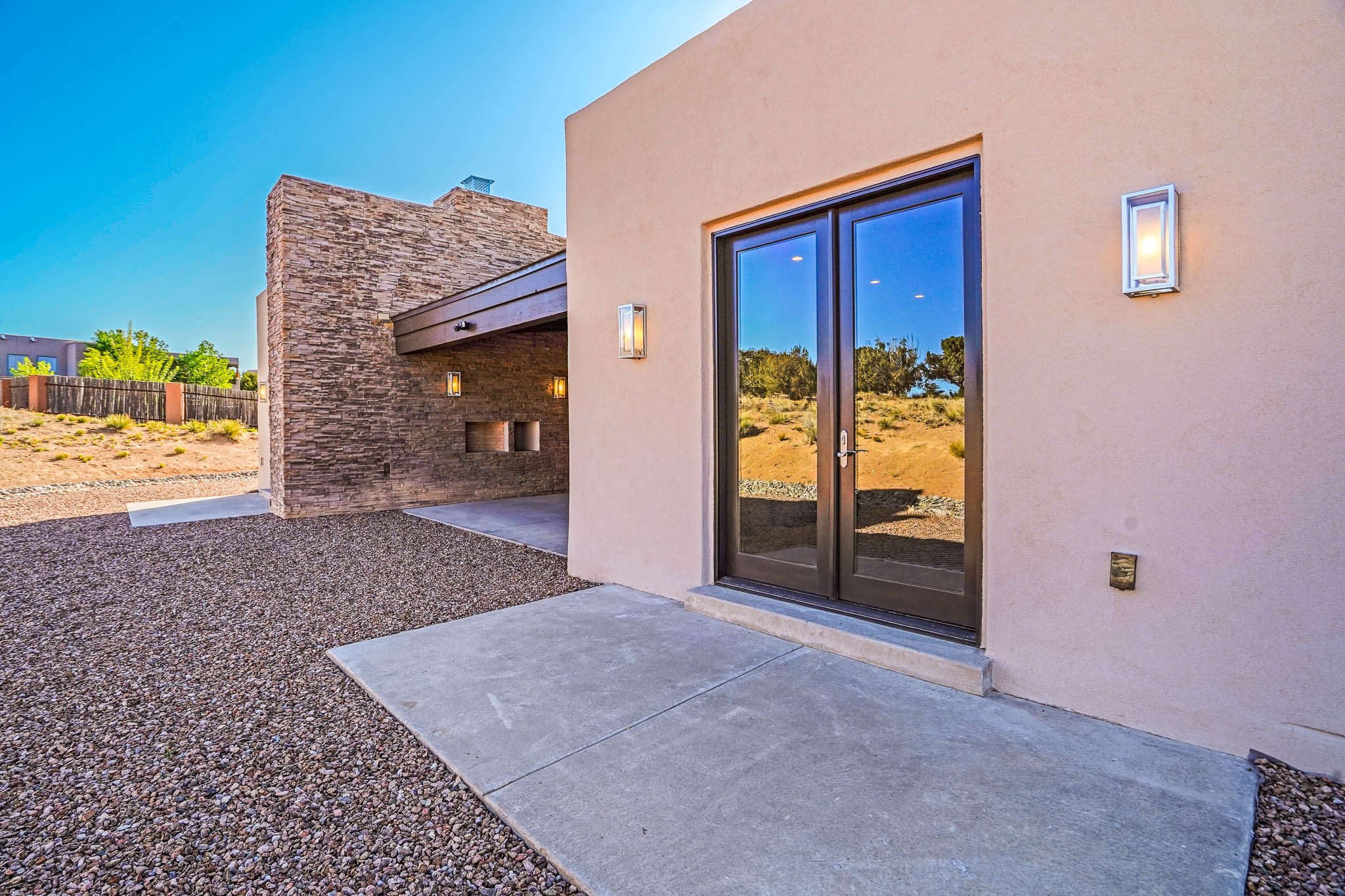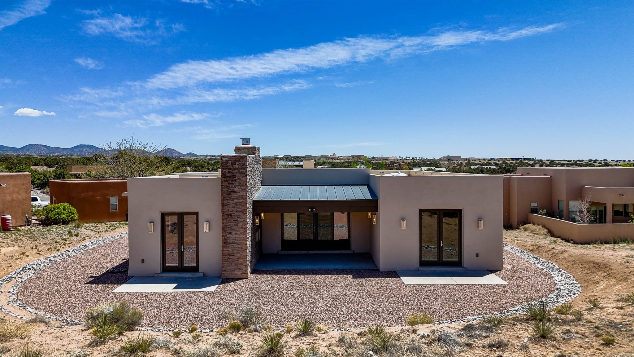 Welcome to a home where thoughtful design meets effortless comfort. This custom-built soft contemporary residence offers 2,450 square feet of beautiful living space, featuring 3 bedrooms, 3 bathrooms, and a spacious 3-car garage in the heart of the highly sought-after La Pradera community. Here, you'll enjoy the perfect balance of tranquility and convenience, with easy access to I-25, shopping, hospitals, and more. From the entrance, you're welcomed by an open-concept living and dining area, thoughtfully connected by a stunning two-way fireplace -- a centerpiece that brings warmth, elegance, and a sense of gathering to every occasion. The custom kitchen is a centerpiece for everyday living and entertaining alike, featuring sleek built-in cabinetry, brand-new appliances, and exquisite granite countertops and backsplash. Designed for lasting quality and comfort, the home is constructed with durable, energy-efficient ICF technology, complemented by central heating and cooling and a resilient TPO roof -- offering peace of mind for years to come. Step outside onto extended outdoor living space on the side portal or the rear portal featuring a woodburning fireplace. The rear portal also backs up to a neighborhood open space of nearly 1.5 acres, offering a rare feeling of privacy and connection to nature. An exceptional opportunity to embrace quality, style, and serenity in one of Santa Fe's most desirable neighborhoods -- a home where every detail is crafted for a life well-lived.