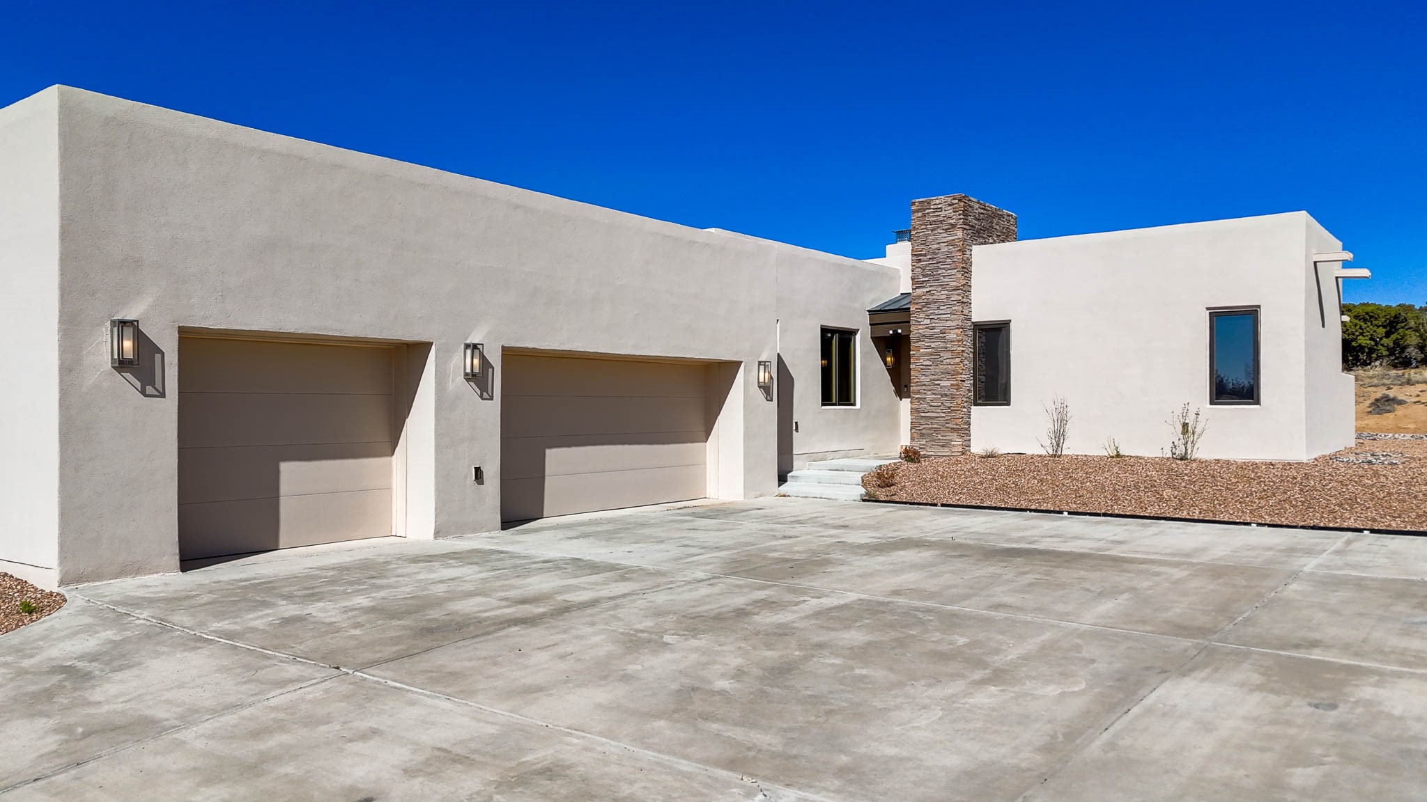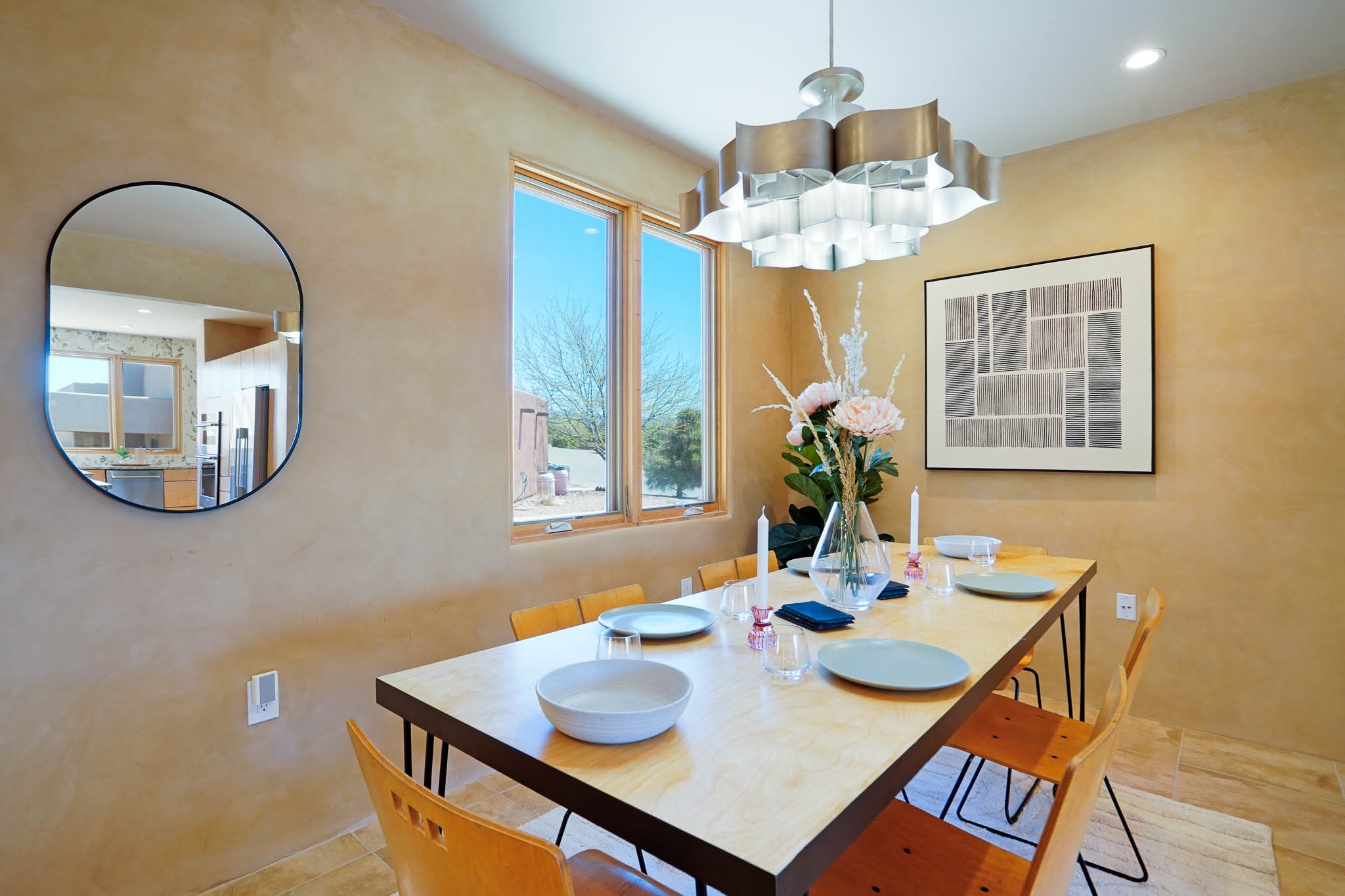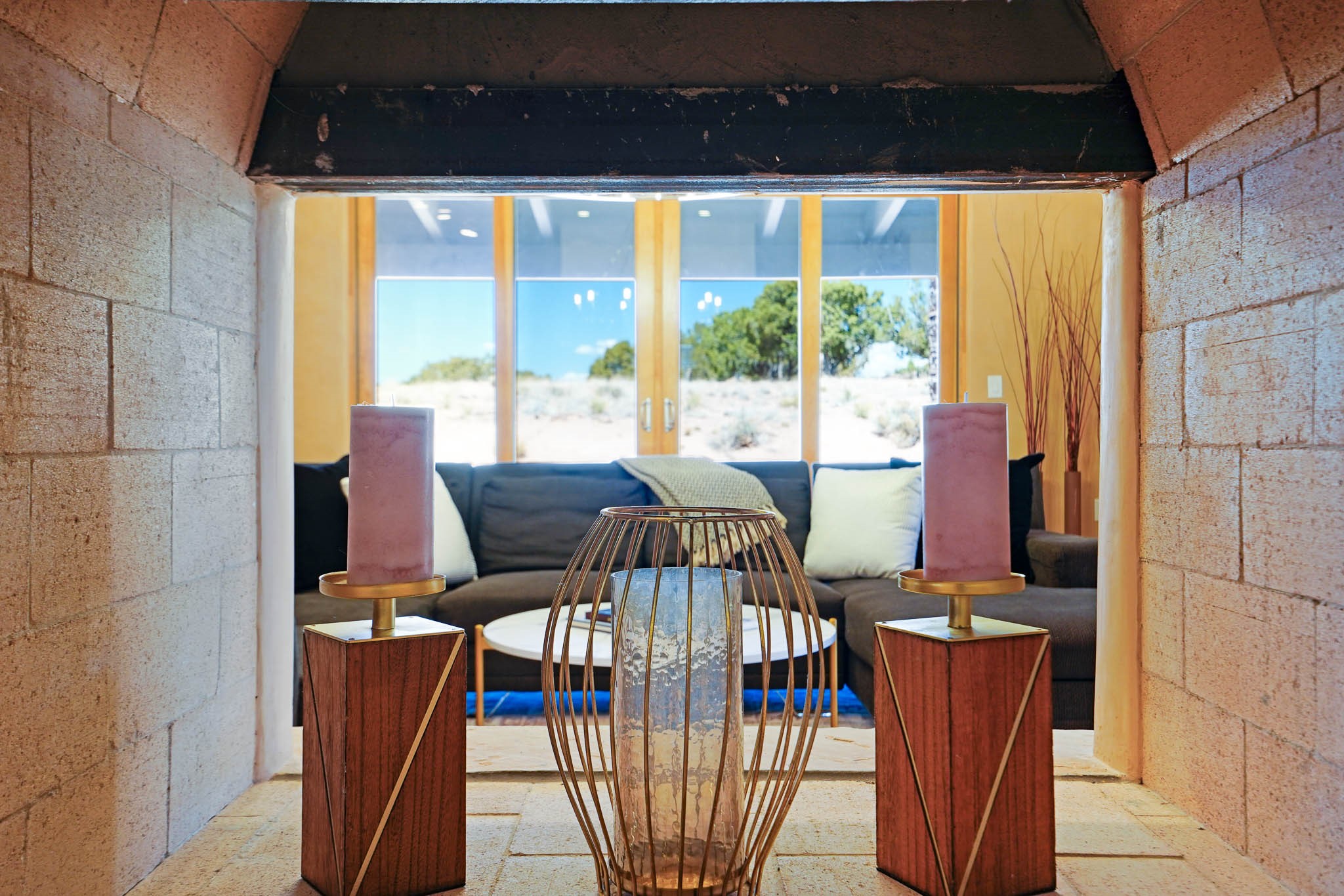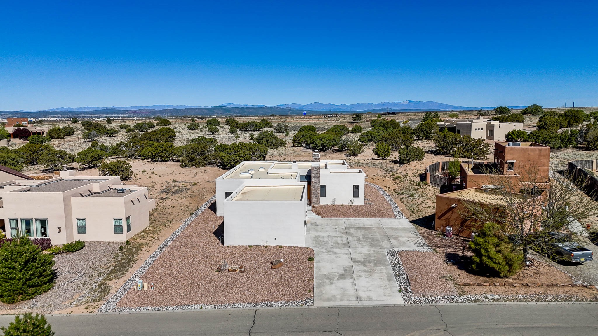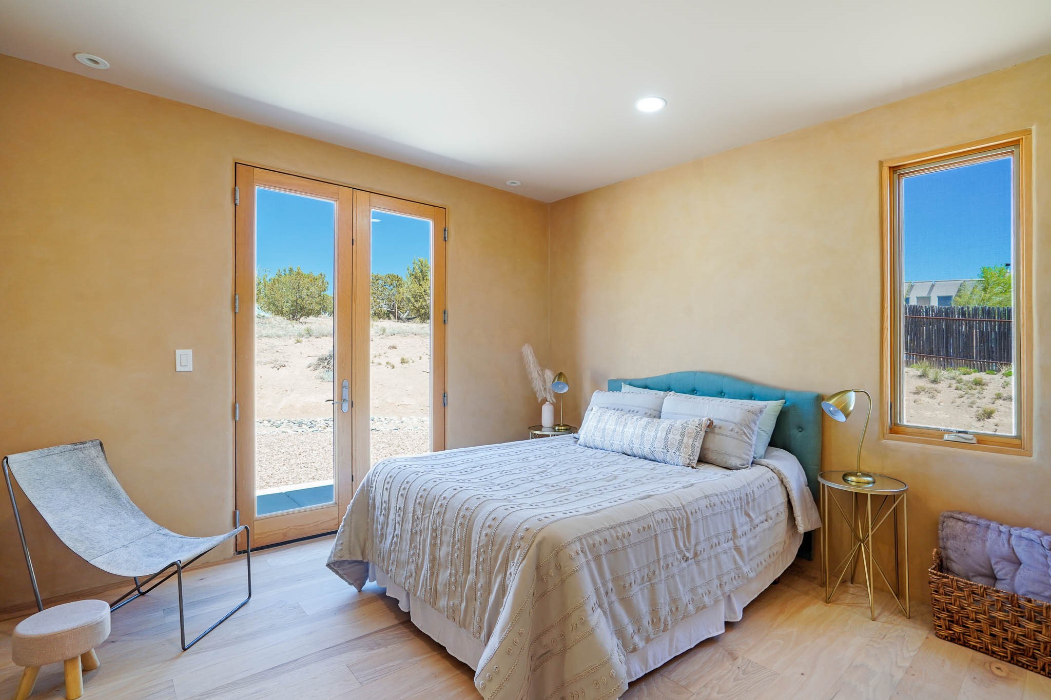 Welcome to a home where thoughtful design meets effortless comfort. This custom-built soft contemporary residence offers 2,450 square feet of beautiful living space, featuring 3 bedrooms, 3 bathrooms, and a spacious 3-car garage in the heart of the highly sought-after La Pradera community. Here, you'll enjoy the perfect balance of tranquility and convenience, with easy access to I-25, shopping, hospitals, and more. From the entrance, you're welcomed by an open-concept living and dining area, thoughtfully connected by a stunning two-way fireplace -- a centerpiece that brings warmth, elegance, and a sense of gathering to every occasion. The custom kitchen is a centerpiece for everyday living and entertaining alike, featuring sleek built-in cabinetry, brand-new appliances, and exquisite granite countertops and backsplash. Designed for lasting quality and comfort, the home is constructed with durable, energy-efficient ICF technology, complemented by central heating and cooling and a resilient TPO roof -- offering peace of mind for years to come. Step outside onto extended outdoor living space on the side portal or the rear portal featuring a woodburning fireplace. The rear portal also backs up to a neighborhood open space of nearly 1.5 acres, offering a rare feeling of privacy and connection to nature. An exceptional opportunity to embrace quality, style, and serenity in one of Santa Fe's most desirable neighborhoods -- a home where every detail is crafted for a life well-lived.