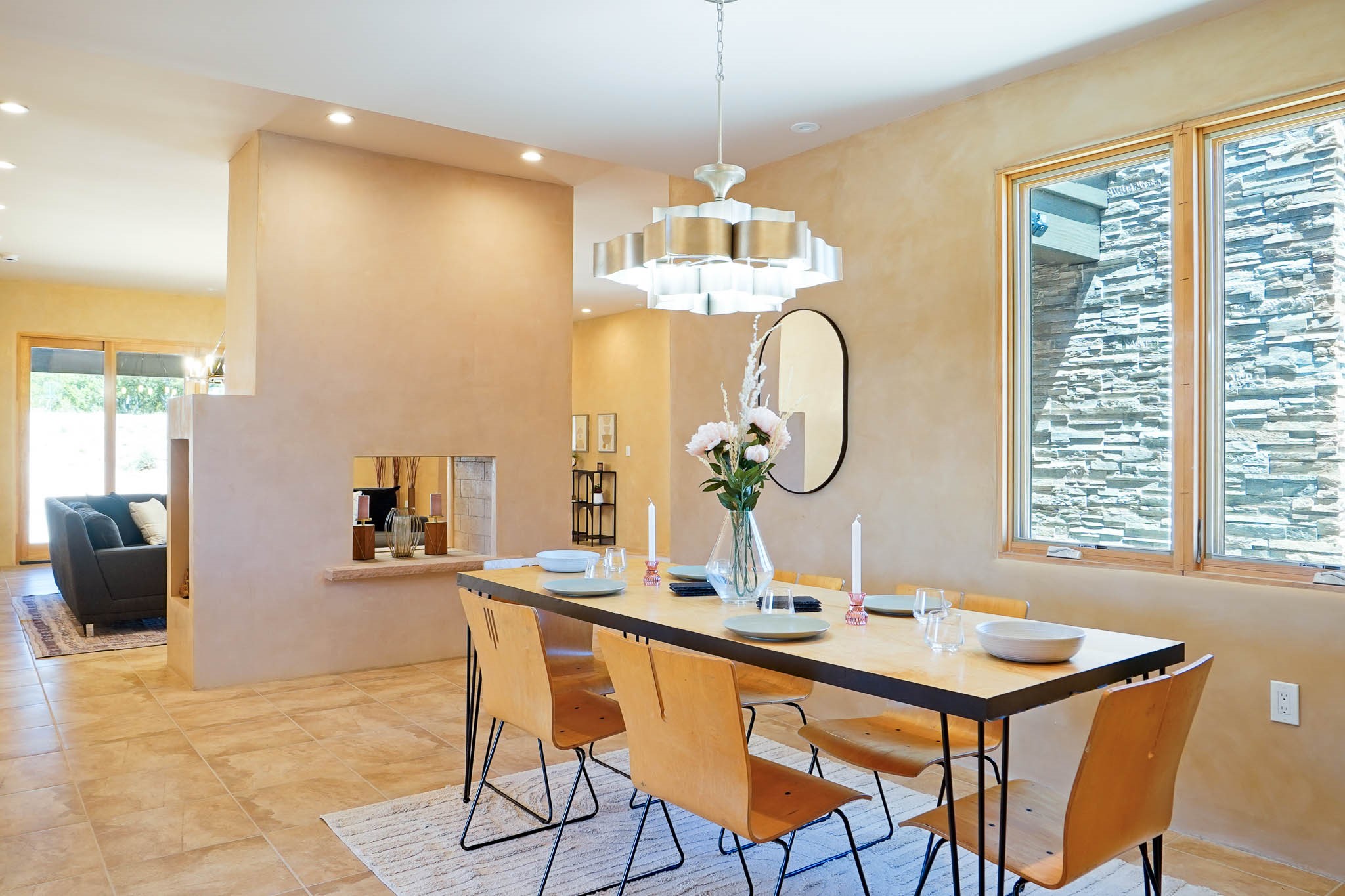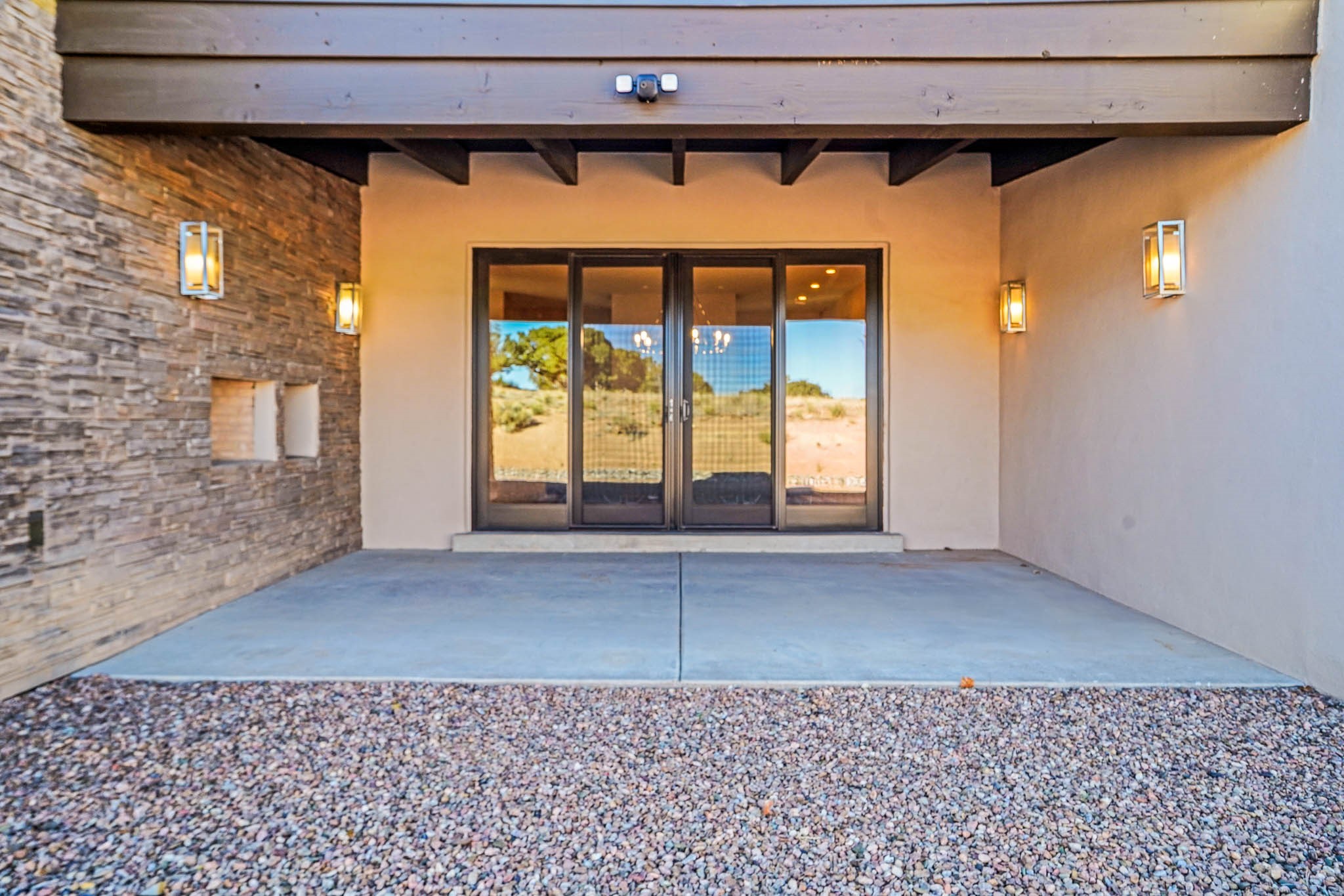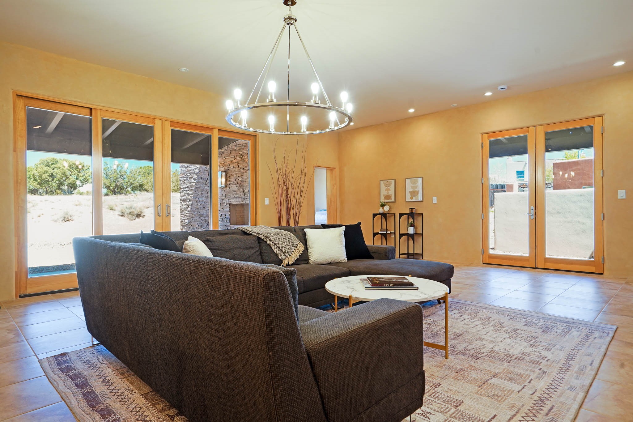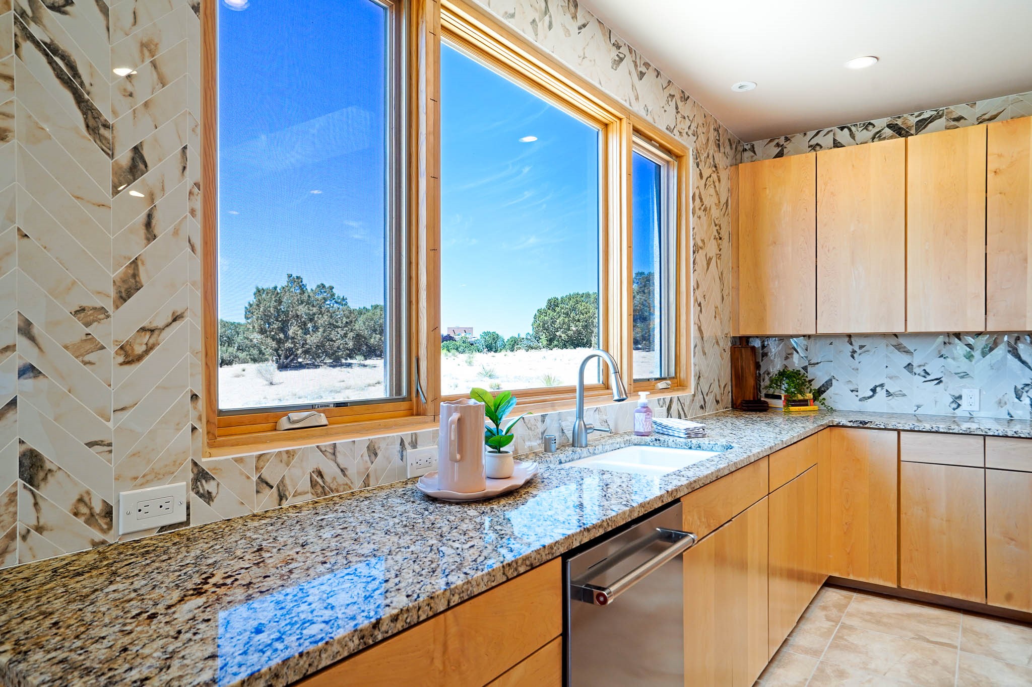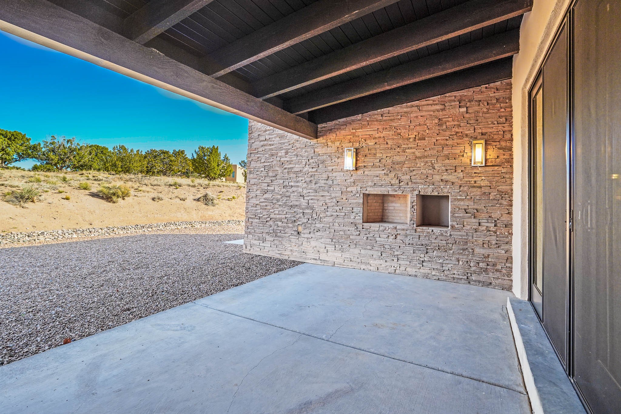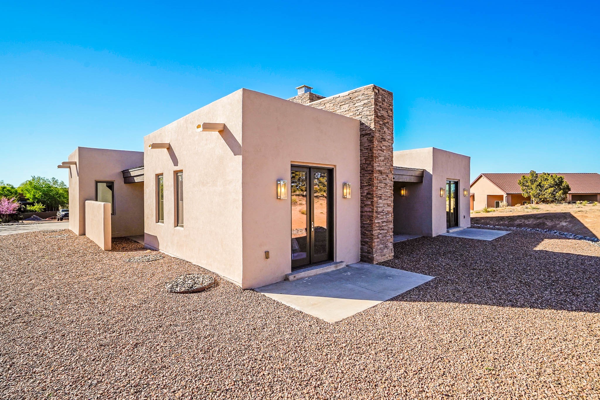 Welcome to a home where thoughtful design meets effortless comfort. This custom-built soft contemporary residence offers 2,450 square feet of beautiful living space, featuring 3 bedrooms, 3 bathrooms, and a spacious 3-car garage in the heart of the highly sought-after La Pradera community. Here, you'll enjoy the perfect balance of tranquility and convenience, with easy access to I-25, shopping, hospitals, and more. From the entrance, you're welcomed by an open-concept living and dining area, thoughtfully connected by a stunning two-way fireplace -- a centerpiece that brings warmth, elegance, and a sense of gathering to every occasion. The custom kitchen is a centerpiece for everyday living and entertaining alike, featuring sleek built-in cabinetry, brand-new appliances, and exquisite granite countertops and backsplash. Designed for lasting quality and comfort, the home is constructed with durable, energy-efficient ICF technology, complemented by central heating and cooling and a resilient TPO roof -- offering peace of mind for years to come. Step outside onto extended outdoor living space on the side portal or the rear portal featuring a woodburning fireplace. The rear portal also backs up to a neighborhood open space of nearly 1.5 acres, offering a rare feeling of privacy and connection to nature. An exceptional opportunity to embrace quality, style, and serenity in one of Santa Fe's most desirable neighborhoods -- a home where every detail is crafted for a life well-lived.