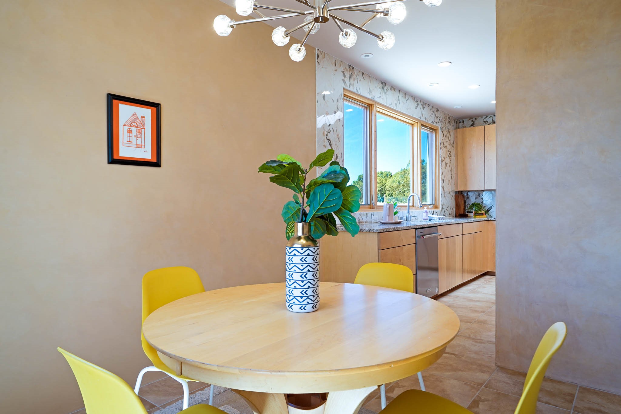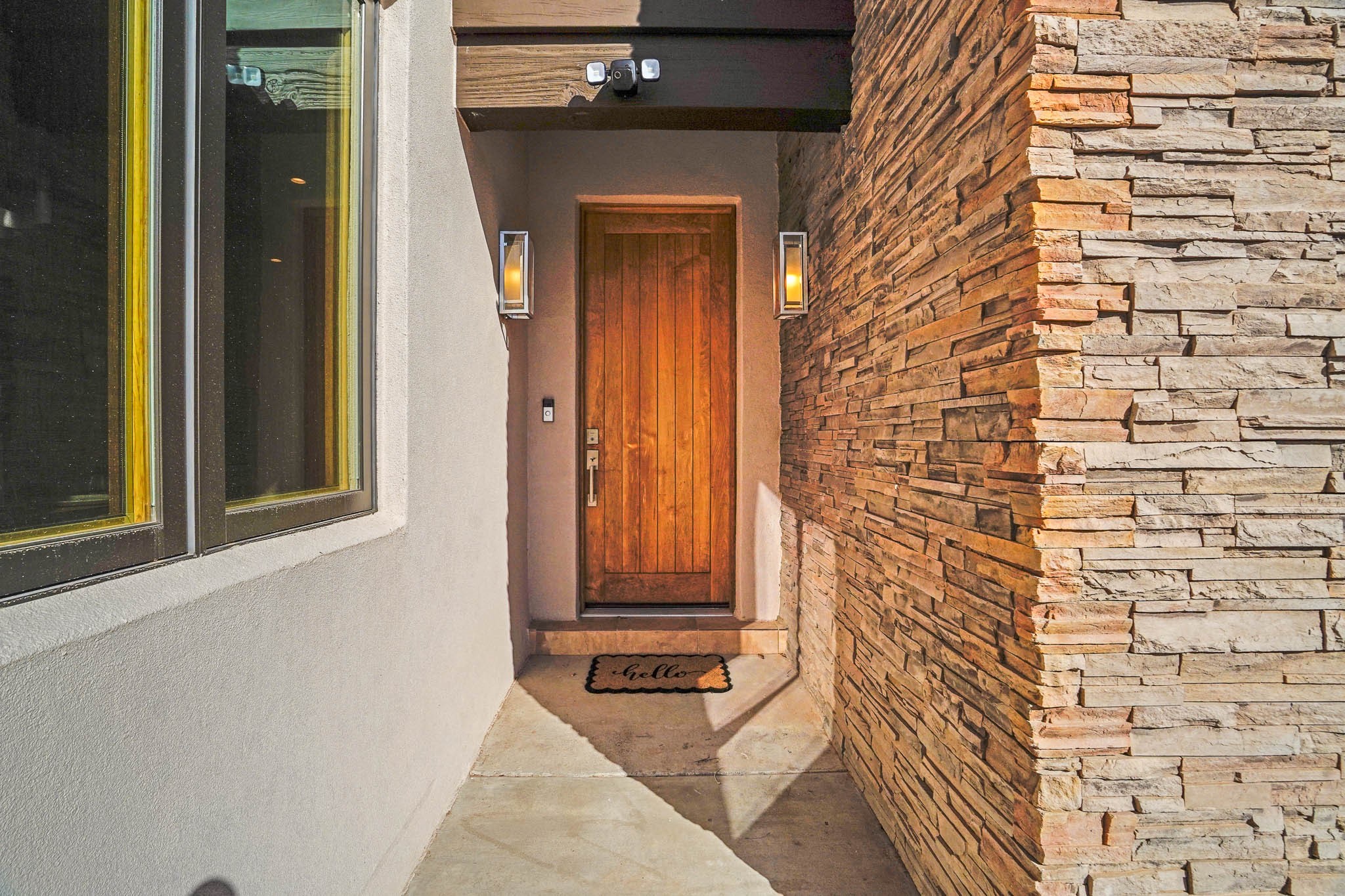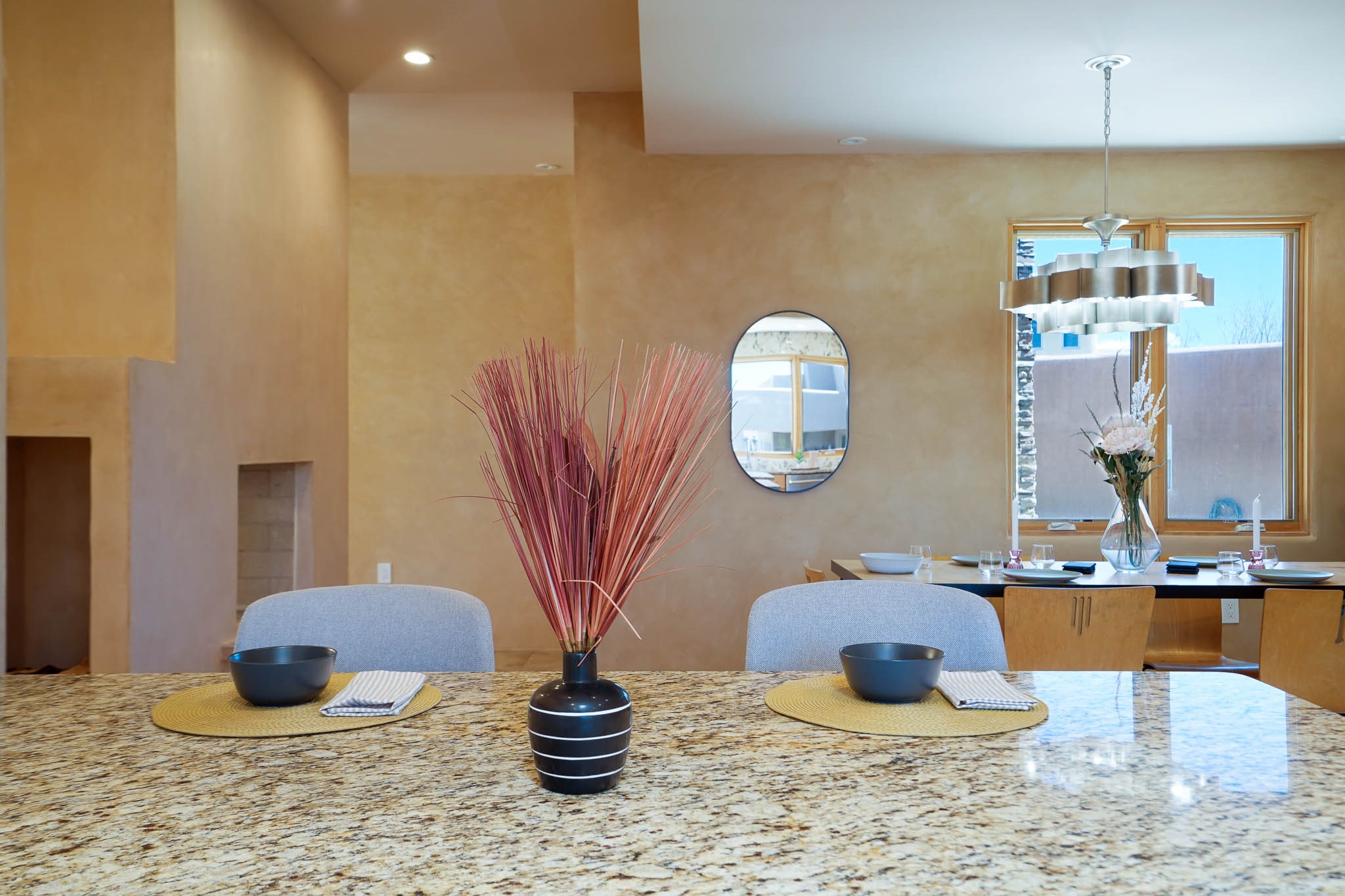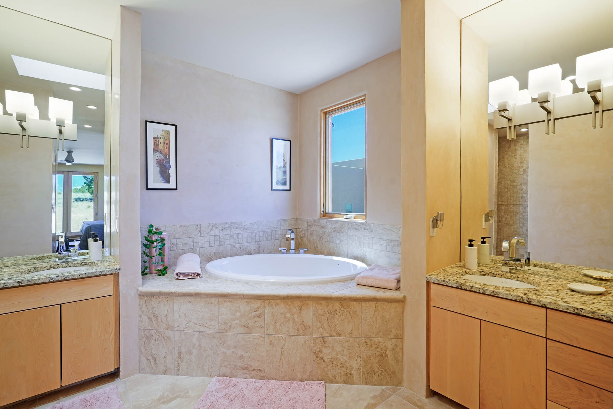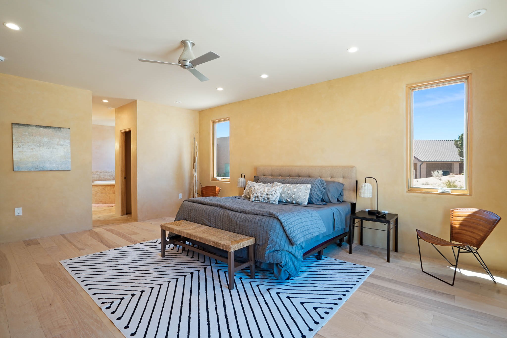 Welcome to a home where thoughtful design meets effortless comfort. This custom-built soft contemporary residence offers 2,450 square feet of beautiful living space, featuring 3 bedrooms, 3 bathrooms, and a spacious 3-car garage in the heart of the highly sought-after La Pradera community. Here, you'll enjoy the perfect balance of tranquility and convenience, with easy access to I-25, shopping, hospitals, and more. From the entrance, you're welcomed by an open-concept living and dining area, thoughtfully connected by a stunning two-way fireplace -- a centerpiece that brings warmth, elegance, and a sense of gathering to every occasion. The custom kitchen is a centerpiece for everyday living and entertaining alike, featuring sleek built-in cabinetry, brand-new appliances, and exquisite granite countertops and backsplash. Designed for lasting quality and comfort, the home is constructed with durable, energy-efficient ICF technology, complemented by central heating and cooling and a resilient TPO roof -- offering peace of mind for years to come. Step outside onto extended outdoor living space on the side portal or the rear portal featuring a woodburning fireplace. The rear portal also backs up to a neighborhood open space of nearly 1.5 acres, offering a rare feeling of privacy and connection to nature. An exceptional opportunity to embrace quality, style, and serenity in one of Santa Fe's most desirable neighborhoods -- a home where every detail is crafted for a life well-lived.