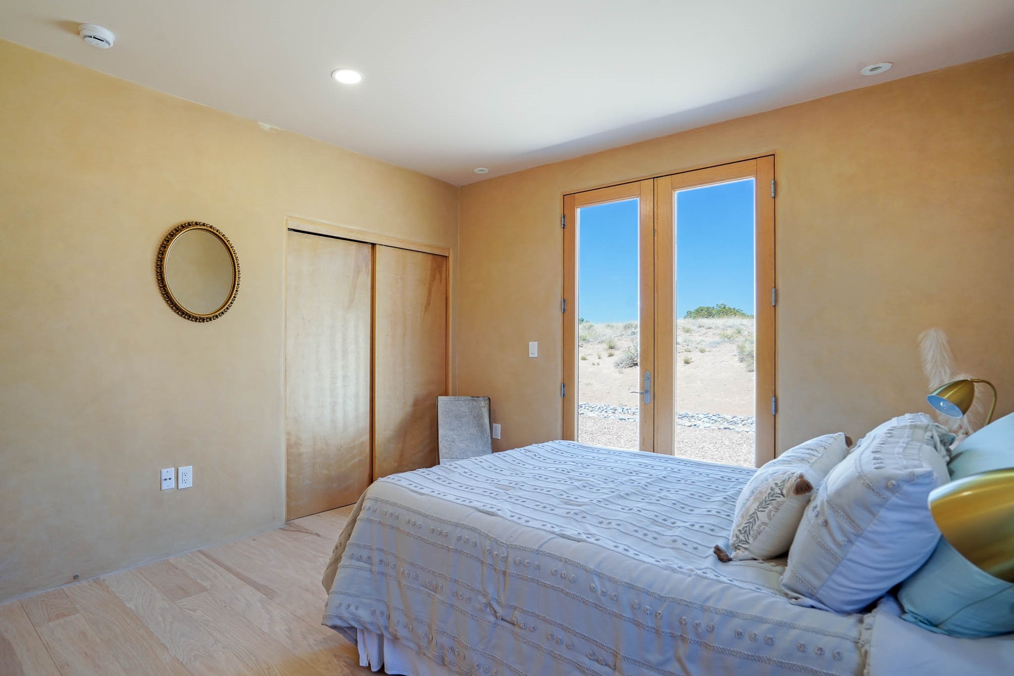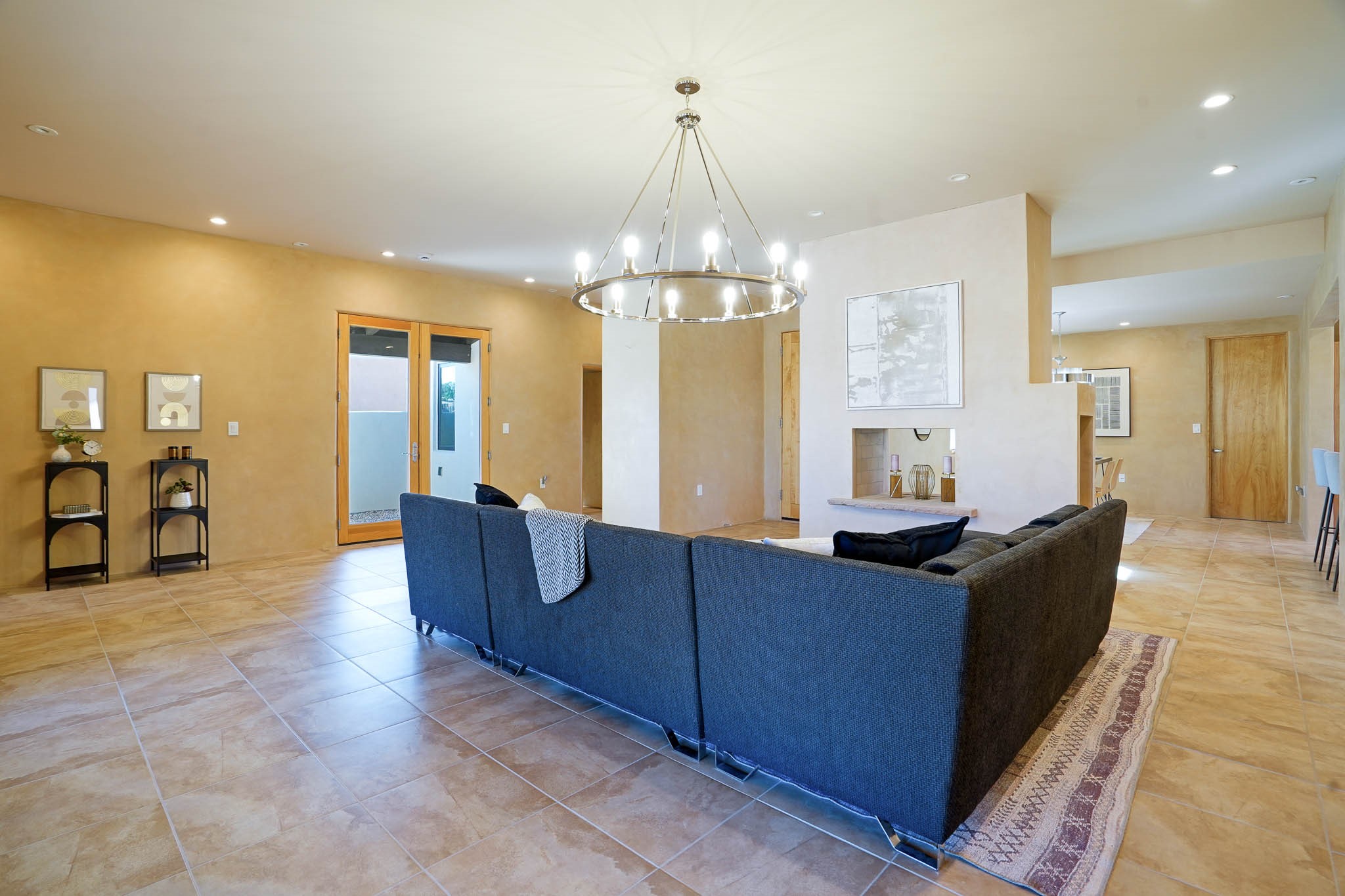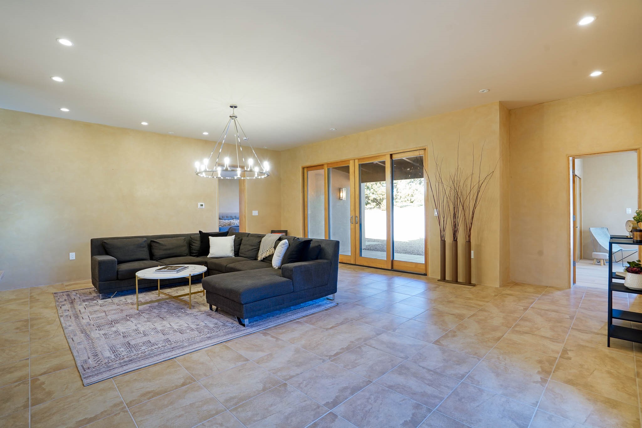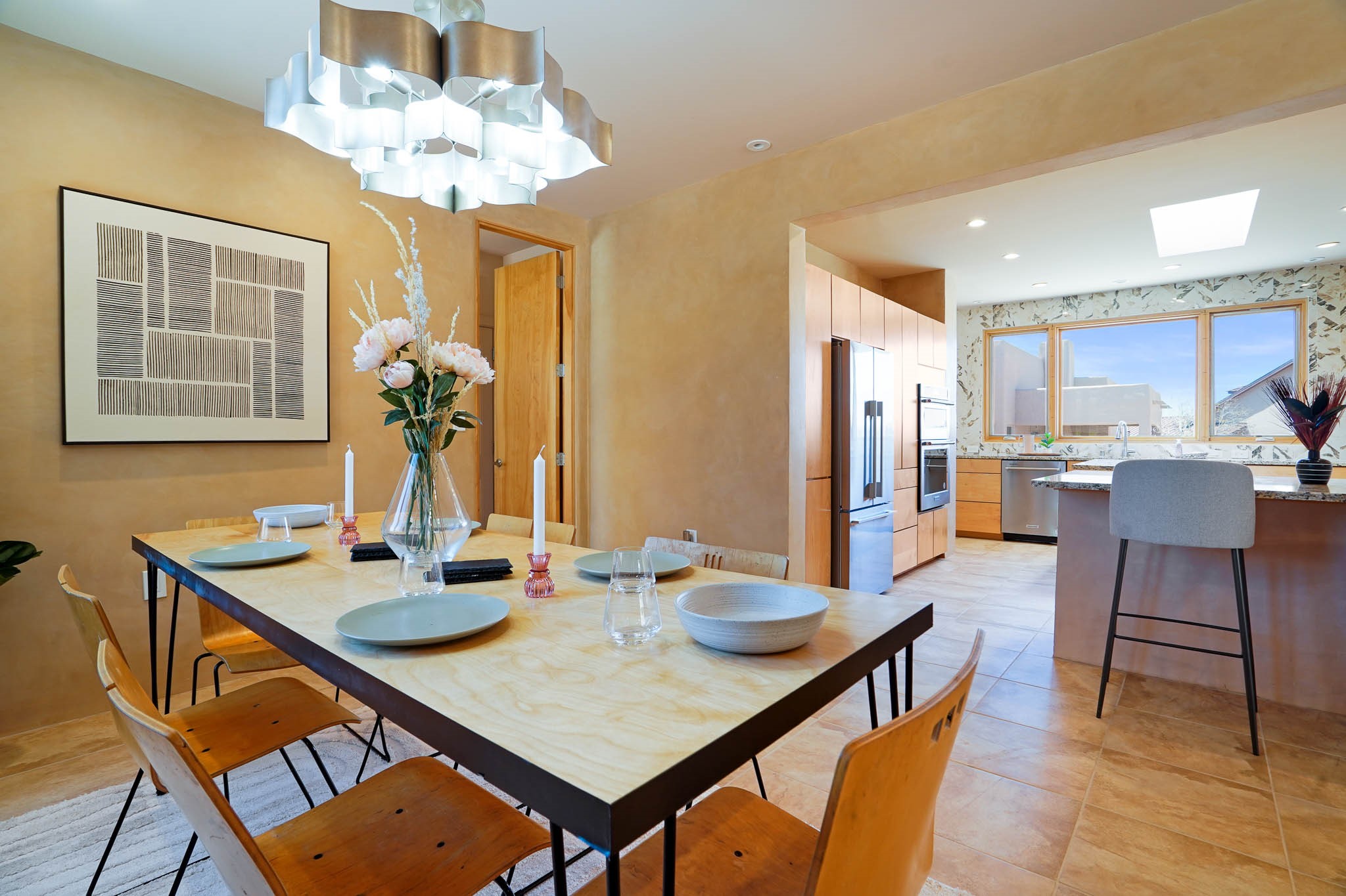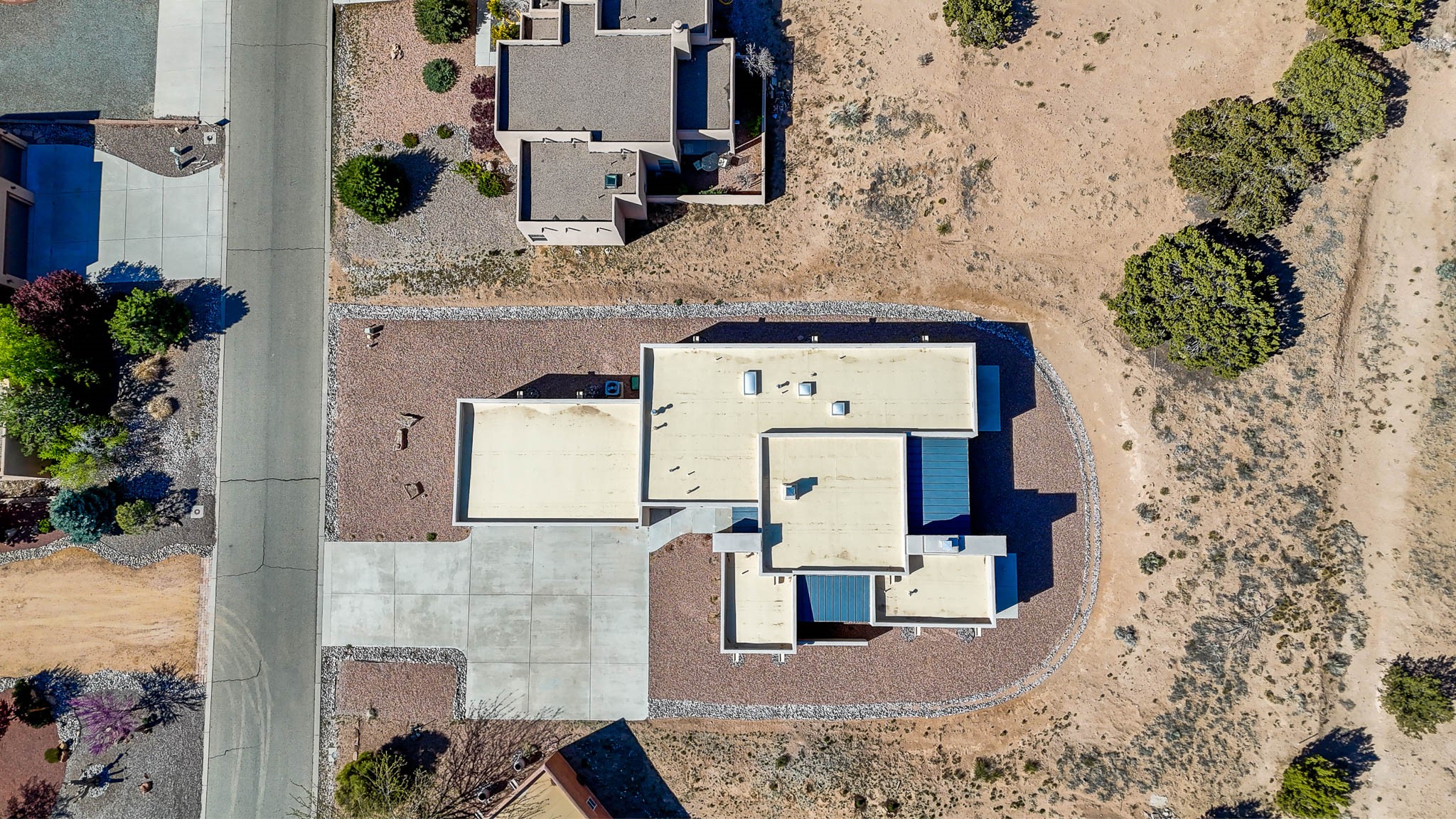Welcome to a home where thoughtful design meets effortless comfort. This custom-built soft contemporary residence offers 2,450 square feet of beautiful living space, featuring 3 bedrooms, 3 bathrooms, and a spacious 3-car garage in the heart of the highly sought-after La Pradera community. Here, you'll enjoy the perfect balance of tranquility and convenience, with easy access to I-25, shopping, hospitals, and more. From the entrance, you're welcomed by an open-concept living and dining area, thoughtfully connected by a stunning two-way fireplace -- a centerpiece that brings warmth, elegance, and a sense of gathering to every occasion. The custom kitchen is a centerpiece for everyday living and entertaining alike, featuring sleek built-in cabinetry, brand-new appliances, and exquisite granite countertops and backsplash. Designed for lasting quality and comfort, the home is constructed with durable, energy-efficient ICF technology, complemented by central heating and cooling and a resilient TPO roof -- offering peace of mind for years to come. Step outside onto extended outdoor living space on the side portal or the rear portal featuring a woodburning fireplace. The rear portal also backs up to a neighborhood open space of nearly 1.5 acres, offering a rare feeling of privacy and connection to nature. An exceptional opportunity to embrace quality, style, and serenity in one of Santa Fe's most desirable neighborhoods -- a home where every detail is crafted for a life well-lived.