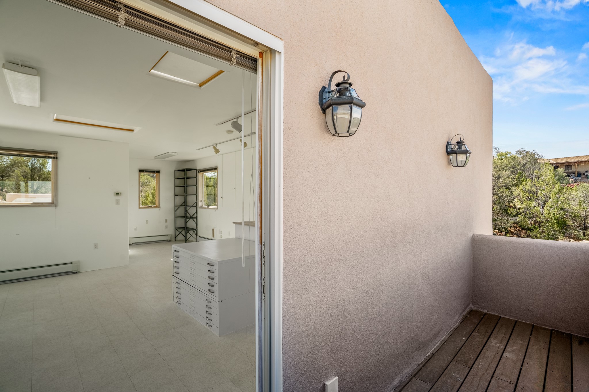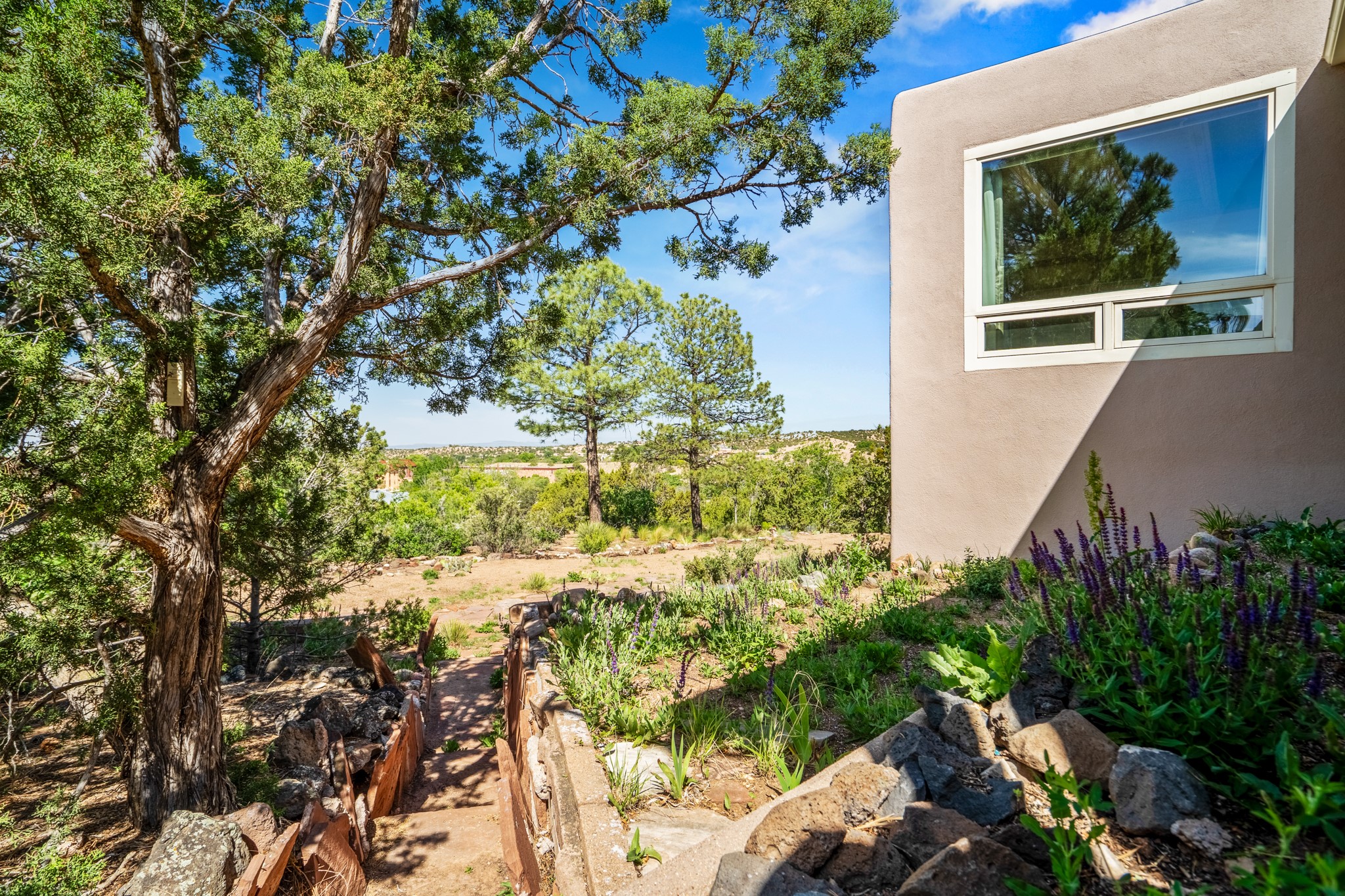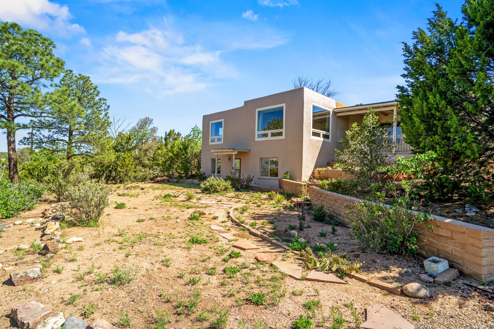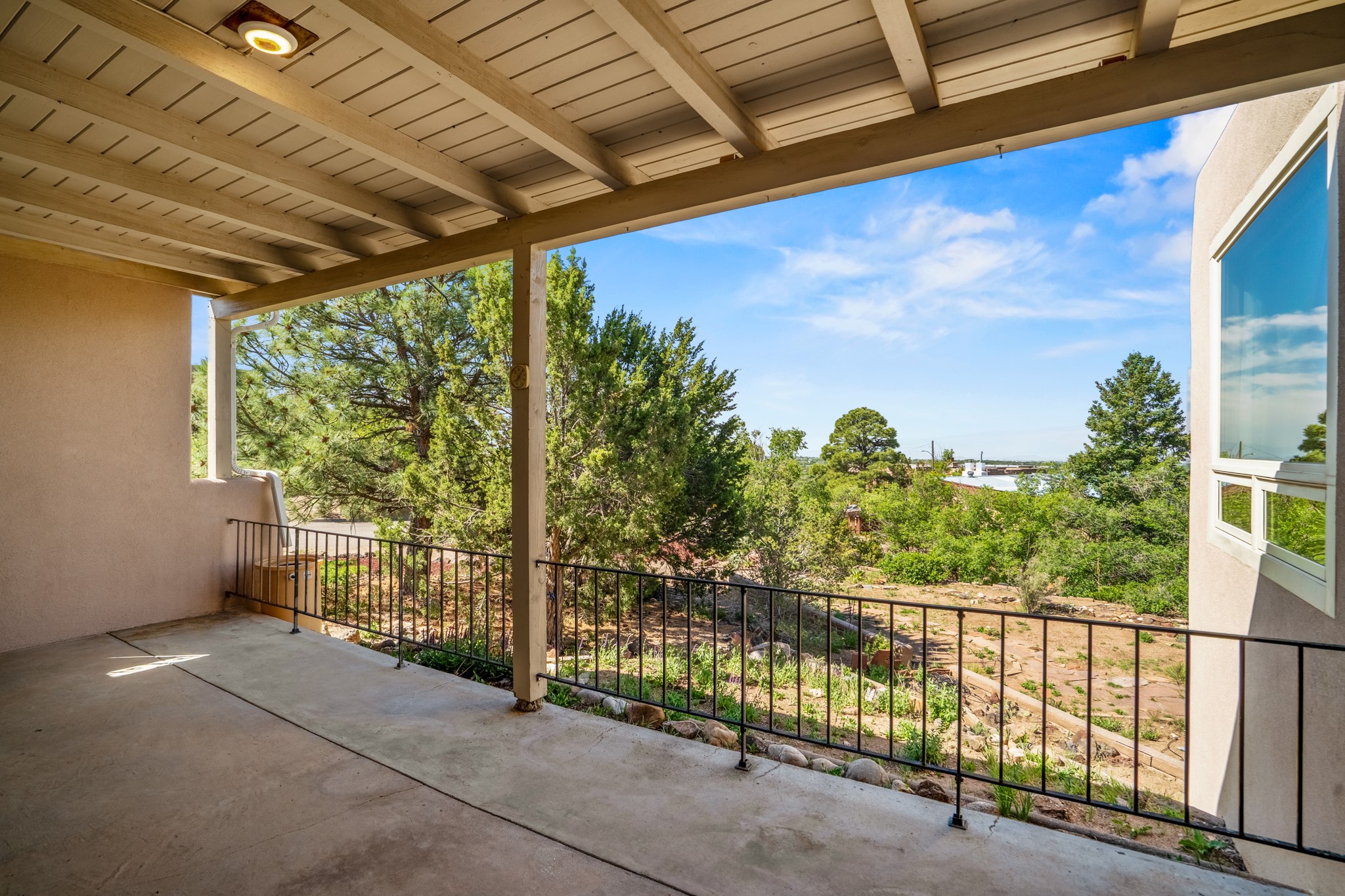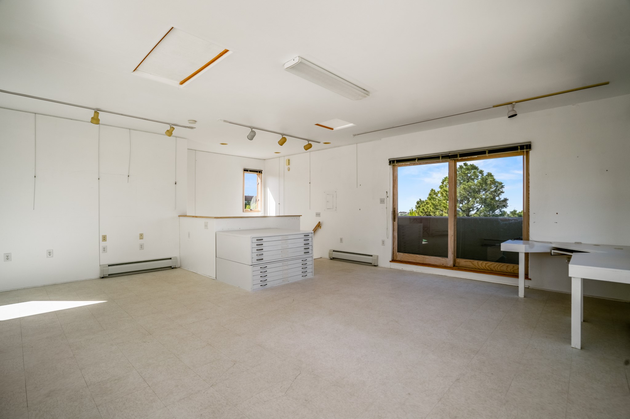 Discover the potential of this mid-century home paired with a contemporary studio, perched at the peak of the desirable Rosario Hill neighborhood and offering sweeping western views. The main house features potential mid-century charm, ready for a visionary owner to restore and personalize. The upper level includes a spacious living room with a cozy fireplace and expansive views, a formal dining area, a functional kitchen, two bedrooms, and a full bath. The lower level offers incredible versatility with two additional bedrooms, a full bath, a large family/living area with a fireplace, a private entrance, and dedicated parking--ideal for use as a rental unit or guest suite. Adding even more value is a separate studio building, offering two distinct studio spaces (approximately 600 sq. ft. each). The upper studio is bright and airy, with lovely views, while the lower studio includes a bath--perfect as an artist's retreat or as rental income from creative tenants.This unique property offers multiple income streams, artistic flexibility, and the opportunity to craft a dream home in one of the area's scenic neighborhoods 5 minutes from the Santa Fe Plaza.