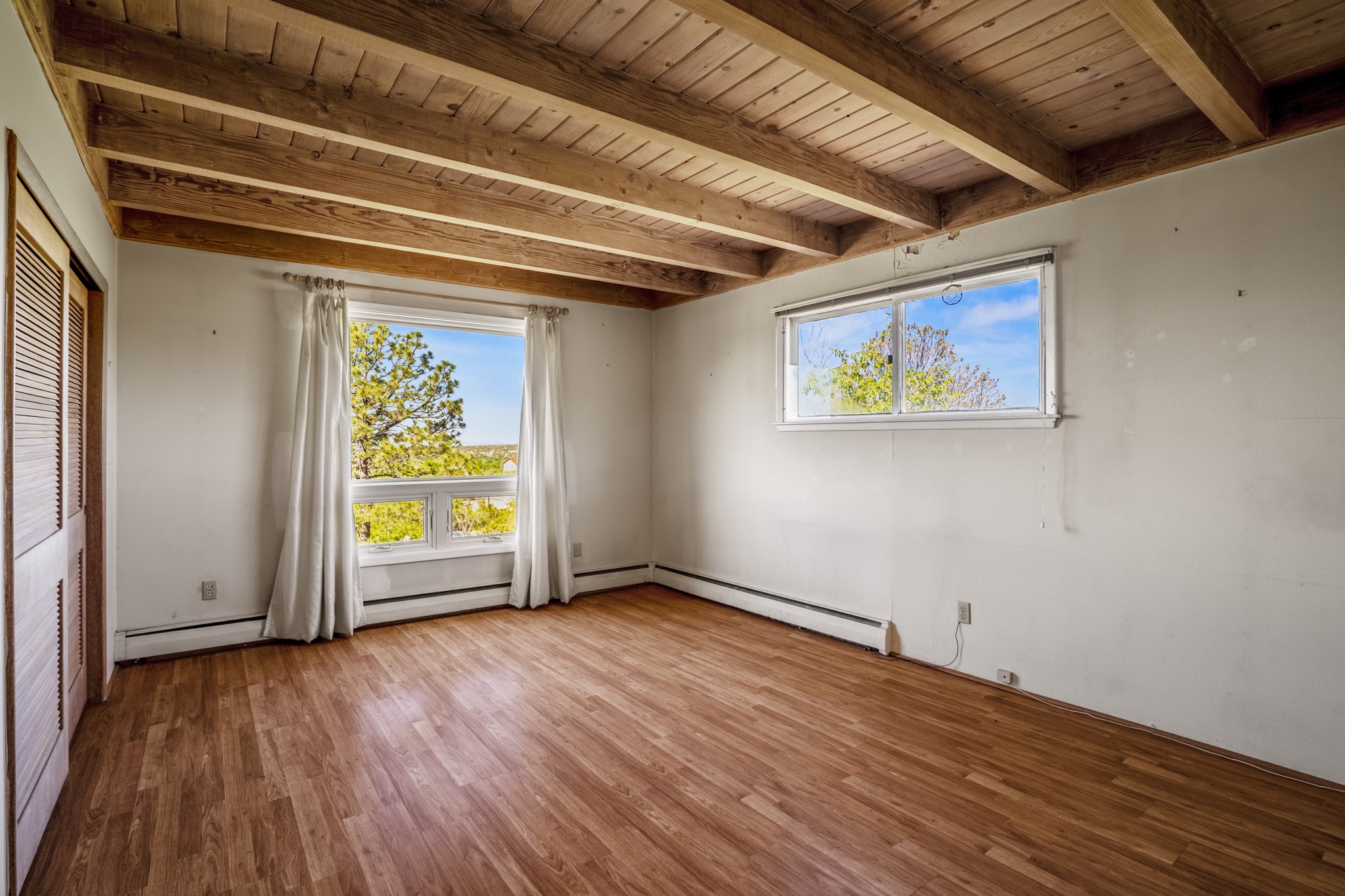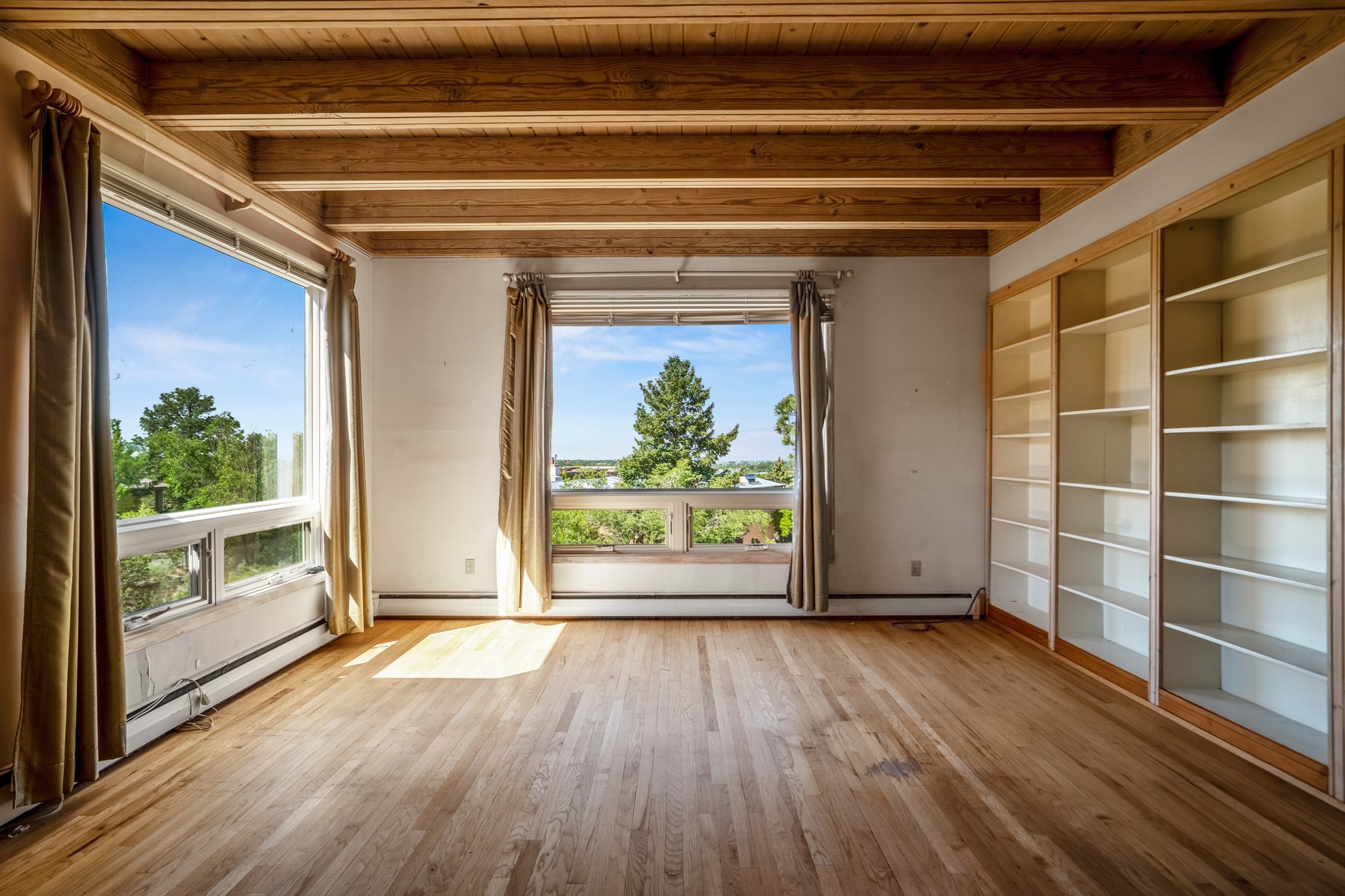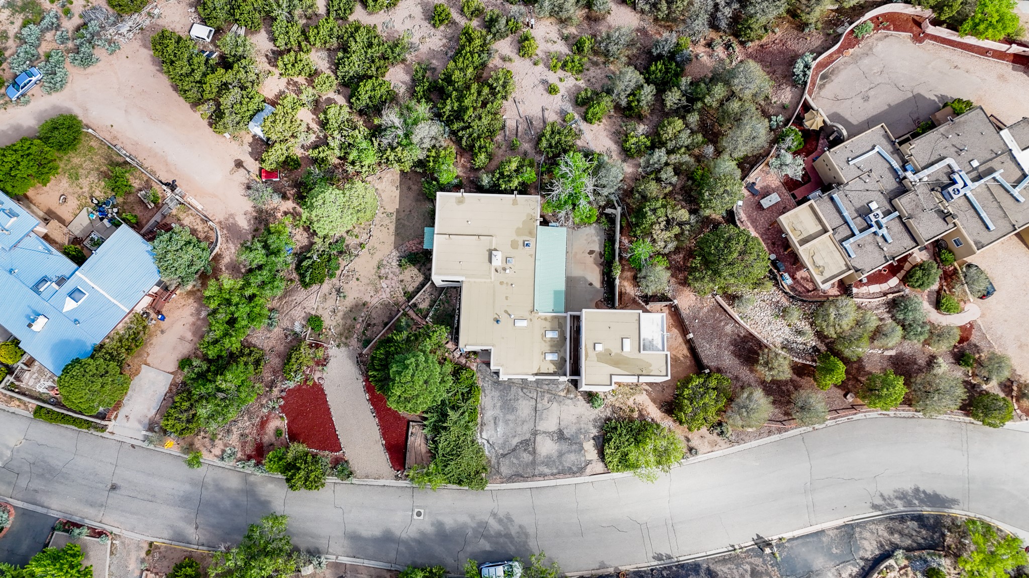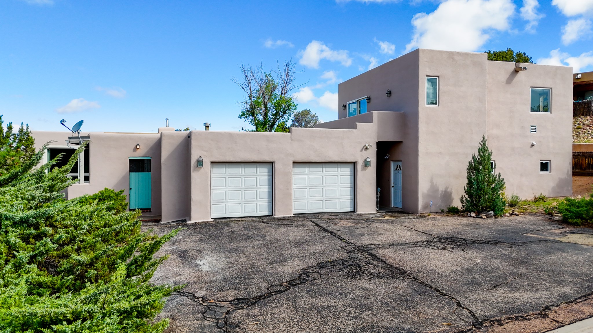 Discover the potential of this mid-century home paired with a contemporary studio, perched at the peak of the desirable Rosario Hill neighborhood and offering sweeping western views. The main house features potential mid-century charm, ready for a visionary owner to restore and personalize. The upper level includes a spacious living room with a cozy fireplace and expansive views, a formal dining area, a functional kitchen, two bedrooms, and a full bath. The lower level offers incredible versatility with two additional bedrooms, a full bath, a large family/living area with a fireplace, a private entrance, and dedicated parking--ideal for use as a rental unit or guest suite. Adding even more value is a separate studio building, offering two distinct studio spaces (approximately 600 sq. ft. each). The upper studio is bright and airy, with lovely views, while the lower studio includes a bath--perfect as an artist's retreat or as rental income from creative tenants.This unique property offers multiple income streams, artistic flexibility, and the opportunity to craft a dream home in one of the area's scenic neighborhoods 5 minutes from the Santa Fe Plaza.