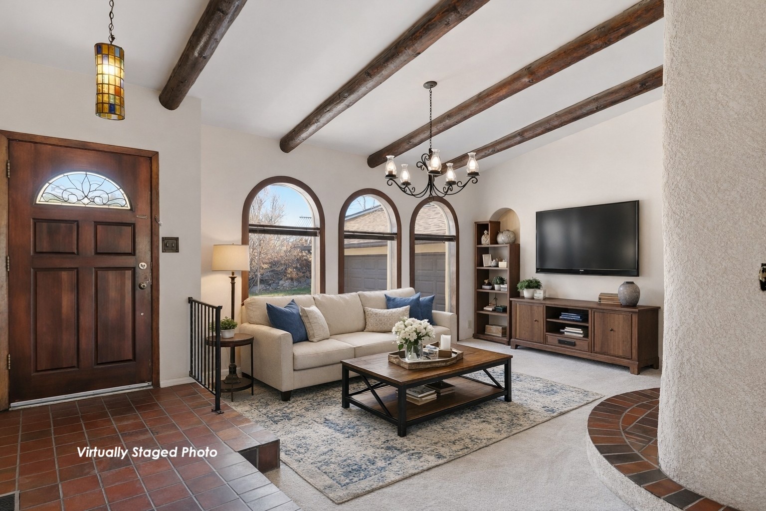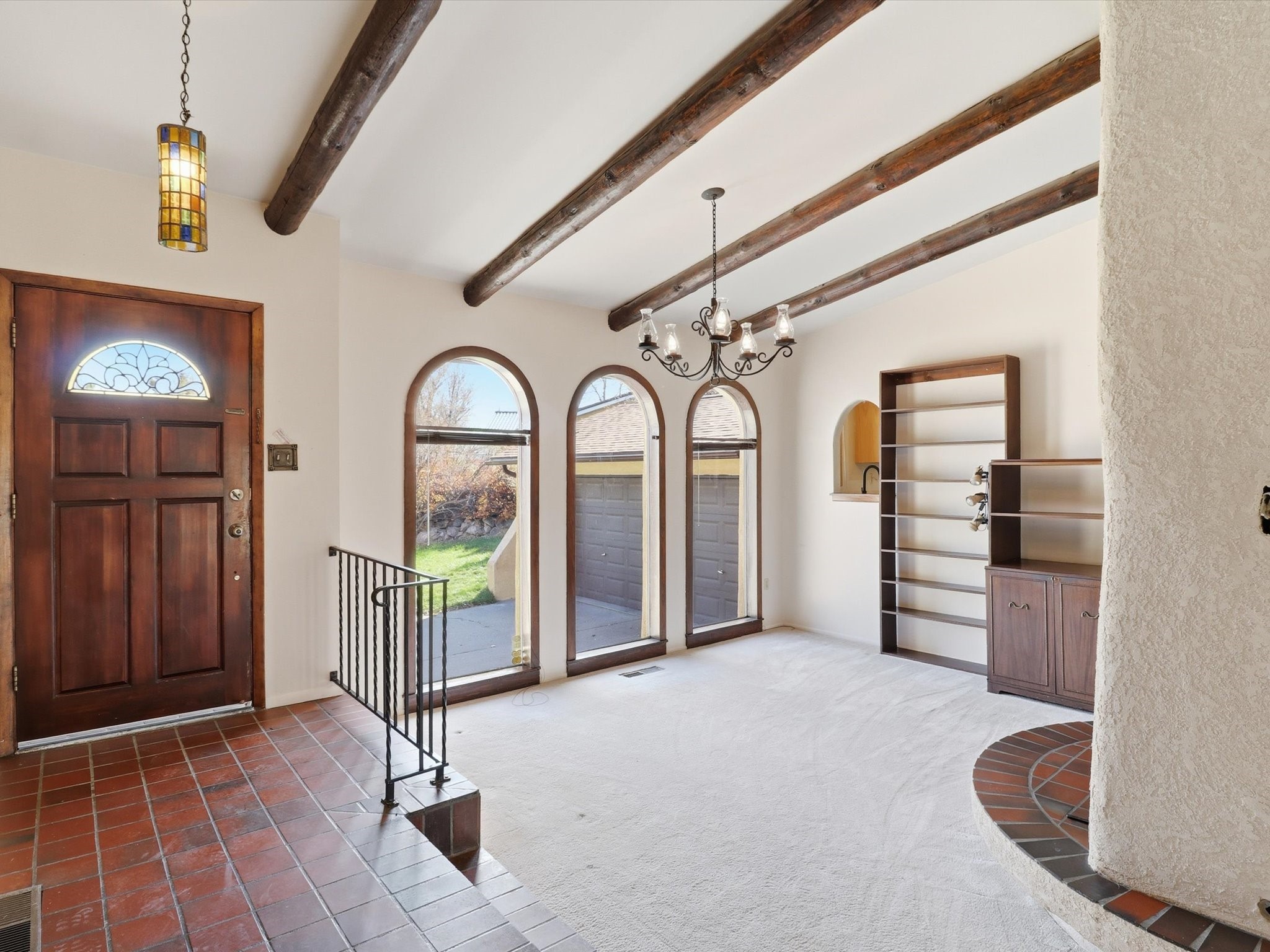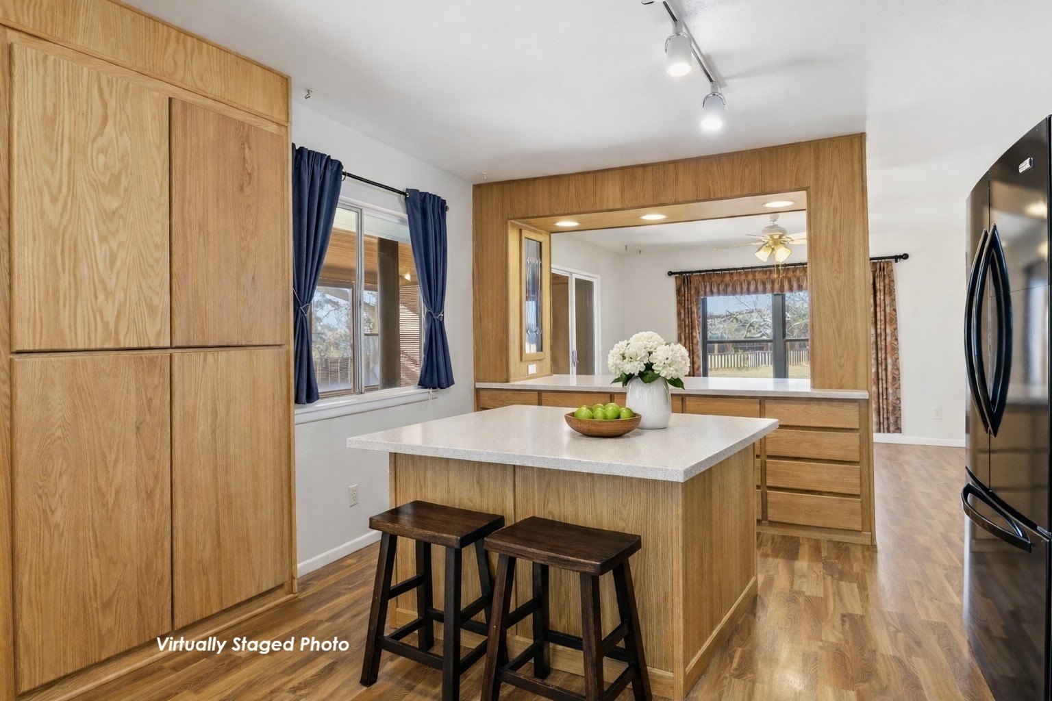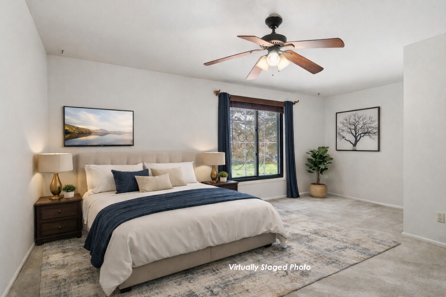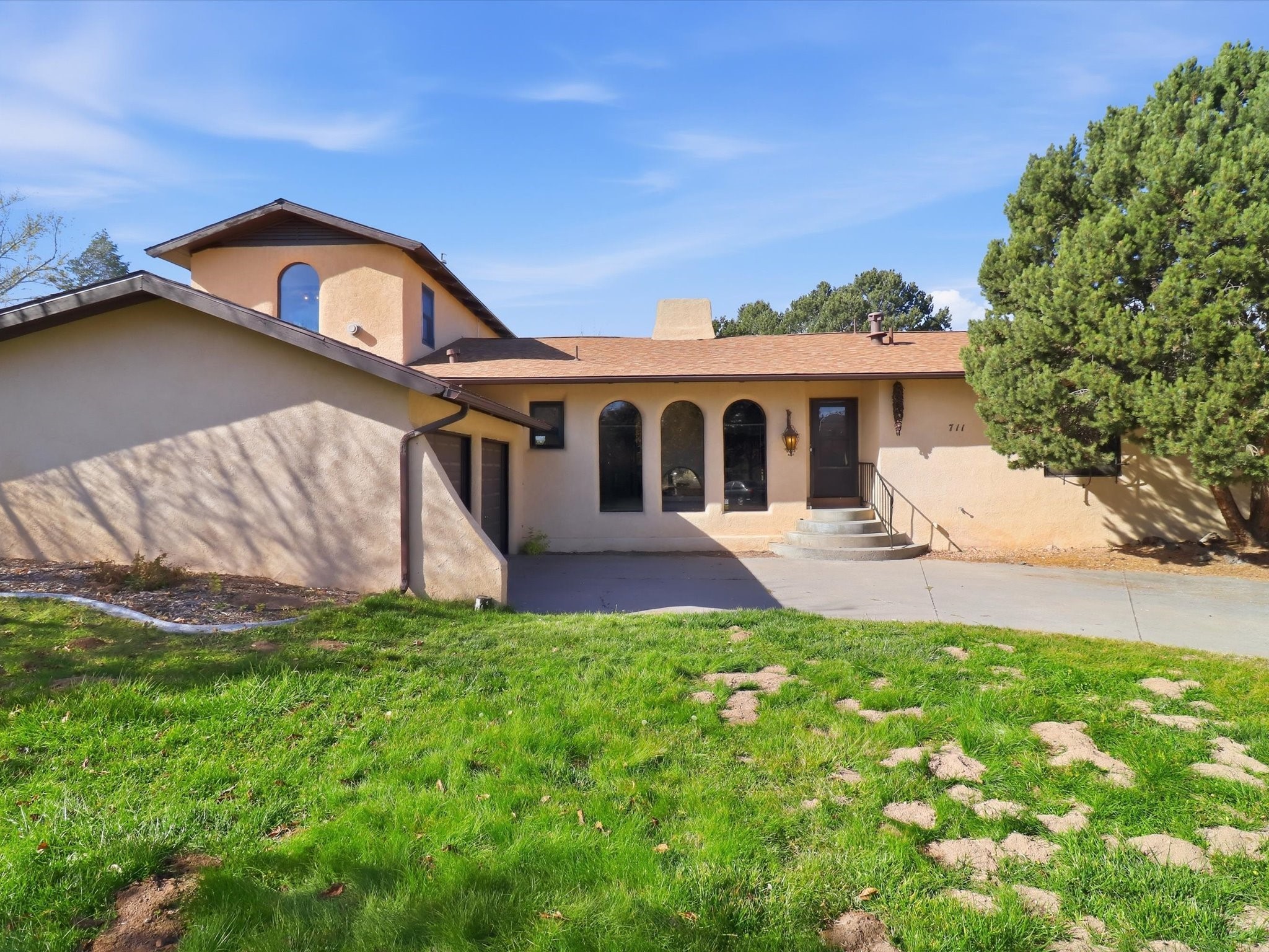 A home perfectly situated on a large lot in a quiet and desirable neighborhood in White Rock. Step inside to a spacious living area with a cozy fireplace, perfect for gatherings or relaxing evenings. Natural light floods through large windows, highlighting the open layout that seamlessly connects the living, kitchen, and dining areas. The kitchen features ample cabinets for storage, a breakfast counter, and a window overlooking the sunroom, making it an ideal space for cooking and entertaining.Adjacent to the kitchen, the sunroom with a fireplace provides a warm retreat and a central connection to the staircase leading to the second floor. Upstairs, an open loft space offers flexibility for a home office, lounge, or play area. The primary bedroom has a walk-in closet and an en-suite bathroom. This home also features a basement that provides valuable additional space, offering flexibility for storage, recreation, or future customization.Step outside to the spacious backyard, which offers plenty of room for gardens, gatherings, or future additions. Enjoy the benefits of fully paid-off solar panels--free and clear of any leases or financing--offering reduced utility costs from day one. Recent updates, including a new roof and fresh stucco, ensure peace of mind in this classic home. This property is a rare opportunity to enjoy space, comfort, and a peaceful lifestyle in White Rock. Don't miss your chance to make 711 Kris Ct your new home!