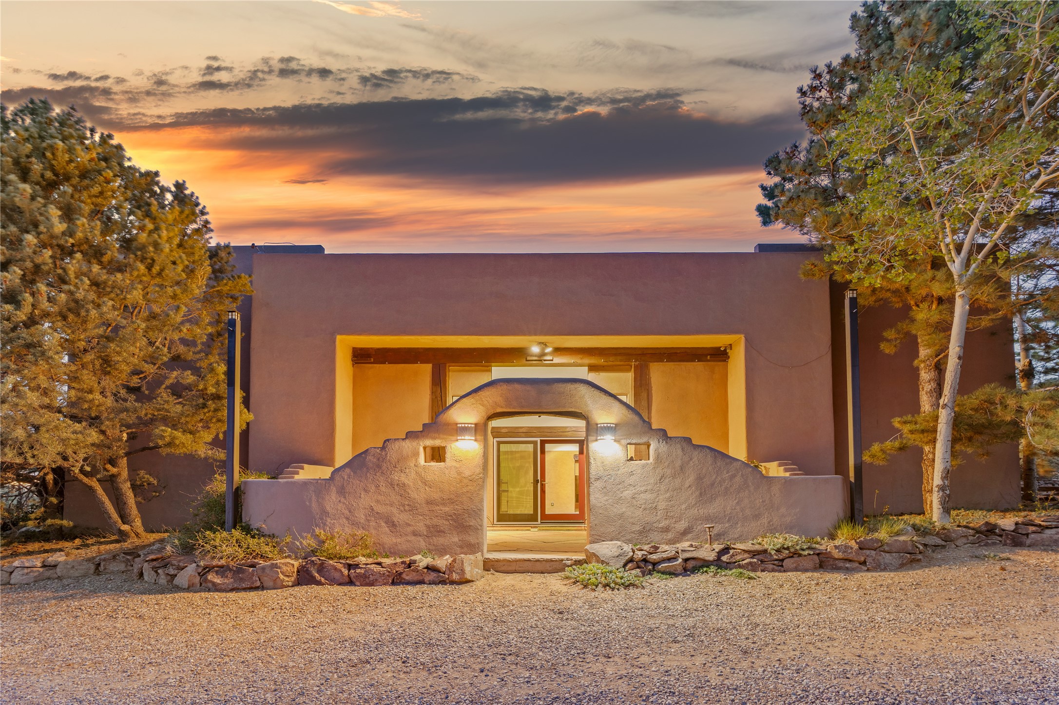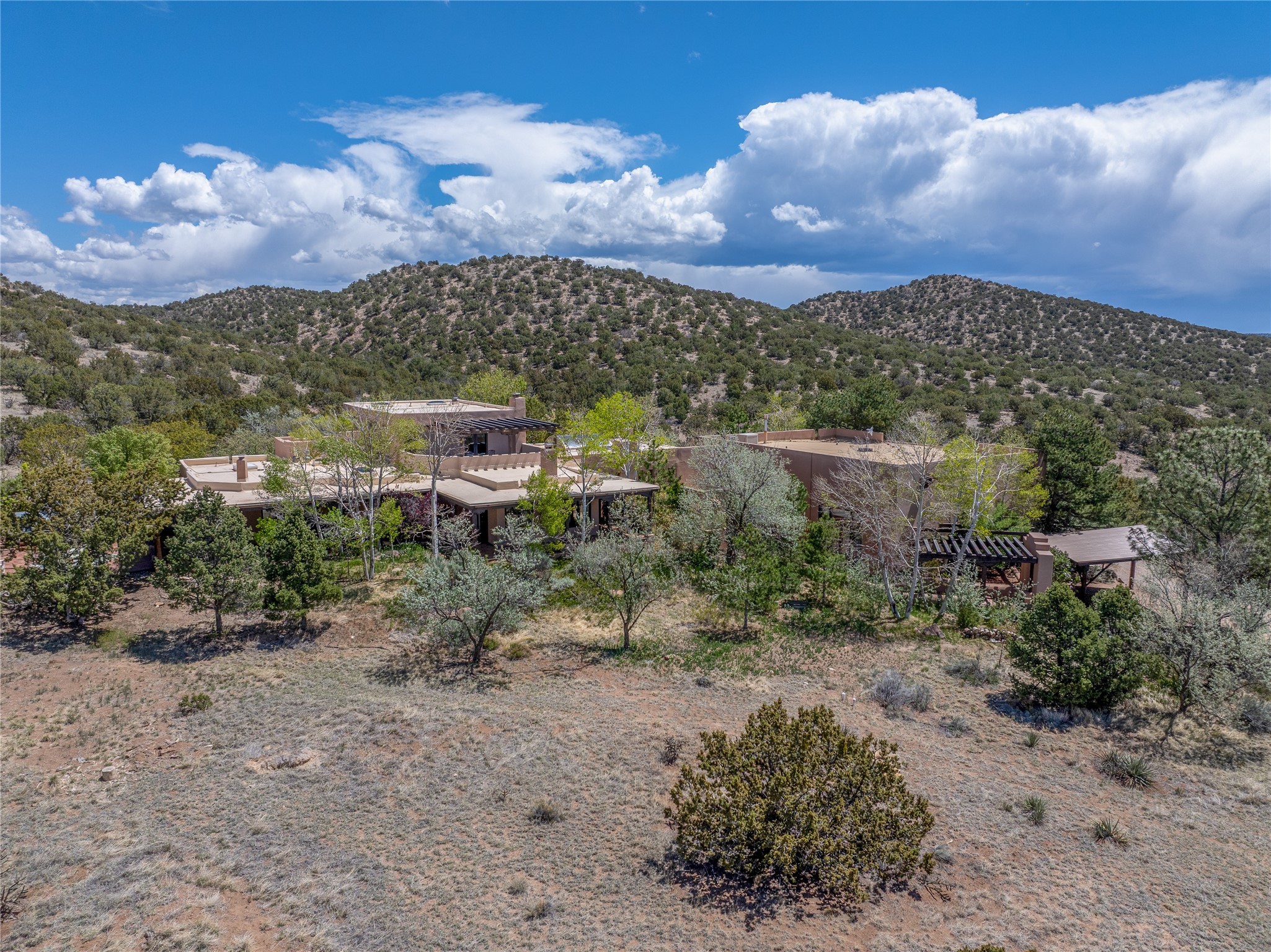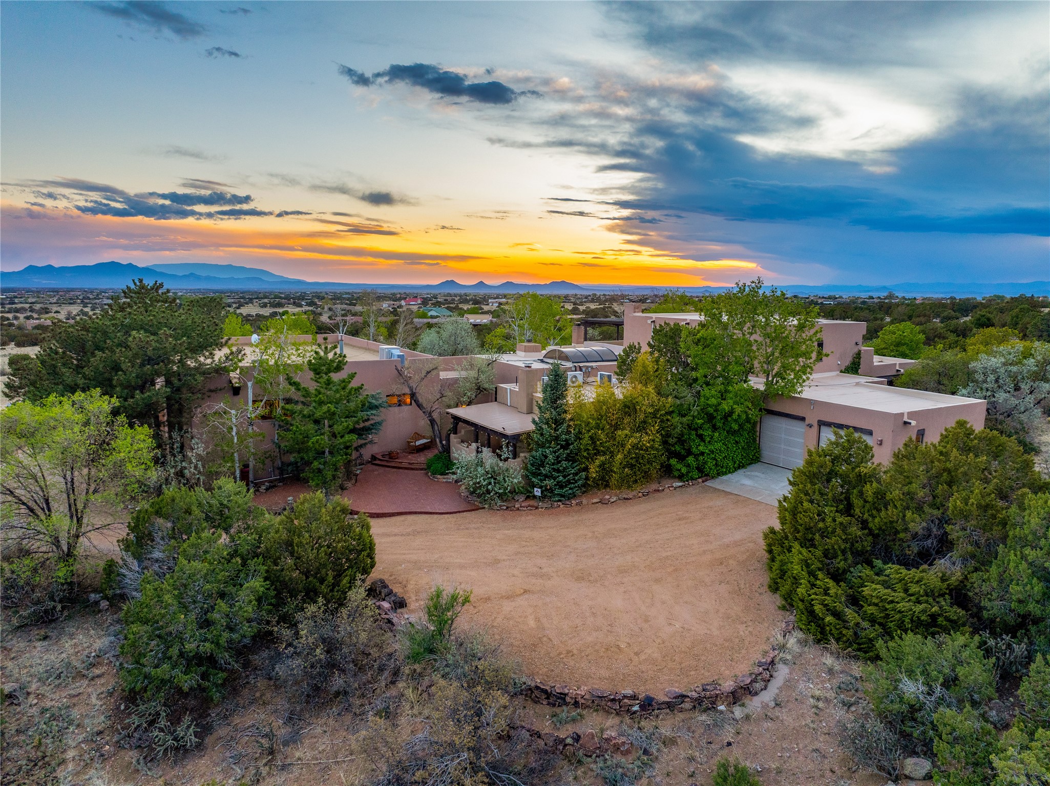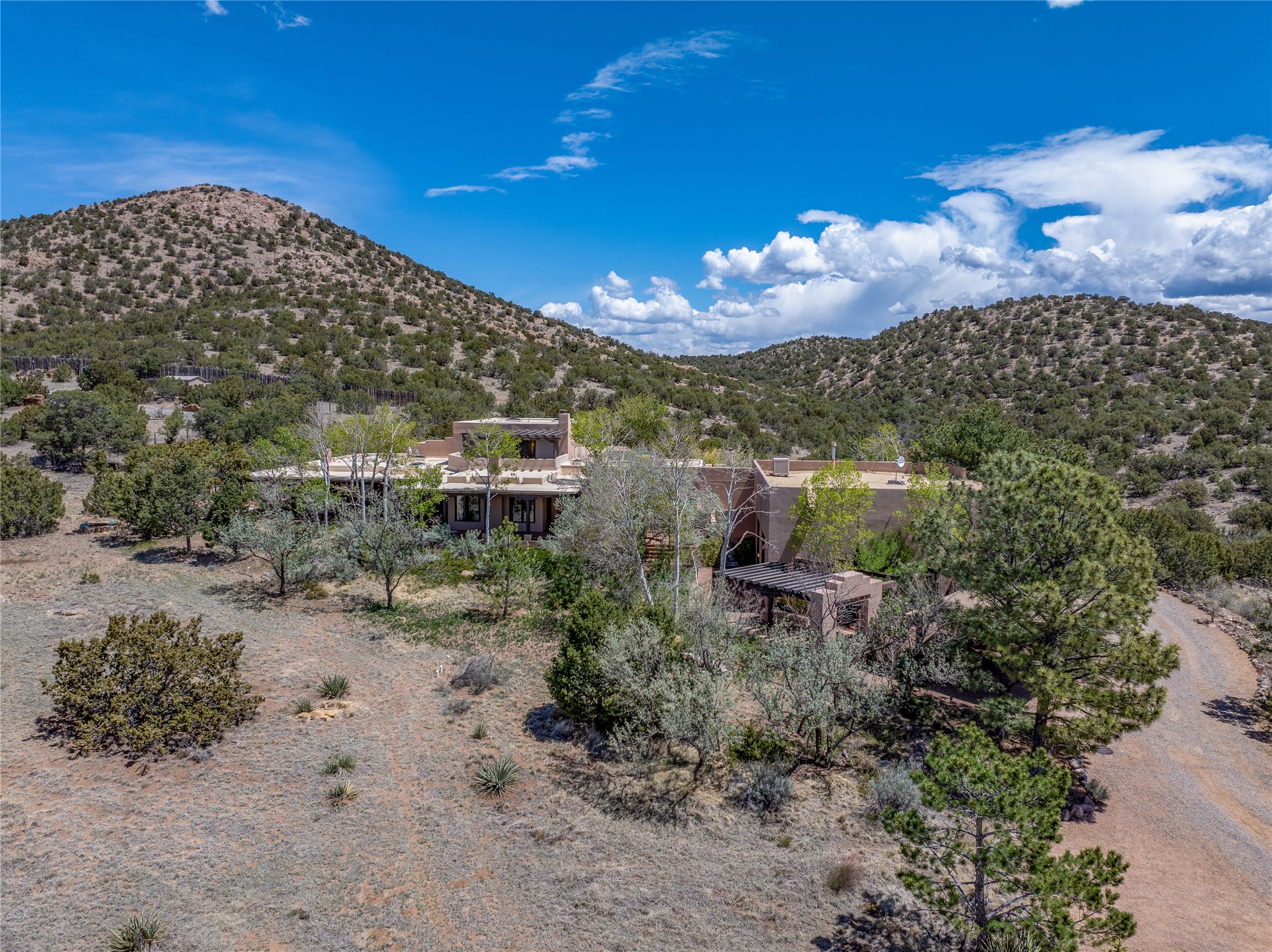 Incredible, rare, and versatile live/work opportunity off HWY 285.Situated on 11.07 acres, this unique property blends Santa Fe's old-world charm with modern style, offering a 5,481 sq. ft. main house and a 3539 sq. ft. guest house/studio. There are 4 large bedrooms, 2 full bathrooms, 3 3/4 bathrooms and 4 half-baths on the property. A large 2-car garage boosts additional space for storage and a small workshop area. Bordering the 4,000-acre Eldorado Preserve, there is also a 2,400 sq. ft. Morton barn with four oversized stalls. The remodeled main house features a European-inspired design with a gourmet kitchen, designer fixtures, and multiple Kiva fireplaces. The guest house/studio area, accessible via several entrances, includes a bright gallery space, a loft, 2 offices, and a reception space with 16-foot ceiling heights. Outdoor living areas boast covered portals, patios, and a moss rock pond, creating a serene private retreat close to shopping and amenities.
