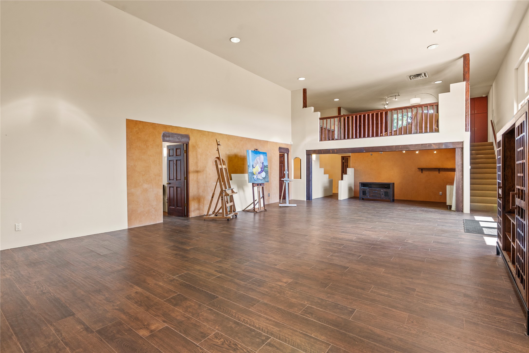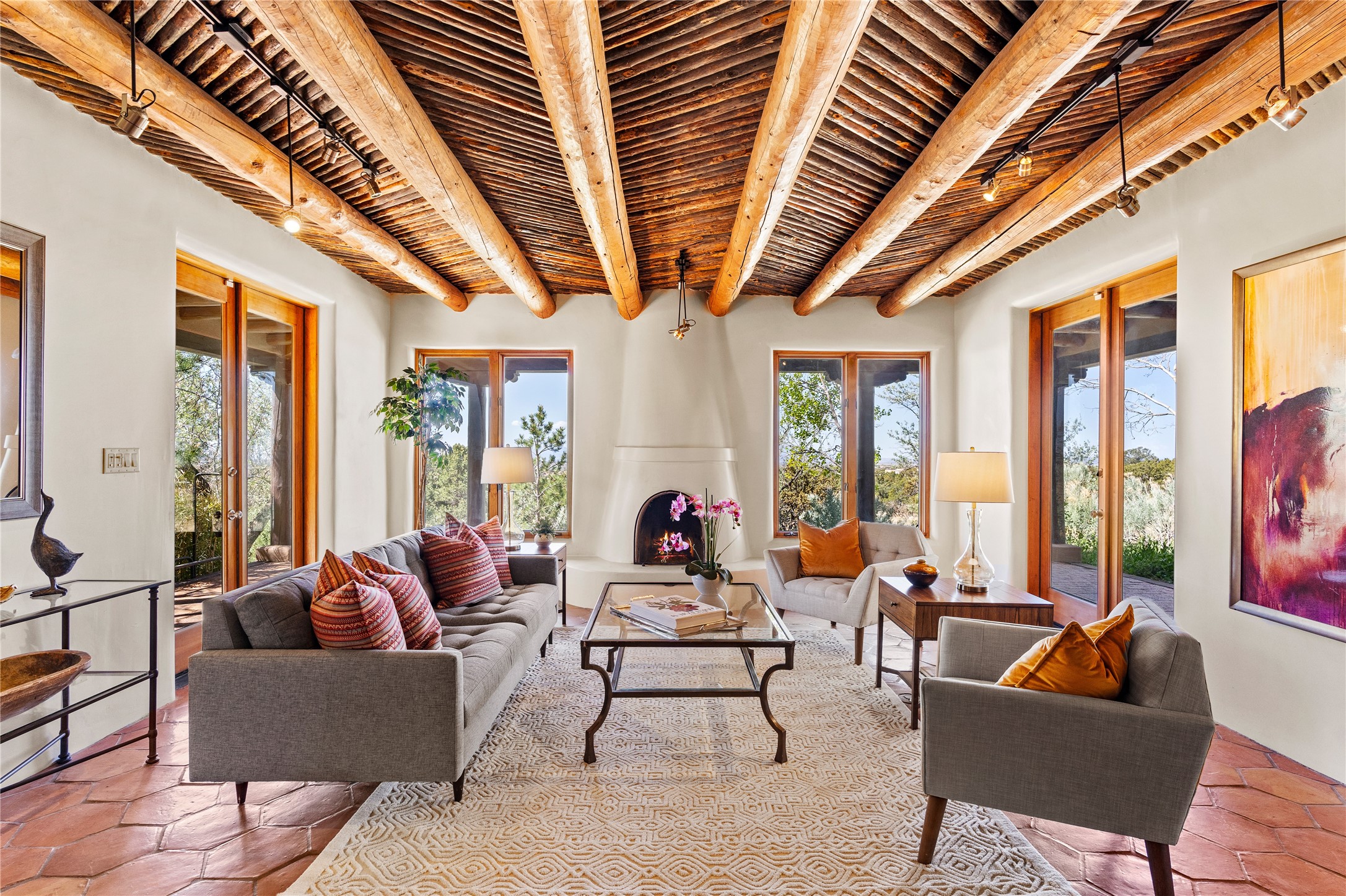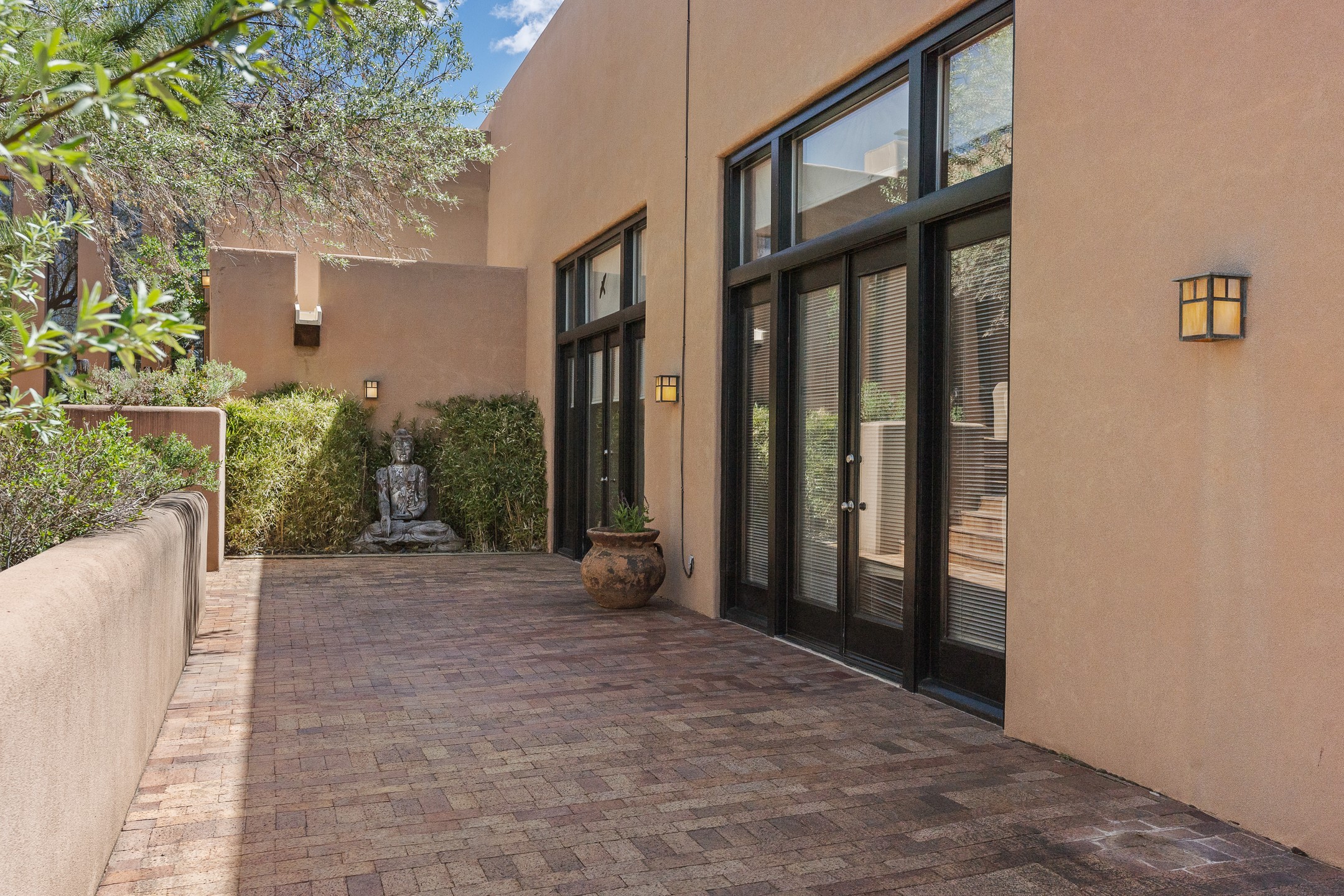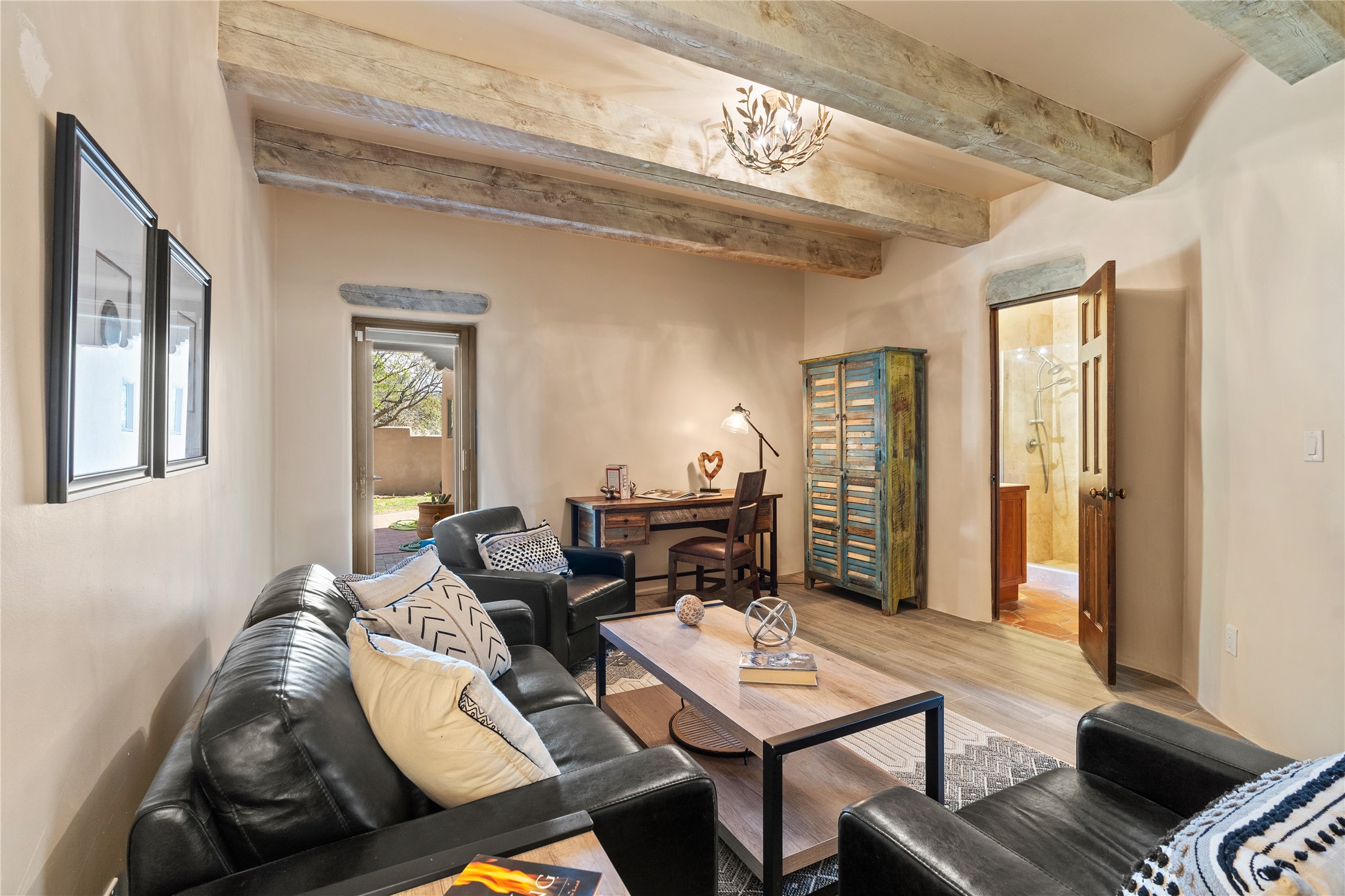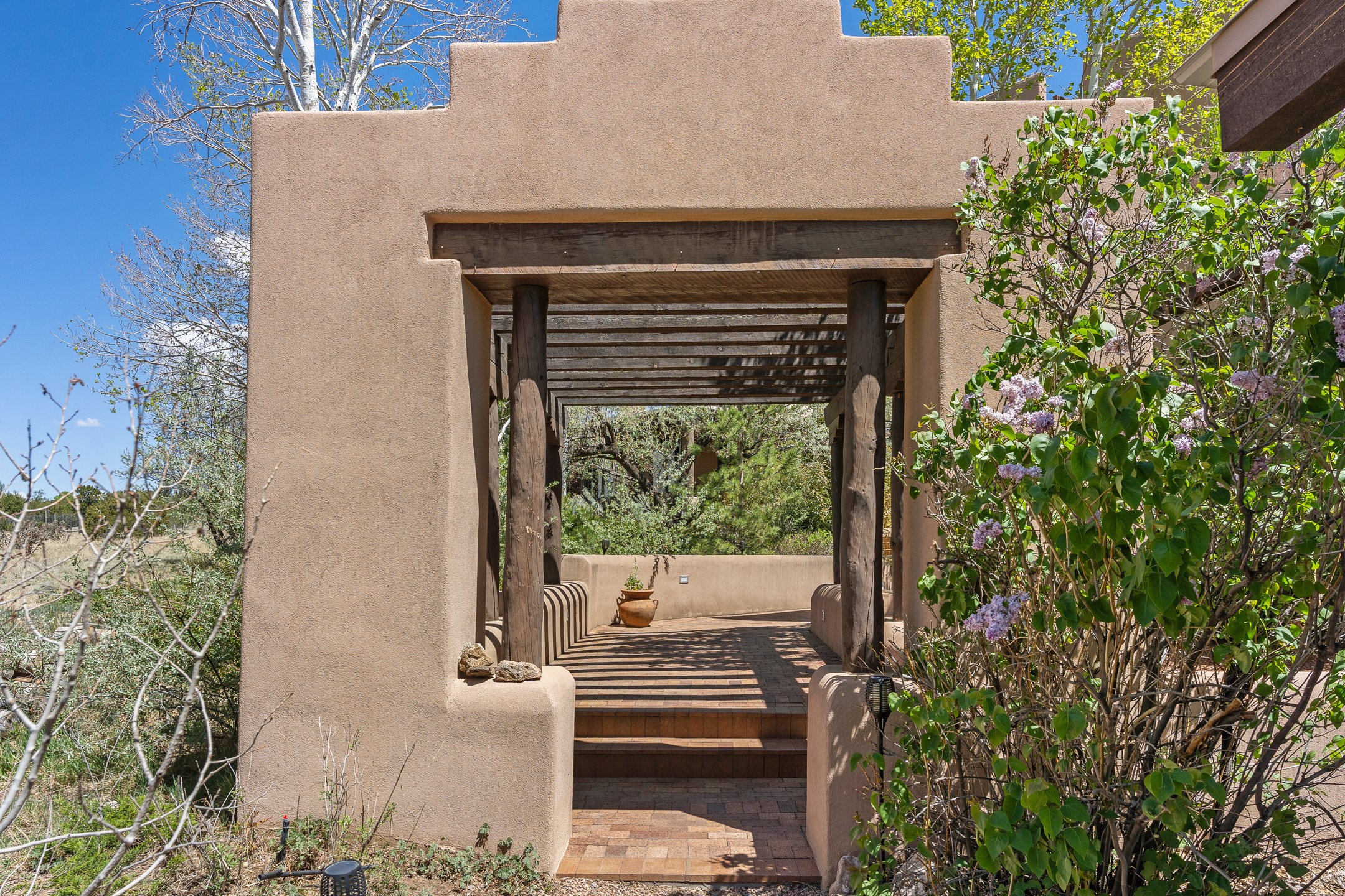 Incredible, rare, and versatile live/work opportunity off HWY 285.Situated on 11.07 acres, this unique property blends Santa Fe's old-world charm with modern style, offering a 5,481 sq. ft. main house and a 3539 sq. ft. guest house/studio. There are 4 large bedrooms, 2 full bathrooms, 3 3/4 bathrooms and 4 half-baths on the property. A large 2-car garage boosts additional space for storage and a small workshop area. Bordering the 4,000-acre Eldorado Preserve, there is also a 2,400 sq. ft. Morton barn with four oversized stalls. The remodeled main house features a European-inspired design with a gourmet kitchen, designer fixtures, and multiple Kiva fireplaces. The guest house/studio area, accessible via several entrances, includes a bright gallery space, a loft, 2 offices, and a reception space with 16-foot ceiling heights. Outdoor living areas boast covered portals, patios, and a moss rock pond, creating a serene private retreat close to shopping and amenities.