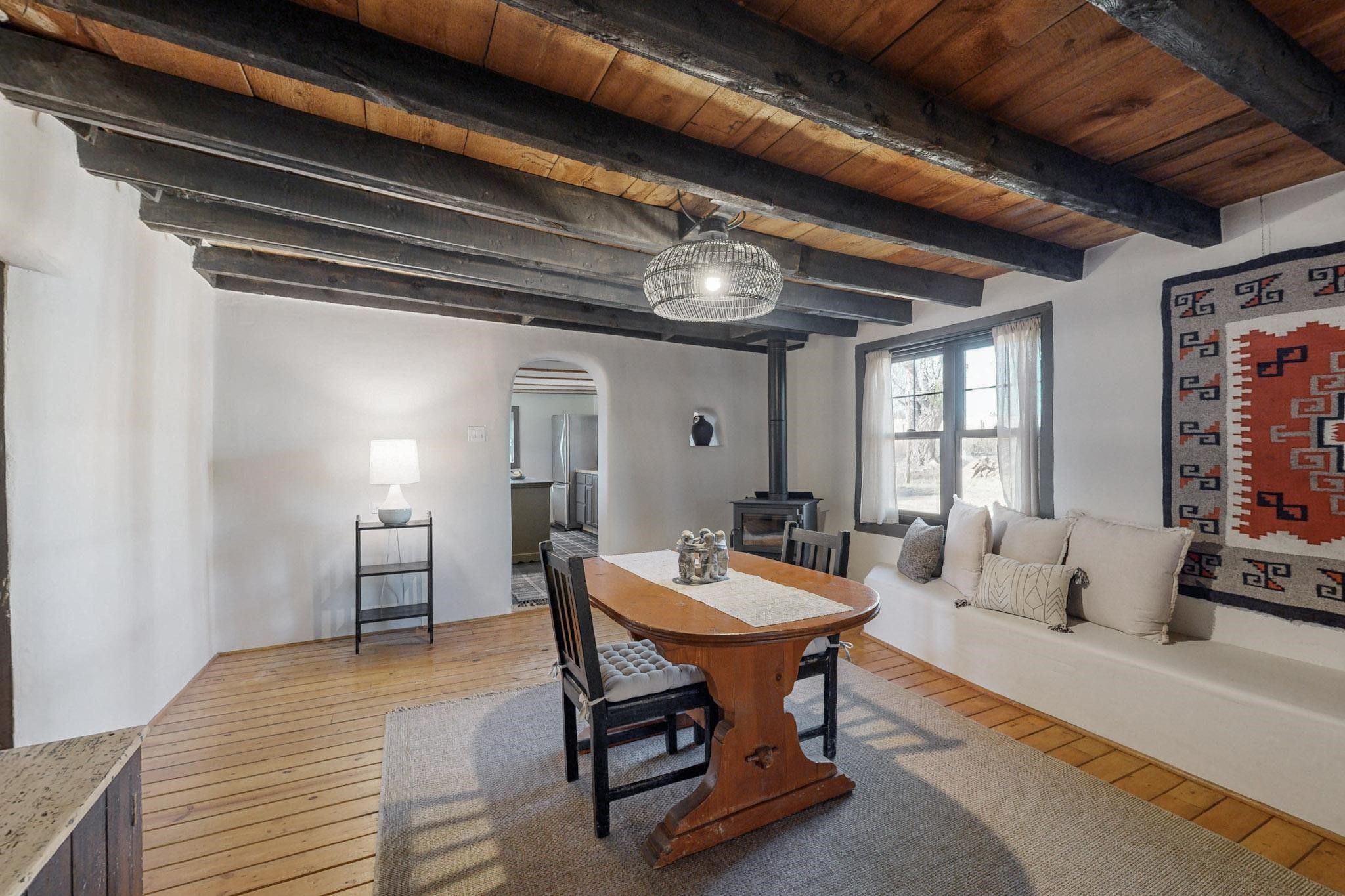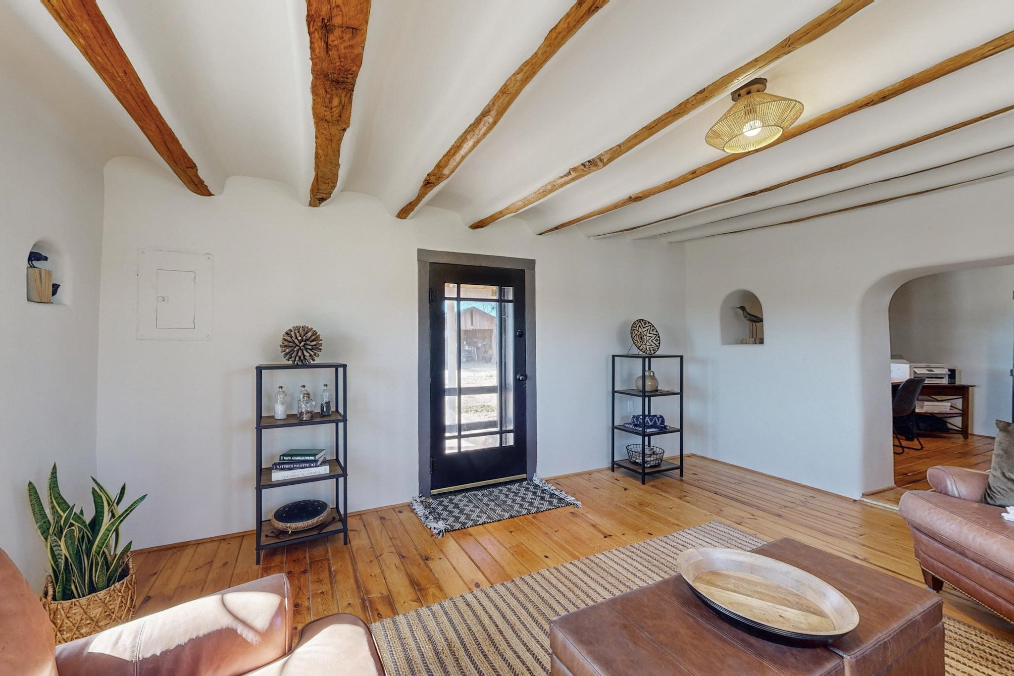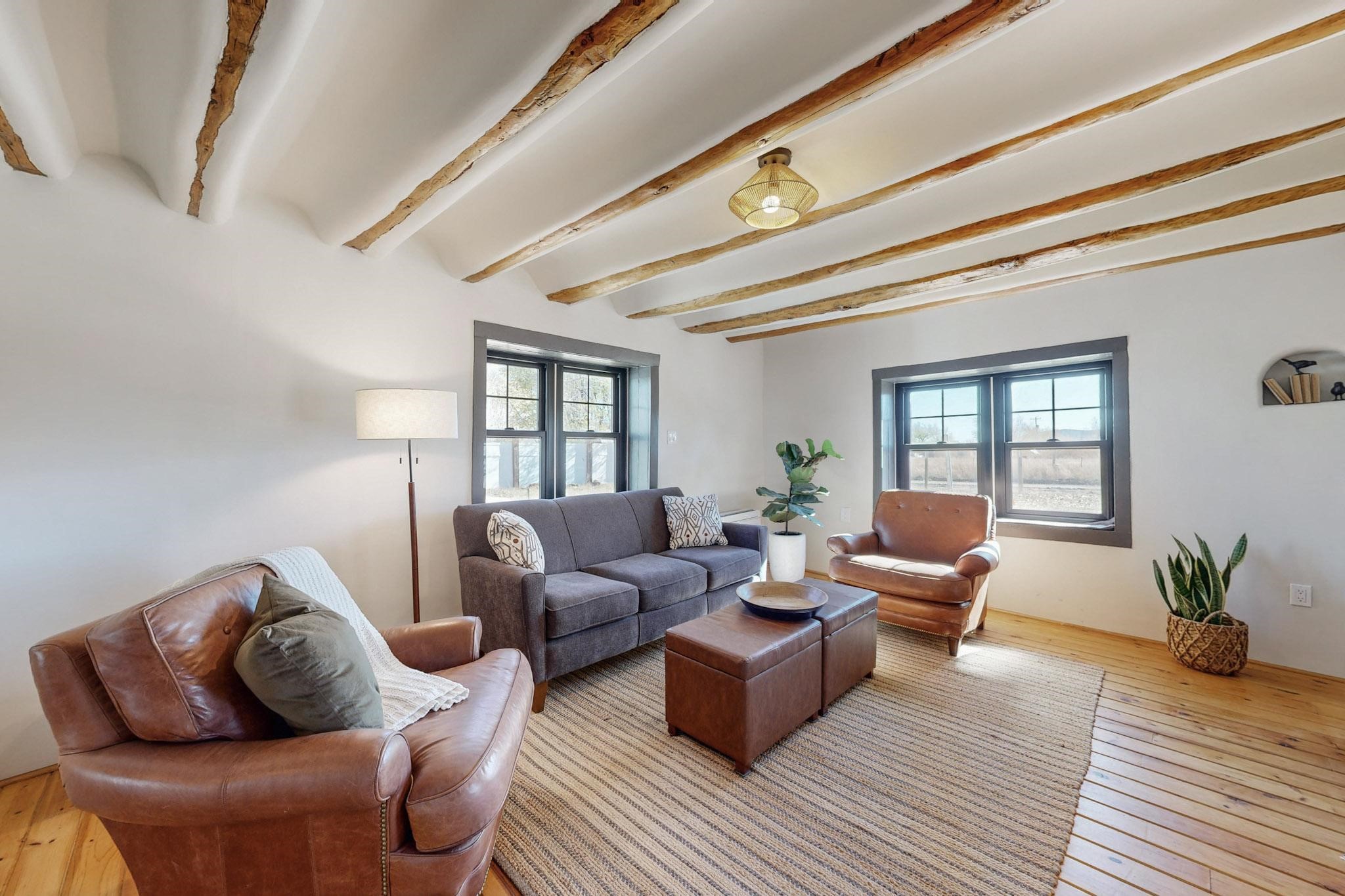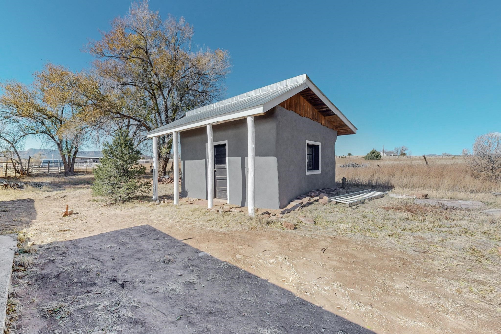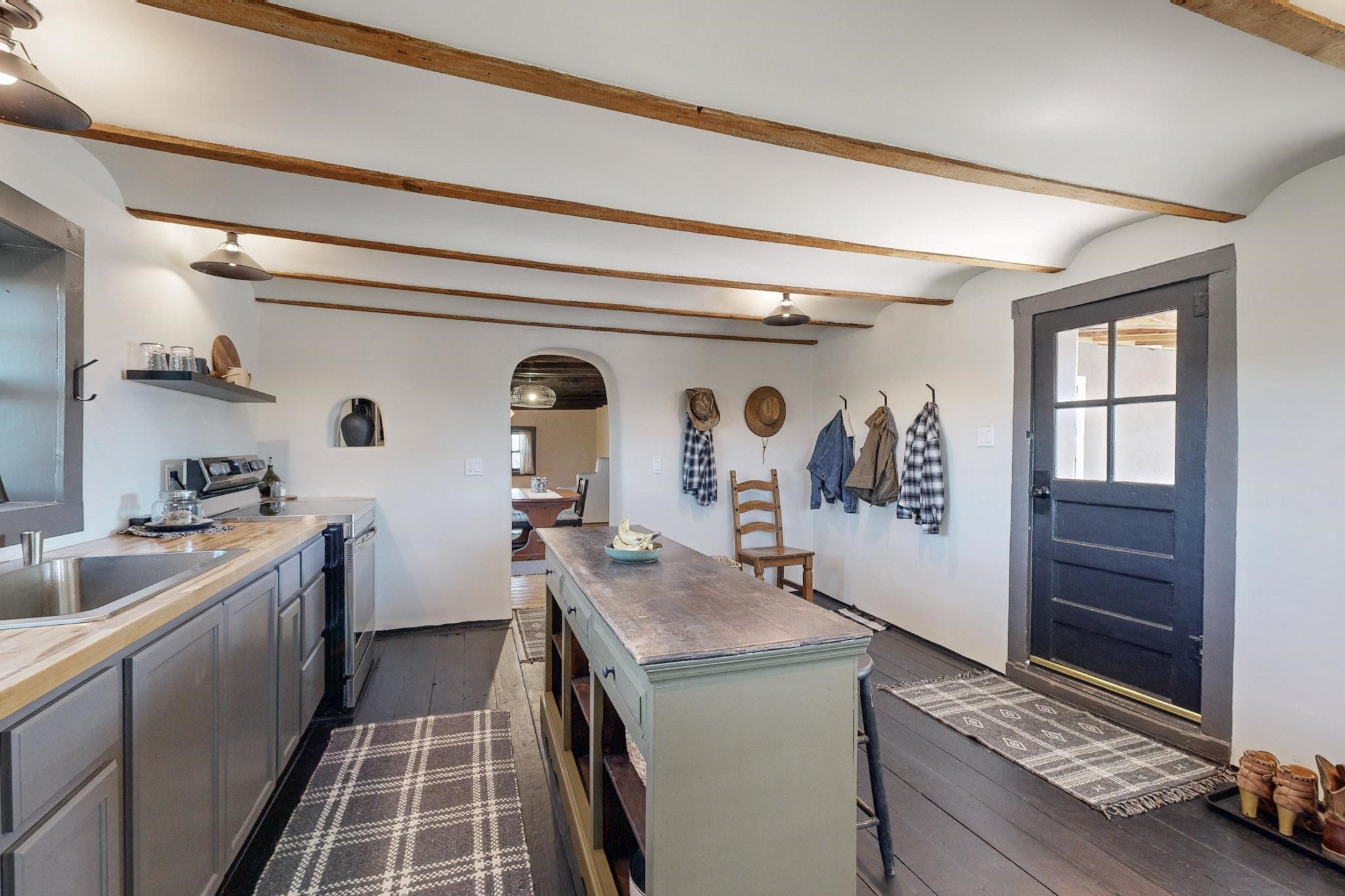 Welcome to cozy country living! You will fall in love with this lovingly restored one of a kind authentic adobe home nicely situated on 1.30 acres nestled in the beautiful Pecos River Valley. This home boasts many modern updates while maintaining its simplistic charm. Some of the many updates include: New Anderson windows, Mitsubishi mini-split heating and cooling with updated electrical service, new stainless steel appliances, water heater, washer/dryer and fiber optic wifi connection. The updated kitchen is adorned with modern slate gray cabinets, rich wood butcher-block countertops, and contemporary open shelving. The floor plan of this home allows for versatility of space which offers the possibility of an office, second bedroom, or multiple living areas. Every room has a modern Southwest feeling with beautiful vigas, authentic brick or wood planked flooring, saltillo tiles, and authentic 12 inch thick adobe walls. Soak away the night in the deep soaker tub or wrap up in a blanket on the built-in banco next to the new wood burning stove. Outside, there is a storage shed and animals have room to run on the 1.30 acres. The undeveloped one room studio currently provides storage or has the possibility of a future casita, studio, or guest bedroom. Located in the charming village of Ribera, and conveniently located just 1.5 miles off interstate I-25, 30 minutes from Santa Fe, and 15 minutes from Las Vegas, Enjoy quiet country living with a quick commute to shopping and historic sites.