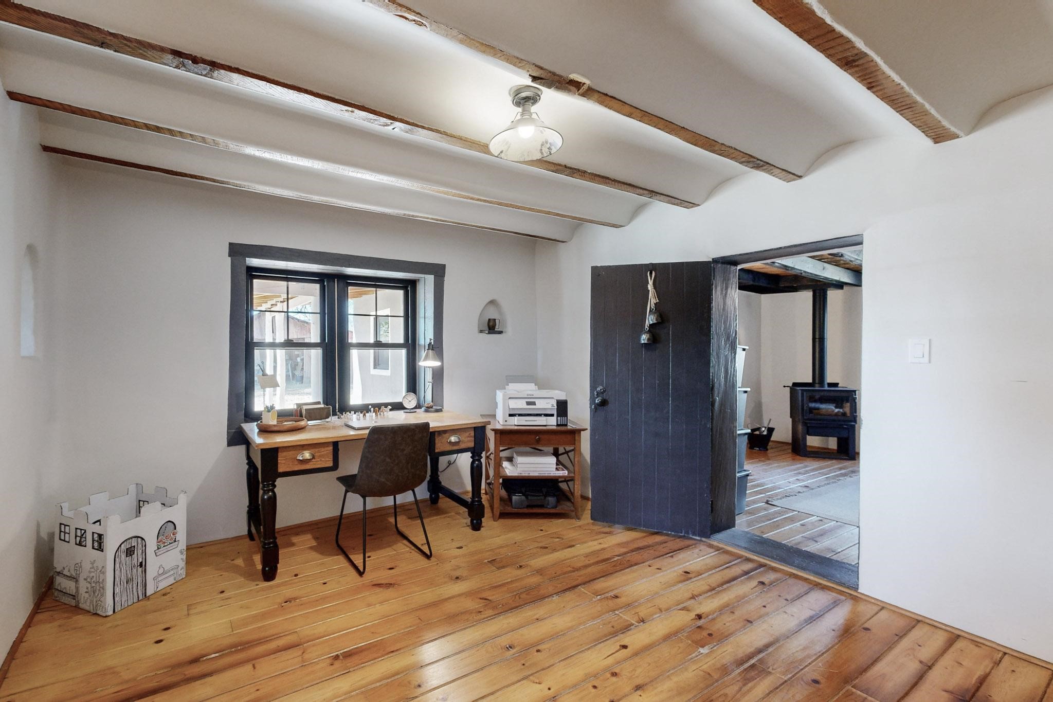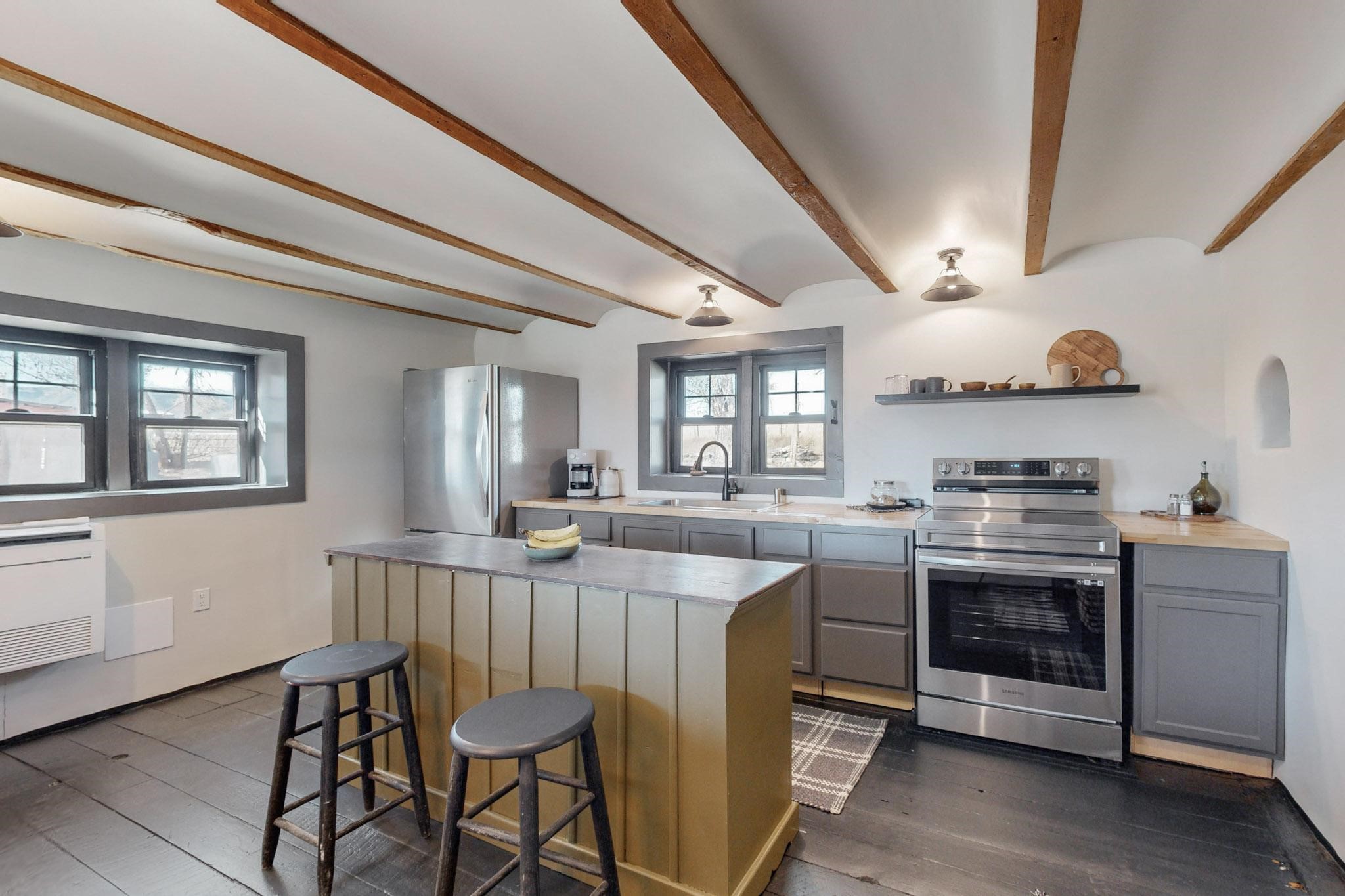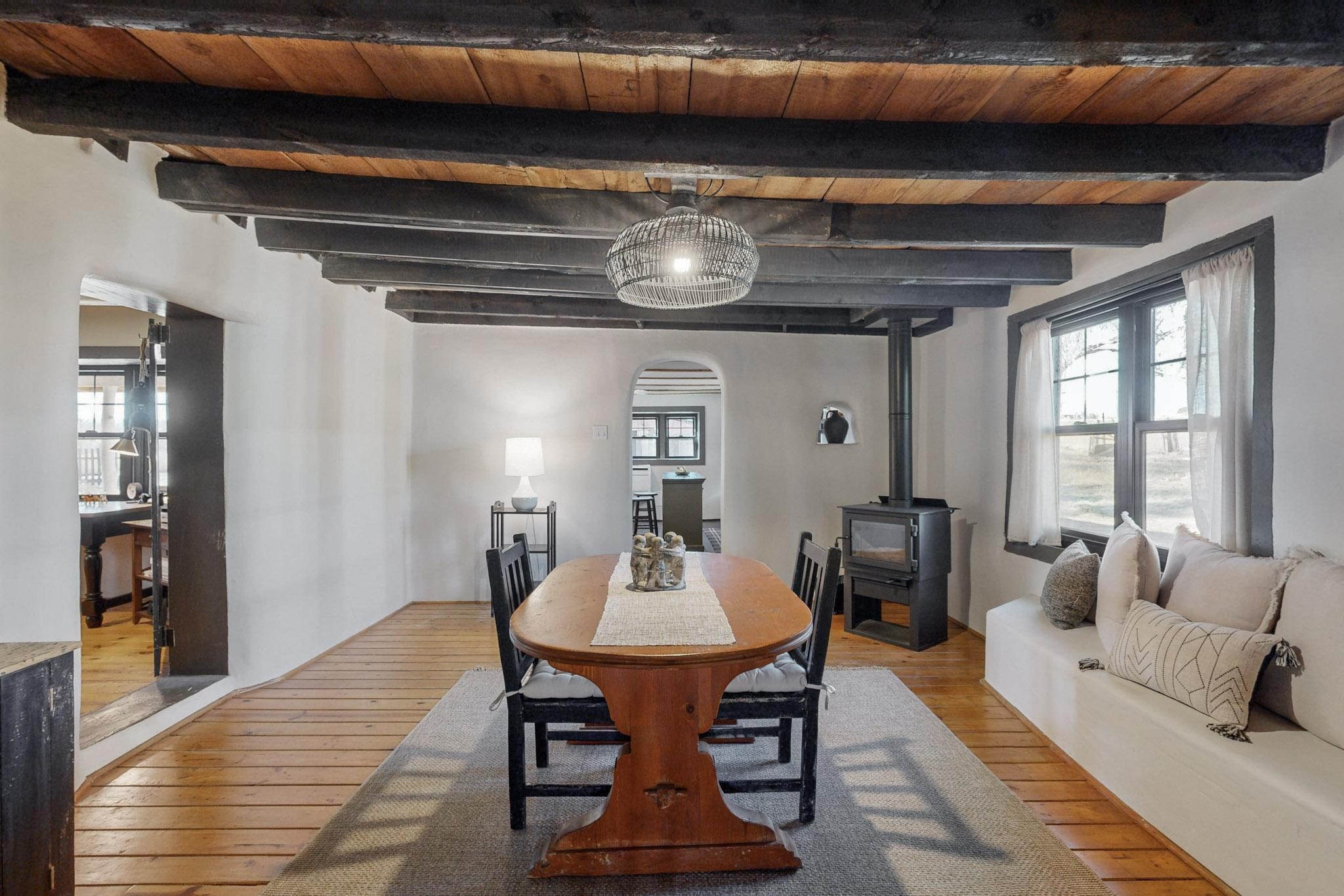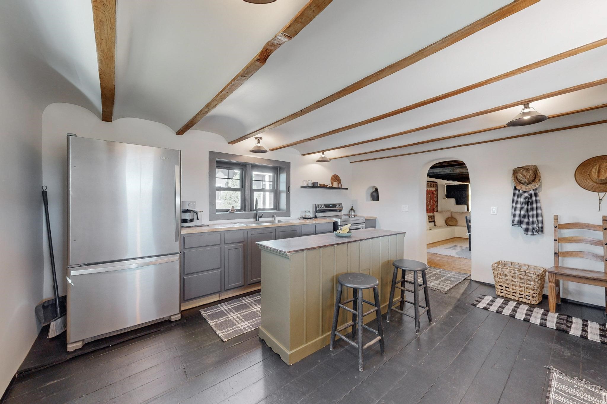 Welcome to cozy country living! You will fall in love with this lovingly restored one of a kind authentic adobe home nicely situated on 1.30 acres nestled in the beautiful Pecos River Valley. This home boasts many modern updates while maintaining its simplistic charm. Some of the many updates include: New Anderson windows, Mitsubishi mini-split heating and cooling with updated electrical service, new stainless steel appliances, water heater, washer/dryer and fiber optic wifi connection. The updated kitchen is adorned with modern slate gray cabinets, rich wood butcher-block countertops, and contemporary open shelving. The floor plan of this home allows for versatility of space which offers the possibility of an office, second bedroom, or multiple living areas. Every room has a modern Southwest feeling with beautiful vigas, authentic brick or wood planked flooring, saltillo tiles, and authentic 12 inch thick adobe walls. Soak away the night in the deep soaker tub or wrap up in a blanket on the built-in banco next to the new wood burning stove. Outside, there is a storage shed and animals have room to run on the 1.30 acres. The undeveloped one room studio currently provides storage or has the possibility of a future casita, studio, or guest bedroom. Located in the charming village of Ribera, and conveniently located just 1.5 miles off interstate I-25, 30 minutes from Santa Fe, and 15 minutes from Las Vegas, Enjoy quiet country living with a quick commute to shopping and historic sites.