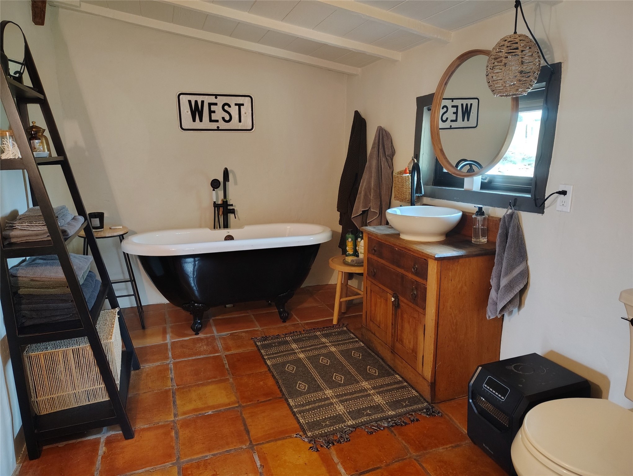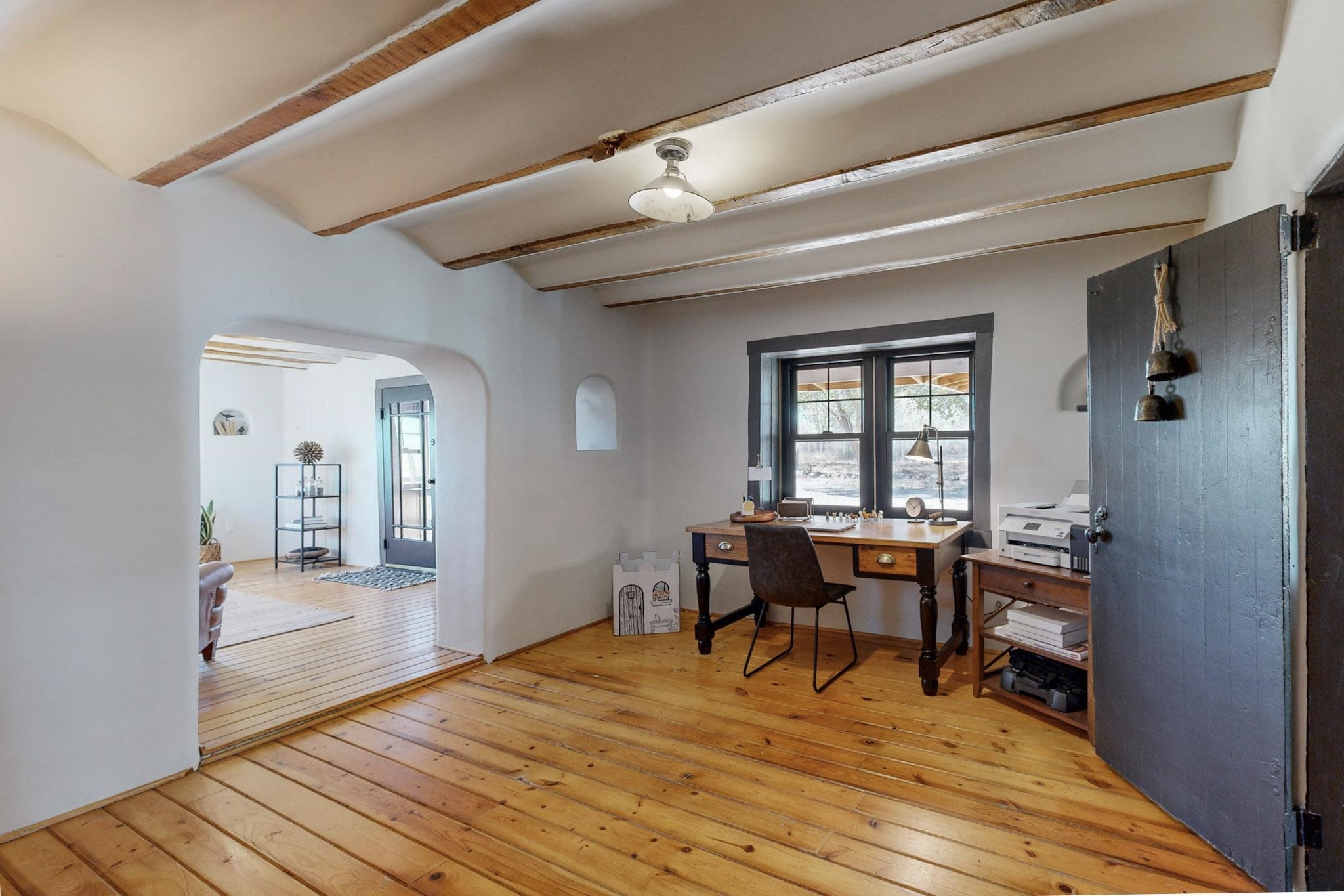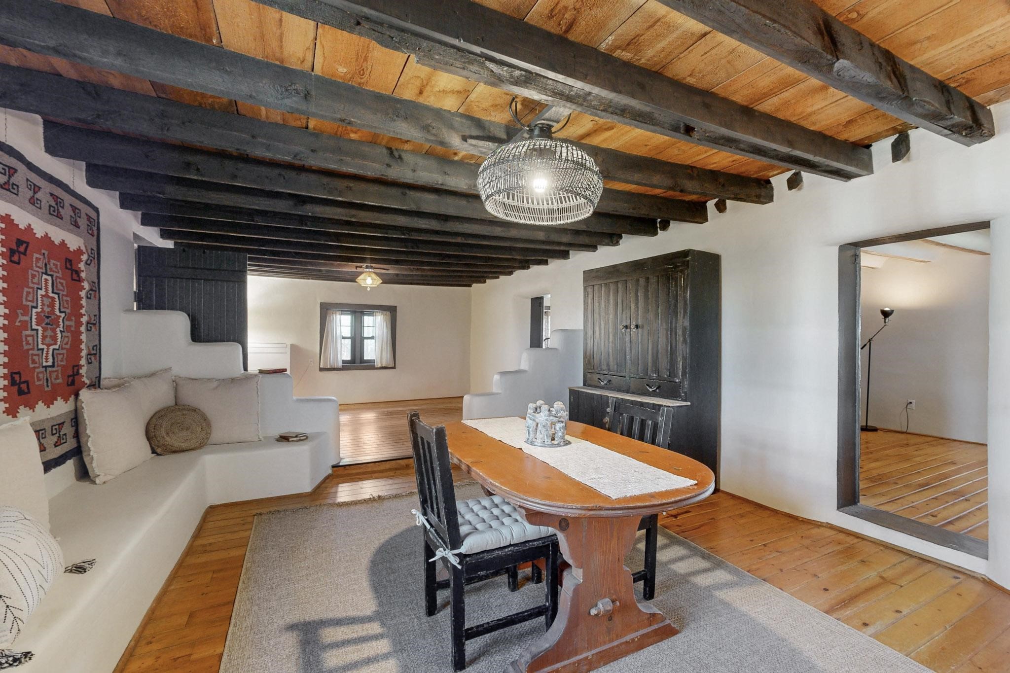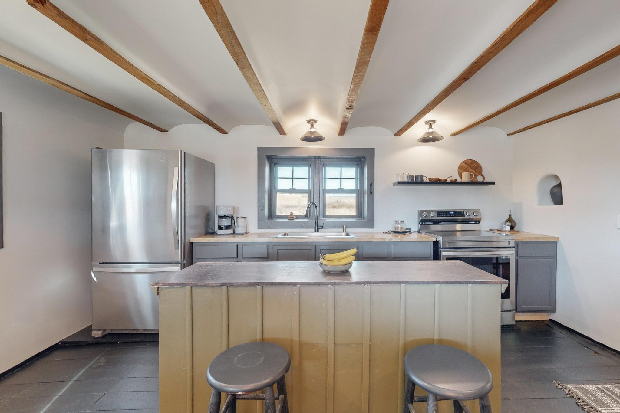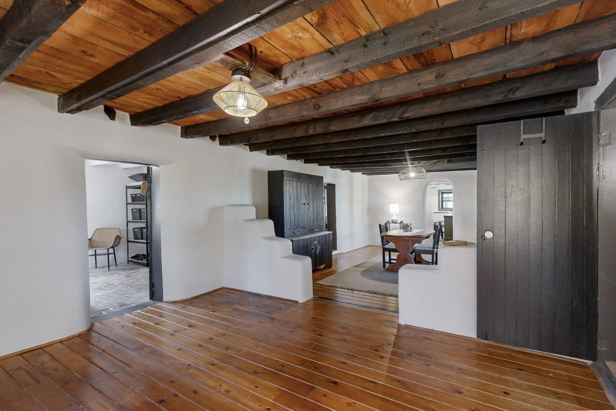 Welcome to cozy country living! You will fall in love with this lovingly restored one of a kind authentic adobe home nicely situated on 1.30 acres nestled in the beautiful Pecos River Valley. This home boasts many modern updates while maintaining its simplistic charm. Some of the many updates include: New Anderson windows, Mitsubishi mini-split heating and cooling with updated electrical service, new stainless steel appliances, water heater, washer/dryer and fiber optic wifi connection. The updated kitchen is adorned with modern slate gray cabinets, rich wood butcher-block countertops, and contemporary open shelving. The floor plan of this home allows for versatility of space which offers the possibility of an office, second bedroom, or multiple living areas. Every room has a modern Southwest feeling with beautiful vigas, authentic brick or wood planked flooring, saltillo tiles, and authentic 12 inch thick adobe walls. Soak away the night in the deep soaker tub or wrap up in a blanket on the built-in banco next to the new wood burning stove. Outside, there is a storage shed and animals have room to run on the 1.30 acres. The undeveloped one room studio currently provides storage or has the possibility of a future casita, studio, or guest bedroom. Located in the charming village of Ribera, and conveniently located just 1.5 miles off interstate I-25, 30 minutes from Santa Fe, and 15 minutes from Las Vegas, Enjoy quiet country living with a quick commute to shopping and historic sites.