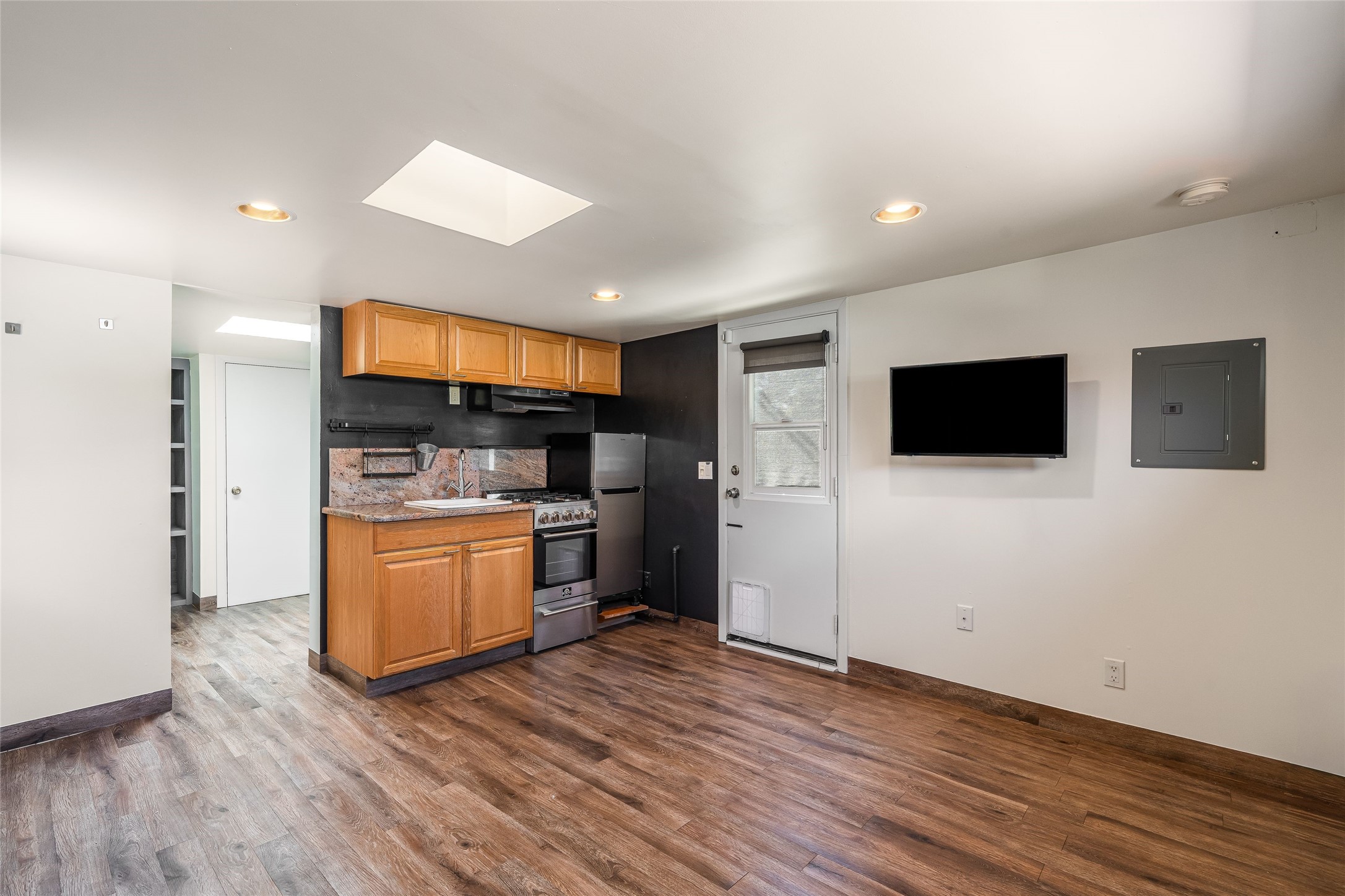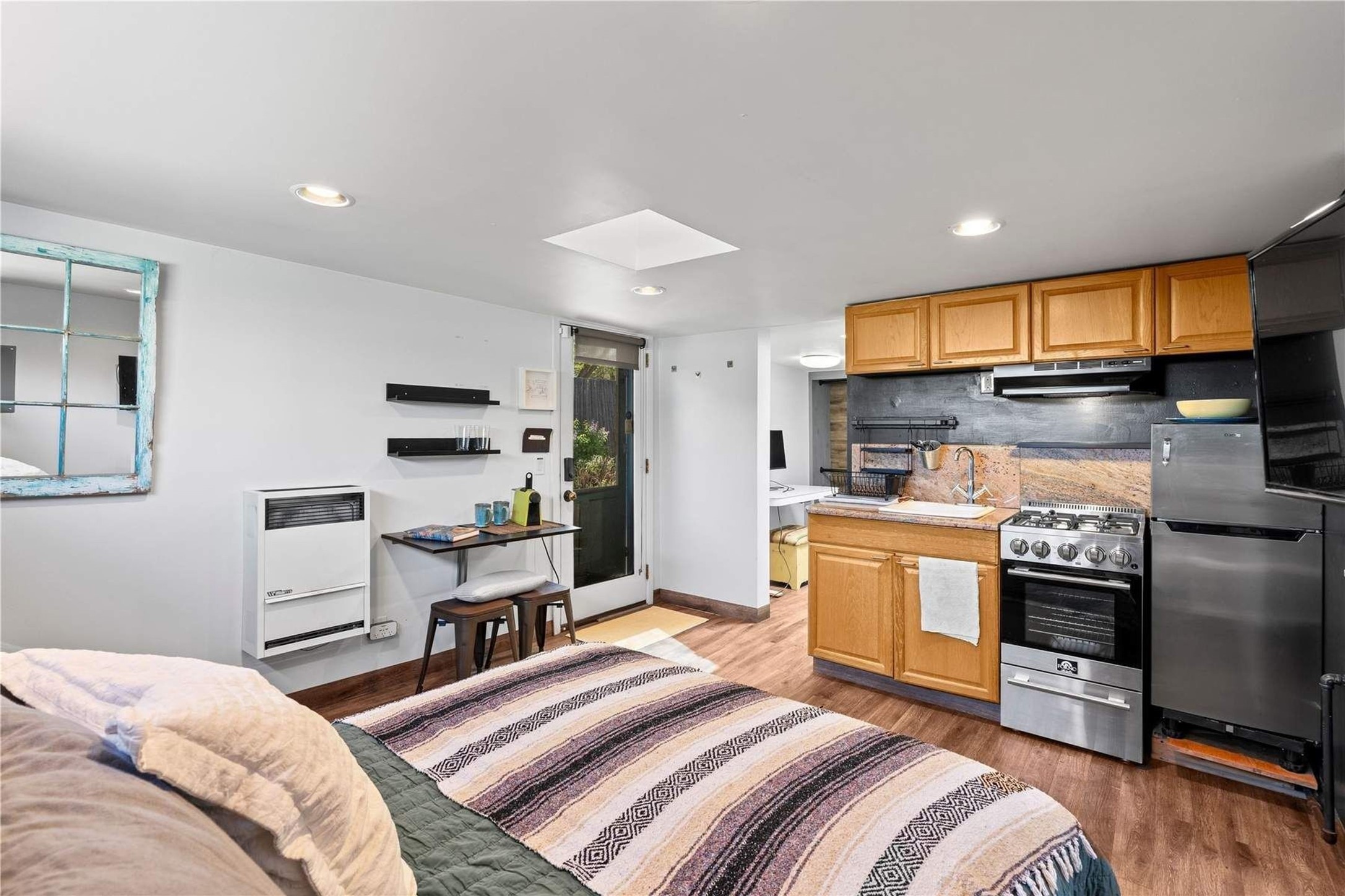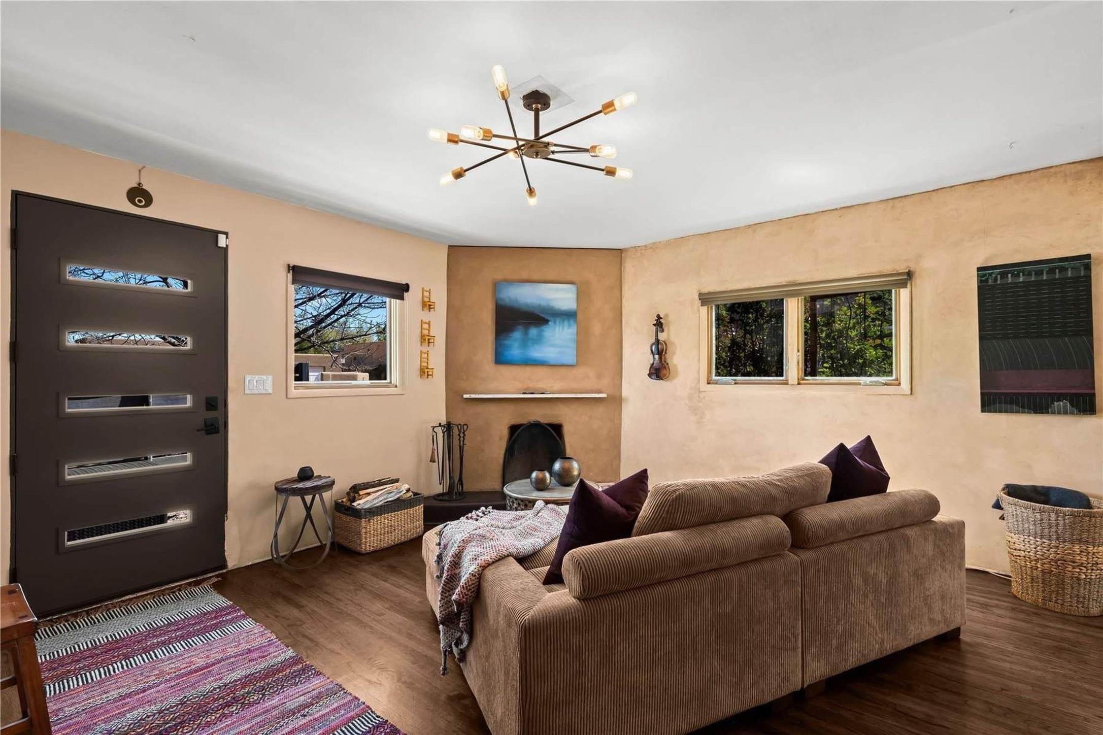 In the charming and centrally located Don Diego neighborhood, 622 Calle Grillo is a rare property with great character and flexibility. A two-bedroom main house and a detached one-bedroom casita sit opposite each other on a 0.15-acre lot, each with their own private and ample outdoor spaces. In an age of uniform whitebox houses, this classic build and styled home is refreshing for its connection to Santa Fe's puebloan architectural roots. Lovingly owned and updated, the property has modern comforts and details wrapped in the warm colors and touches complimentary of its adobe and block construction. Exposed adobe and faux painted walls are the backdrop for an open living, kitchen and dining area that flows to the large backyard. Despite being in the heart of town, the mature landscaping, which includes 70-year-old rose bushes, a large Mountain Ash and gorgeous lilacs and fruit trees, create a treasured sense of privacy. The casita provides opportunities for a future owner, either as spacious guest accommodations or as an income generating asset for short or long term rentals. A short walk to the Railyard, the Cordova shopping center, and the Plaza make this one of the few homes that provide such great value within the epicenter of Santa Fe life.