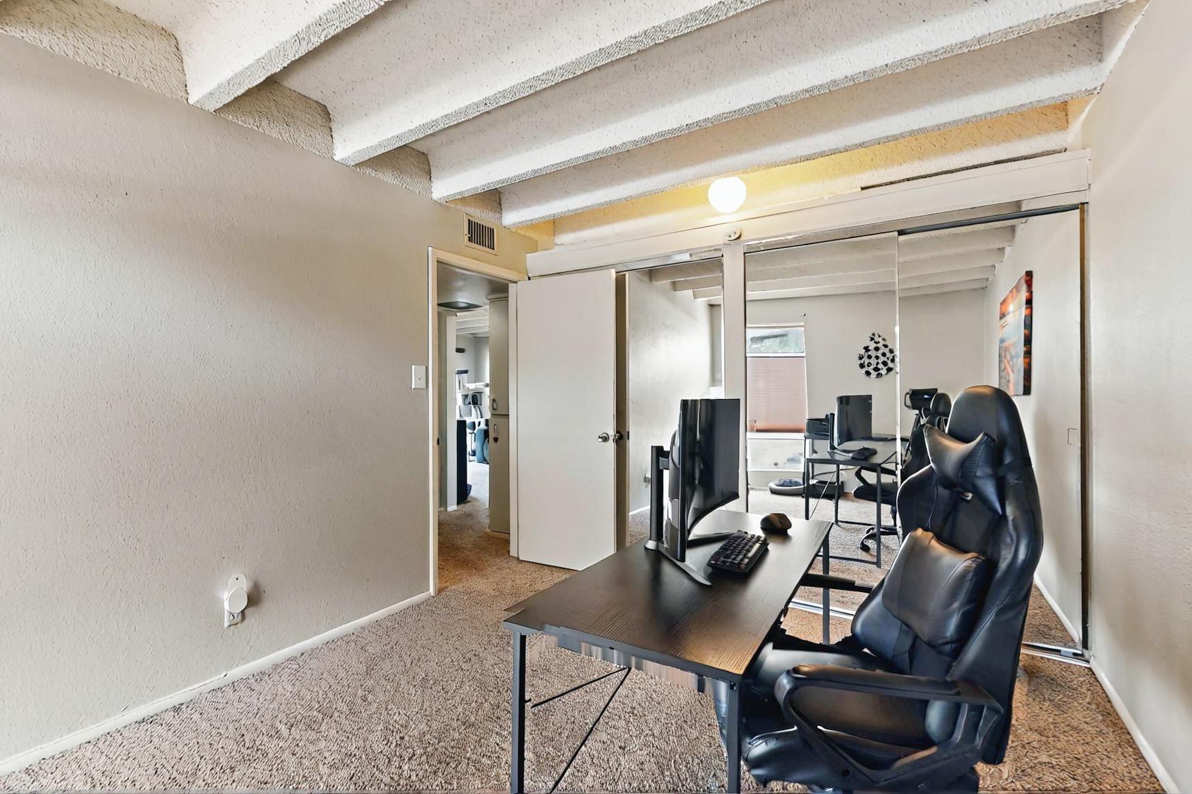 All utilities (except electric) covered by HOA! Explore the comfort and convenience of condo living at Moana Condominiums! This well-kept unit features two spacious bedrooms and an updated full bathroom with modern tile flooring and a stylish vanity. The large eat-in kitchen opens to the living room, making it great for everyday living or hosting guests. Step outside onto the private balcony to enjoy some fresh air. A washer and dryer are included for added ease. The gated community offers resident-only parking, and a central courtyard. Located just minutes from Kirtland Air Force Base, the airport, and downtown Albuquerque, this condo is perfectly positioned for work or play.