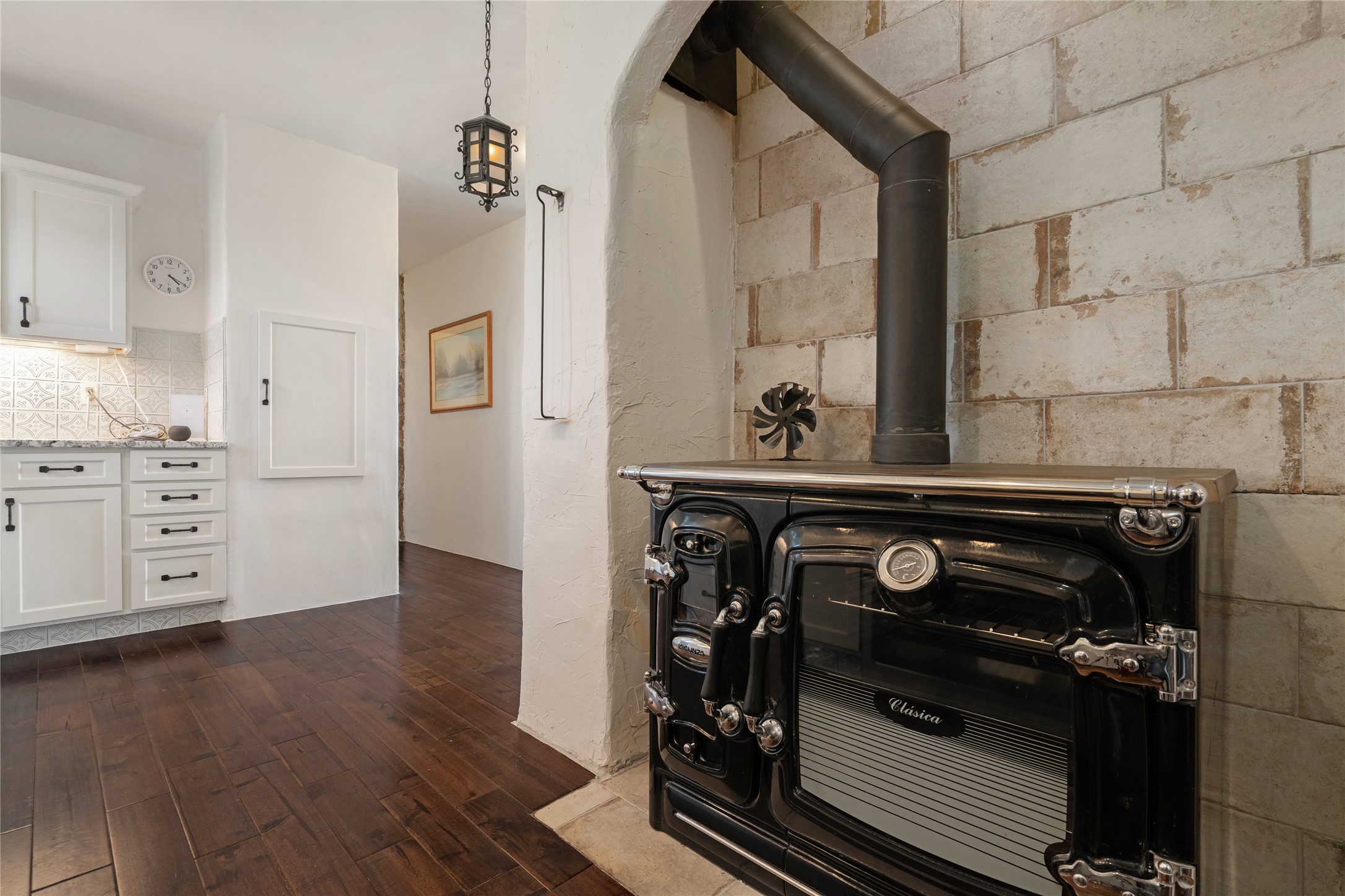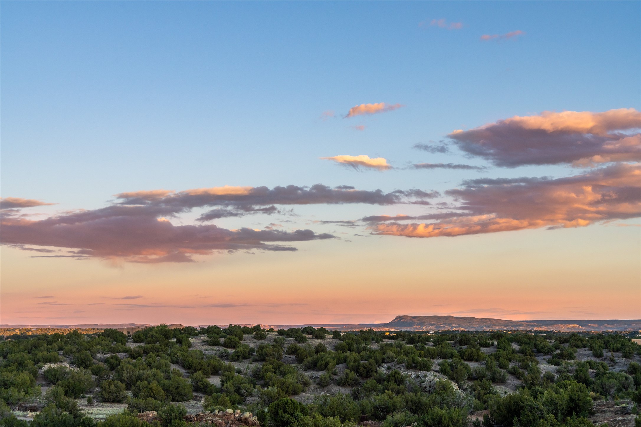 What you need to know - No HOA fees, Views for miles, Horses allowed and around 25 min to Plaza, Canyon Road, or Railyard, and 50 min from ABQ Intl Airport. This home has been renovated to accentuate traditional Santa Fe features -- walnut hardwood floors and locally hand-forged chandeliers have been added to the 10-foot ceilings with vigas and stone accent walls. The kitchen now has high-end appliances, granite countertops, and a Lacunza wood-burning stove, blending beauty and function. The open concept living, dining, and kitchen area is filled with natural light from expansive windows overlooking the surrounding landscape Talavera tile risers lead to the owner's suite, which encompasses the entire upstairs. Relax with the Mr. Steam dream shower and 2-person jetted tub surrounded by marble flooring, or watch the sunset from one of the balconies. On the main floor you'll find two bedrooms, both with outdoor access, and a shared bathroom and office space located by the entrance. Downstairs there is another bedroom, workout space, storage, laundry, meditation room with kiva and a fully equipped theater room - all of which stays with home. The rest of the space is open to your imagination - kids play room, art studio... The productive well features a new pump, cistern, and multi-stage filtration system. Programmable mini splits provide year-round comfort, while owned solar panels help keep energy costs low. The regraded and graveled driveway, along with an excavated pad, offers ample space for RVs or recreational toys, and potential for a horse barn or casita. Sitting on 16 acres of gently rolling hills dotted with juniper, mountain mahogany, and pion--it offers exceptional privacy, yet easy access to amenities.