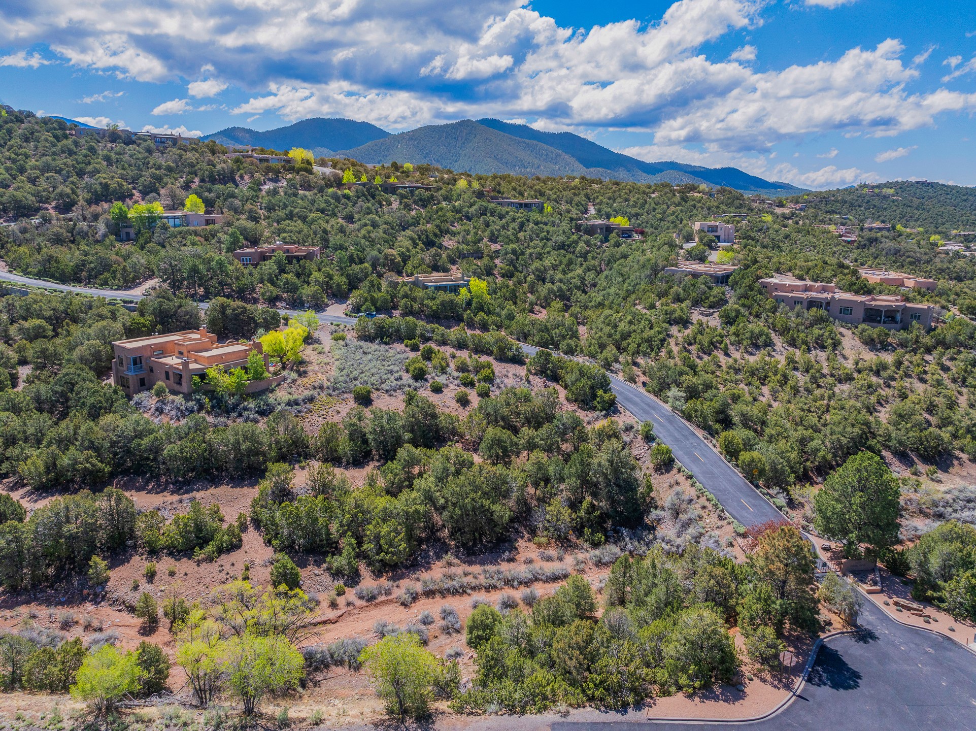 Fantastic development opportunity in the exclusive and conveniently located Canada Ancha Subdivision. With excellent views to the Sandia, Ortiz and Jemez Mountains, this lot has a relatively flat buildable area and gas, electric/transformer, sewer, city water/sewer all on site for added value and development ease. The Seller is also offering a nearly complete, excellent set of plans for a 2900 +/- sq/ft house created by notable local architect Sophia Marquez. The property has direct access to the abundant Dale Ball Trail System with super convenient access to Santa Fe National Forest and Santa Fe Ski Basin yet only a few minutes drive to Downtown Santa Fe.