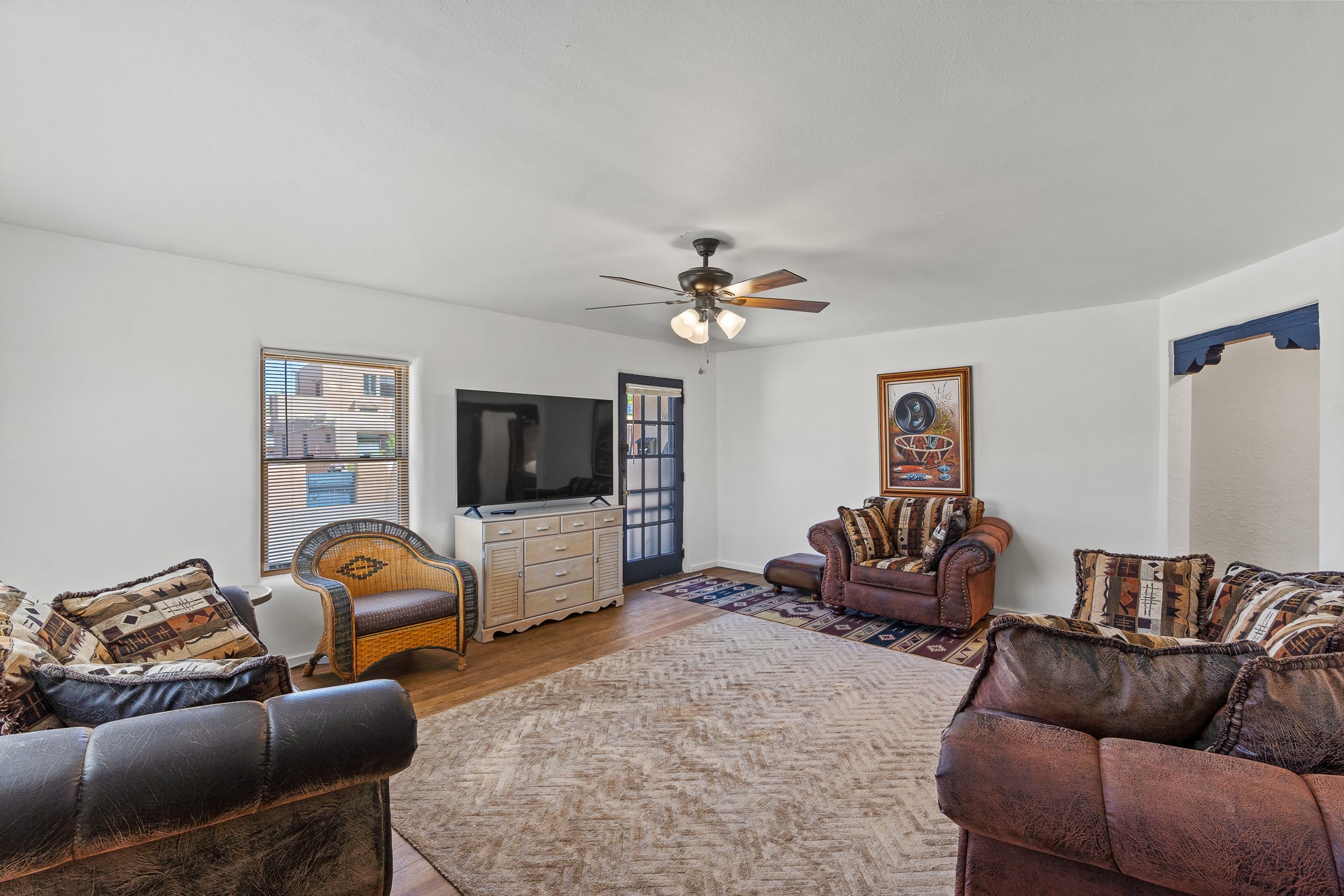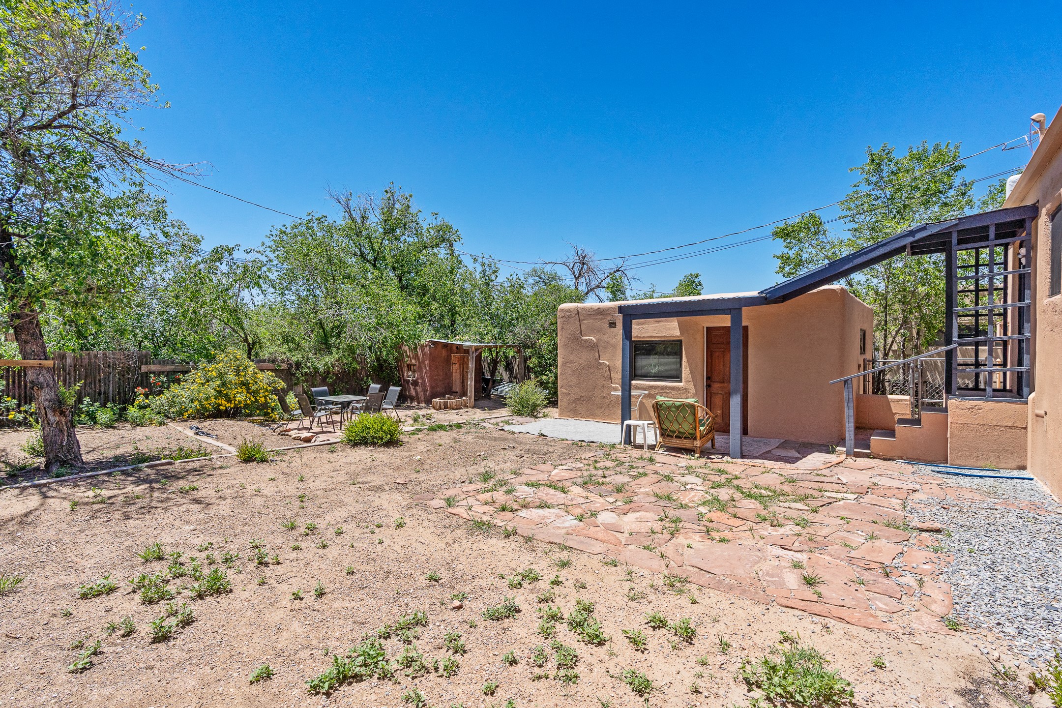 Situated on a spacious, fully fenced lot, this classic Northern New Mexico adobe offers charm, flexibility, and strong income potential. The character-rich main house features wood floors, artisan details, and a cozy fireplace, while a separate guest house--eligible for short-term rental--provides immediate income opportunity. Recent updates include refreshed bathrooms, lighting, appliances, and interior paint. With no historic restrictions, favorable zoning, and ample off-street parking, this is a rare investment or live/work opportunity in a sought-after Santa Fe location.