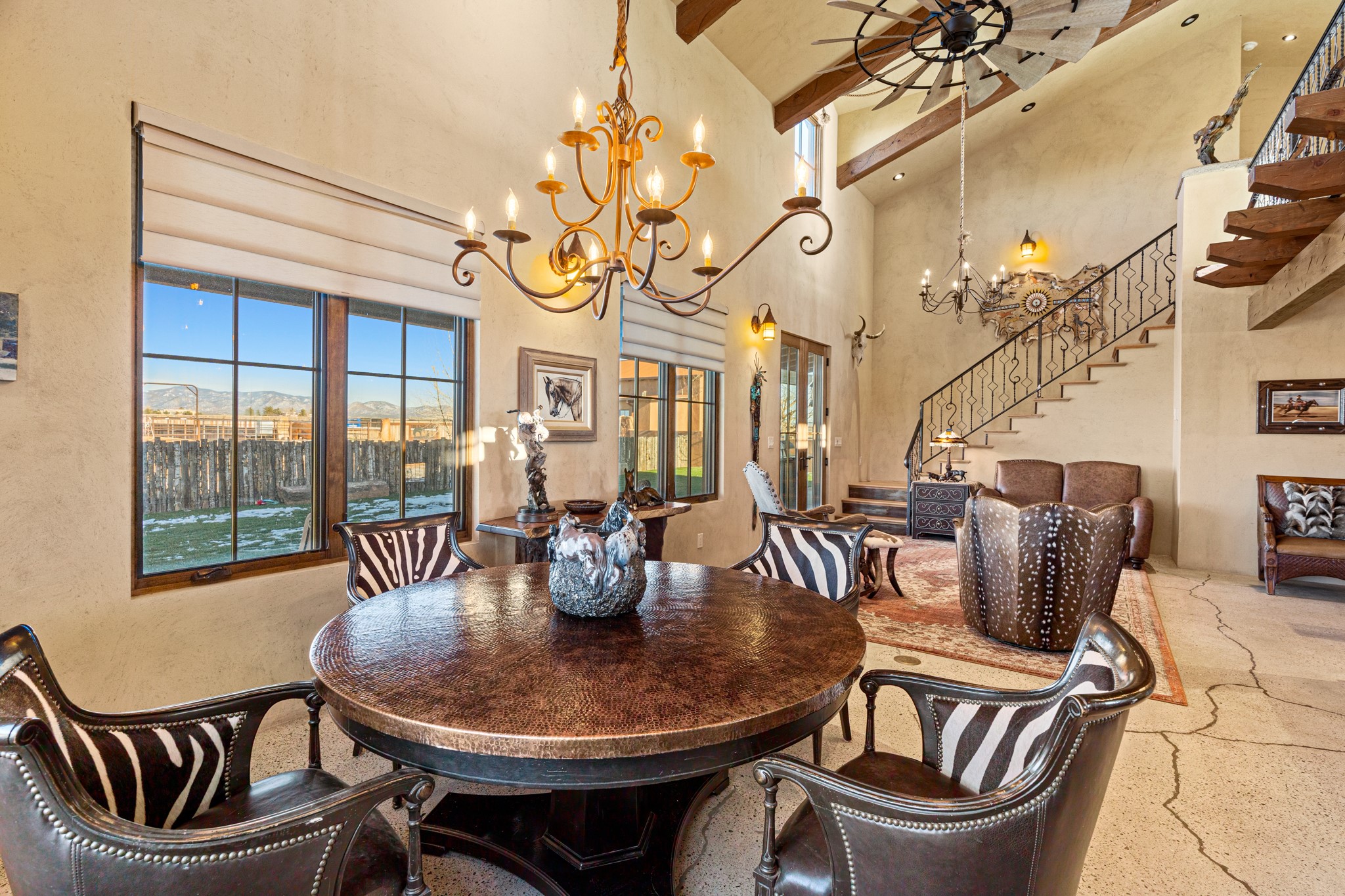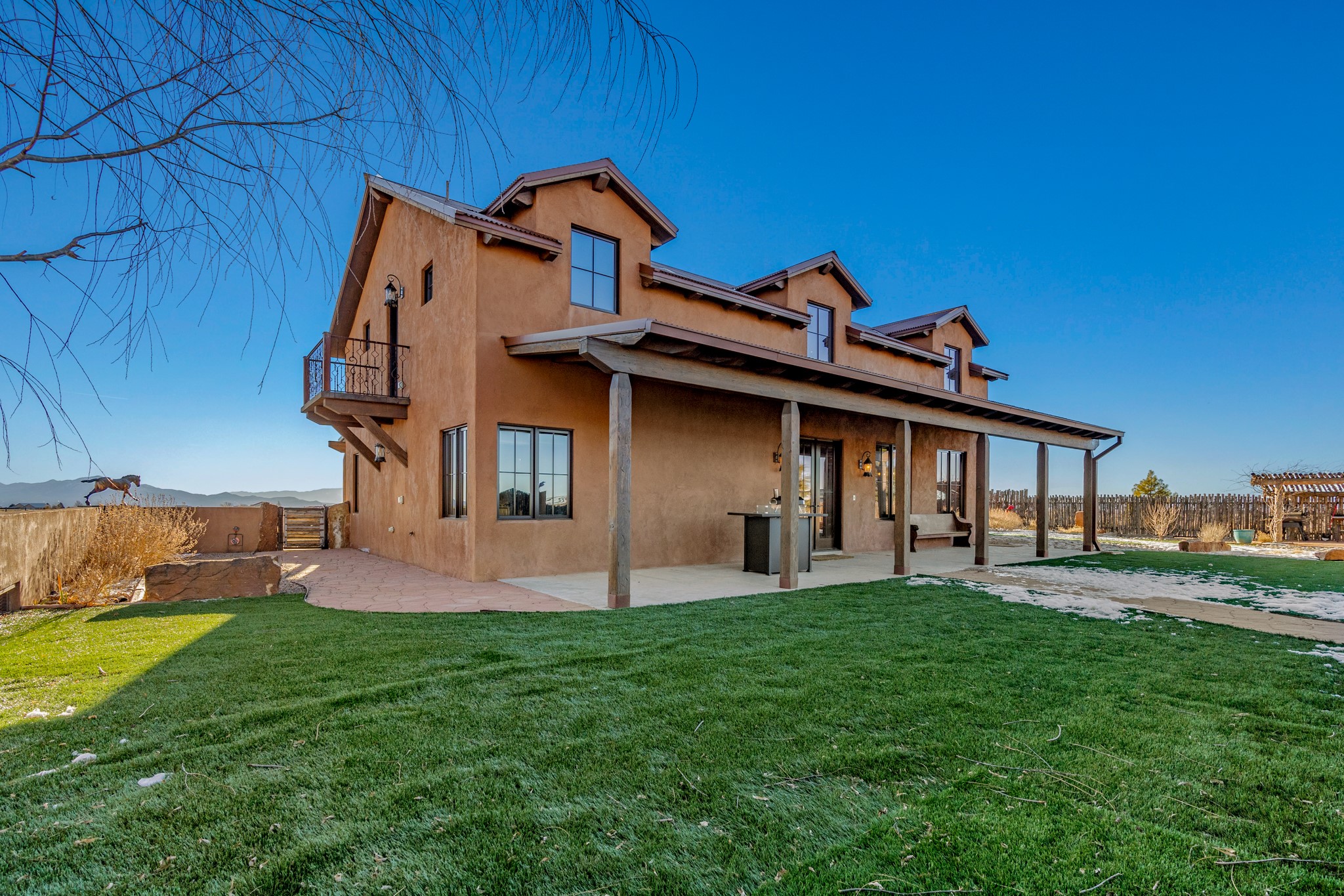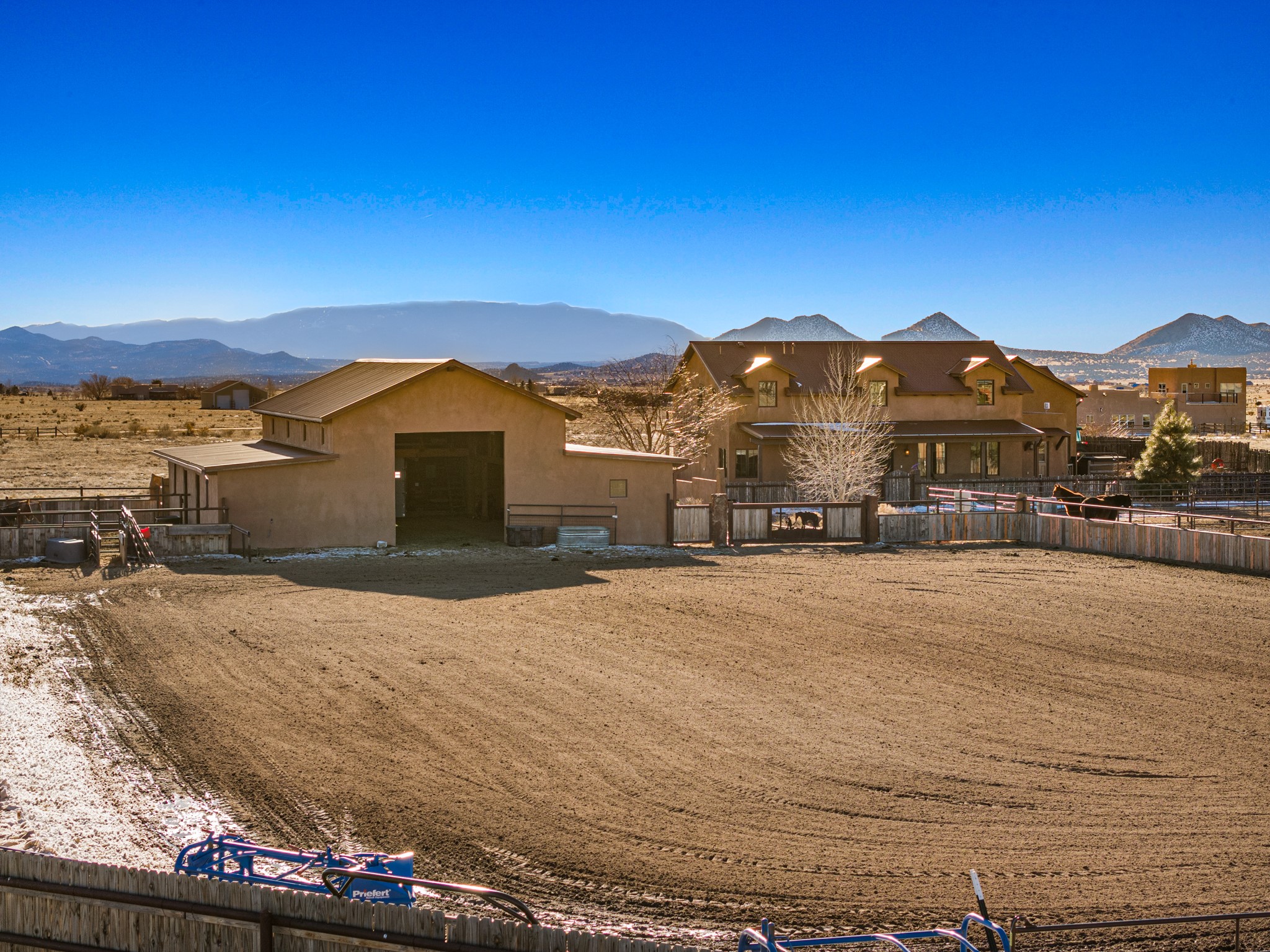 Back on Market- No Fault of Seller or Property! Welcome to Rancho San Marcos and this exquisite horse property. Where refined living meets the allure of this custom-built home on 15 acres with 360 degree views. Tailored for open-concept living, this residence is an entertainer's dream. The chef's kitchen, boasting a Viking Range, granite countertops, wine fridge, and walk-in pantry, invites you to unleash your culinary creativity. The main floor features an open dining/living area with high ceilings, large windows to capture the views and natural light. The primary bedroom is on the main floor with 2 walk-in closets, a spacious bathroom featuring a walk-in shower, and a serene soaking tub. Upstairs, two additional bedrooms and an open loft await. The oversized heated 2-car garage showcases a 700 sq ft open loft area. Your cherished equine companions are luxuriously accommodated in a 2448 sq ft barn with 2 indoor/outdoor stalls & turnouts, 1 indoor stall, hay storage, 1/2 bathroom, overhead door on the east side is large enough to accommodate an RV, offering convenient, out-of-the-weather storage for your motorhome or large recreational equipment. Inside, the barn provides ample room for livestock, equipment, or additional workshop space with excellent ventilation, and easy access to an expansive riding arena approximately 130X200. Adjacent to the riding arena is an additional 16X30 stall, 10X16 bird house with windows and 75X180 corral. Don't miss the opportunity to make this remarkable property your own, where elegance and equestrian excellence seamlessly come together. Within the gated subdivision you will find riding trails, a round pen and riding arena for use.