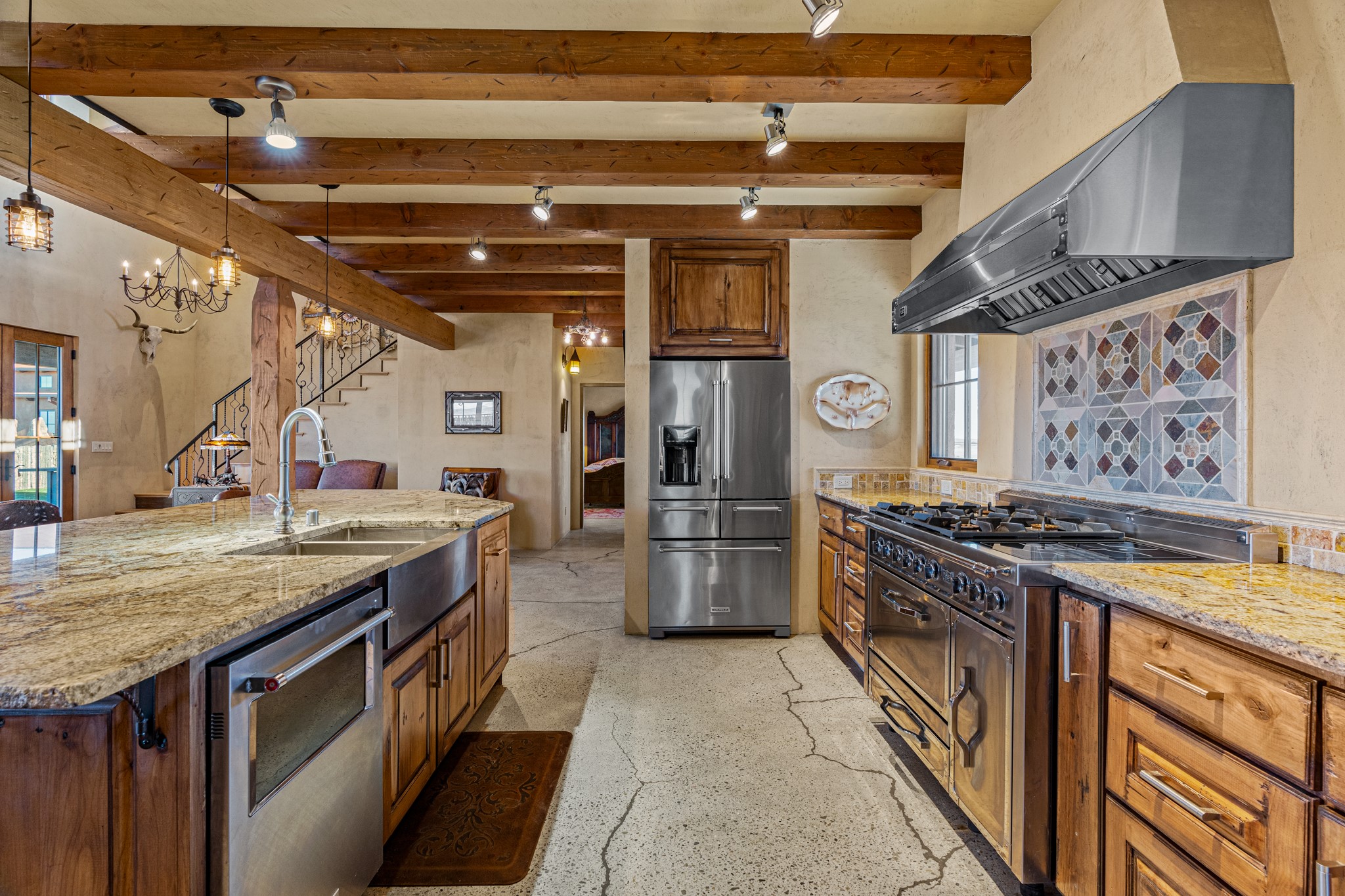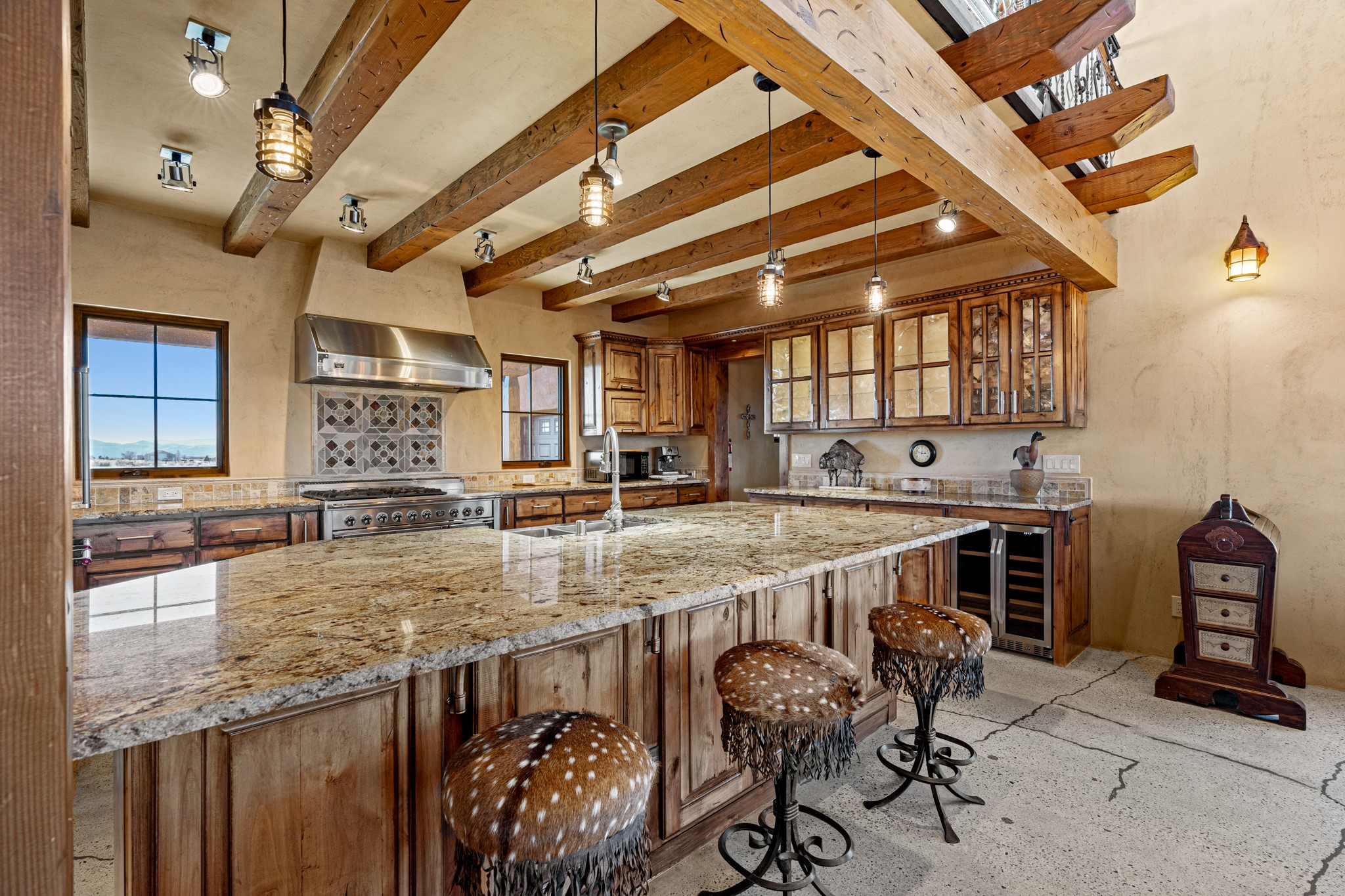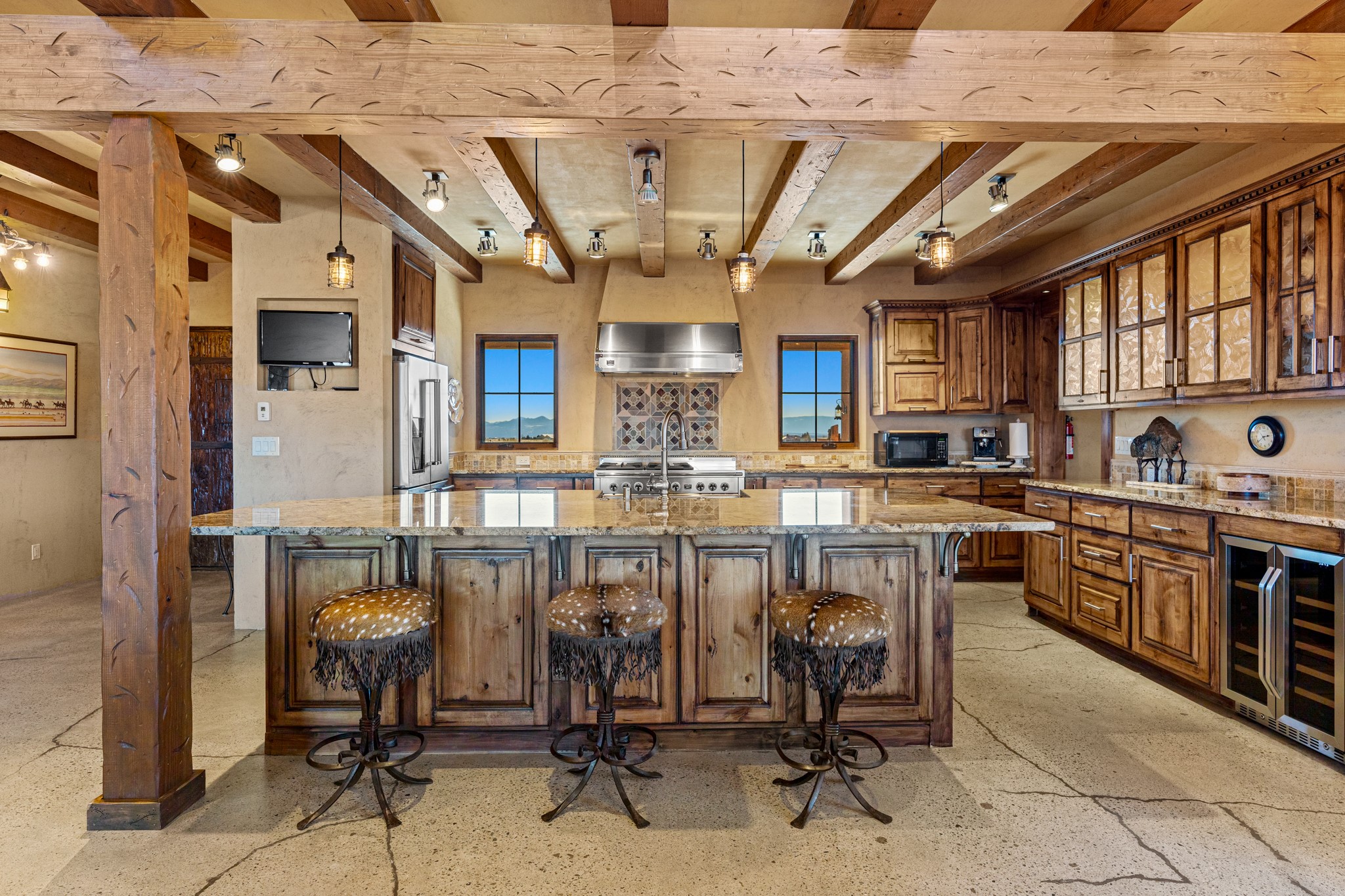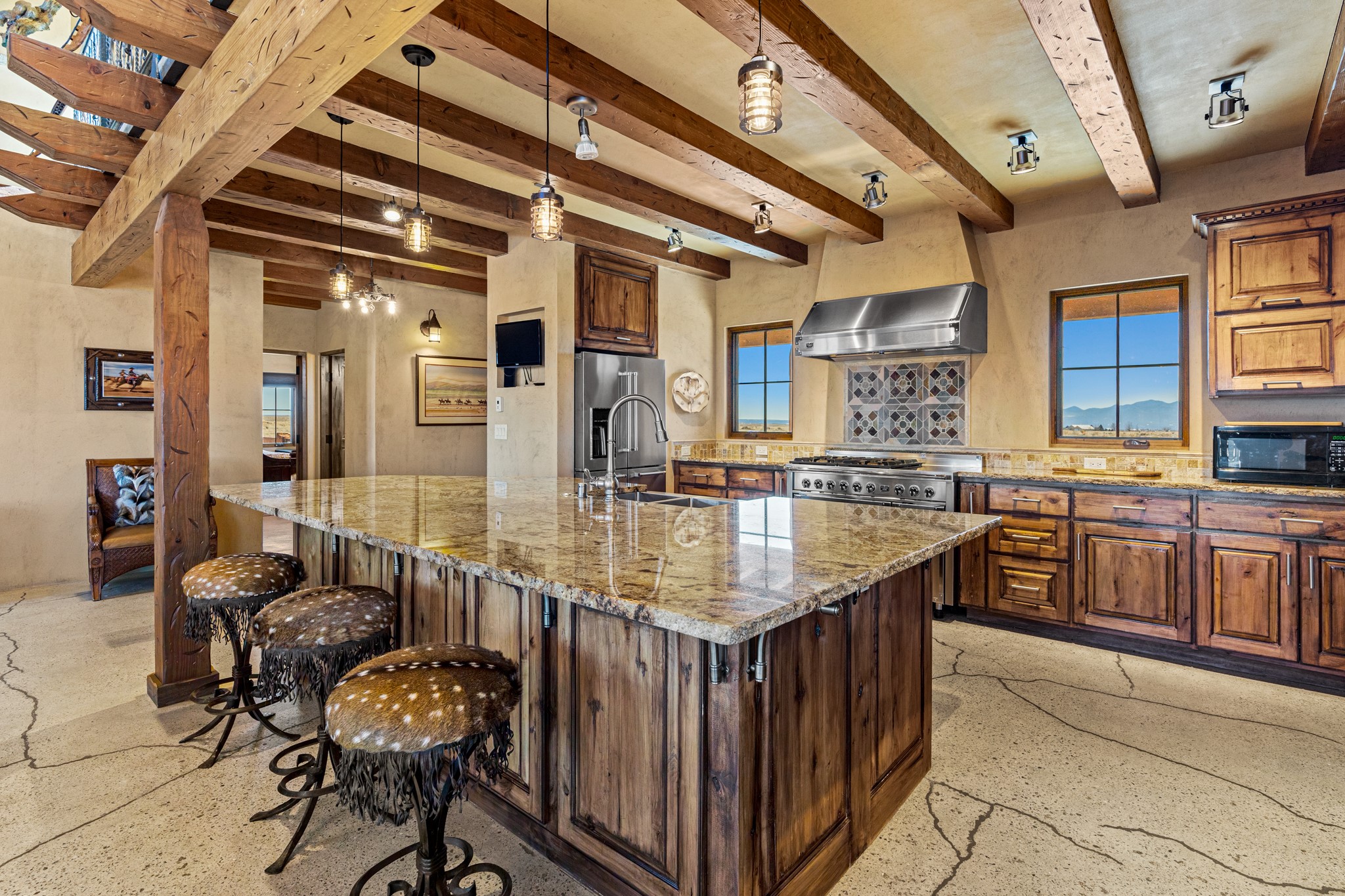Back on Market- No Fault of Seller or Property! Welcome to Rancho San Marcos and this exquisite horse property. Where refined living meets the allure of this custom-built home on 15 acres with 360 degree views. Tailored for open-concept living, this residence is an entertainer's dream. The chef's kitchen, boasting a Viking Range, granite countertops, wine fridge, and walk-in pantry, invites you to unleash your culinary creativity. The main floor features an open dining/living area with high ceilings, large windows to capture the views and natural light. The primary bedroom is on the main floor with 2 walk-in closets, a spacious bathroom featuring a walk-in shower, and a serene soaking tub. Upstairs, two additional bedrooms and an open loft await. The oversized heated 2-car garage showcases a 700 sq ft open loft area. Your cherished equine companions are luxuriously accommodated in a 2448 sq ft barn with 2 indoor/outdoor stalls & turnouts, 1 indoor stall, hay storage, 1/2 bathroom, overhead door on the east side is large enough to accommodate an RV, offering convenient, out-of-the-weather storage for your motorhome or large recreational equipment. Inside, the barn provides ample room for livestock, equipment, or additional workshop space with excellent ventilation, and easy access to an expansive riding arena approximately 130X200. Adjacent to the riding arena is an additional 16X30 stall, 10X16 bird house with windows and 75X180 corral. Don't miss the opportunity to make this remarkable property your own, where elegance and equestrian excellence seamlessly come together. Within the gated subdivision you will find riding trails, a round pen and riding arena for use.