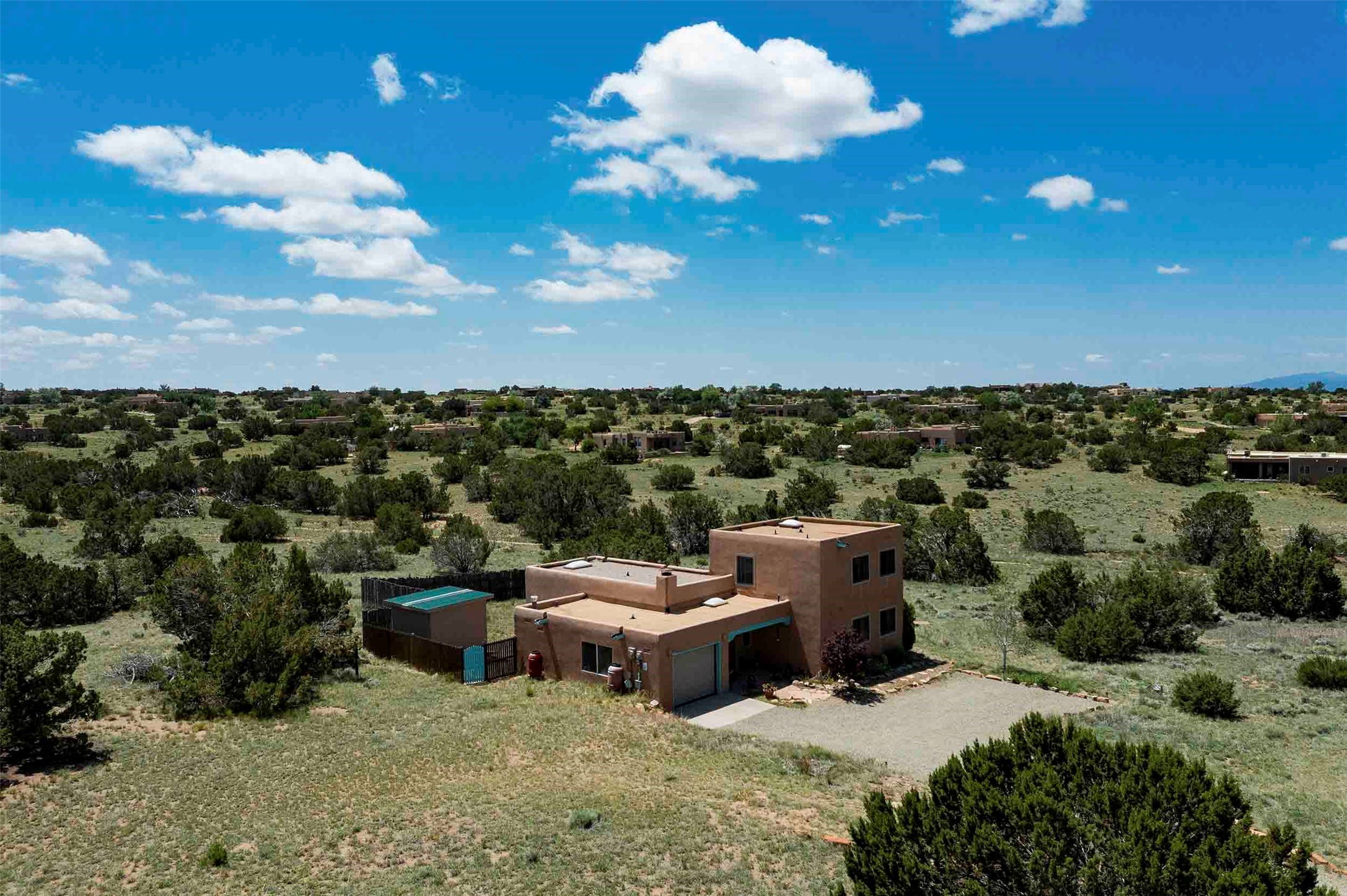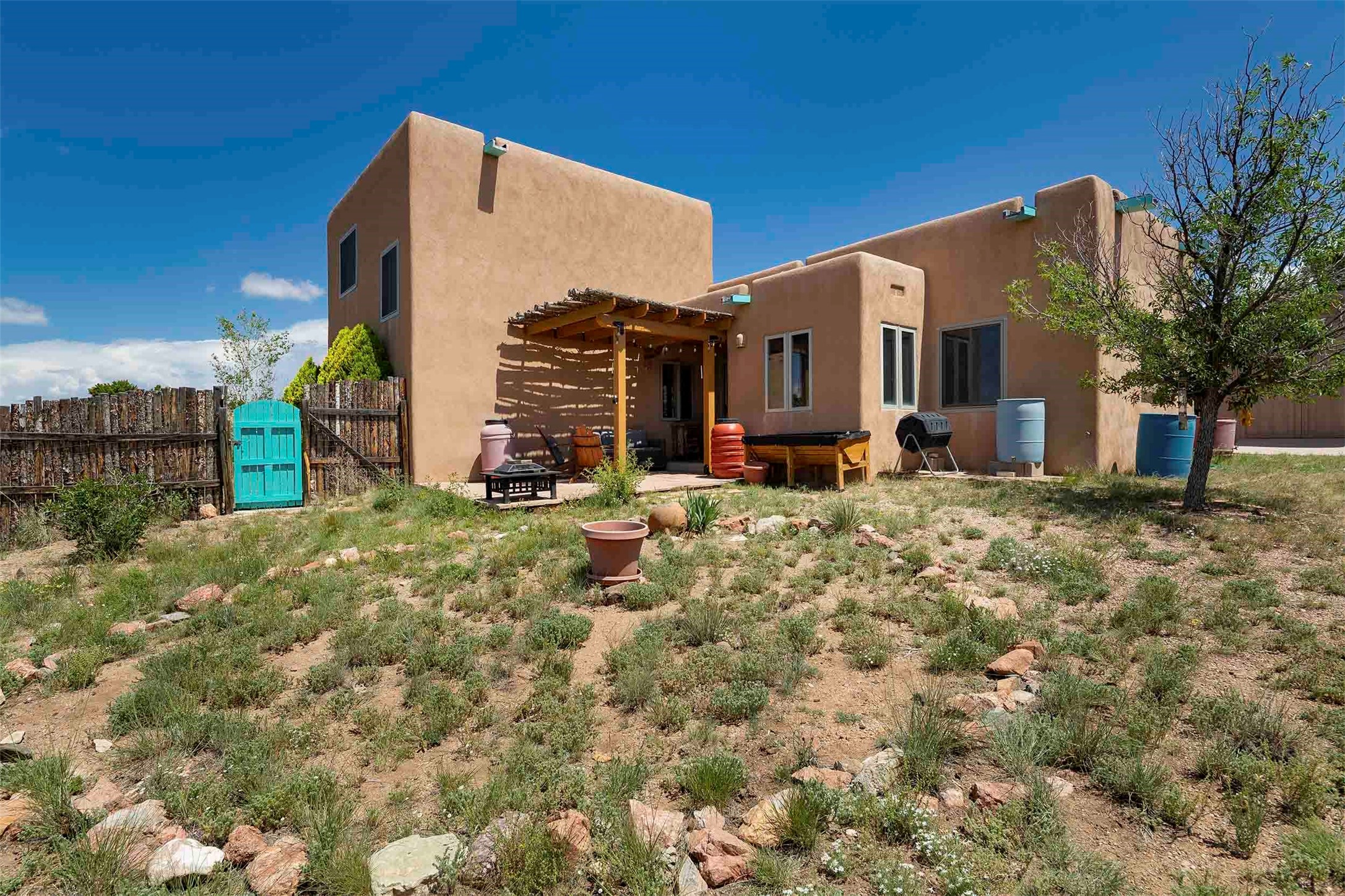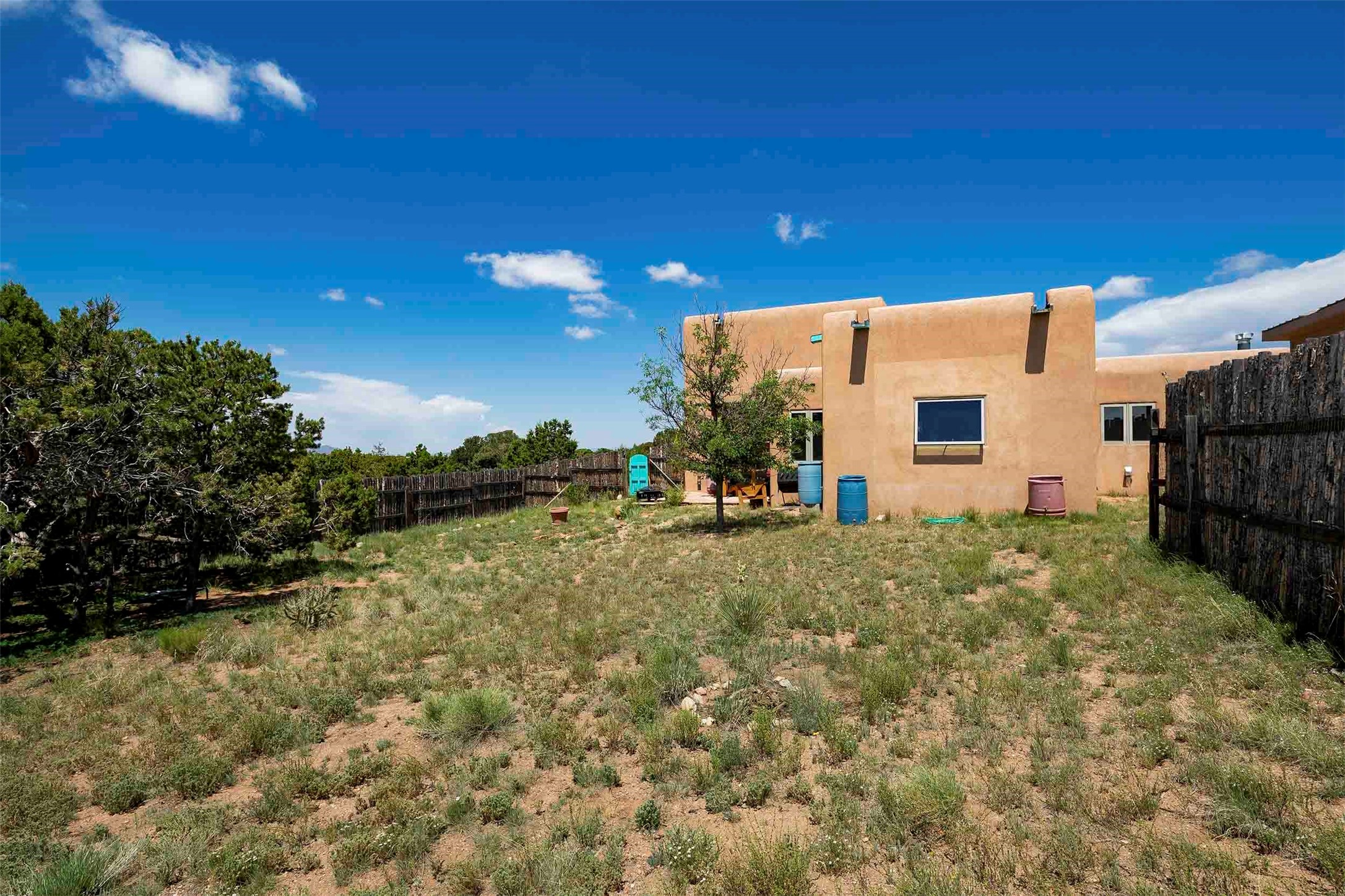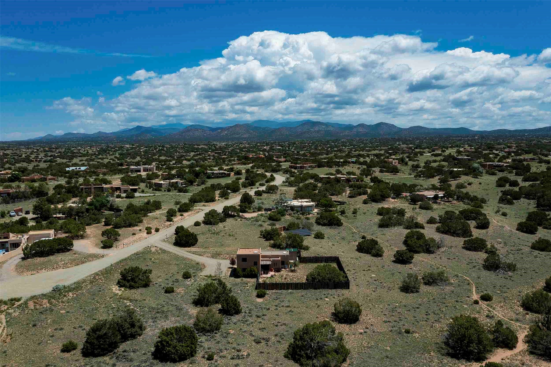 PRICE IMPROVEMENT! Welcome to 11 Balsa Court, where sustainability meets Southwest charm in the heart of Eldorado. This home features a fully owned 22-panel ground-mounted solar system (installed in 2021) that keeps electric bills under $12/month--a rare and valuable benefit.Backed by a greenbelt with stunning views of the San Pedro, Ortiz, and Jemez Mountains, the home offers privacy, open skies, and constant connection to nature. Enjoy sunsets from the bedroom and stargazing from the patio.Inside, the layout is open and comfortable. The great room features beautiful viga ceilings, a kiva fireplace, Saltillo tile floors, and plenty of natural light. The kitchen is equipped with a large center island and modern lighting, and there's a built-in banco for casual dining. All rooms are generously sized, offering flexibility for how you live and work. Out back, a flagstone patio with a ramada creates a shaded outdoor living space ideal for relaxing or entertaining. In addition, there are 17 new windows that were replaced in the spring of 2023, Renewal by Anderson, energy-efficient.The fully fenced yard makes life easy for pet owners, and the garden is already established with native trees and perennials. Living in Eldorado means easy access to miles of trails, a tight-knit community, great schools, local markets and restaurants, and the kind of quiet that's getting harder to find. This is the kind of property that makes it easy to settle in and feel at home.