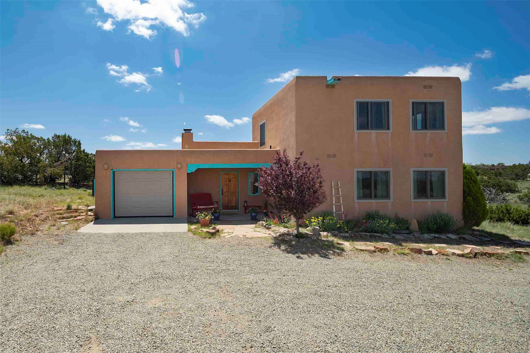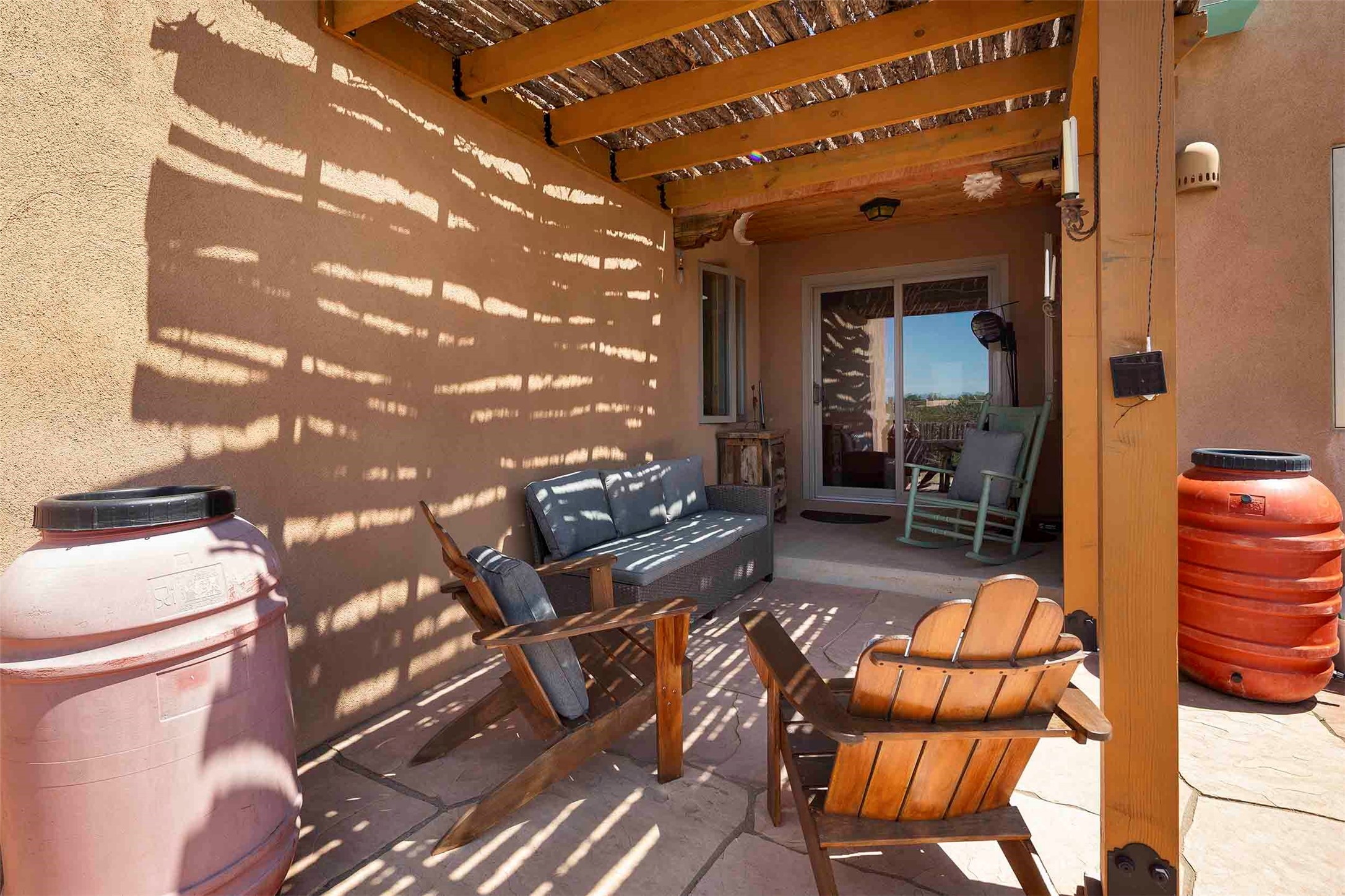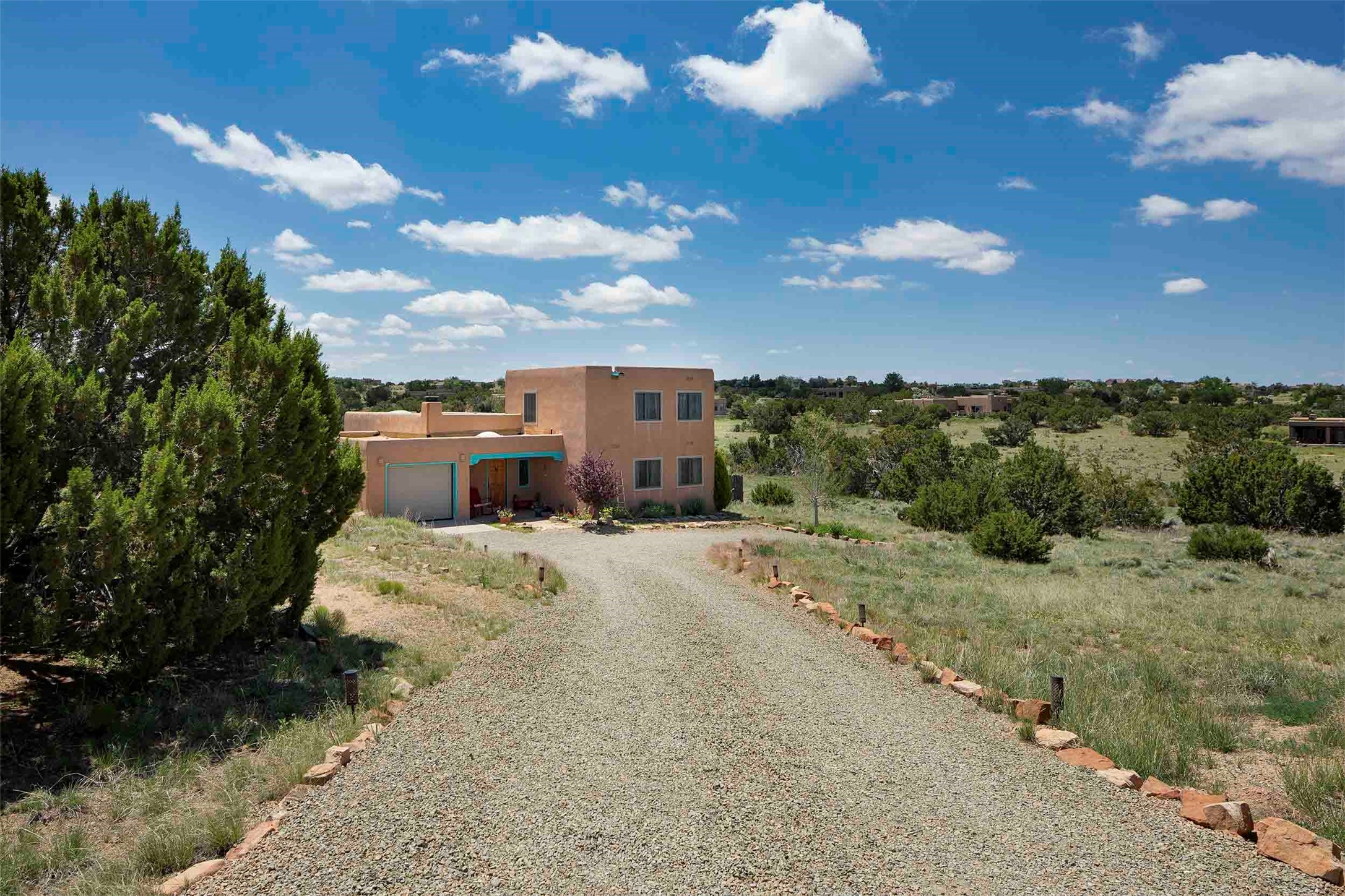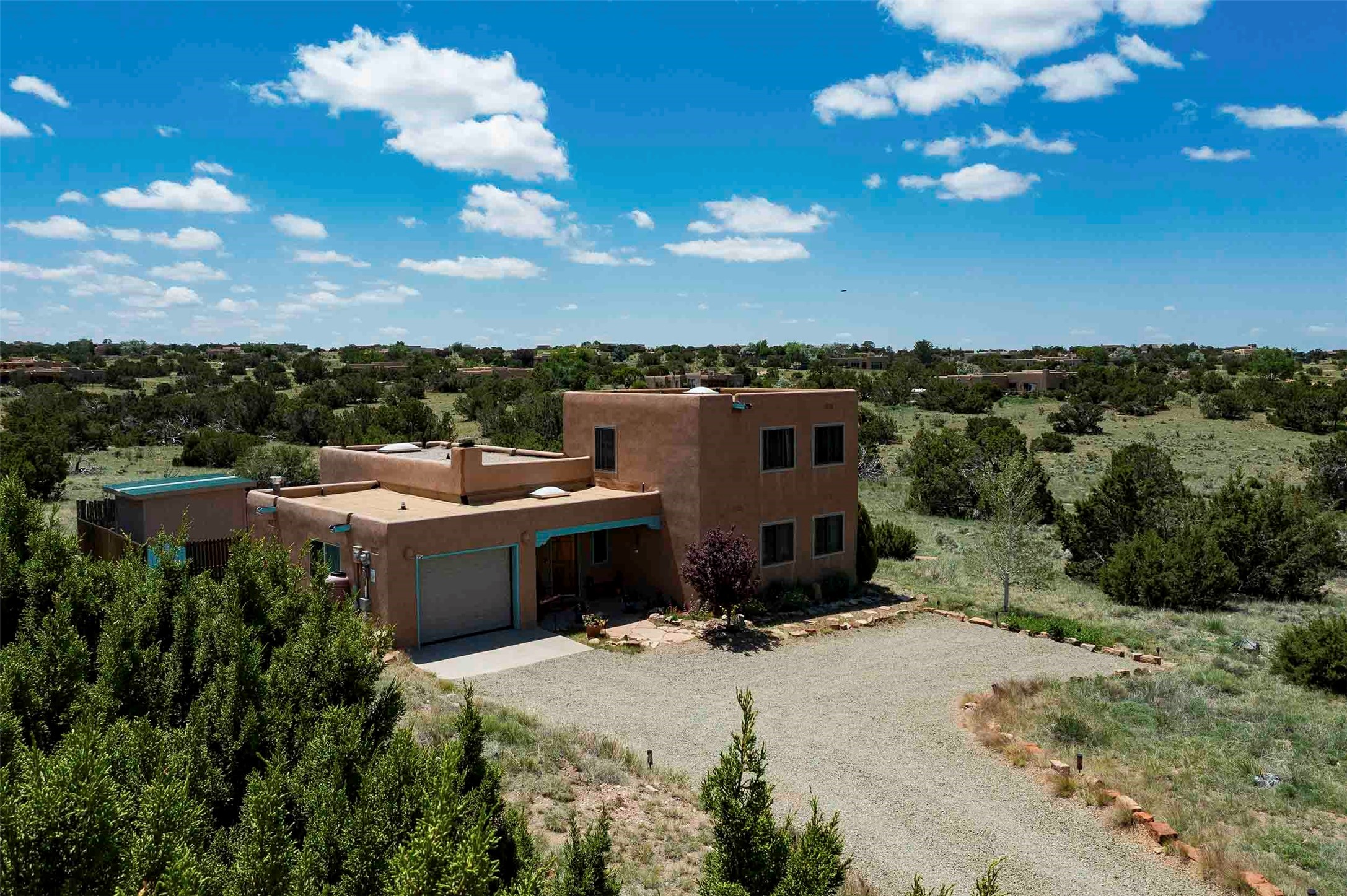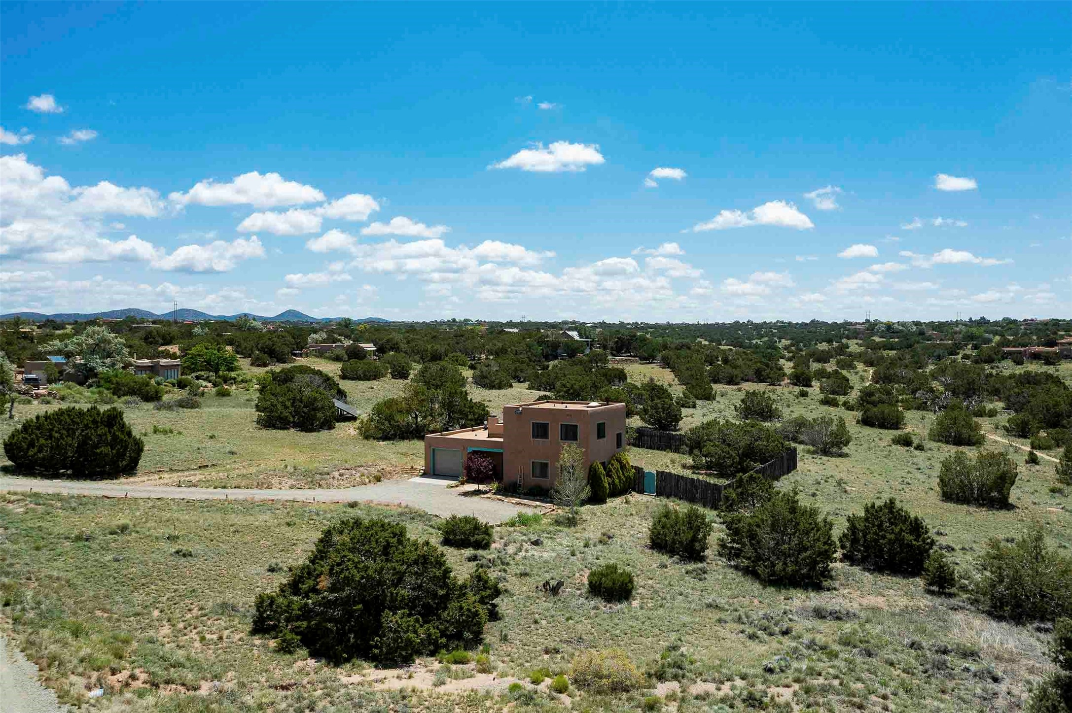 PRICE IMPROVEMENT! Welcome to 11 Balsa Court, where sustainability meets Southwest charm in the heart of Eldorado. This home features a fully owned 22-panel ground-mounted solar system (installed in 2021) that keeps electric bills under $12/month--a rare and valuable benefit.Backed by a greenbelt with stunning views of the San Pedro, Ortiz, and Jemez Mountains, the home offers privacy, open skies, and constant connection to nature. Enjoy sunsets from the bedroom and stargazing from the patio.Inside, the layout is open and comfortable. The great room features beautiful viga ceilings, a kiva fireplace, Saltillo tile floors, and plenty of natural light. The kitchen is equipped with a large center island and modern lighting, and there's a built-in banco for casual dining. All rooms are generously sized, offering flexibility for how you live and work. Out back, a flagstone patio with a ramada creates a shaded outdoor living space ideal for relaxing or entertaining. In addition, there are 17 new windows that were replaced in the spring of 2023, Renewal by Anderson, energy-efficient.The fully fenced yard makes life easy for pet owners, and the garden is already established with native trees and perennials. Living in Eldorado means easy access to miles of trails, a tight-knit community, great schools, local markets and restaurants, and the kind of quiet that's getting harder to find. This is the kind of property that makes it easy to settle in and feel at home.