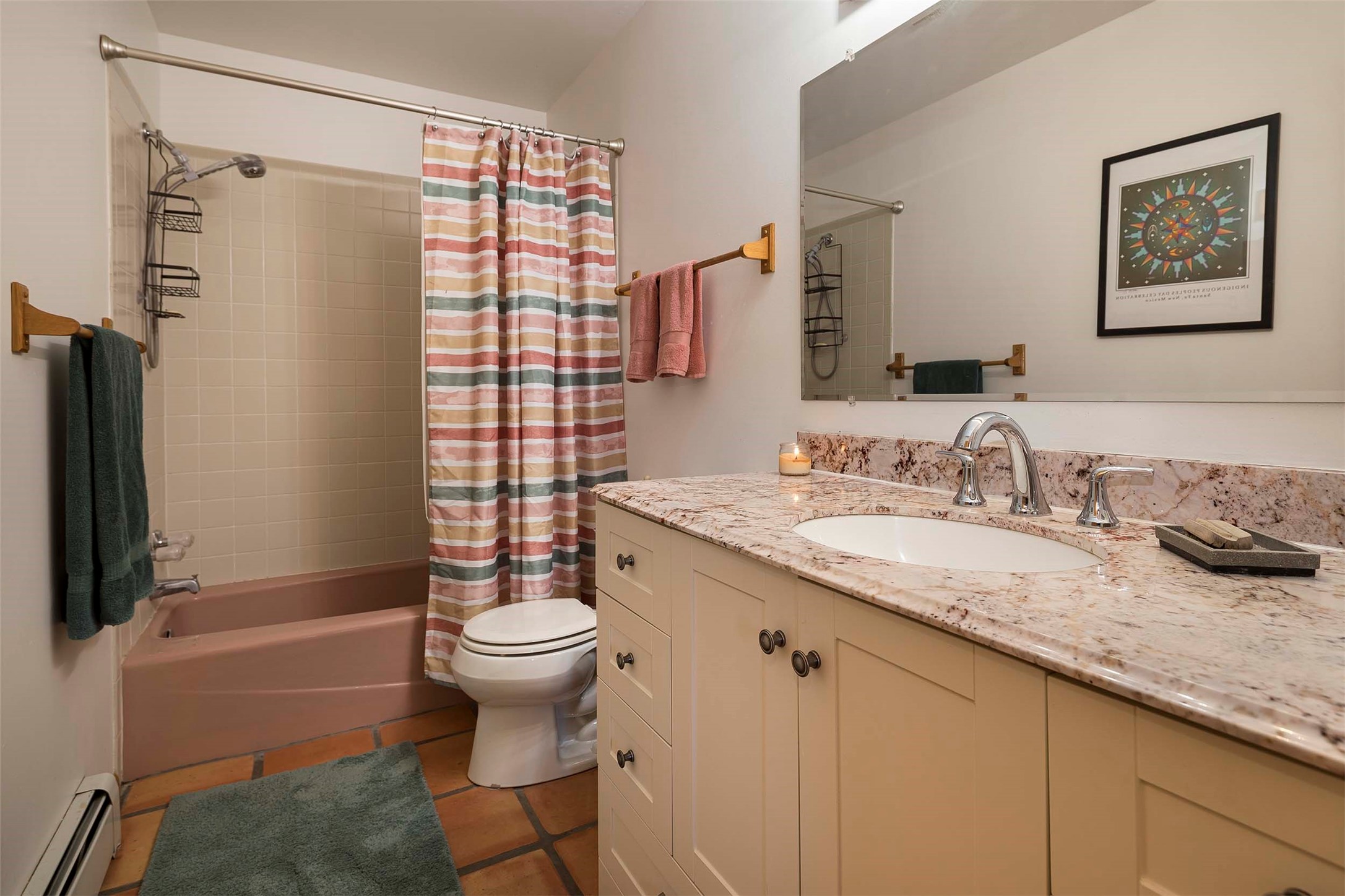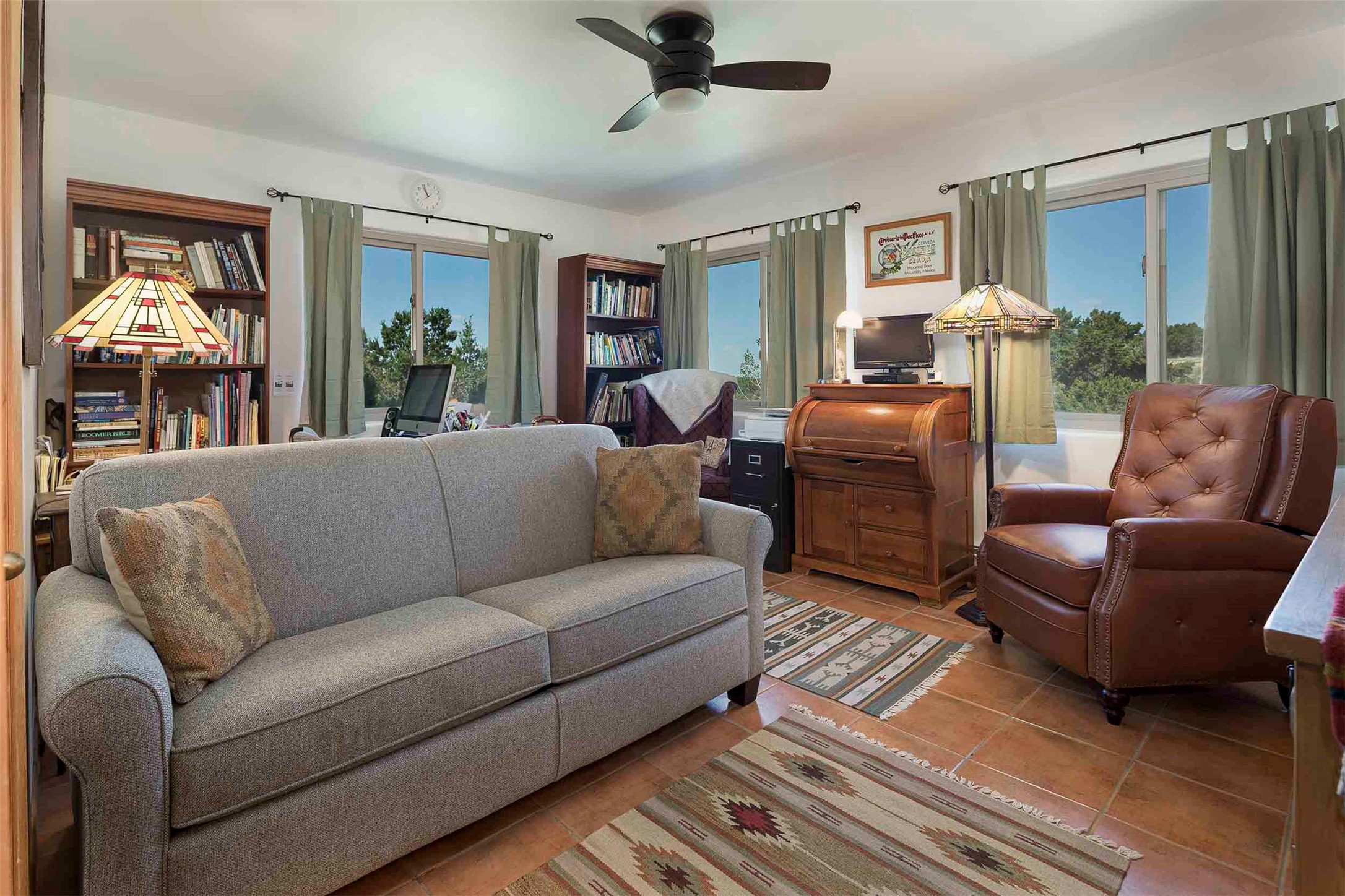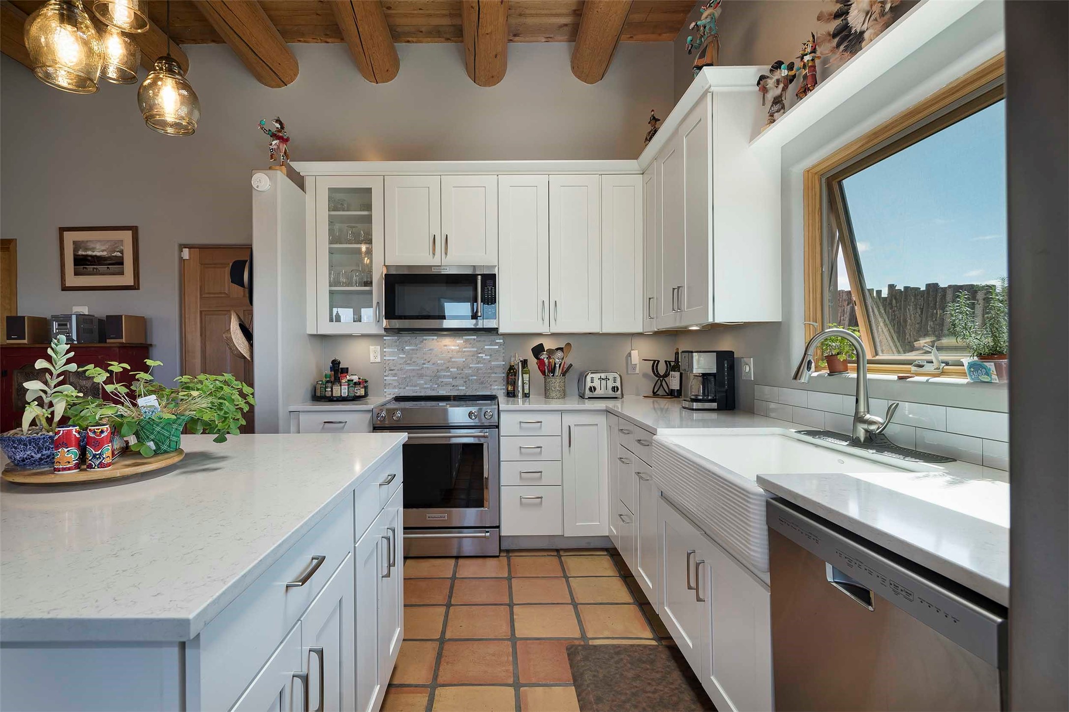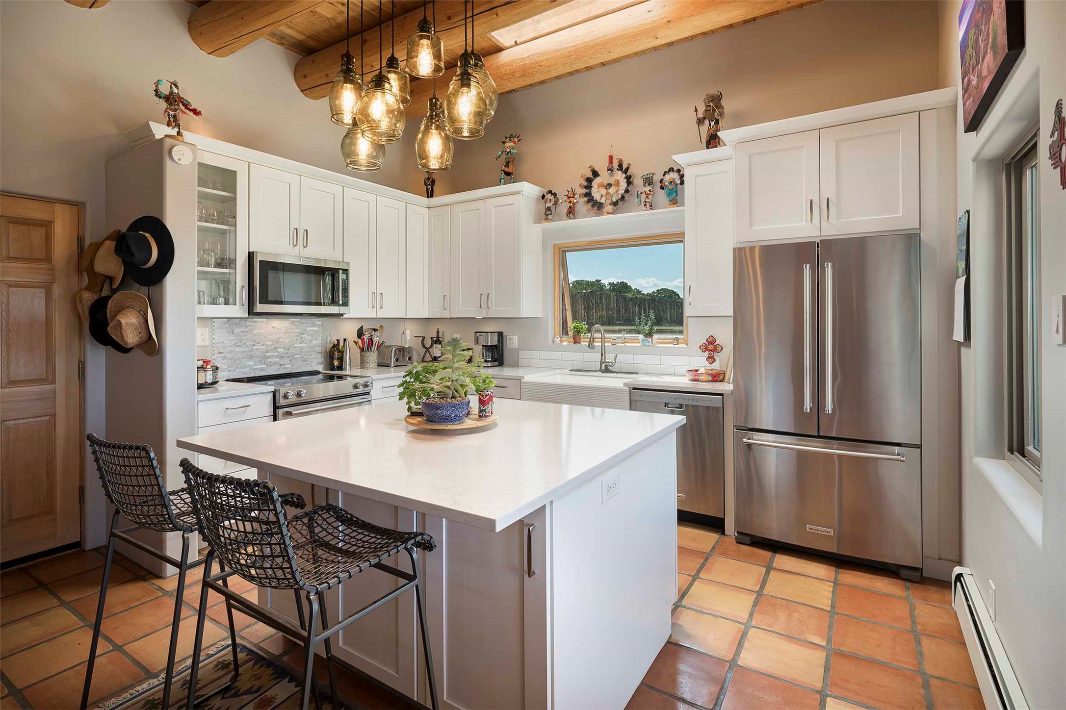 PRICE IMPROVEMENT! Welcome to 11 Balsa Court, where sustainability meets Southwest charm in the heart of Eldorado. This home features a fully owned 22-panel ground-mounted solar system (installed in 2021) that keeps electric bills under $12/month--a rare and valuable benefit.Backed by a greenbelt with stunning views of the San Pedro, Ortiz, and Jemez Mountains, the home offers privacy, open skies, and constant connection to nature. Enjoy sunsets from the bedroom and stargazing from the patio.Inside, the layout is open and comfortable. The great room features beautiful viga ceilings, a kiva fireplace, Saltillo tile floors, and plenty of natural light. The kitchen is equipped with a large center island and modern lighting, and there's a built-in banco for casual dining. All rooms are generously sized, offering flexibility for how you live and work. Out back, a flagstone patio with a ramada creates a shaded outdoor living space ideal for relaxing or entertaining. In addition, there are 17 new windows that were replaced in the spring of 2023, Renewal by Anderson, energy-efficient.The fully fenced yard makes life easy for pet owners, and the garden is already established with native trees and perennials. Living in Eldorado means easy access to miles of trails, a tight-knit community, great schools, local markets and restaurants, and the kind of quiet that's getting harder to find. This is the kind of property that makes it easy to settle in and feel at home.