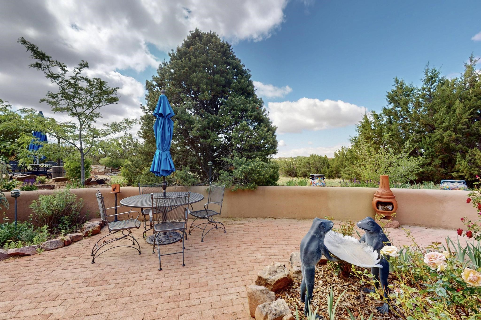 First time on the market! One-of-a-kind pitched roof propanel passive solar beauty with Old World Charm. Like a Swiss Chalet with a dash of Mid-Century Modern. A rarity in Eldorado! Set back off the road on a circular drive, with nary a house in sight, is this gorgeously maintained and landscaped 1.50 acre lot replete with a bubbling Koi and goldfish pond. A multitude of exterior dining and entertaining areas. Meander through the totally dripped irrigated garden which leads the way into a sun drenched, and massive, brick floor Atrium. In fact, the whole house has brick floors and Post and Beam high ceilings with French doors galore! Oversized Living/Dining room with floor to ceiling windows and remote controlled blinds. The wood stove has a catalytic converter which keeps the room toasty through those long winter nights with an 75% to 81% efficiency rating. Split bedroom floor plan. A fabulous Master with a Vermont casting wood stove, en-suite bath with an on-demand gas water heater and a remote controlled awning to keep the bright morning light at bay. Ginormous cedar closet in dressing room/walk-in closet which is the size of a NYC studio apartment! Both the Living Room and Bedrooms have mini-splits and ceiling fans. European-style kitchen has a warming drawer, open shelving and tons of cupboards. A wonderful long pantry with a utility area and space for all your pots, pans, spices and sundries. Outside the kitchen door is a dedicated gas connection for the BBQ. A long and wide two car detached tandem garage has tons of storage and a climate controlled wine room suitable for hundreds of bottles. One of a kind unique beauty.There's nothing like it!