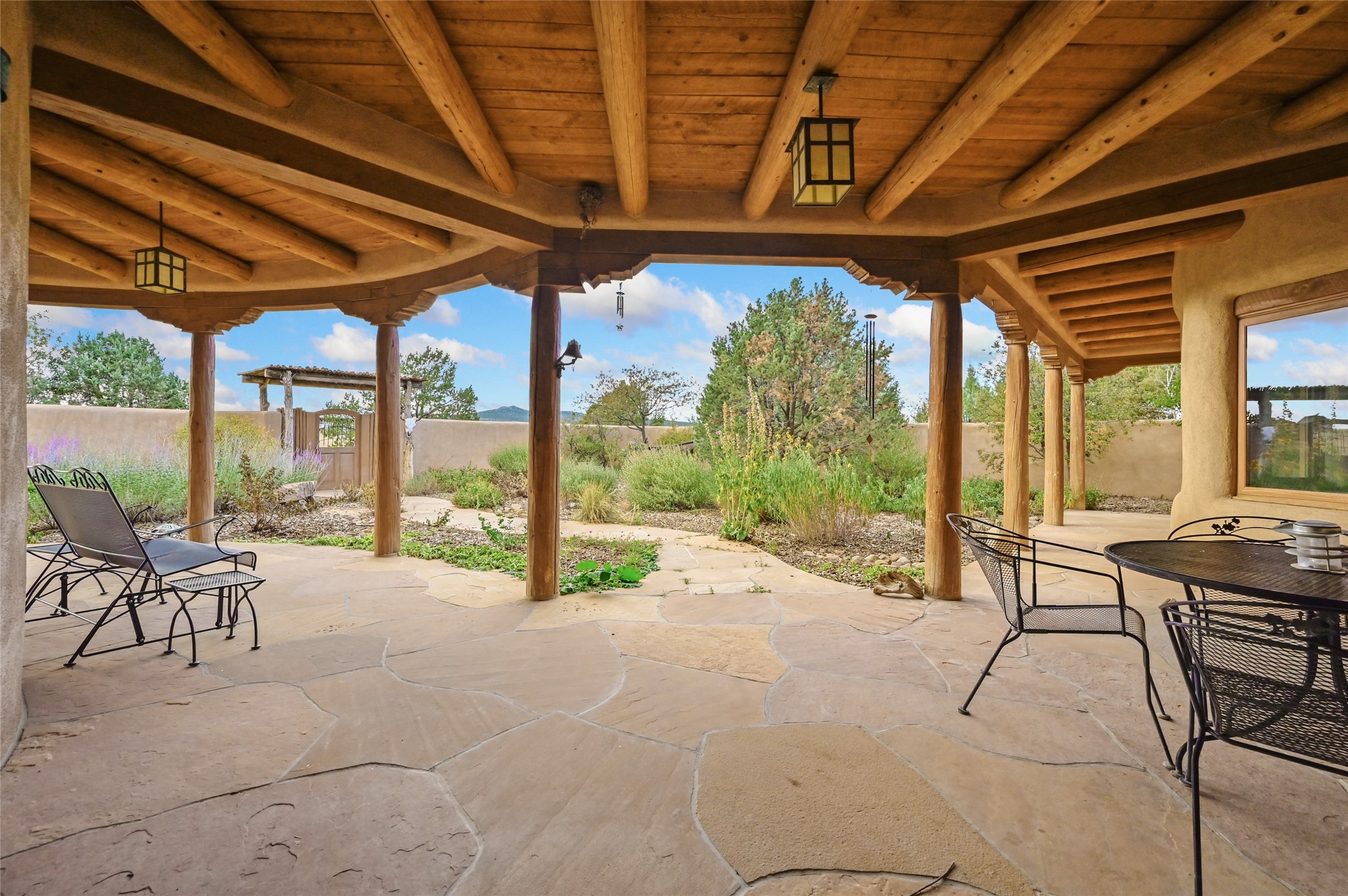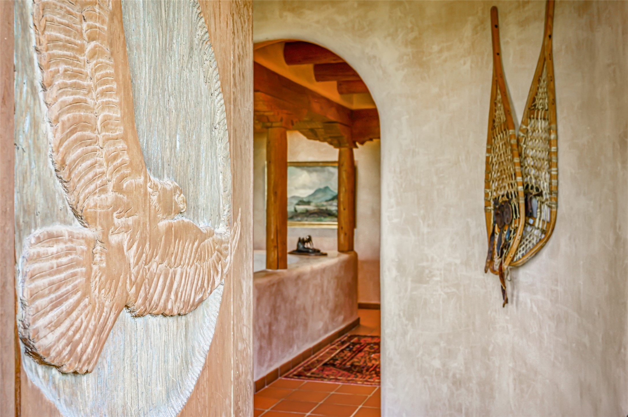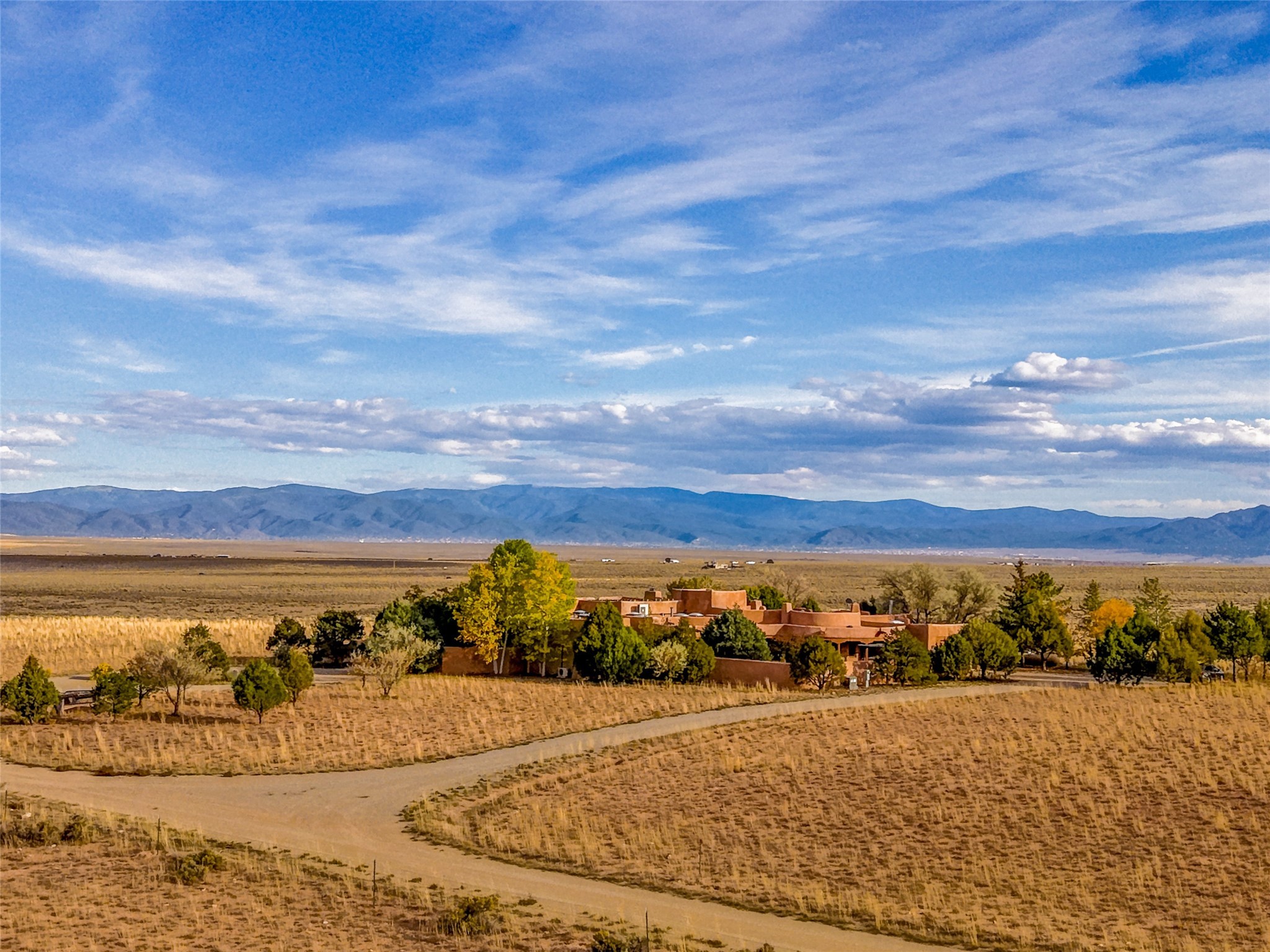 Welcome to a truly exceptional Northern New Mexico retreat--110 acres of serene beauty and luxurious living. This remarkable property features a stunning 4-bedroom, 3-bath primary residence once showcased in Enchanted Homes magazine, a testament to its timeless design, high-level craftsmanship, and one-of-a-kind charm.Inside, you'll find hand-carved beams, a magnificent stone fireplace, and warm, inviting spaces designed for comfort and elegance. The chef's kitchen is a dream for culinary enthusiasts, while multiple private patios and lush, thoughtfully landscaped gardens create a true oasis in the desert--perfect for quiet mornings, lively gatherings, and starlit evenings.Conveniently located just 10 quick minutes west of the Taos Regional Airport, this extraordinary estate is as functional as it is beautiful. A grid-tied solar system, private well, and high-speed fiber optic internet ensure modern sustainability and convenience. The land includes well-appointed outbuildings: storage, tack room, hay barn, and a 3-bedroom, 2-bath manufactured caretaker's home--ideal for guests, a ranch manager, or extended family.Take in breathtaking 360-degree views from every angle and enjoy the option for an elk hunting license, adding unique appeal for outdoor enthusiasts. Whether you dream of tending gardens, riding horses, or simply soaking up the peace and privacy under expansive skies, this property invites you to experience the very best of refined country living.If you've been searching for a luxurious private sanctuary that must be seen to be truly appreciated, this is the one.