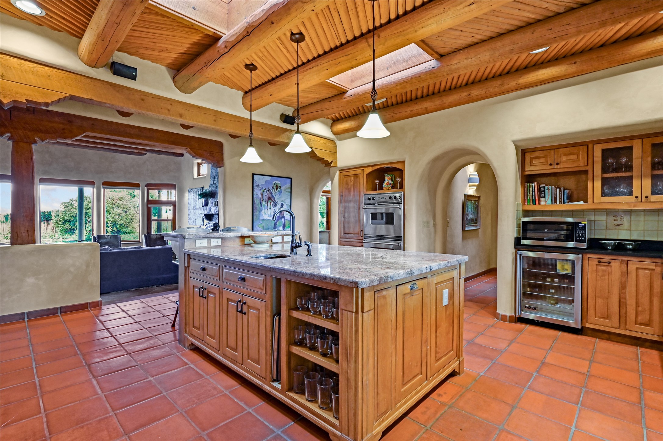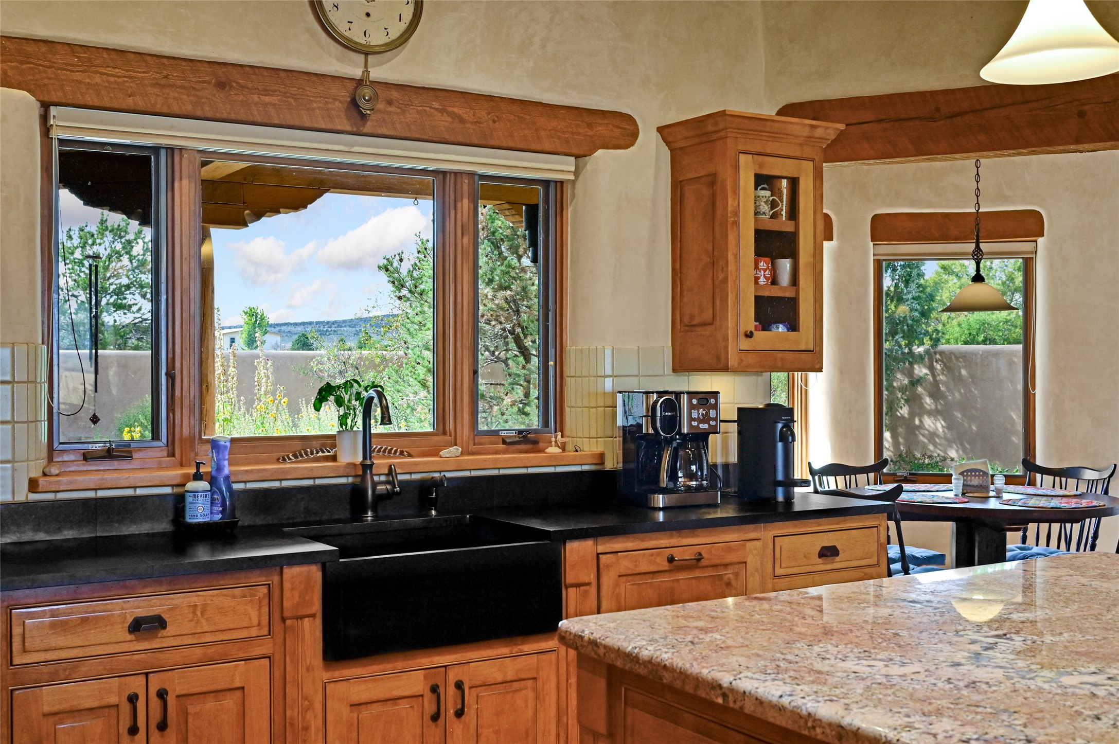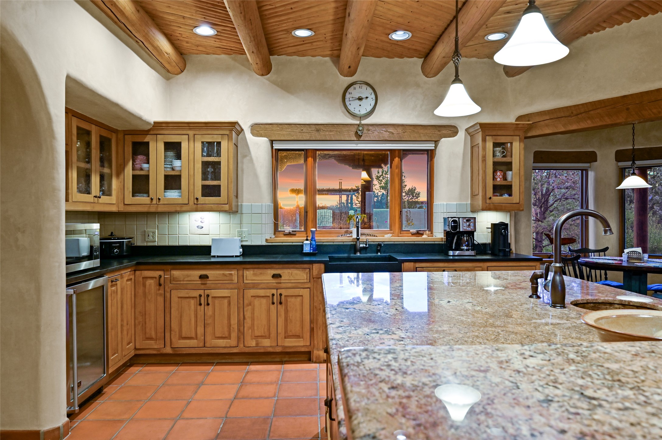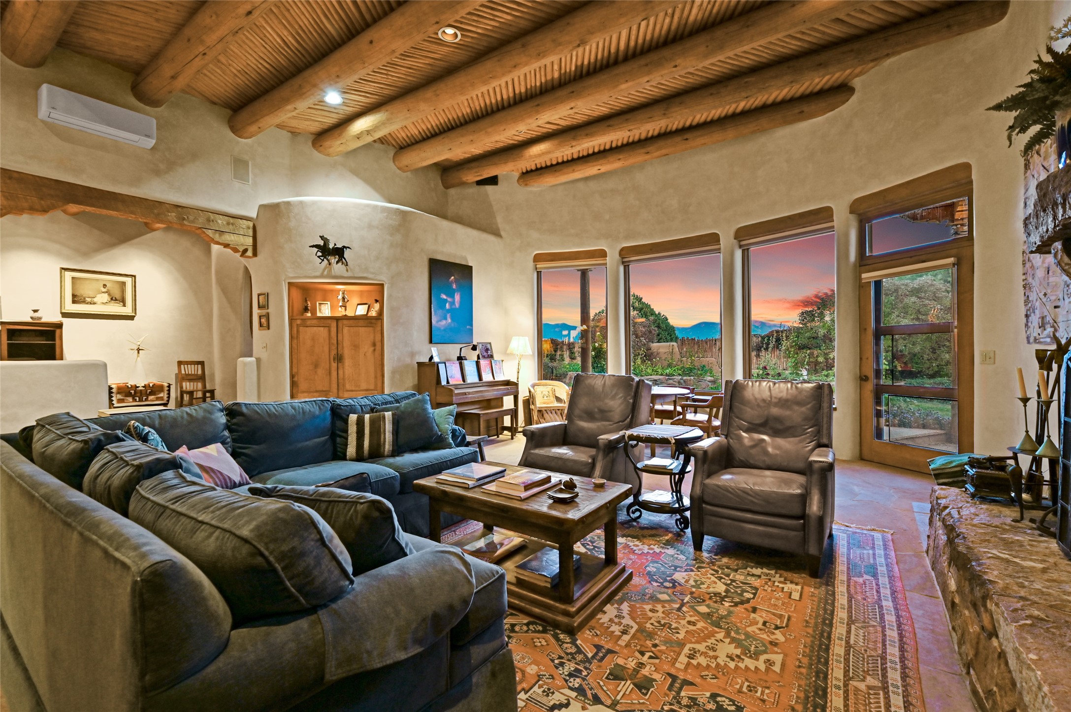 Welcome to a truly exceptional Northern New Mexico retreat--110 acres of serene beauty and luxurious living. This remarkable property features a stunning 4-bedroom, 3-bath primary residence once showcased in Enchanted Homes magazine, a testament to its timeless design, high-level craftsmanship, and one-of-a-kind charm.Inside, you'll find hand-carved beams, a magnificent stone fireplace, and warm, inviting spaces designed for comfort and elegance. The chef's kitchen is a dream for culinary enthusiasts, while multiple private patios and lush, thoughtfully landscaped gardens create a true oasis in the desert--perfect for quiet mornings, lively gatherings, and starlit evenings.Conveniently located just 10 quick minutes west of the Taos Regional Airport, this extraordinary estate is as functional as it is beautiful. A grid-tied solar system, private well, and high-speed fiber optic internet ensure modern sustainability and convenience. The land includes well-appointed outbuildings: storage, tack room, hay barn, and a 3-bedroom, 2-bath manufactured caretaker's home--ideal for guests, a ranch manager, or extended family.Take in breathtaking 360-degree views from every angle and enjoy the option for an elk hunting license, adding unique appeal for outdoor enthusiasts. Whether you dream of tending gardens, riding horses, or simply soaking up the peace and privacy under expansive skies, this property invites you to experience the very best of refined country living.If you've been searching for a luxurious private sanctuary that must be seen to be truly appreciated, this is the one.
