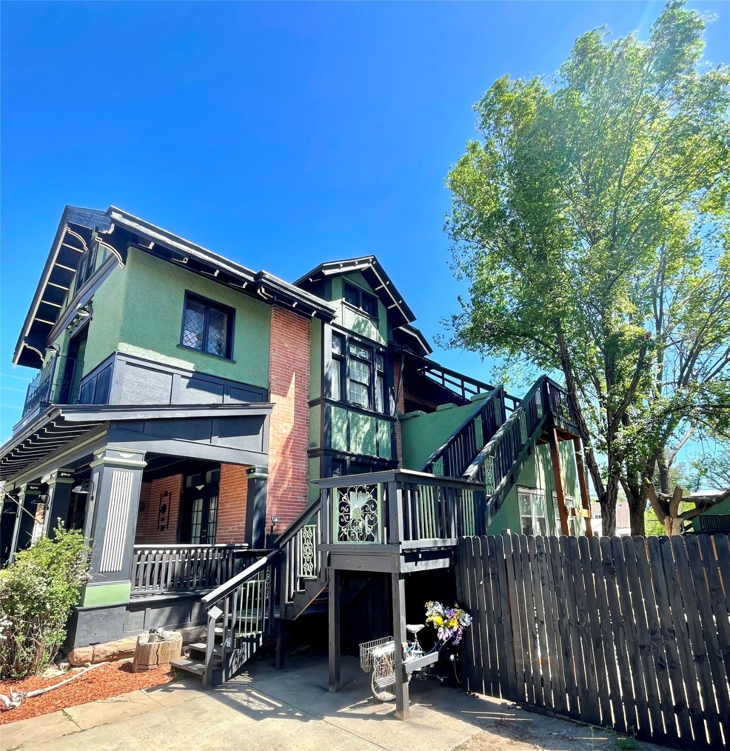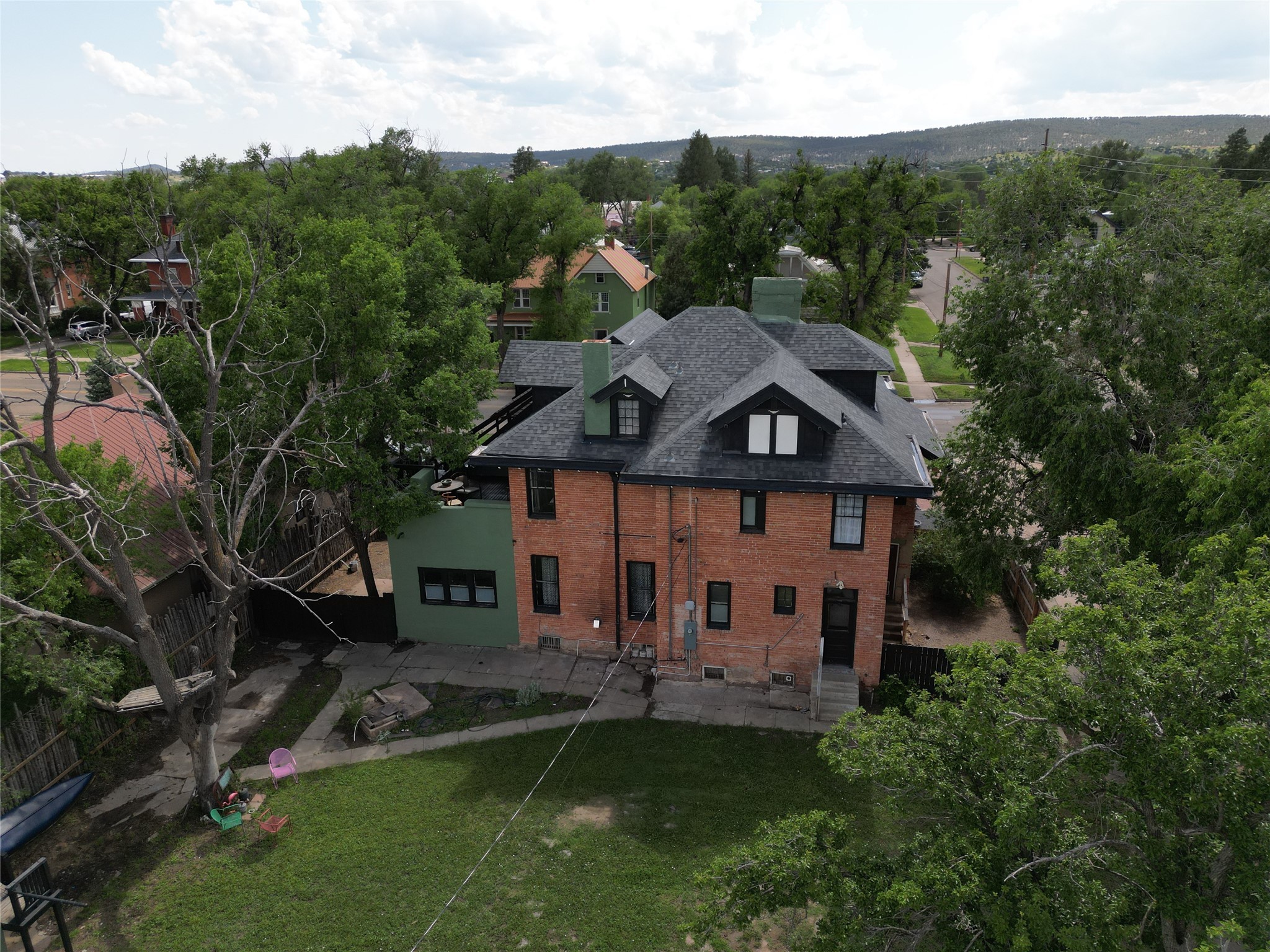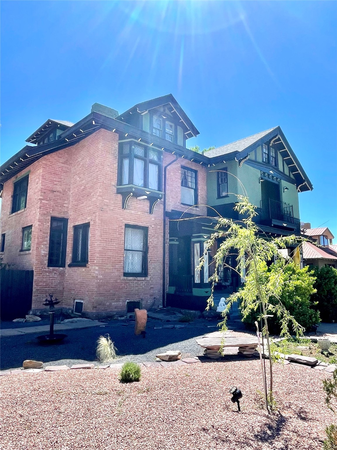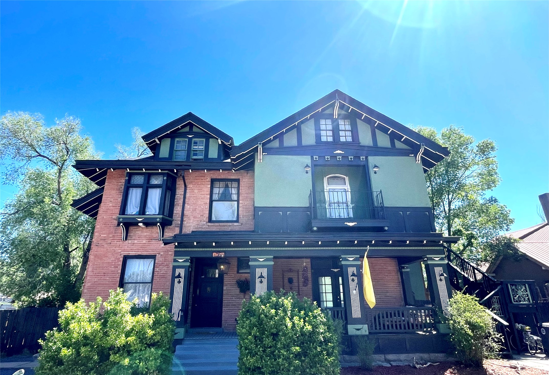 MOTIVATED SELLERS, BRING OFFER! 2025 historic preservation award winner. Gracious mansion designed by renowned Rapp and Rapp architects and built by historically significant merchant Cecilio Rosenwald (builder of historic Coronado theater) in 1913, utilizing the best materials and craftsmanship - the antique brass Antwerp Lion doorknobs still work perfectly! Recently restored and updated while preserving the historic charm. Hardwood floors, oak panelling, high coffered ceilings, many bay windows - enchanting details throughout! Too many updates to list including new: roof, boiler, granite counters, appliances, paint, landscaping, etc. Flexible floor plan - click video link! As you approach the home you are greeted by a large front porch. Enter the foyer through a towering oak front door. Ground floor includes a library-foyer with grand gas fireplace, living room with bay window, formal dining room with pellet stove, sunroom with doggy door to fenced yard, kitchen with breakfast bar and Forno gas range, walk in pantry, powder room, and a full bathroom. Take either the grand staircase or the servants stairs to the second floor which includes master suite with balcony, walk in closet and en suite bathroom, 4 other bedrooms, one with gas fireplace currently used as tv room, a deck, and a bathroom with laundry so you don't have to schlepp laundry up and downstairs! On the top floor is a 2 bedroom apartment that was originally built as servants quarters and has generated income as an airbnb. It can be accessed via the outdoor stairs with a separate entrance or from the inside of the main home for guests. The basement is partially finished with a great room, kitchen, bathroom, laundry, and several storage/hobby rooms. The back yard has 2 pear trees, a well for gardening, and a carriage house that has lots of potential. In town walkability near Highlands University, shopping, 10 minutes to Montezuma Hot Springs, 20 minutes Hermit's Peak and National Forest, on city water and sewer, so all the convenience and elegant luxury you would need. Be sure to click on the video link.Owner is listing realtor. Square footage is not guaranteed. Foo dog statues on front steps will not convey.