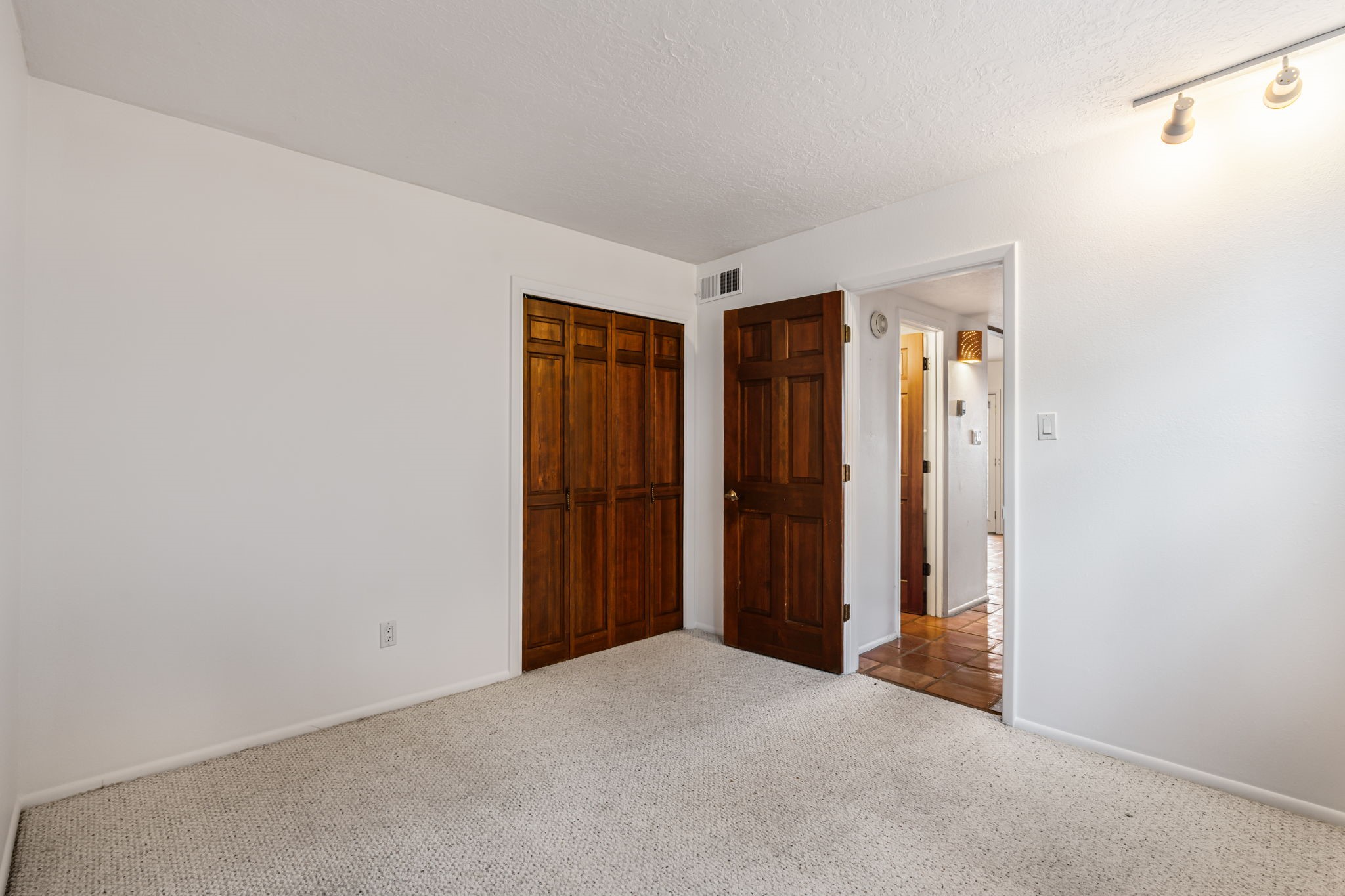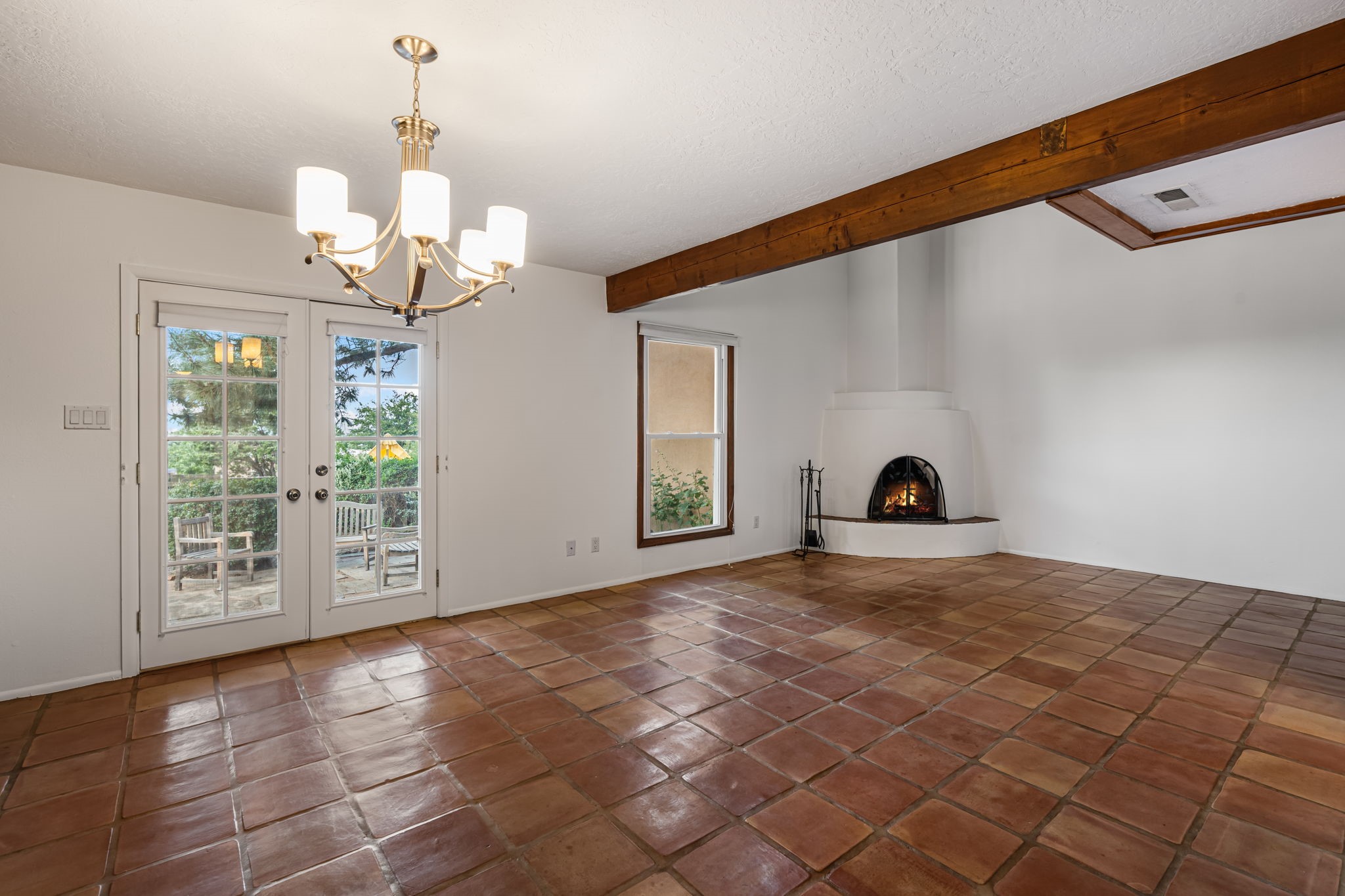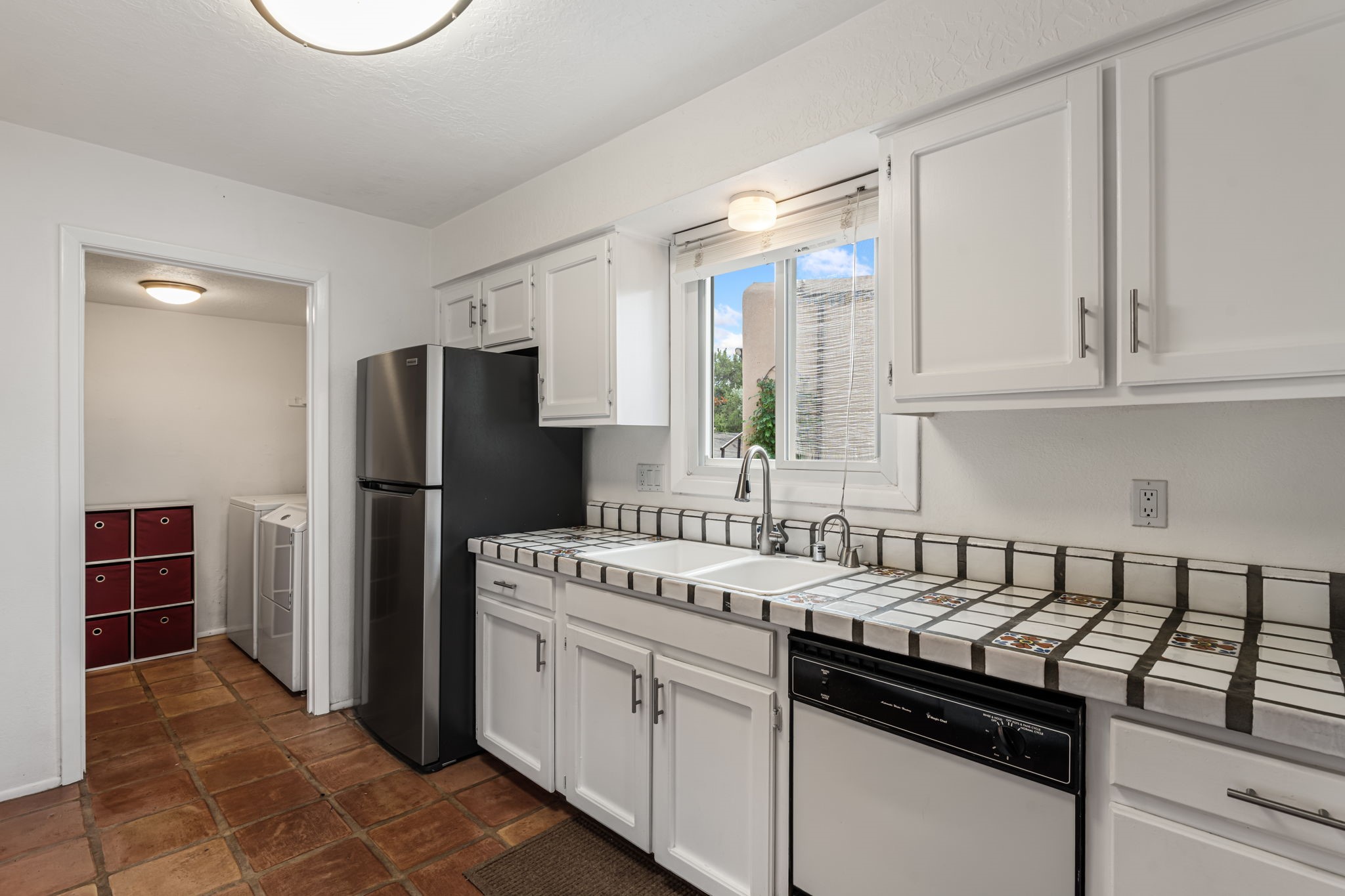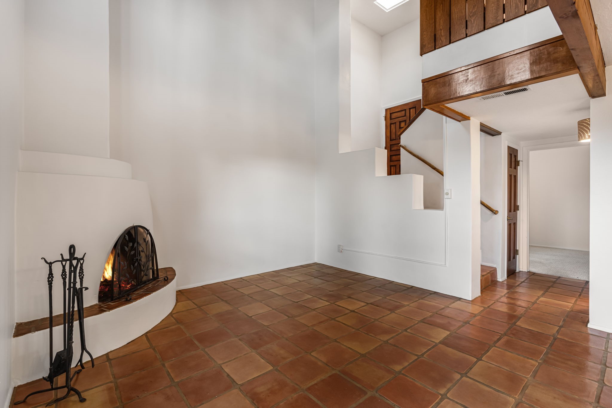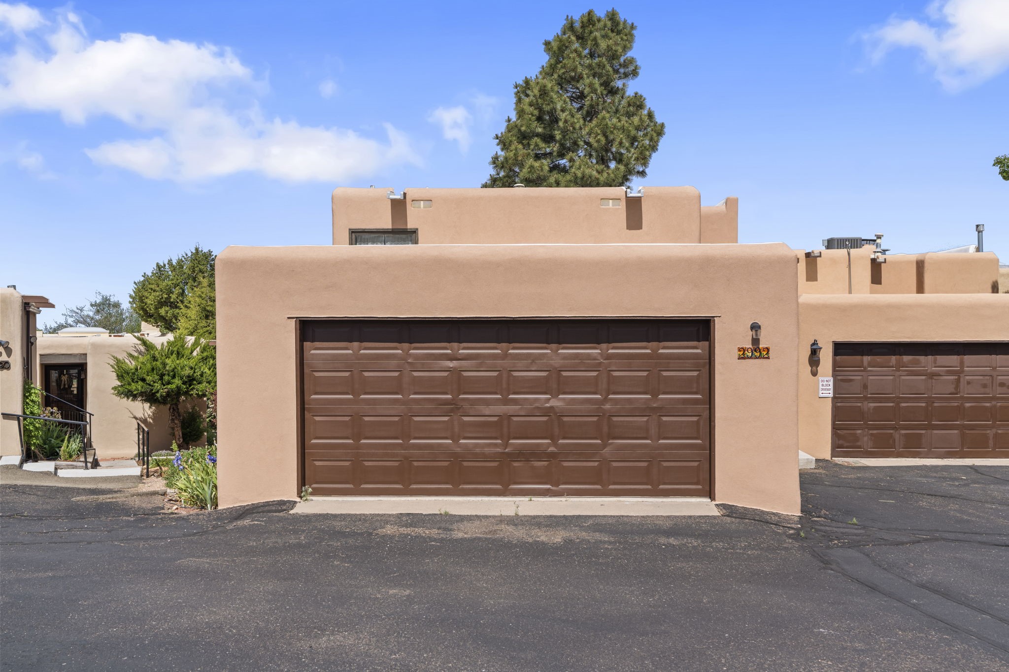 This stylish, freshly painted 3 bed, 2 bath tri-level home in the sought-after Park Plazas community blends Southwestern charm with modern updates.The spacious downstairs level invites you in with a tiled living room featuring striking two-story ceilings, interesting architectural detail and a dramatic Kiva fireplace--the perfect focal point for cozy gatherings. The open-concept dining area flows seamlessly into the well-appointed kitchen and provides direct access to a serene, shaded portal and flagstone patio, nestled beneath a majestic ponderosa pine. It's the ideal spot for al fresco dining or morning coffee, surrounded by the tranquility of a fully fenced backyard.This level also includes a bedroom, laundry area, and a convenient half bath, perfect for guests or multi-generational living.Upstairs, you'll find two generously sized bedrooms and a full bathroom with ample storage. The primary suite is a true retreat, opening to a sunny, recently rebuilt Trex deck--designed for low maintenance and long-lasting durability--where you can unwind while soaking in breathtaking sunset views of the Jemez and Sandia Mountains.With a newer roof (3 years old) and fresh stucco (2 years old), this home is move-in ready and built to last. A two-car garage adds practicality, while community amenities--including miles of walking trails, an off-leash dog park, tennis courts, a community garden, and more--elevate everyday living.Ideally located just minutes from shopping, dining, and all the cultural richness Santa Fe has to offer, this home is a rare find at a fantastic price. Don't miss your chance to own a slice of Southwestern paradise!