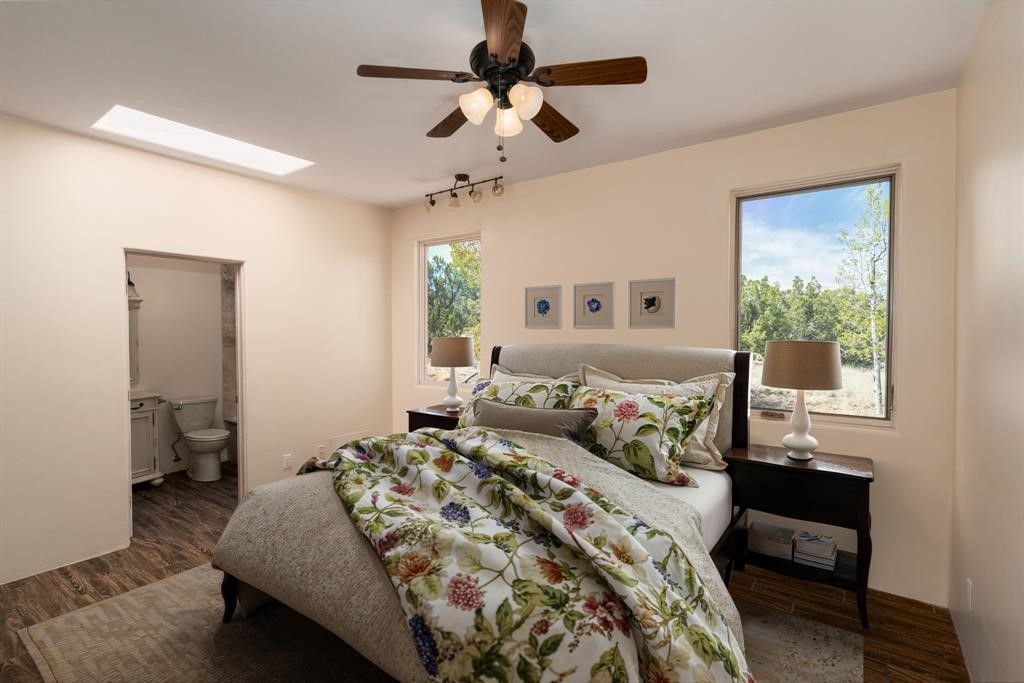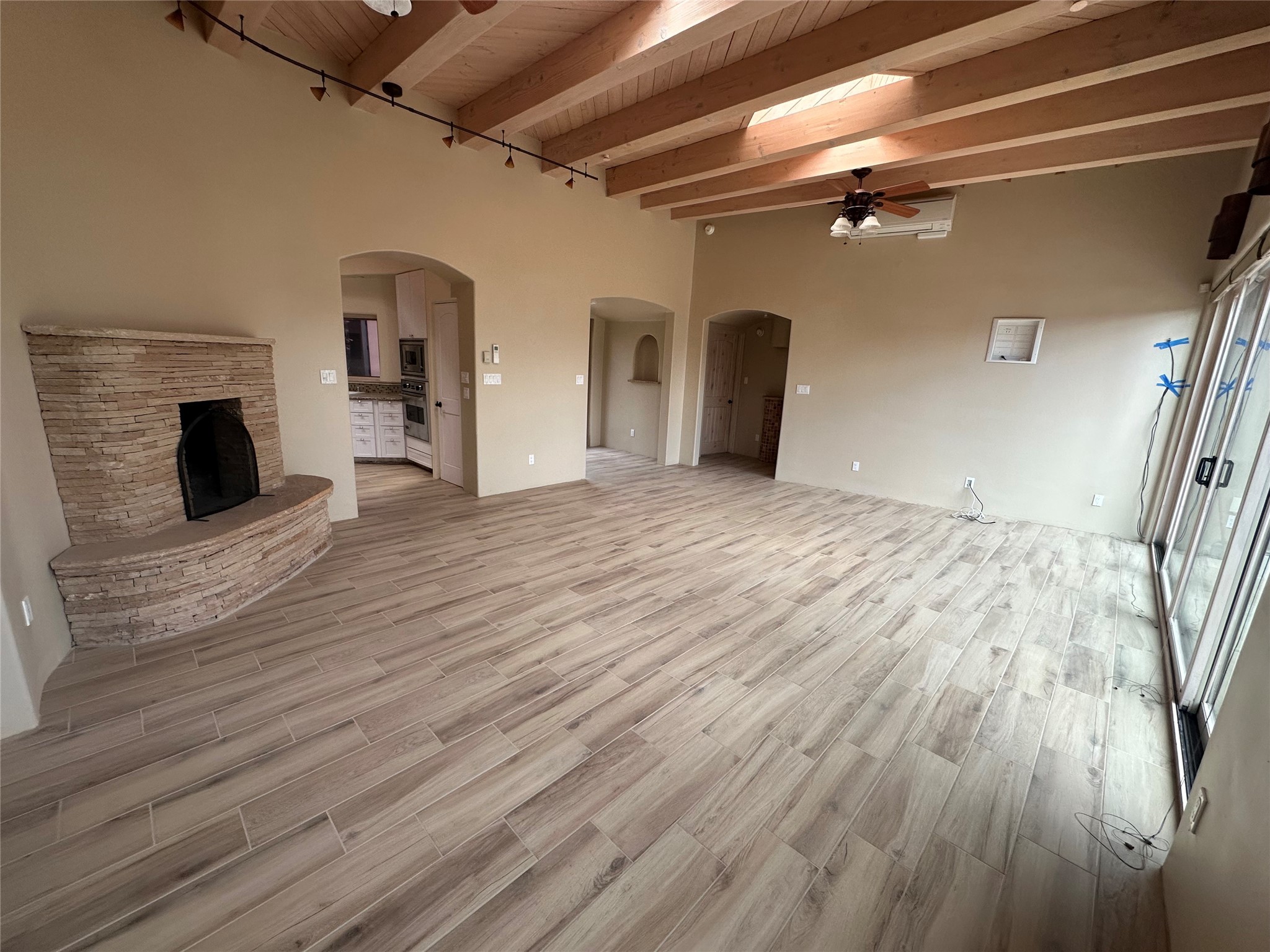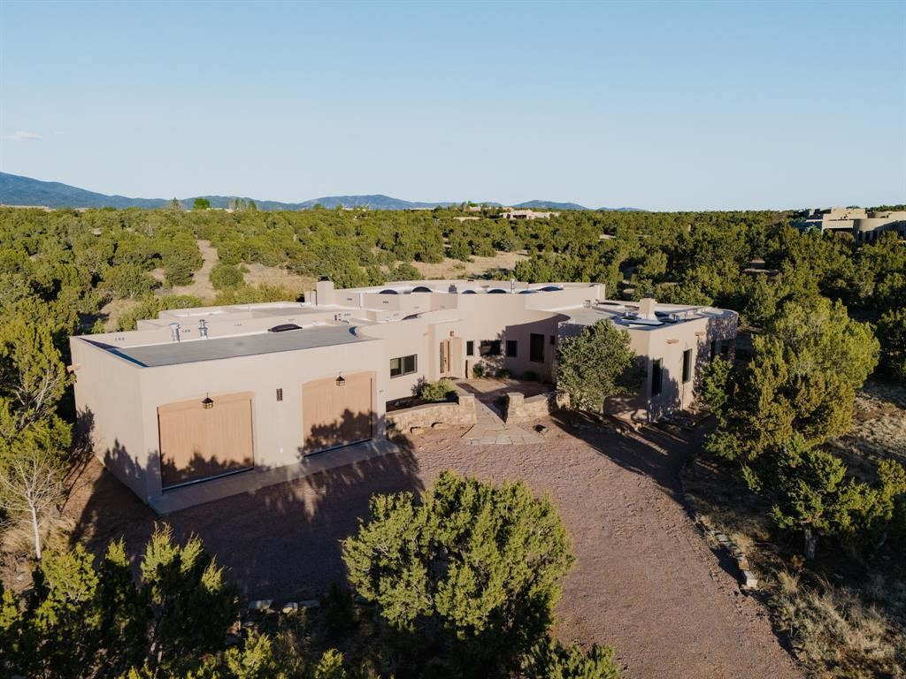 Luxury living in Sundance subdivision! This is where elegance meets natural beauty. This home is stunning with custom design and high-end finishes, an abundance of fireplaces, uniquely designed wood ceiling features and delightful nichos. You will find lovely outdoor portals, and an outdoor fireplace with lots of privacy to relax in a serene environment. Spiral staircase to the rooftop allows you to enjoy captivating views of the Sangre and Jemez. The gourmet kitchen features custom cabinetry, a high-end Viking stove, granite island that any gourmet cook would enjoy. 3 Bedrooms/3 1/2 bathrooms along with beautiful light filled living room, Formal Dining room, separate office as well as a guest wing with guest bedrooms with en-suite baths and their own private family room/media room. Enjoy the hiking path located directly behind the fenced-in back yard which leads to miles of La Tierrez hiking and biking. Your "Home Sweet Home" is calling your name.