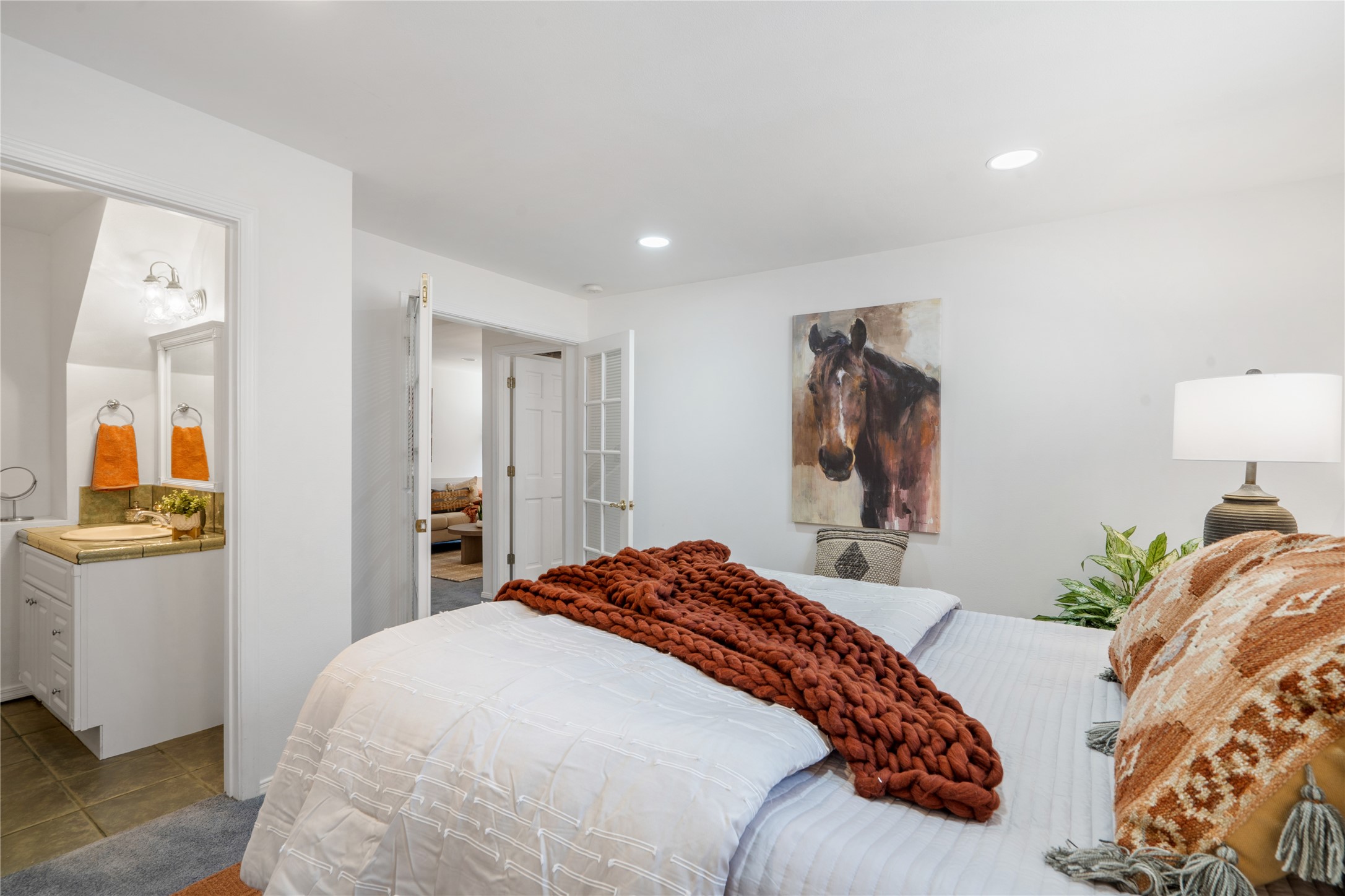 On the market for the first time and sporting a brand new roof, this elegant custom home offers a timeless traditional design and thoughtful layout. Enter through the gracious foyer into the formal dining room--ideal for holiday gatherings--then flow effortlessly into the open-concept kitchen and main living spaces. Step outside onto the recently refinished deck to entertain under the New Mexico sky or savor your morning coffee in peaceful privacy.Downstairs, discover a cozy lower level that doubles as a private retreat: a spacious home office, comfortable living area, and a bedroom with its own ensuite shower bath--perfect for guests or extended family. Upstairs, the conveniently located laundry room puts an end to stair-climbing chores. The serene primary suite boasts a generous walk-in closet and spa-like bath, while two additional bedrooms share a Jack-and-Jill bath.Blending classic architecture with comfortable upgrades, this North Mesa home is ready to welcome its next chapter of memories. Schedule your private tour today!