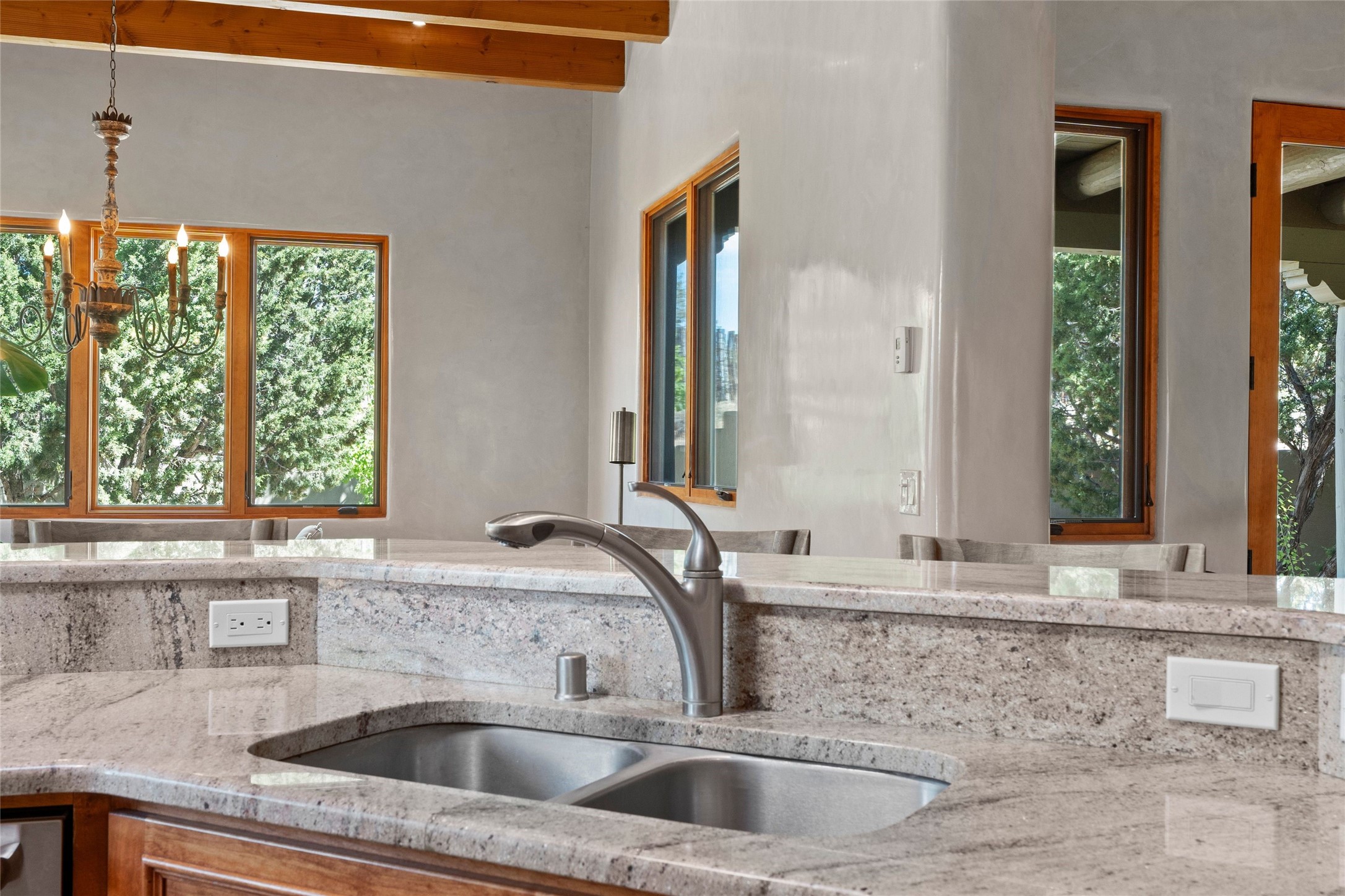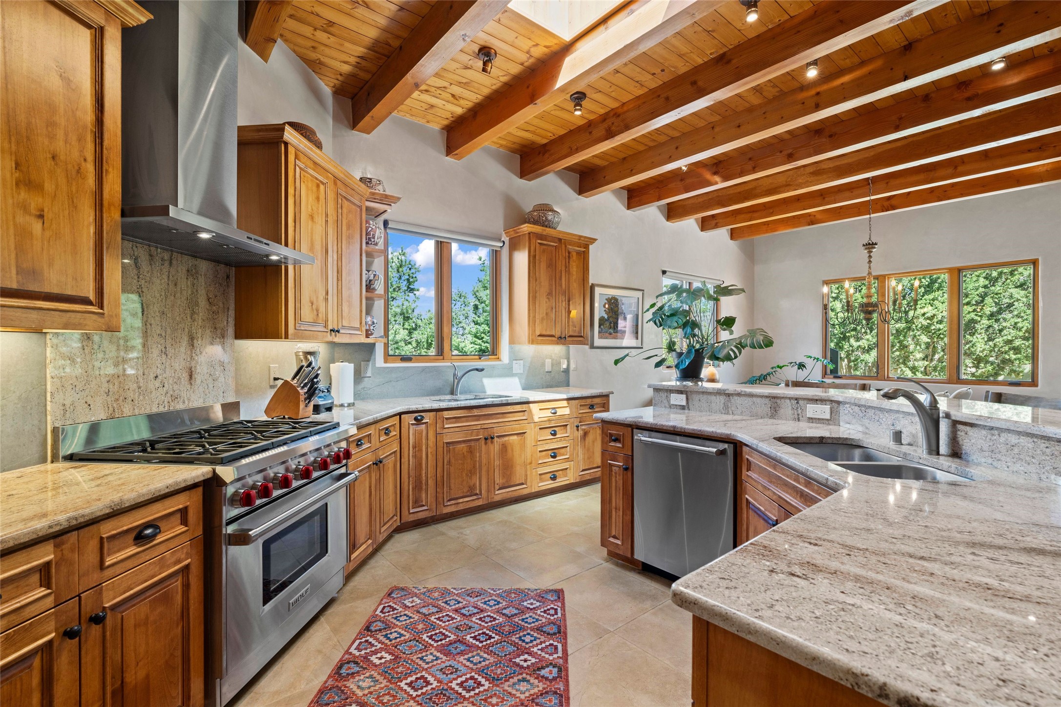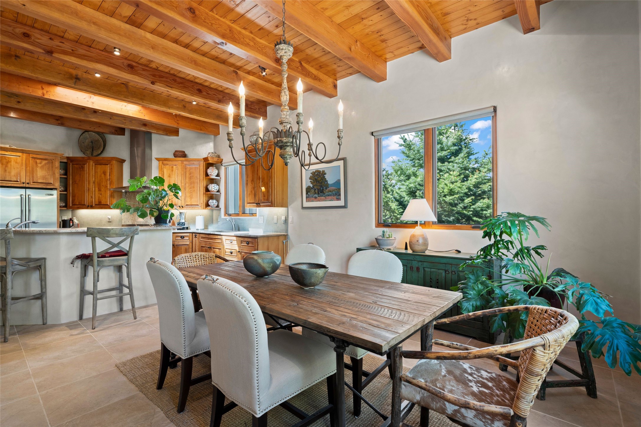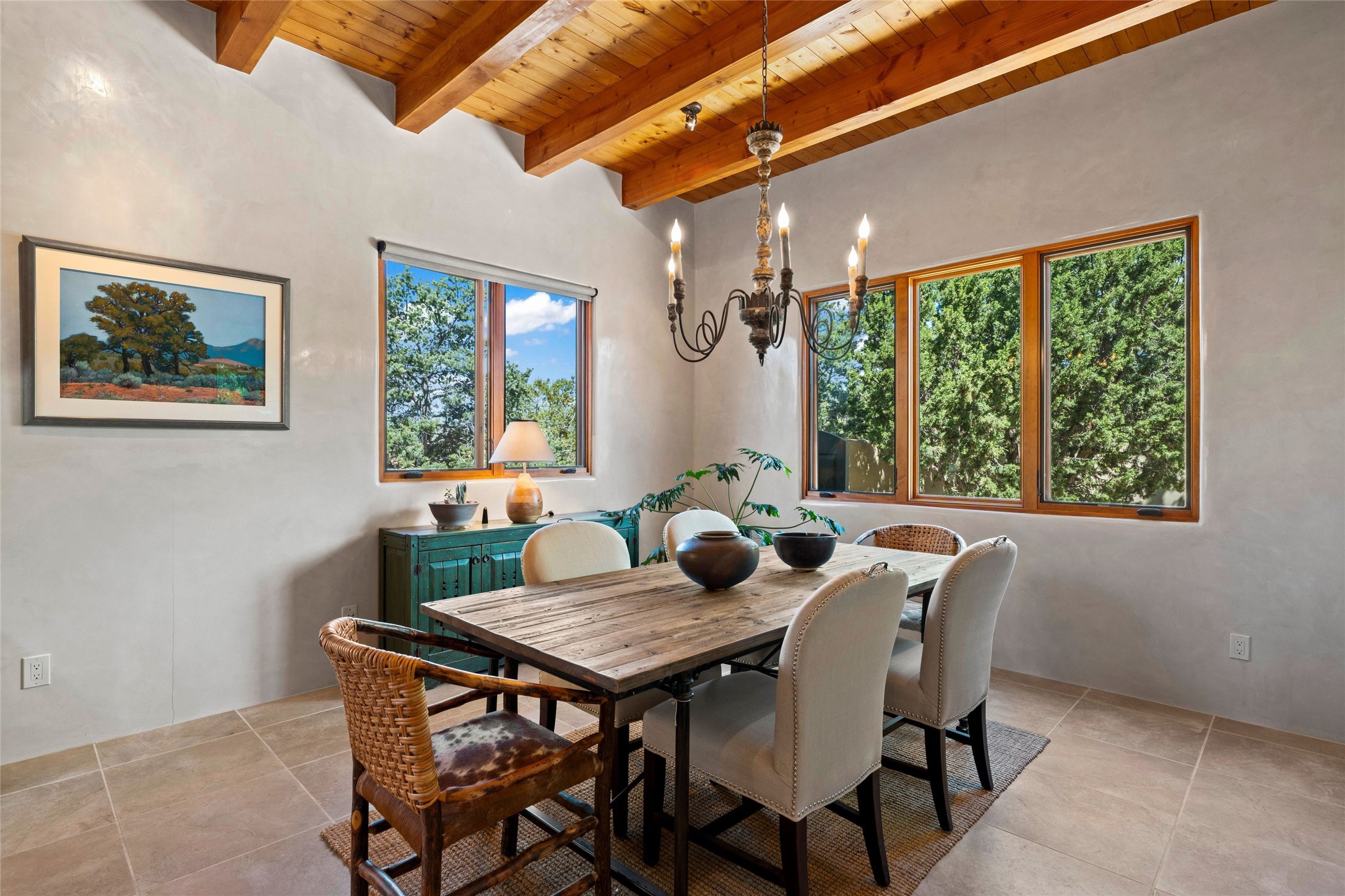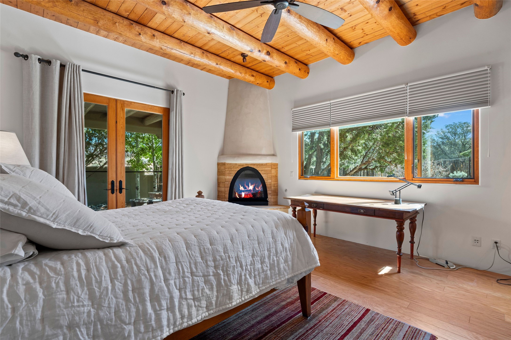 Explore the inviting three-bedroom, two-bath home situated on a cul-de-sac lot on 1.06 acres in the highly desirable, close in neighborhood of Valle Chamiso. Constructed in 2013 by John Di Janni Homes, this residence showcases high-end finishes that elevate its appeal, including expertly plastered walls and three fireplaces, featuring a distinctive outdoor kiva. The interior is enhanced with knotty alder doors, tile and wood flooring, and traditional vigas and beams that add a touch of elegance. The kitchen stands out with premium appliances, including a 36" Wolf range, creating an ideal space for culinary exploration. This single-level home offers convenience with no interior steps, making it accessible for everyone. Recognized with the 2013 Hacienda Homes Parade 2013 People's Choice Award, this property reflects a commitment to quality and thoughtful design. An oversized, insulated two-car garage provides generous space for vehicles and storage needs. Environmentally conscious features include compliance with the City of Santa Fe Green Code, a 57 HERS rating, Energy Star appliances, and a tankless water heater, ensuring energy efficiency and sustainability. Enjoy outdoor living with the charming portal and patio, perfect for gatherings or relaxation. The enclosed backyard features ample green space, ideal for gardening or leisure activities. Conveniently located near Santa Fe Plaza, Museum Hill, and a variety of dining, medical facilities, and shopping options, this property combines luxury with practicality in a vibrant community.