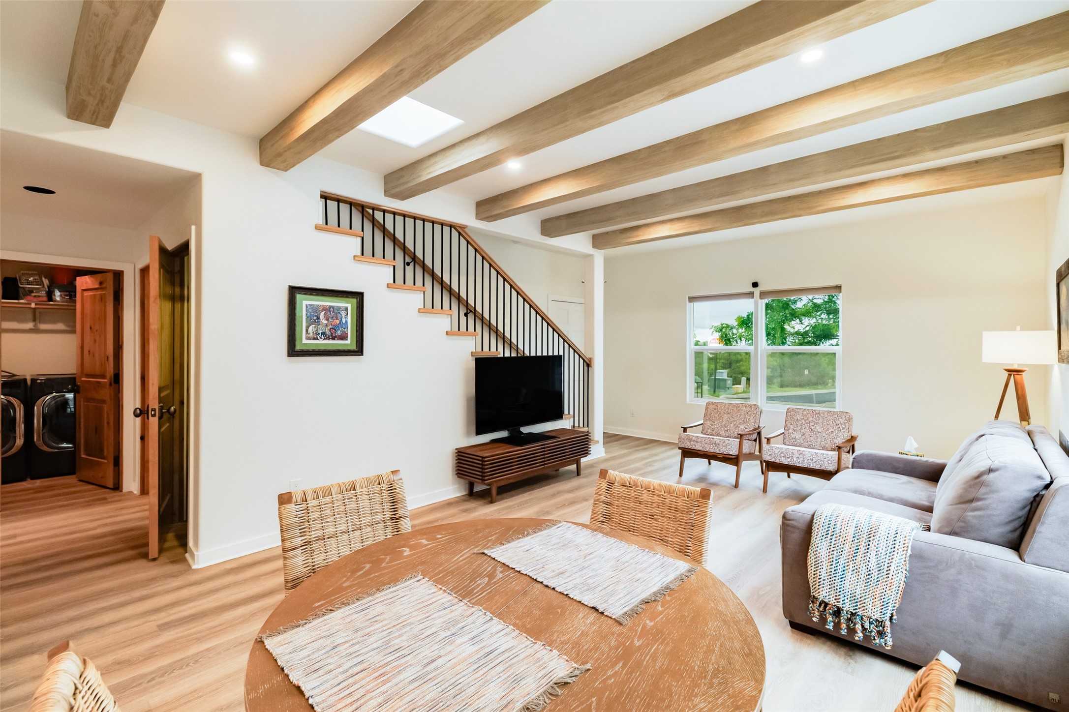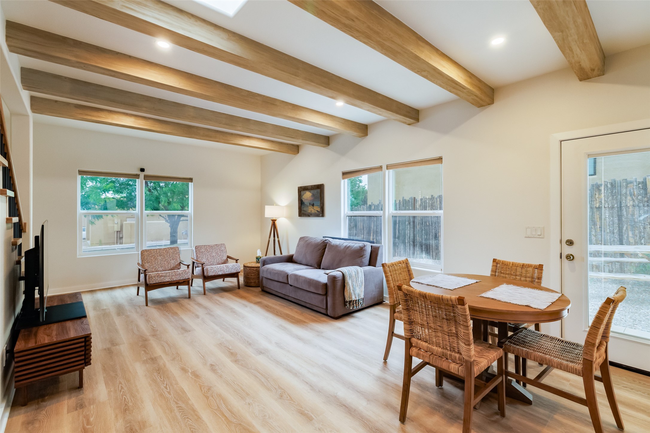 Stunning Remodeled 3BR/2BA Home in Scenic Santa Fe - Resort-Style Neighborhood Amenities!Welcome to your dream home nestled in one of Santa Fe's most desirable neighborhoods--just 15 minutes from the vibrant town center and surrounded by breathtaking views of the Sangre de Cristo Mountains. This fully remodeled three-bedroom, two-bath residence combines modern upgrades with timeless Santa Fe charm, offering comfort, style, and an unbeatable lifestyle.Neighborhood Amenities: Clubhouse for gatherings and events Tennis Courts & Pickleball Court Playground & multiple Parks Basketball Court Village Plaza & Labyrinth Bocce Ball Extensive Walking TrailsHome Features: 3 Bedrooms / 2 Baths: Detached 2-Car Garage. Thoughtfully designed and fully remodeled. Third Bedroom/Office: Features a closet area that doubles as a built-in computer/desk workspace--perfect for remote work or study. Bright & Airy: Freshly painted inside and out with abundant natural light. Solid Core Interior Doors: For quiet and privacy. Staircase with Solid-Wood Steps: Adds warmth and architectural interest. Custom Features: Unique accent details throughout. All New: Appliances, kitchen cabinets, bathroom and kitchen tile, flooring, and quality fixtures/hardware. Ceiling Fans: For year-round comfort. Wired for Security System.Outdoor Living: 360 Walled/Fenced Yard: Enjoy privacy and security. Covered Front Seating Area: Relax with unobstructed views on a quiet street. Rear Patio with Mountain Views: Ideal for entertaining or peaceful evenings. Large, Fully Landscaped Lot: Mature shade trees and room to expand. No Buildings in Front: Enjoy uninterrupted vistas of Santa Fe's scenic beauty.Garage & Expansion: Two-Car Garage: Fully finished interior. Architectural Plans Included: Ready for possible expansion. Plenty of Easy Street Parking.Additional Highlights: Brand New Water Heater/Boiler System. Many Custom Upgrades and Features.This is a rare opportunity to own a move-in ready home with every modern convenience, in a community rich with amenities and natural beauty. Whether you're seeking a peaceful retreat or an active lifestyle, this Santa Fe gem has it all!Schedule your private tour today and experience the best of Santa Fe living!
