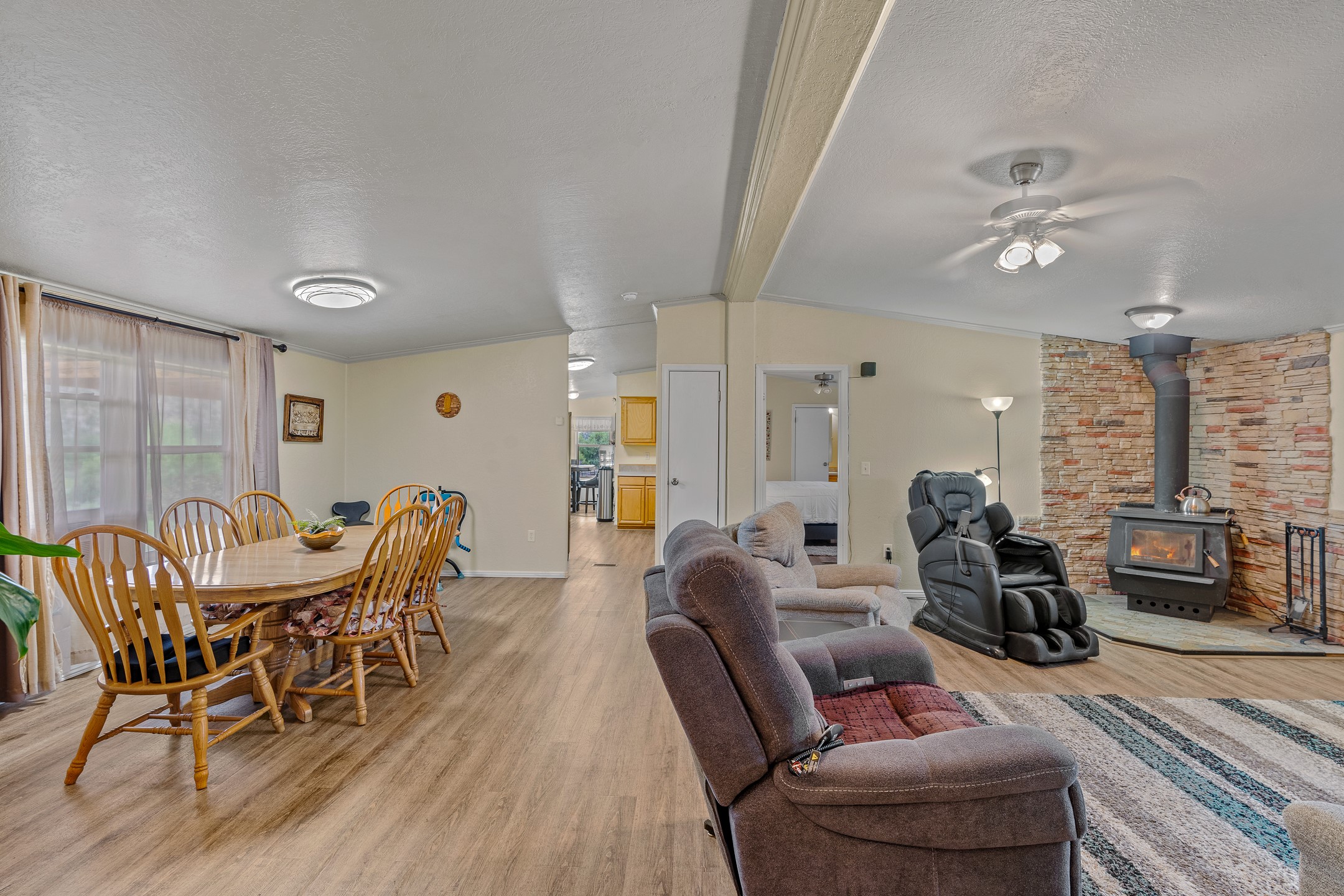 Nestled in the serene, green valley of La Madera--between the vibrant art hubs of Santa Fe and Taos--this well-maintained 1,500 sq ft manufactured home offers peaceful living in a breathtaking Northern New Mexico setting. Surrounded by stunning mountain views and with the gentle Rio Tusas flowing nearby, this 3-bedroom, 2-bathroom home sits on a spacious 1.029-acre lot, perfect for those seeking privacy, tranquility, and natural beauty.The property is ideal as a full-time residence, weekend getaway, or artist's retreat. Enjoy star-filled skies, fresh mountain air, and endless opportunities for hiking, fishing, and exploring the surrounding wilderness.Exceptional Opportunity:Also available under a separate sale is an adjacent 39-acre parcel of prime irrigated farmland (MLS#202502567). With ample surface water rights and two historic acequias flowing directly through the property, this fertile land is ready for agricultural use--ideal for farming, ranching, or creating your own sustainable homestead. Properties with this kind of water access and rich soil are increasingly rare in Northern New Mexico.