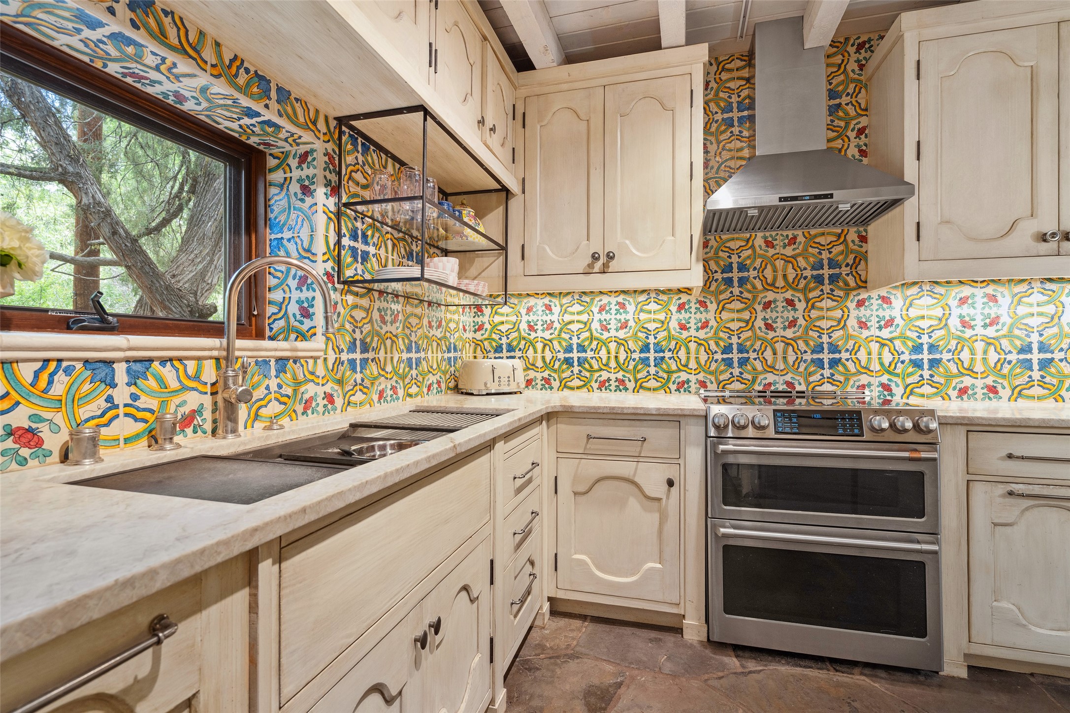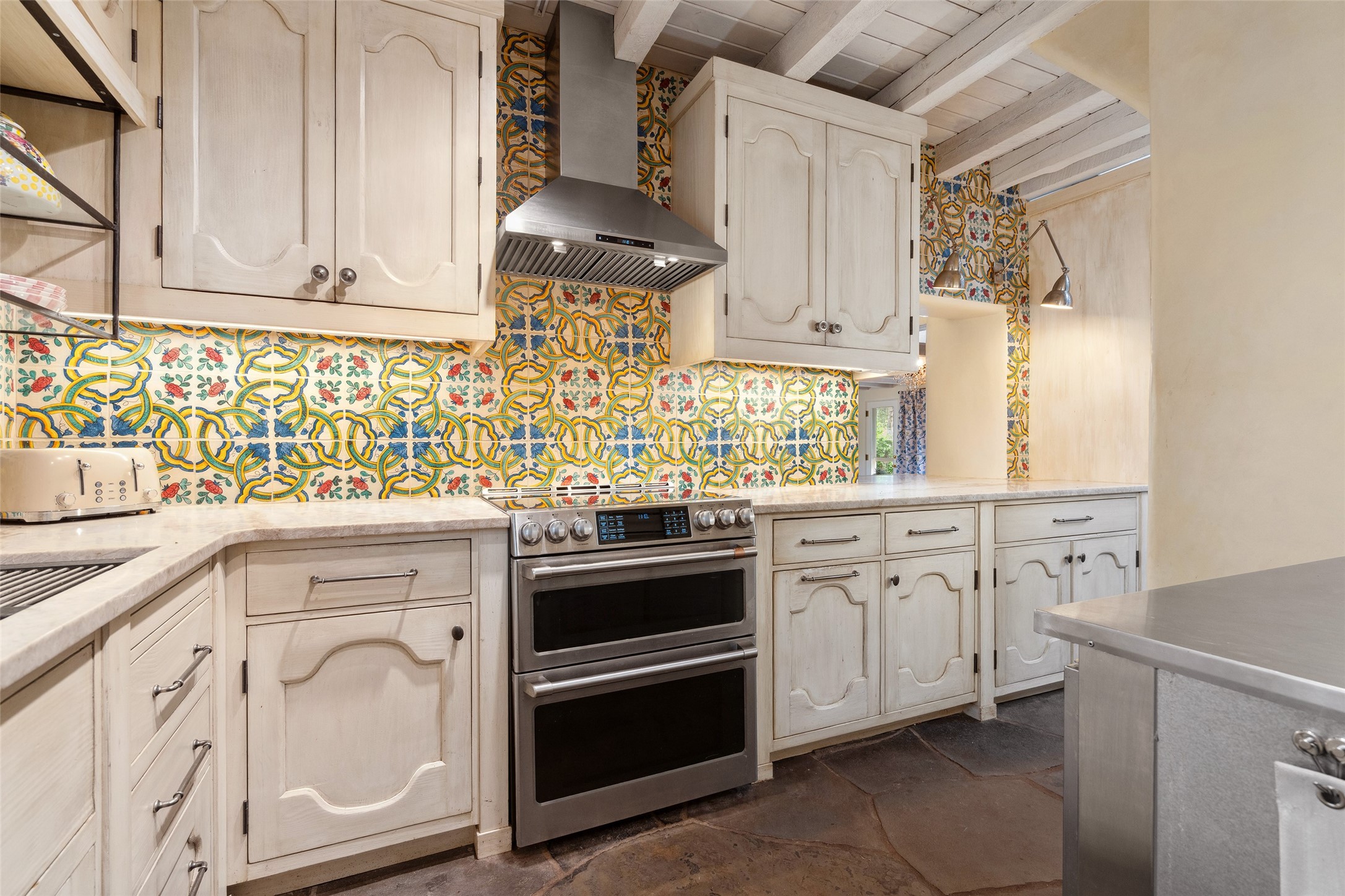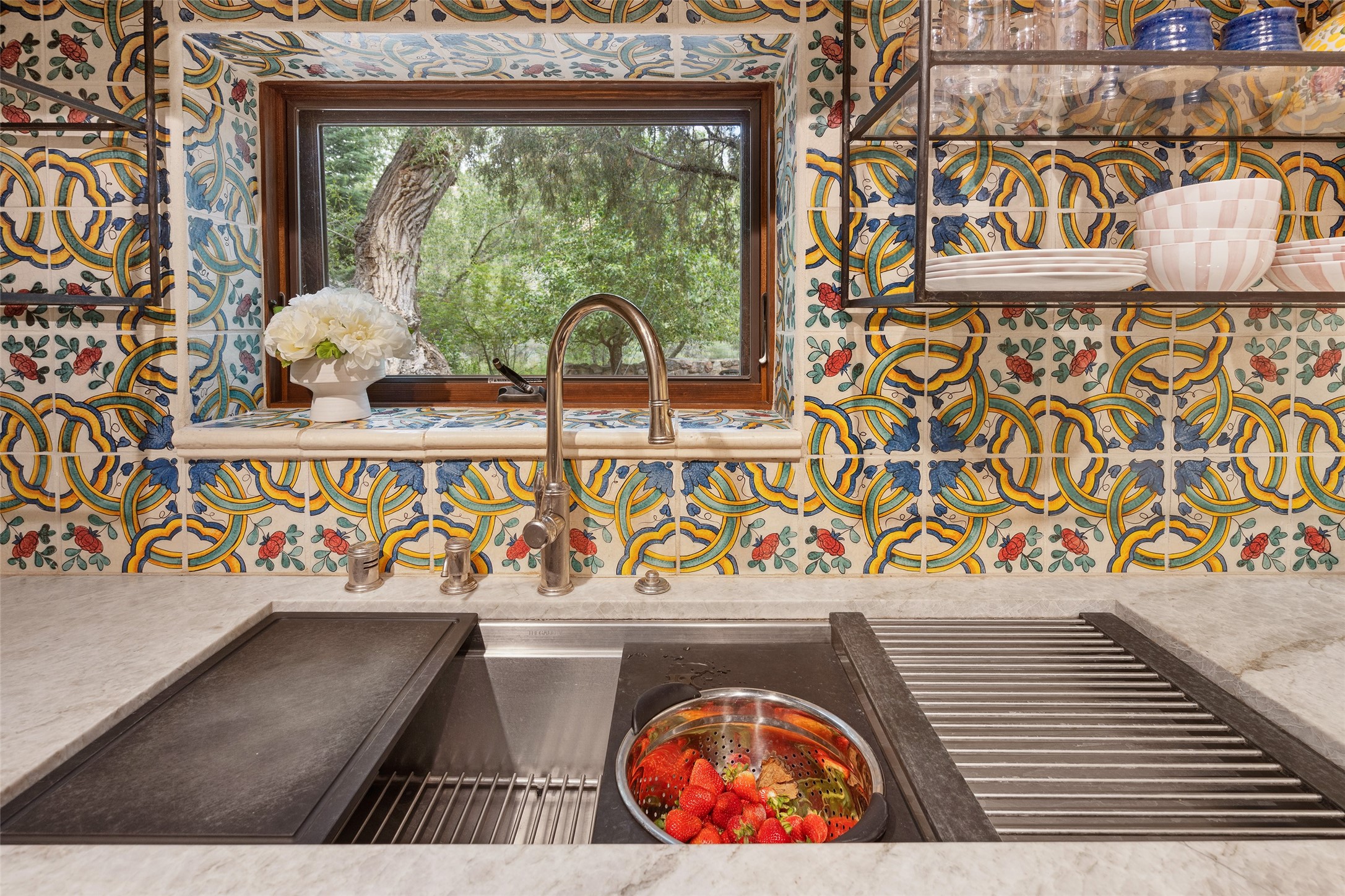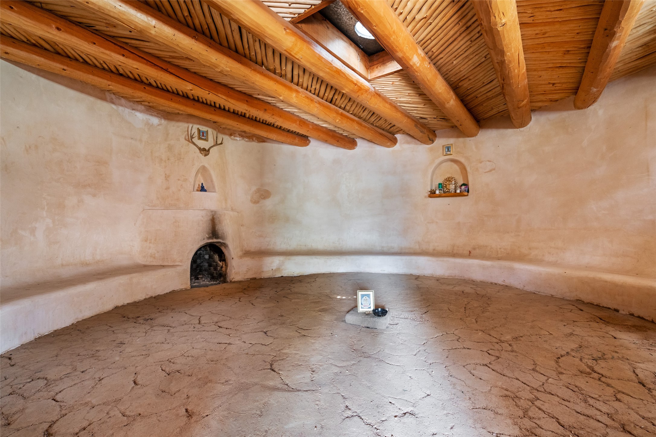 Nature-lover's paradise on 6 Acres- Tucked beneath red rock hills--Cross the bridge from Sibley Road and enter your private sanctuary nestled on six acres of lush, mature land in the serene community of Caoncito. This one-of-a-kind property features a thoughtfully updated three-bedroom, two-bathroom adobe and frame main house that blends timeless charm with modern luxury. Highlights include fully renovated luxury bathrooms and a gourmet kitchen with artisan tile, locally crafted ironwork throughout, and new sustainable wood floors. The home showcases diamond finish plaster and low-VOC finishes, ensuring both beauty and environmental consciousness. The hand-built guest house, perfect for visitors, rental income, or a creative studio, includes a cozy bedroom, bath, kitchenette, and a loft. Attached is a greenhouse for year-round gardening. Outdoors, you'll find a detached carport/shop featuring stonework sourced from the nearby Glorieta Mesa, which doubles as an open-air workspace or additional storage. A traditional underground kiva structure provides a private ceremonial space.The grounds are a horticultural haven with old-growth cottonwoods, pions, and raised garden beds. A private well adds to the property's potential for self-sufficient living. Whether you're a homesteader, gardener, artist, or seeking a peaceful retreat, this property offers the perfect setting.Set in a classic rural NM neighborhood, the house sits on three acres fenced in with coyote fencing, providing safety and privacy. An additional three acres remain wild, with a neighborhood path leading you to public hiking trails and sunset views. Located just 25 minutes from downtown Santa Fe, this tranquil retreat offers the best of both worlds: a private haven with access to the vibrant city. With its artisanal remodel and high desert landscape, this property is an extraordinary opportunity for those seeking comfort, luxury, and self-sufficient living.