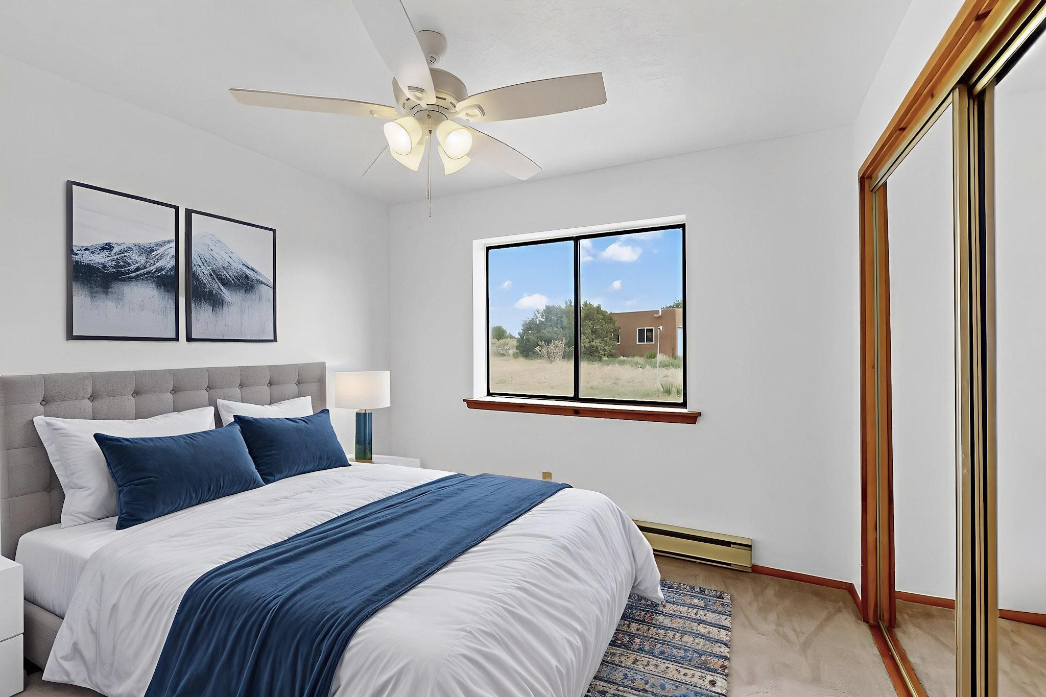 Submit an offer today!!! Beautifully refreshed Pueblo-style gem nestled on 1.33 acres in the highly desirable Eldorado subdivision of Santa Fe! Listed below the appraised value, this charming 3-bedroom, 2-bathroom home offers the perfect blend of comfort, character, and modern updates--ready for you to move right in and enjoy.Freshly painted inside and out, including doors and trim, this home shines with new life and pride of ownership. Step inside to discover a light-filled layout that includes a bonus office/den space with brand-new flooring--ideal for remote work, a creative studio, or a cozy reading nook.The kitchen boasts a brand-new electric stove, while the rest of the appliances have been cleaned and serviced for optimal performance. The home also features a 1-year-old gas wall heater, ensuring efficient warmth during Santa Fe's cooler months. All vanities, cabinets, window sills, and entry thresholds have been re-stained and sealed, adding a fresh, polished touch throughout.The oversized two-car garage provides ample storage space, and the spacious 1.33-acre lot offers stunning views in every direction, with nearby horse properties and open skies that capture the true essence of New Mexico living.Located in the Eldorado community, residents enjoy access to top-notch amenities including a community pool, miles of scenic hiking and biking trails, a library, senior center, local shopping, schools, and restaurants. Plus, with easy access to the highway, commuting to downtown Santa Fe or beyond is a breeze.This is more than just a house--it's a lifestyle. Don't miss your opportunity to own a refreshed, move-in-ready home in one of Santa Fe's most sought-after neighborhoods. Schedule your showing today and fall in love with 61 Verano!