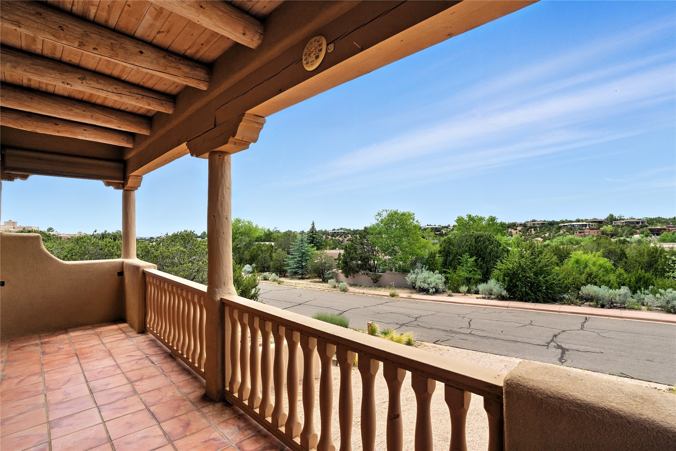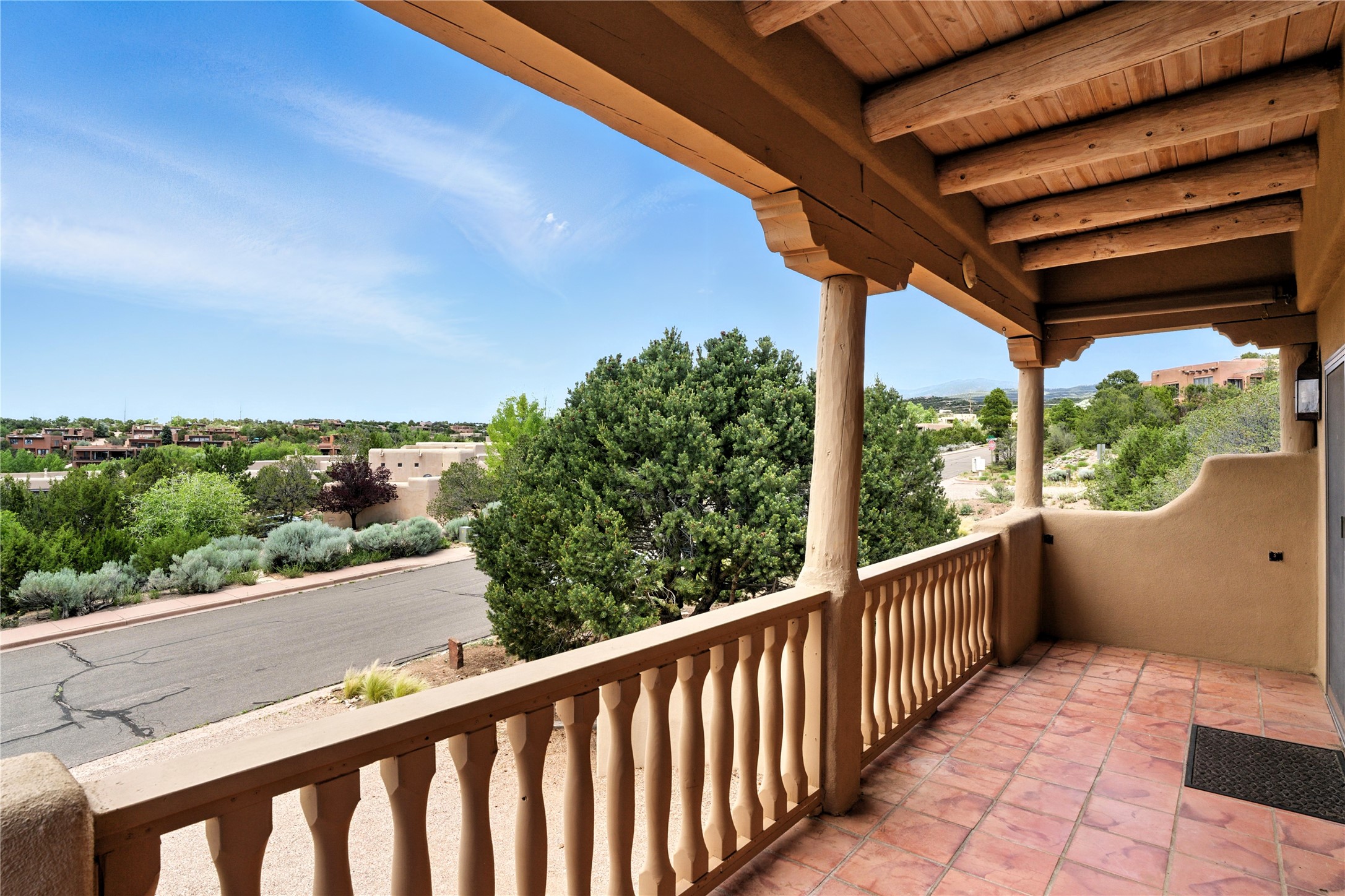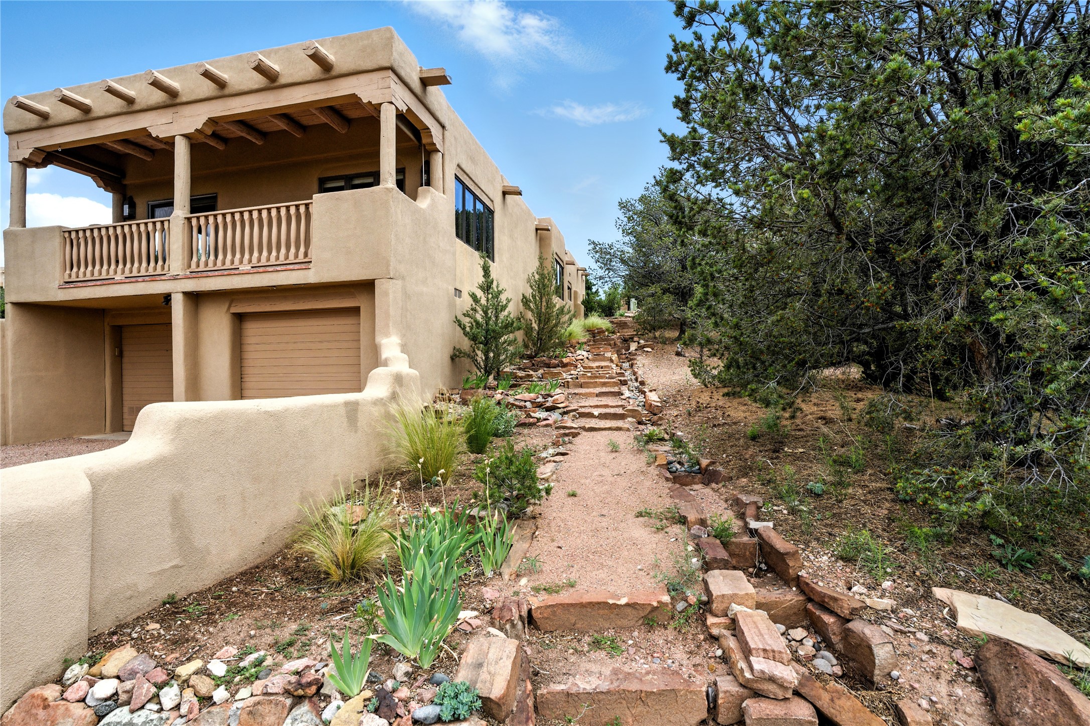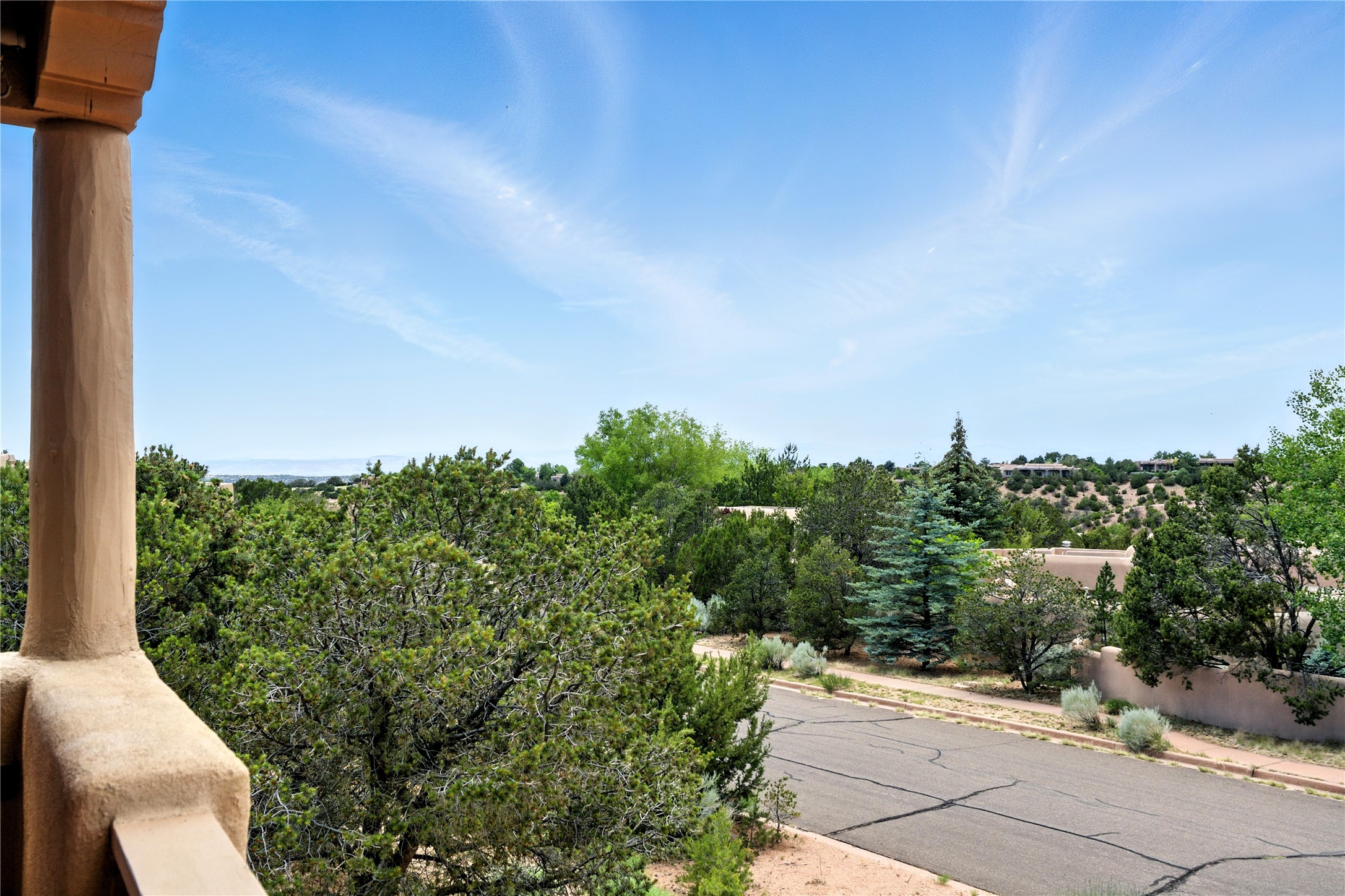 Significant Price Reduction! Lovely home in Estancia Primera with outstanding views! Enjoy dramatic western and sunset views from your balcony located directly off the living room. Open and spacious living room with fireplace, dining, kitchen areas. Upstairs also includes a guest bedroom and bath. Separated by a small staircase, enter the master suite with wood floors, kiva fireplace and a private patio. Ground level offers a 2 car garage and a private den/multi purpose room with a sauna! In the recent past, the owners chose to install a "lift" in lieu of the staircase to approach the upstairs/main living level. The proximity to the Santa Fe Plaza and all downtown in a 5 minute drive, or for the skiers/oudoorsy, Hyde Park Road is right there to take you into the mountains.