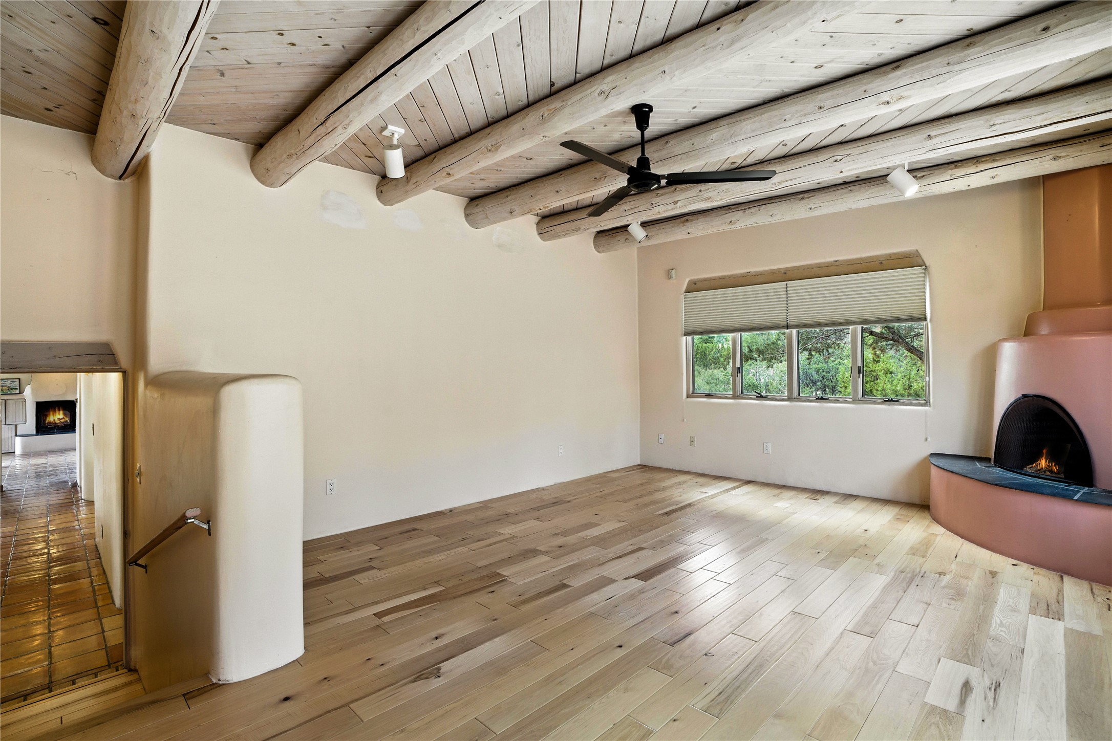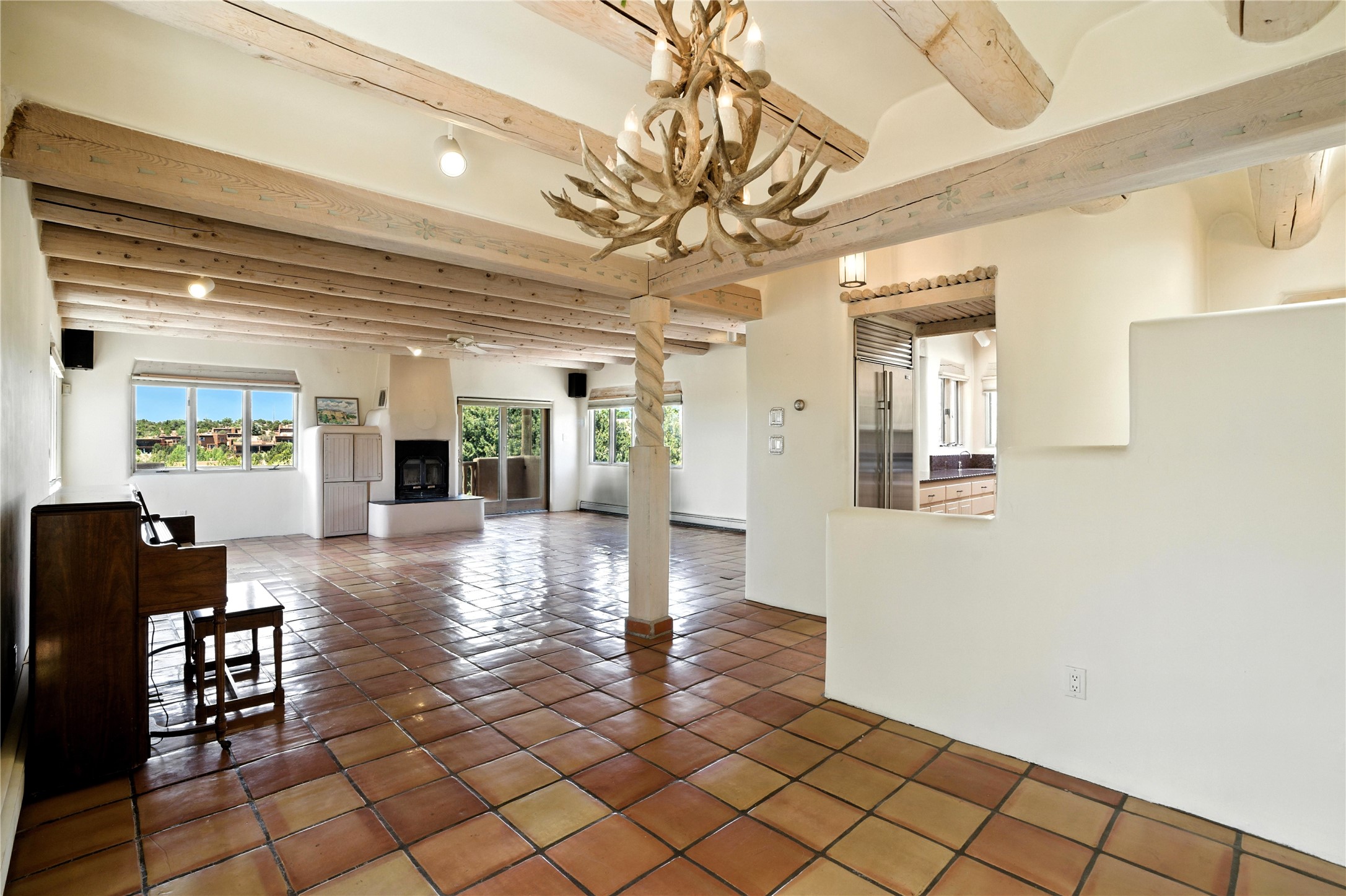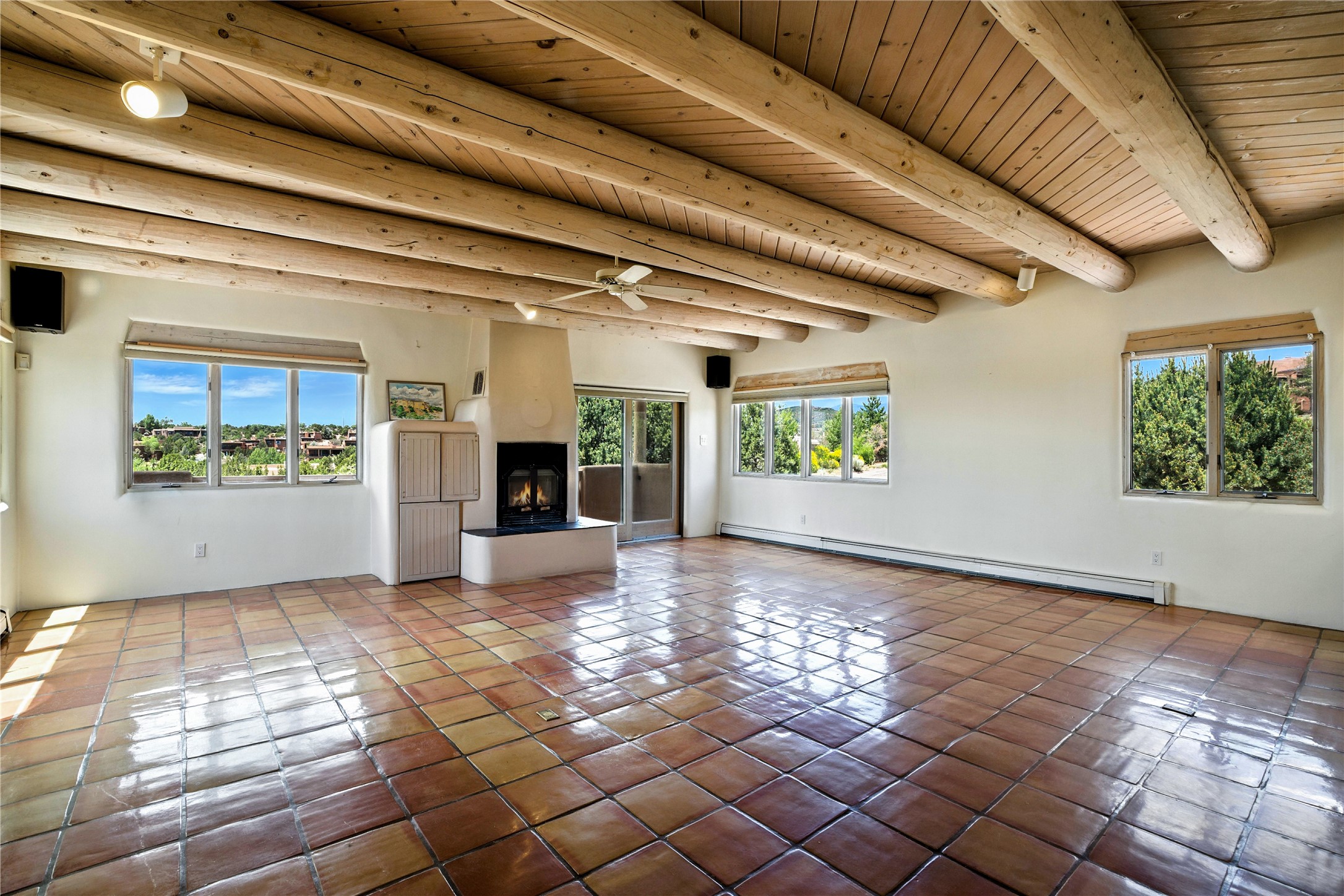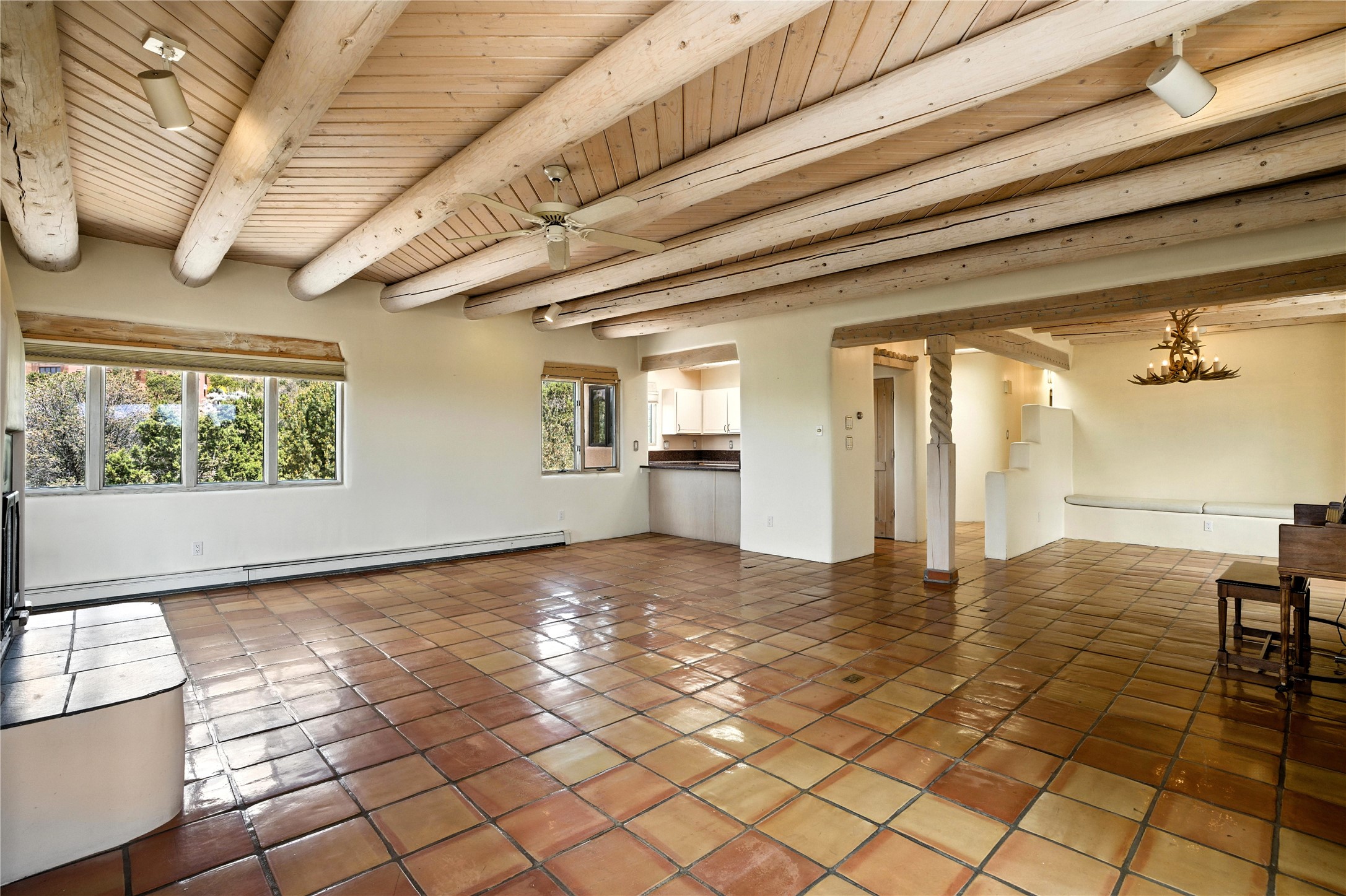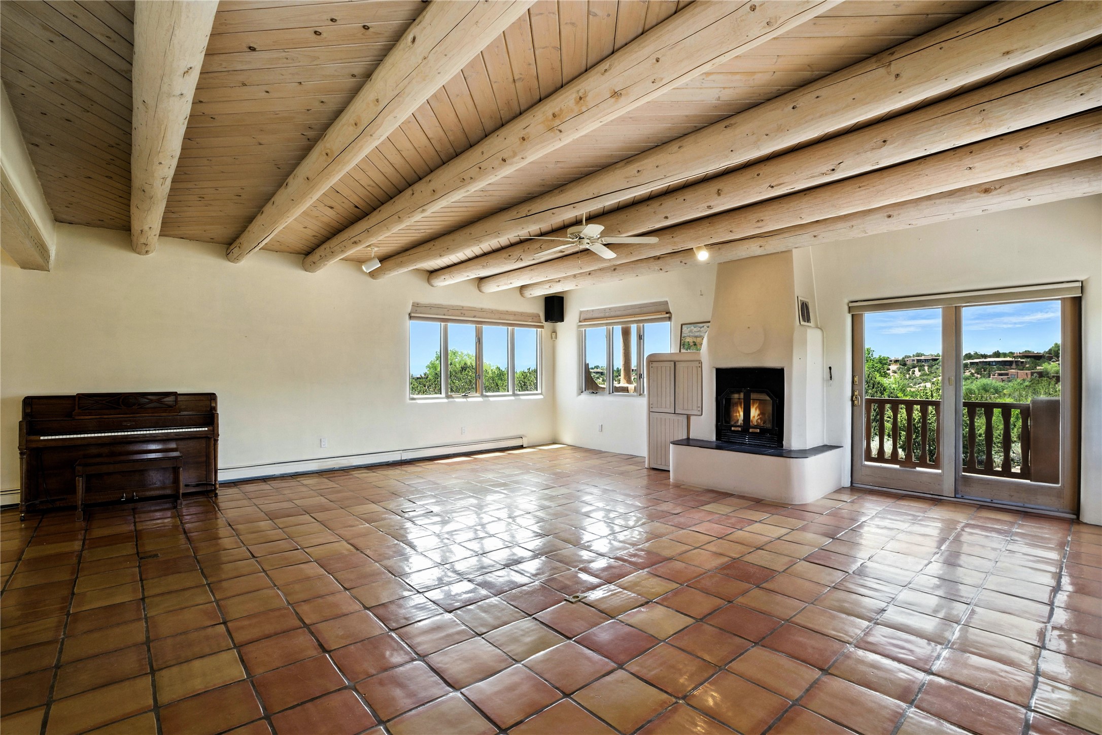 Significant Price Reduction! Lovely home in Estancia Primera with outstanding views! Enjoy dramatic western and sunset views from your balcony located directly off the living room. Open and spacious living room with fireplace, dining, kitchen areas. Upstairs also includes a guest bedroom and bath. Separated by a small staircase, enter the master suite with wood floors, kiva fireplace and a private patio. Ground level offers a 2 car garage and a private den/multi purpose room with a sauna! In the recent past, the owners chose to install a "lift" in lieu of the staircase to approach the upstairs/main living level. The proximity to the Santa Fe Plaza and all downtown in a 5 minute drive, or for the skiers/oudoorsy, Hyde Park Road is right there to take you into the mountains.