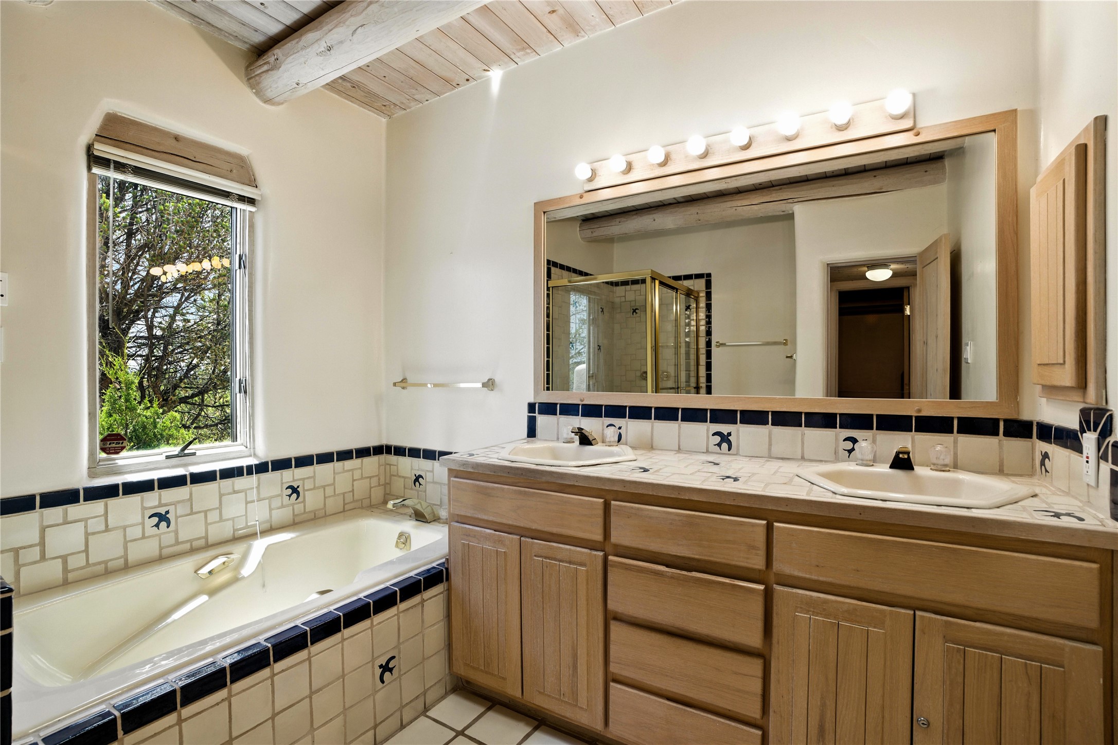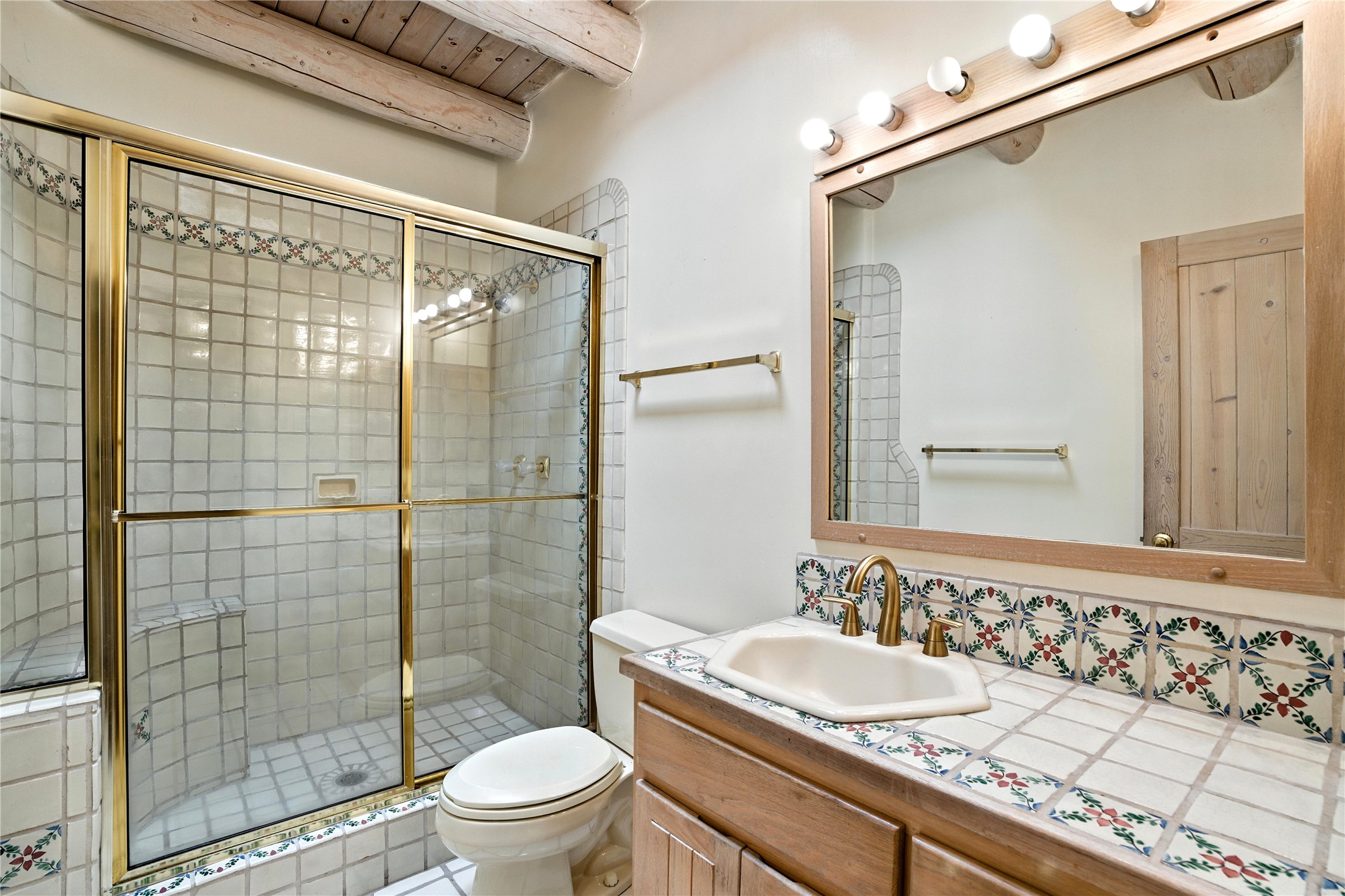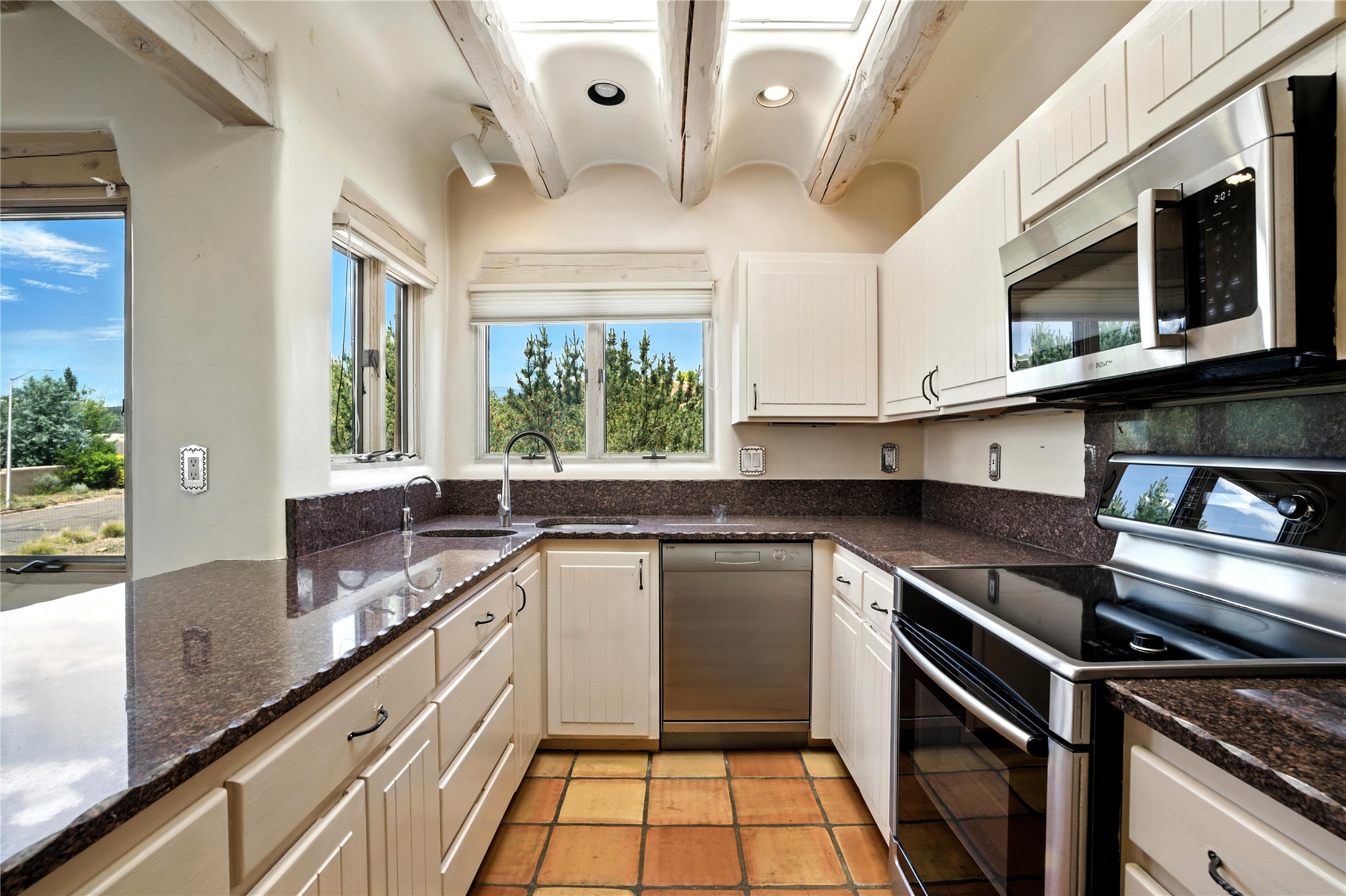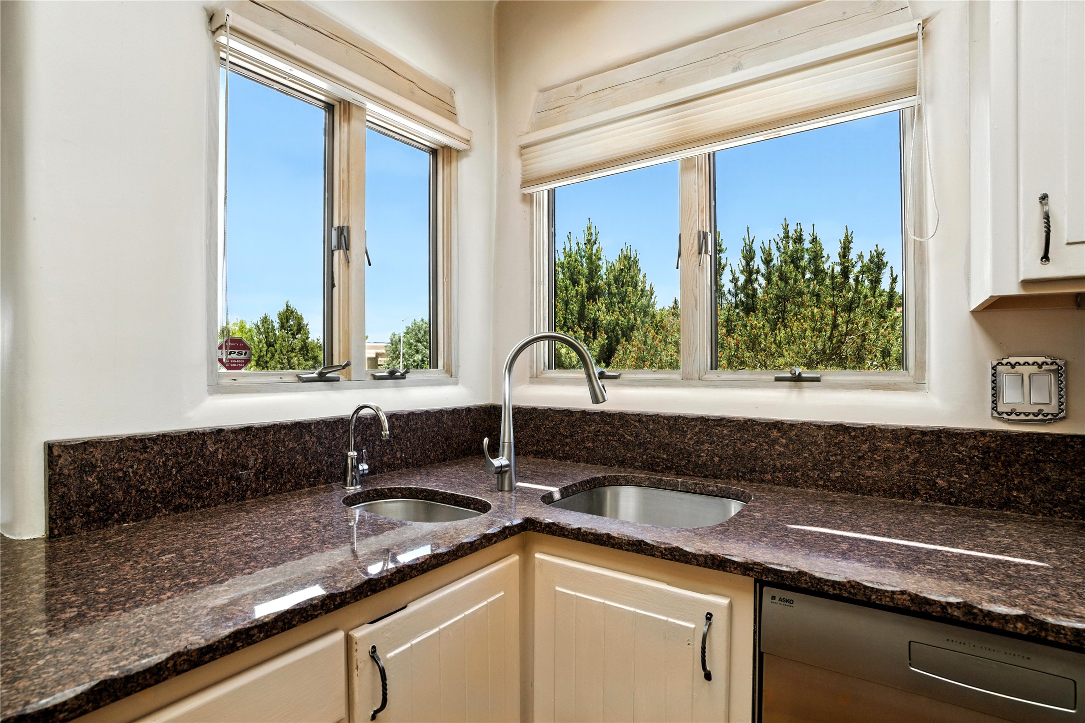 Significant Price Reduction! Lovely home in Estancia Primera with outstanding views! Enjoy dramatic western and sunset views from your balcony located directly off the living room. Open and spacious living room with fireplace, dining, kitchen areas. Upstairs also includes a guest bedroom and bath. Separated by a small staircase, enter the master suite with wood floors, kiva fireplace and a private patio. Ground level offers a 2 car garage and a private den/multi purpose room with a sauna! In the recent past, the owners chose to install a "lift" in lieu of the staircase to approach the upstairs/main living level. The proximity to the Santa Fe Plaza and all downtown in a 5 minute drive, or for the skiers/oudoorsy, Hyde Park Road is right there to take you into the mountains.