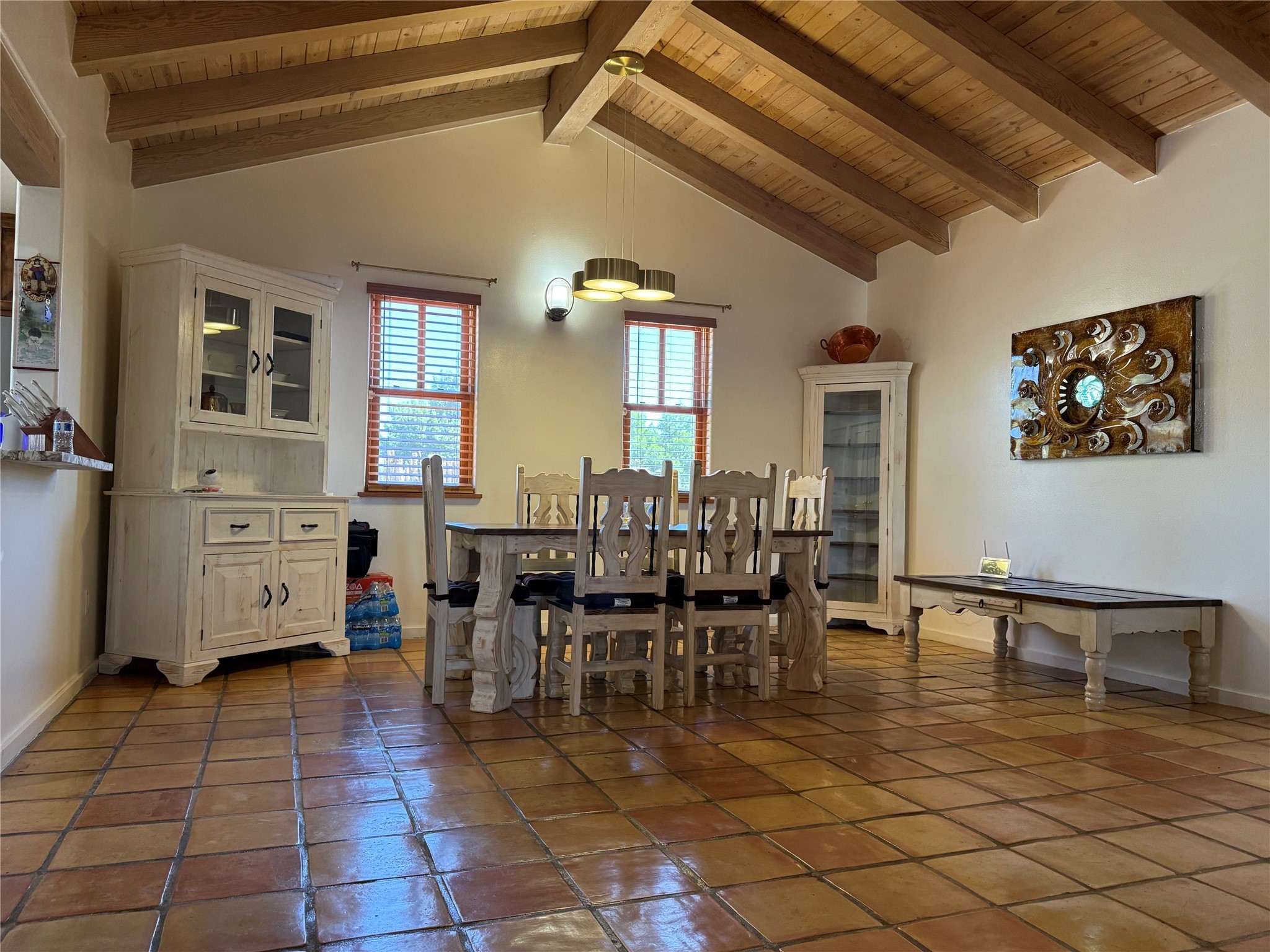 Welcome to this beautifully renovated home with a detached guest house, nestled on a half acre in the peaceful community of Sombrillo. The spacious main home features high vaulted ceilings with exposed beams, a generous open-concept living and dining area, and tasteful tile flooring throughout. The chef's kitchen has been fully updated and offers both style and functionality. The main house includes 2 bedrooms and 2 fully remodeled bathrooms.The detached guest house provides 2 additional bedrooms and 1 bathroom--perfect for guests, rental income, or multi-generational living. Enjoy the fully enclosed walled courtyard and a covered outdoor entertaining area, ideal for gatherings or quiet evenings. Additional features include: Private well and irrigation rights. Recent renovations: new roof, new windows, updated 220 electrical system. Remodeled kitchen and bathrooms in both homes. Tankless water heaters in both main and guest houses. Refrigerated air in the main house and three mini-splits in the guest house. Completely fenced property with latilla fencing on the side and back, rock wall with custom metal gates in front. Landscaped yard with sprinkler system for grassy areas. Designated concrete area for RV/camper parking. This move-in ready property offers a unique blend of modern upgrades and peaceful rural charm--don't miss your opportunity to own a versatile home in a serene setting.
