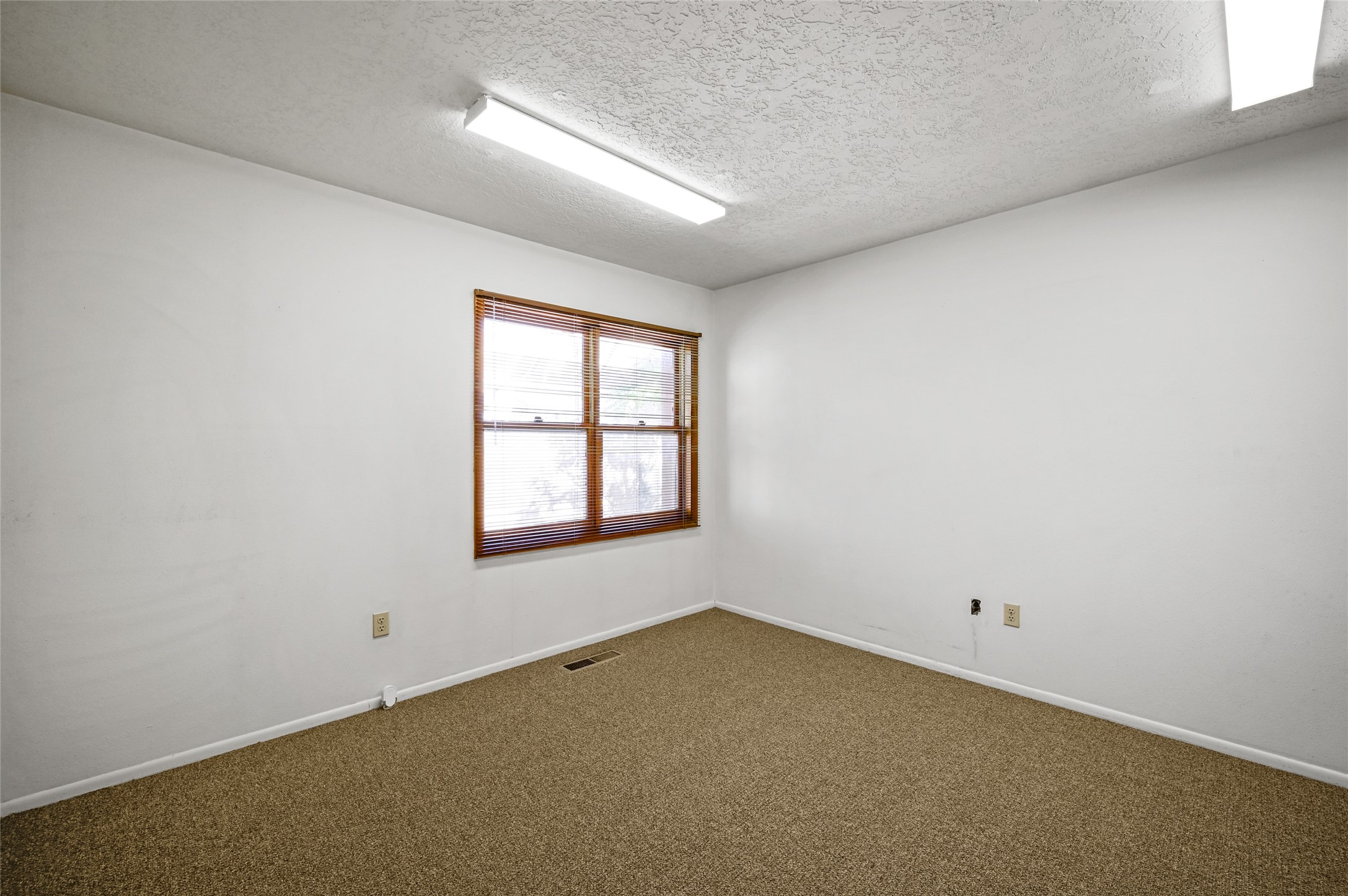 Desirable two-story office condo for sale in the Saint Francis Professional Center (Clock Tower). The space features four windowed offices, one with a charming kiva fireplace and two with built-in bookcases. It also includes a private restroom, a spacious waiting/reception area with ample storage, and newly installed commercial-grade carpet throughout. Conveniently located just off South St. Francis Drive, the property offers easy access to I-25, restaurants, and shopping. Condo dues are approximately $573 quarterly. A great opportunity for a small business or satellite office.