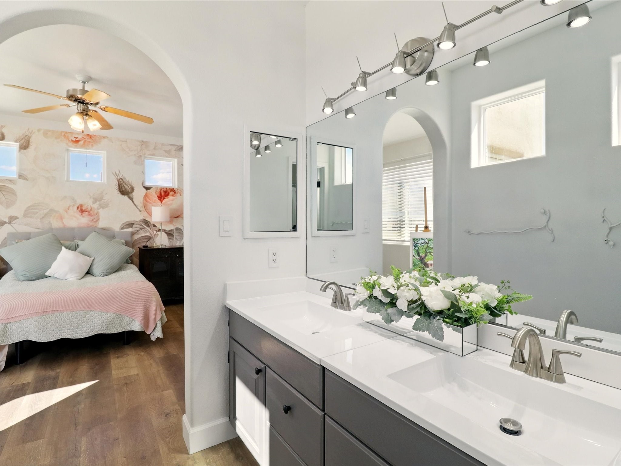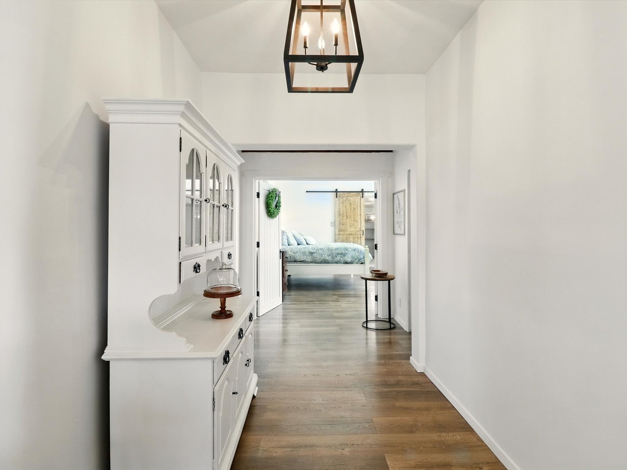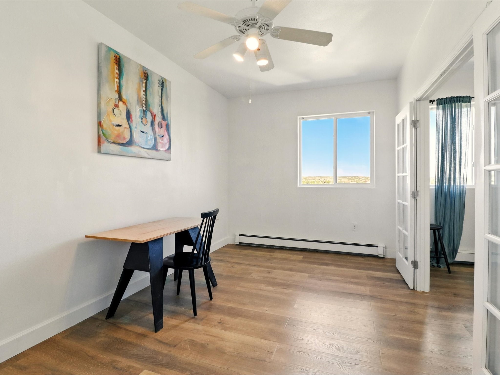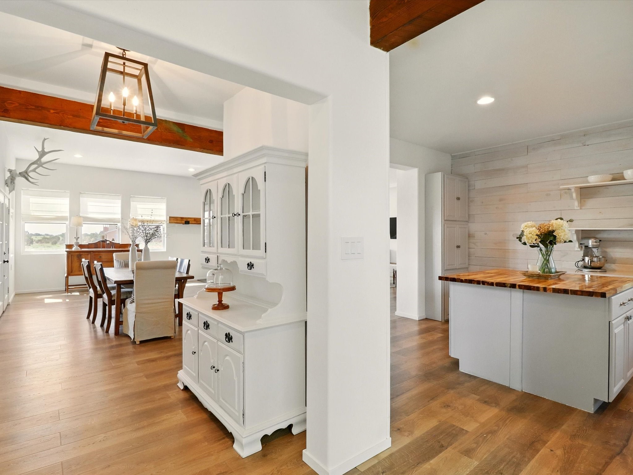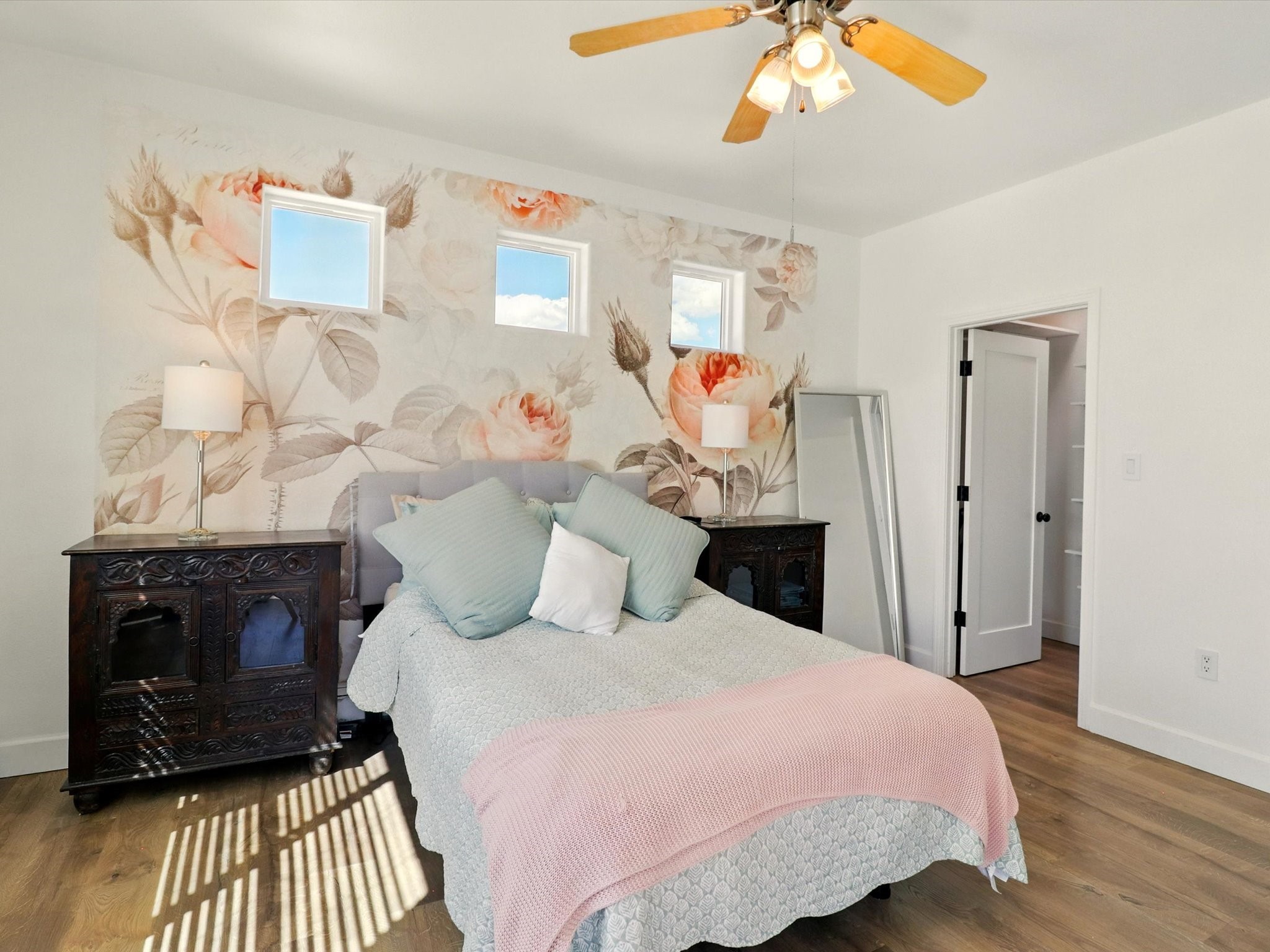 Experience breathtaking views surrounding this exceptional property located on just over 4 acres of pristine high desert landscape. This stunning home blends the timeless charm of Pueblo-style architecture with the inviting touches of modern farmhouse design including an expansive 1,000 square foot addition completed in 2020. The versatile floor plan is anchored by a beautifully updated gourmet kitchen featuring a Sub-Zero refrigerator and custom finishes with ample workspace, and a seamless flow for entertaining. On the main floor you will find that the primary bedroom showcases soaring ceilings with a picturesque view and private access to the outdoor courtyard. Complete with an oversized closet area and beautifully renovated bathroom that is perfect for soaking in the bathtub while taking in the view from the large picture window right above. The second floor consists of two bedrooms, a bonus room and two bathrooms. The balcony off the ensuite bedroom is ideal for soaking in the mountains and serene sunsets. Step outside to enjoy the covered portal and cozy up by the outdoor wood-burning fireplace. Fruit trees dot the landscape, adding character and a touch of sweetness to your retreat. Backed by peaceful green space and only minutes from the Galisteo Basin preserve, Santa Fe Rail Trail, this property offers the perfect blend of tranquility, access to nature and refined living. Do not miss this rare opportunity to own a home that truly captures the spirit and beauty of New Mexico.Pre-listing inspection report is available.