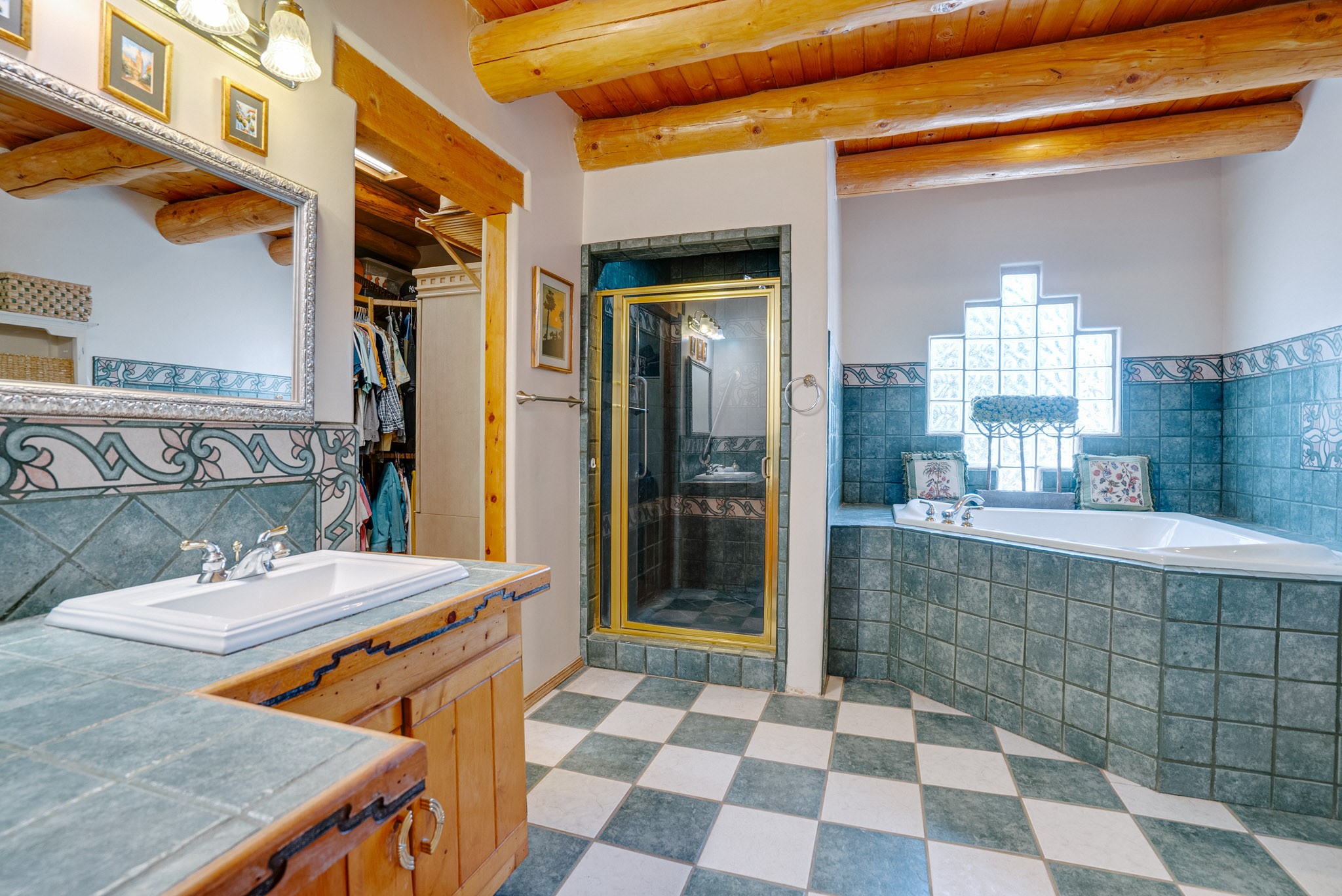 Discover this spacious 4-bedroom, 3-bathroom home offering 3,400 square feet of comfort, style, and Southwestern charm -- all nestled in the desirable Vegas De Taos subdivision. Enjoy the convenience of an in-town location with the tranquility of a secluded .68-acre lot, complete with paved roads, sidewalks, and mature landscaping. This special neighborhood offers so much, including a strong sense of community. The beautifully landscaped property features multiple water features, lush grass, raised garden beds, and a stunning assortment of trees -- including mature conifers, deciduous, and fruit trees. Relax under big blue skies with breathtaking mountain views, and enjoy the easy-care xeriscaping in the front and lush backyard oasis in the rear. Thoughtfully designed rock walls and wooden fences create a variety of distinct, inviting outdoor spaces.The home's grand great room welcomes you with 14' vaulted ceilings, custom woodwork, and radiant floor heating, complemented by efficient split units for year-round comfort. French doors off the dining area open to a spacious covered veranda -- perfect for entertaining or quiet evenings. The kitchen is a dream with stainless steel appliances, a double oven, a smooth-surface cooktop on the island, a 3-basin sink, and an expansive island that seats up to eight. Host family gatherings in the formal dining room or enjoy casual meals around the island.The west wing offers two bright guest bedrooms, a large full bathroom, and a luxurious master suite featuring hickory Pergo flooring, a sitting area or office nook, a whirlpool tub, separate shower, and extra-large walk-in closet. The east wing includes another spacious bedroom, guest bathroom, large pantry, hall closet, and a laundry room leading to the covered breezeway and detached two-car garage.Minutes from downtown Taos, the hospital, and grocery stores, this home offers the perfect blend of convenience, space, and a true homestead feel -- a rare find in Taos!