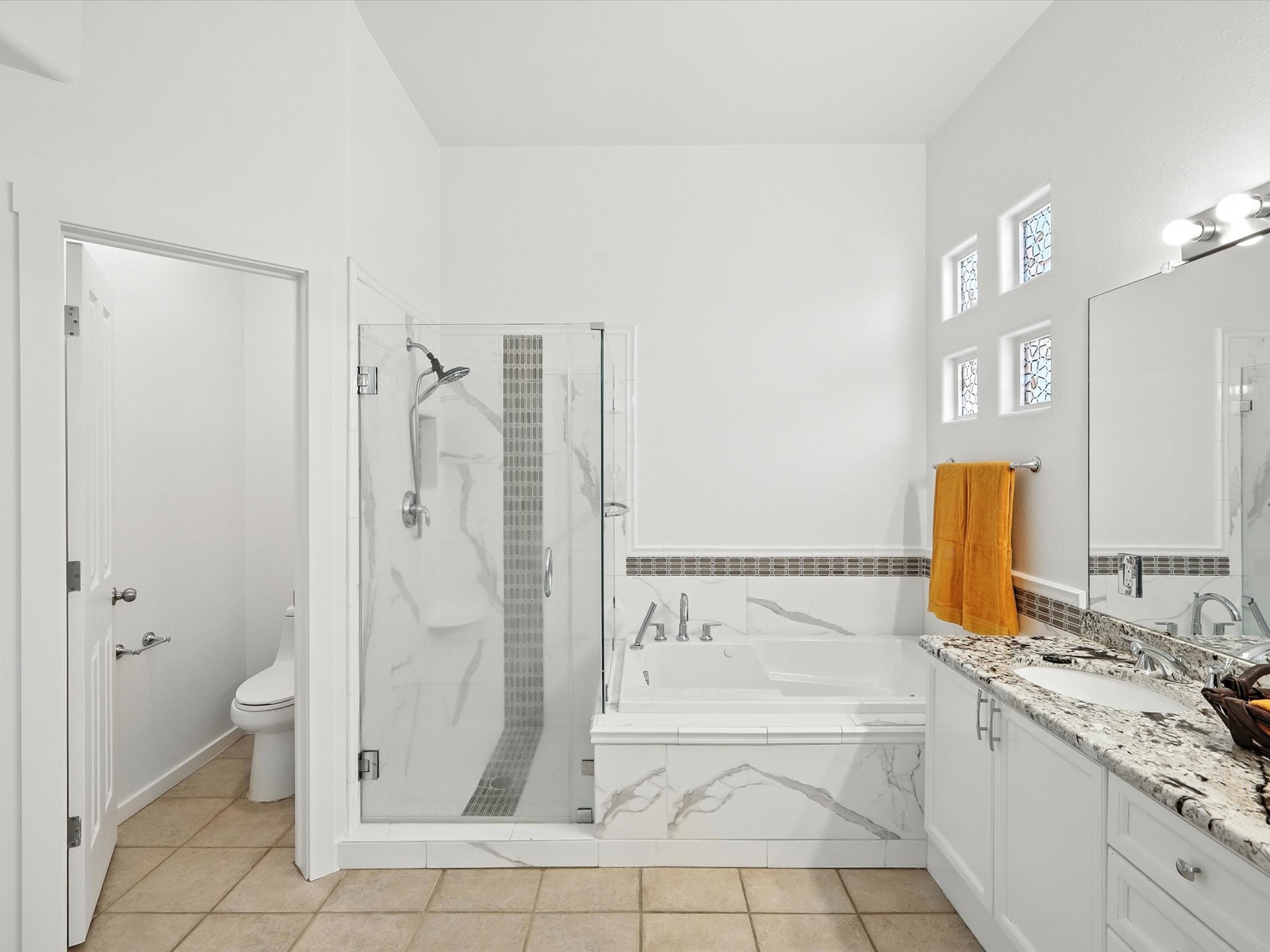 Newly staged and great new price, take another look! Exceptional property in Rancho Viejo, near trail access! Meticulously cared-for home greets you with Santa Fe charm, showcased by the stunning exposed Vigas & expansive ceilings in the living room. The seamless flow from the living room to the formal dining area boasts picturesque windows that overlook a beautifully landscaped backyard, inviting an abundance of natural light. Retreat to the primary suite, conveniently located off the living room, where you'll find direct access to a covered patio & the serene backyard. The luxurious primary bathroom features a separate jetted tub, a stylish shower, granite countertops with dual sinks, & a spacious walk-in closet. Discover a gorgeous kitchen that is both spacious & functional - highlighted by granite countertops, undermount lighting, stainless steel appliances, & a large island. This culinary haven opens to a generous family room, exposed Vigas & a cozy corner gas fireplace, creating the perfect setting for gatherings. Sliding doors from the family room lead to the expansive covered patio, ideal for entertaining. The other wing has a guest bathroom with granite countertops and a custom tub/shower, along with two well-appointed guest bedrooms that provide excellent separation from the primary suite. There is also a versatile bonus room suitable for an office, gym, theater, or other uses. The laundry room boasts upper cabinets & a utility sink, with direct access to both the garage & a secondary walled-in yard. The outdoor space of this property is truly a highlight, featuring a custom covered patio spanning over 600 sq. ft., perfect for entertaining, seamlessly flowing into a beautifully landscaped yard complete with artificial turf, lush shrubs, & an aspen tree. NEW ROOF IN 2024! Located within the Rancho Viejo community, enjoy access to parks, miles of scenic walking trails, and breathtaking views. Come experience the beauty of this Santa Fe gem today!