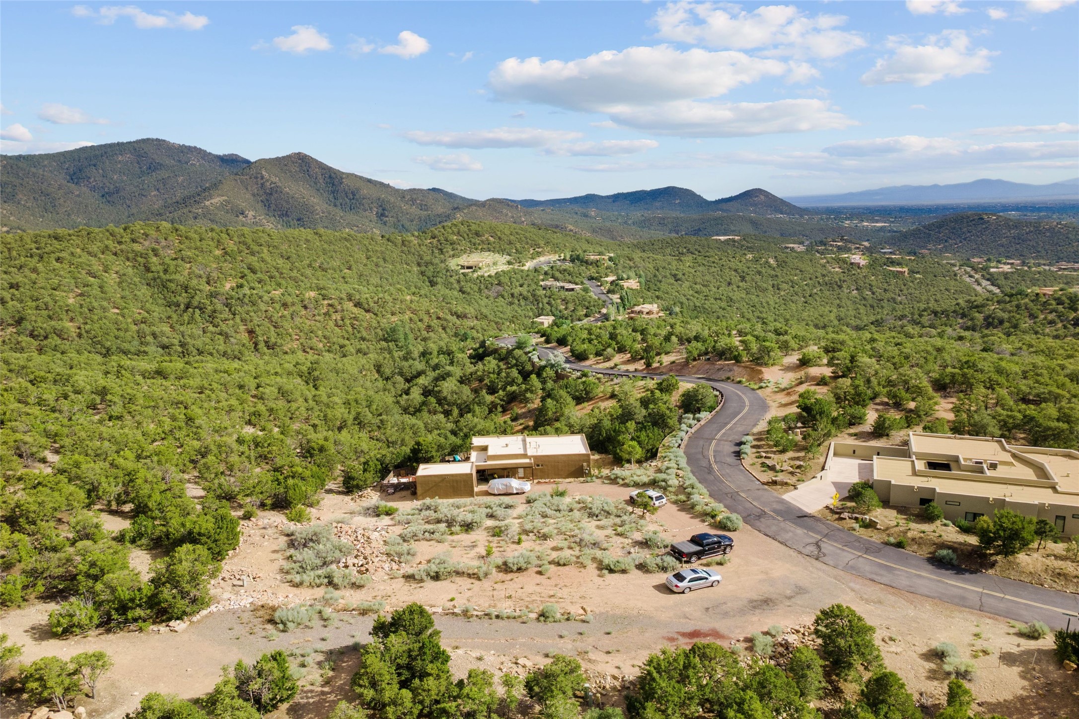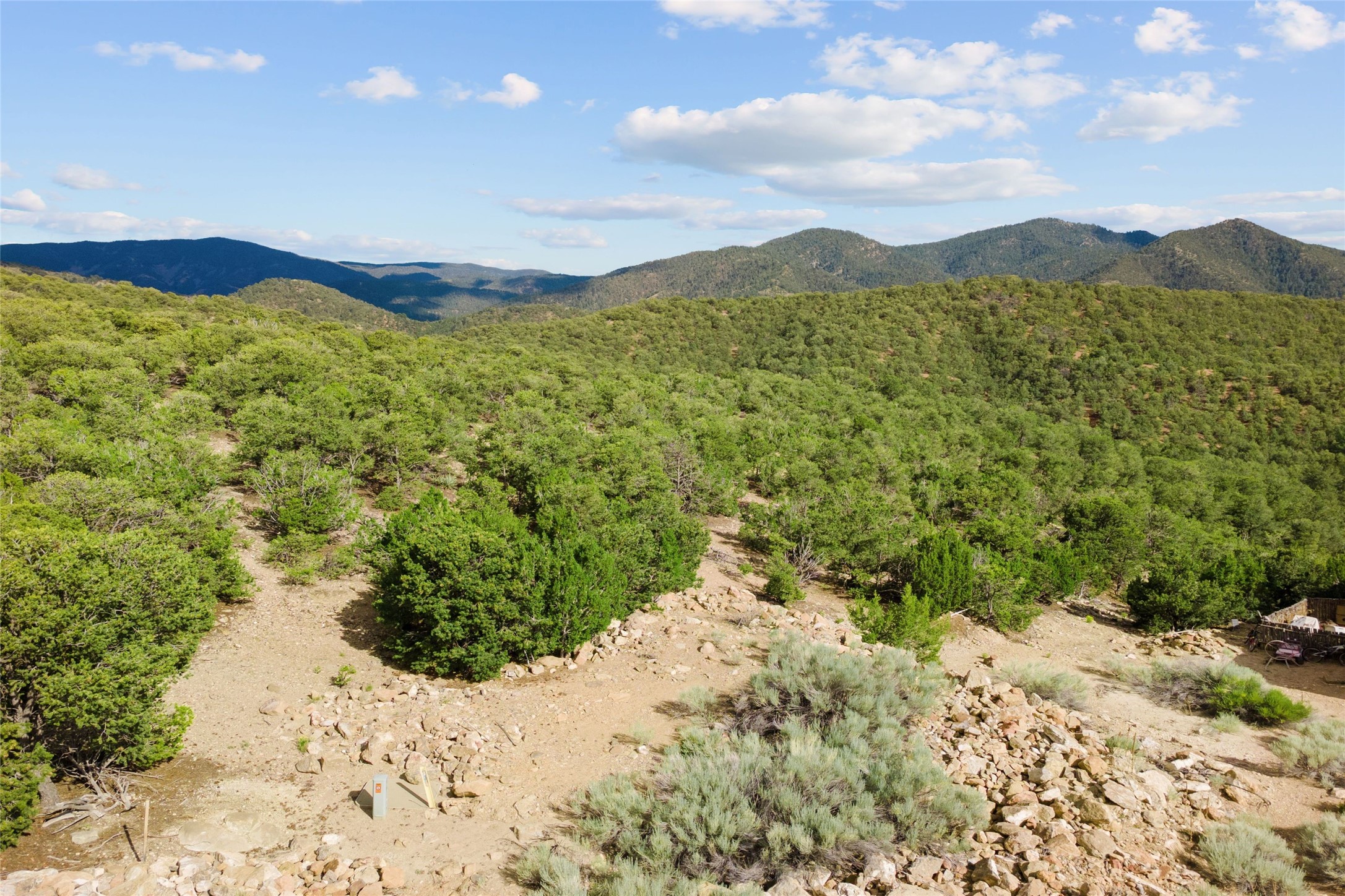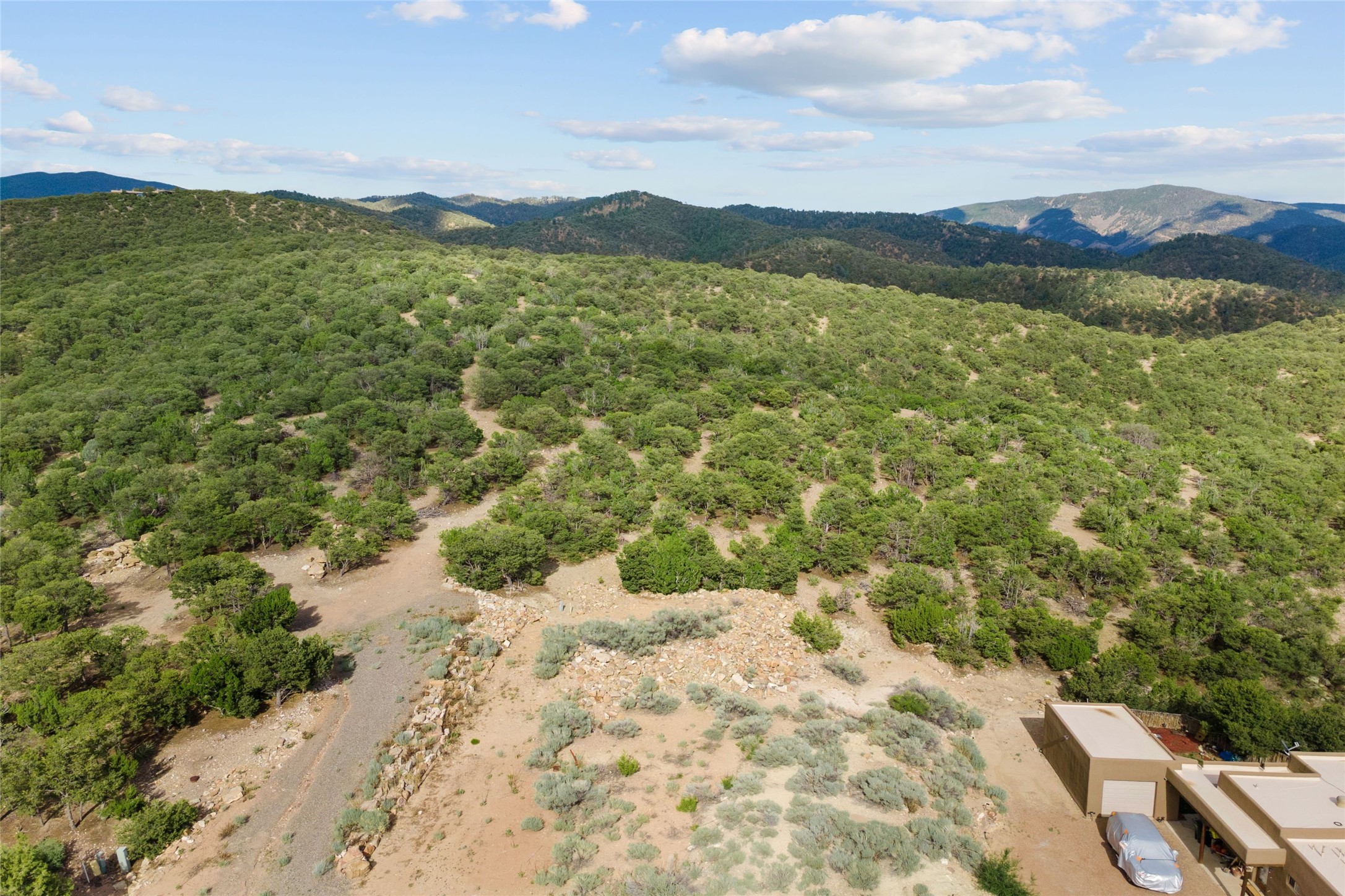 The second smallest lot in High Summit, being offered together with the smallest lot in High Summit. Relatively flat and buildable with good access. Elevation of 7400 feet allows for an Ortiz/Sandia view corridor AND a Jemez view corridor. Lots 8 and 9 must be purchased together and they each have an 1100sf minimum build size. Owner is in process of combining these two lots at the County. HOA has verbally approved the conjoining and anticipates an 1800-2000sf build. No new building envelope. Setbacks apply.