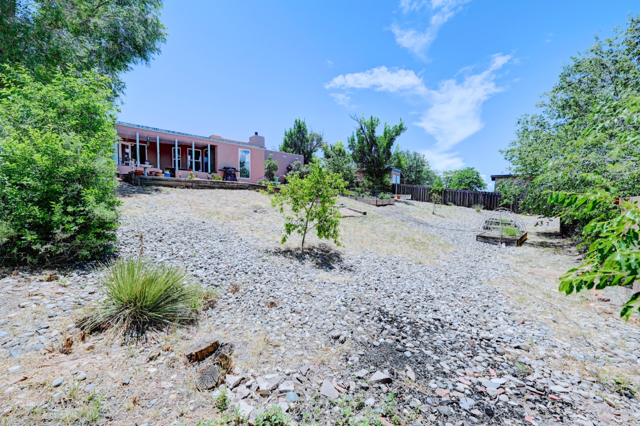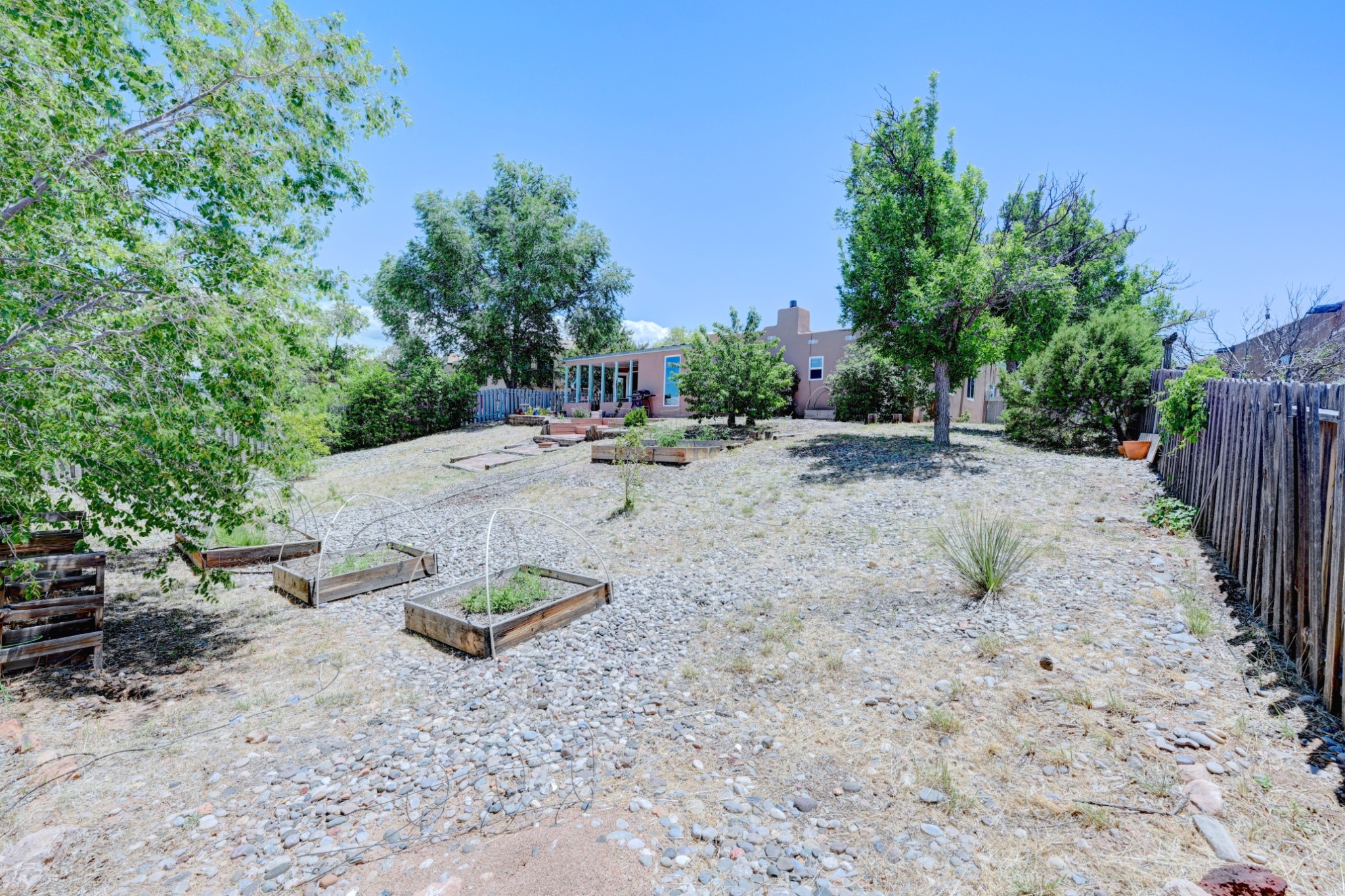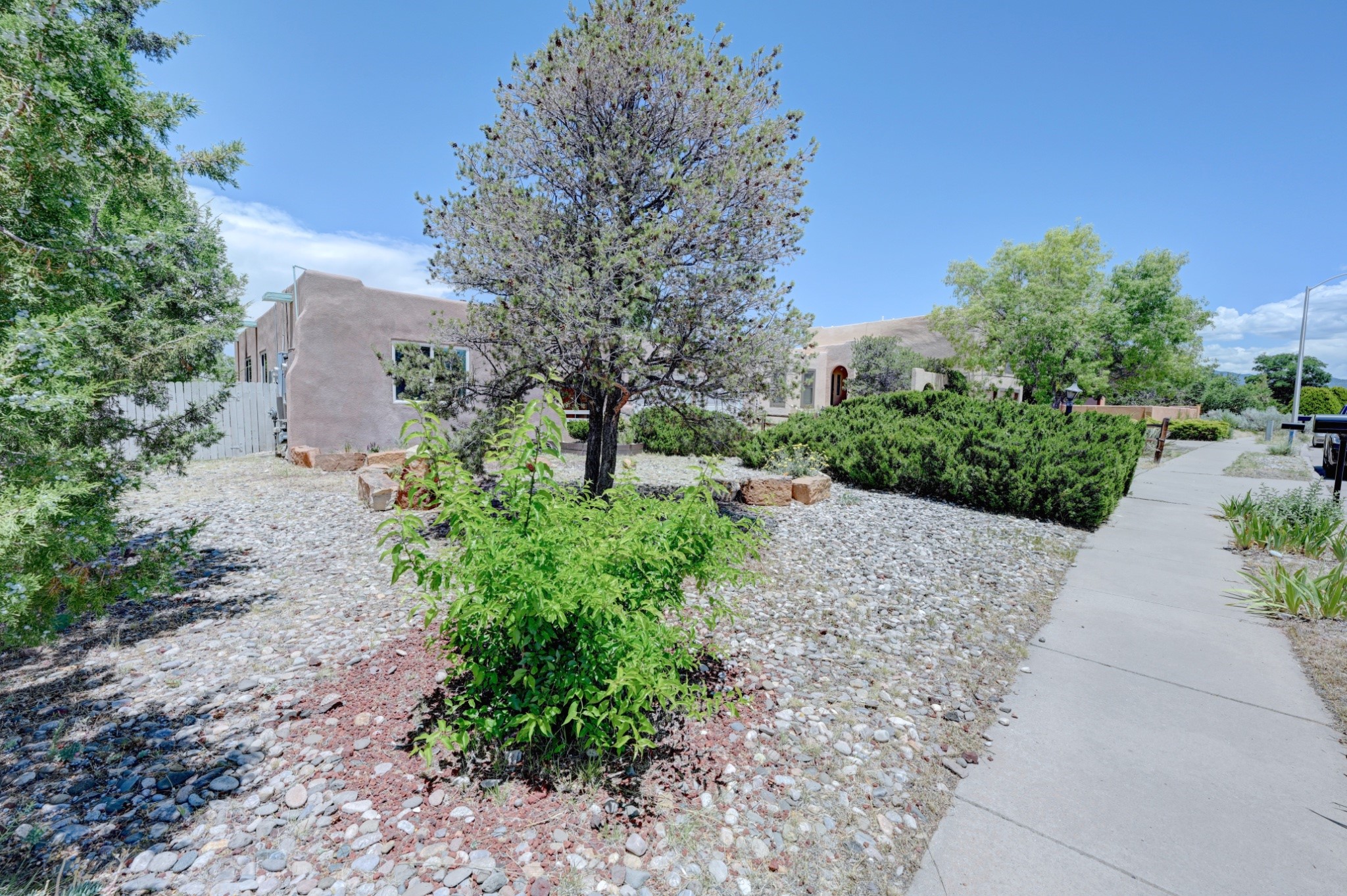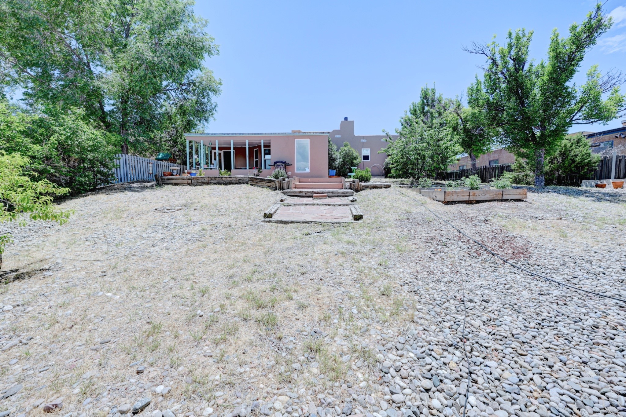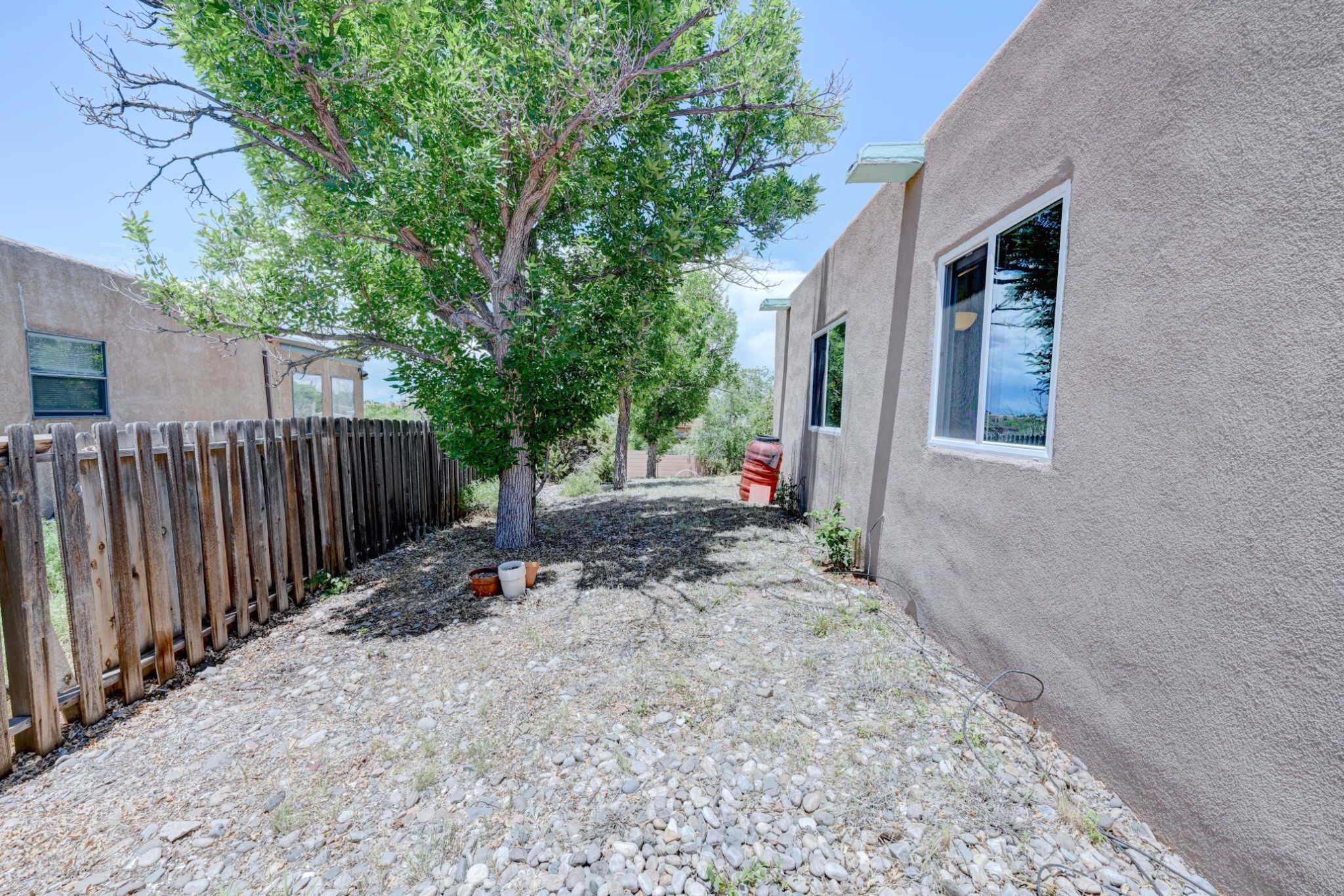 Nestled in a quiet and friendly Santa Fe neighborhood, this updated 3-bedroom, 2-bathroom home blends charm with modern convenience. With 1,154 square feet of interior space, the layout offers an easy flow between living, dining, and kitchen areas--ideal for everyday living and entertaining. A kiva fireplace adds cozy Southwestern character, perfect for curling up during those cool desert nights.Step outside and enjoy a private, spacious lot adorned with peach, pear, and cherry trees, plus perennial plants that return each year. A drip irrigation system helps keep them--and your weekends--low-maintenance. The two-car garage features newly installed doors as of 2024, pairing functionality with curb appeal.The kitchen was completely remodeled in 2020 and boasts a new refrigerator and Bosch dishwasher, while both bathrooms received full renovations in 2023. You'll also enjoy the benefits of smart climate control with a programmable thermostat, an evaporative cooler, and efficient windows installed in 2017 that help keep things comfortable year-round. Floating shelves and built-in bookshelves offer both storage and style touches throughout the home.Located just minutes from conveniences like Albertson's Supermarket and Santa Fe High School, the home's location also puts you a short trip from Dr. Martin Luther King Jr. Park--ideal for weekend strolls or playful afternoons. Commuting? Zia Road Station is nearby, making travel a breeze, whether you're heading into town or venturing further out.Thoughtfully maintained and tastefully updated, this home offers a great balance between comfort, location, and character. Whether you're planting roots or seeking a cozy retreat with fruit trees and plenty of sunshine, this property could be your perfect fit. Don't forget to check out the 3D Walkthrough and Drone Video.