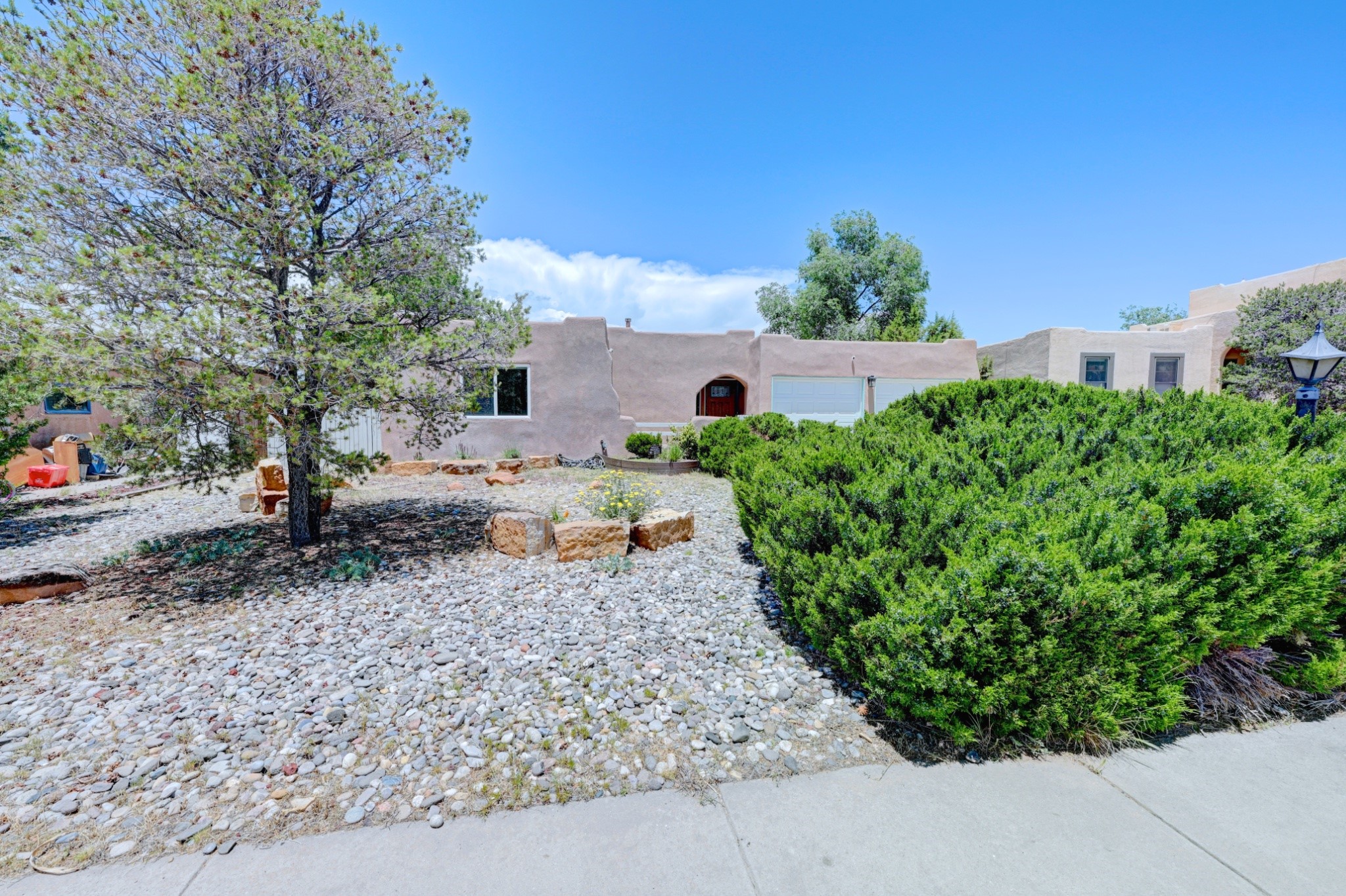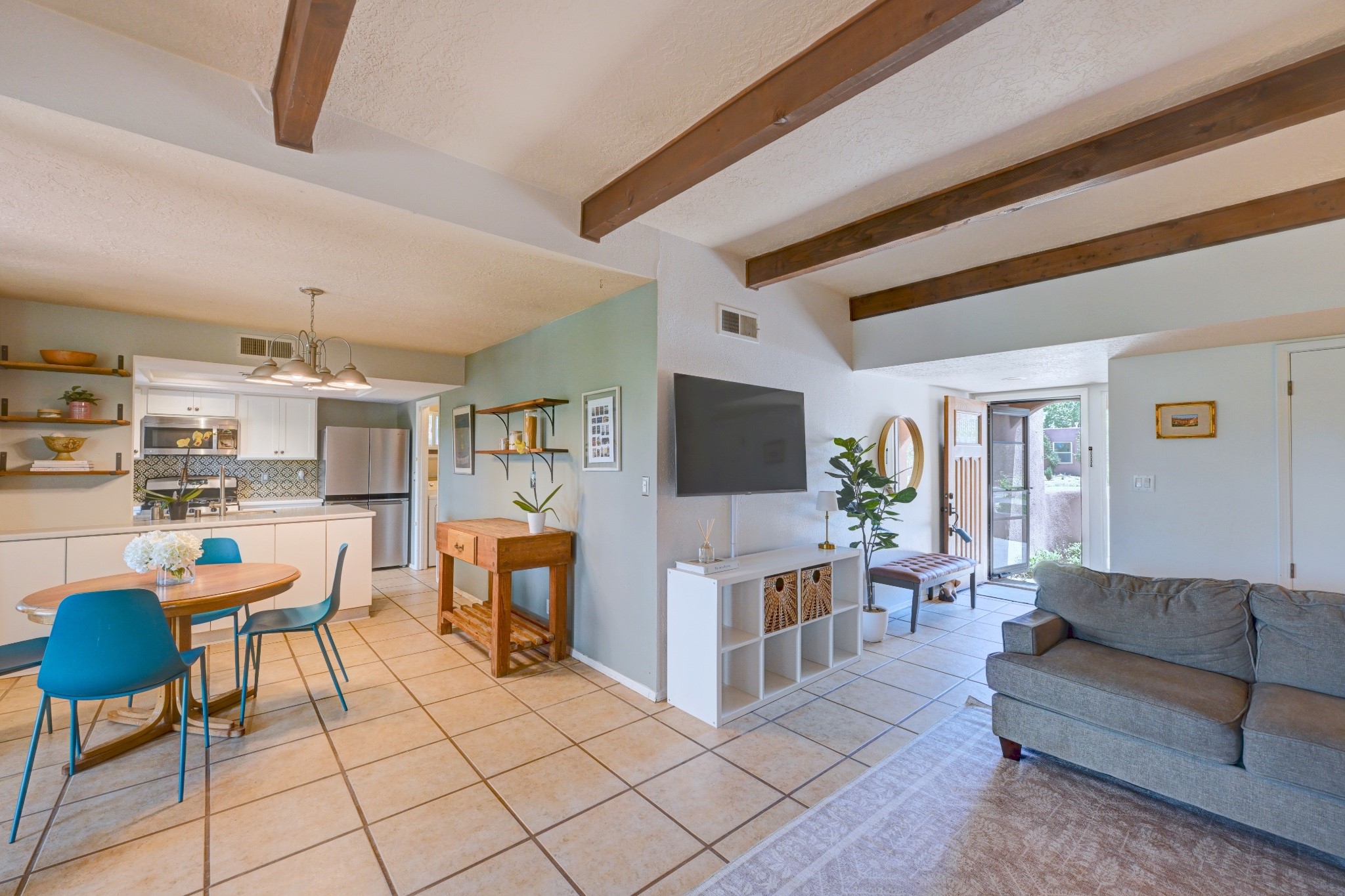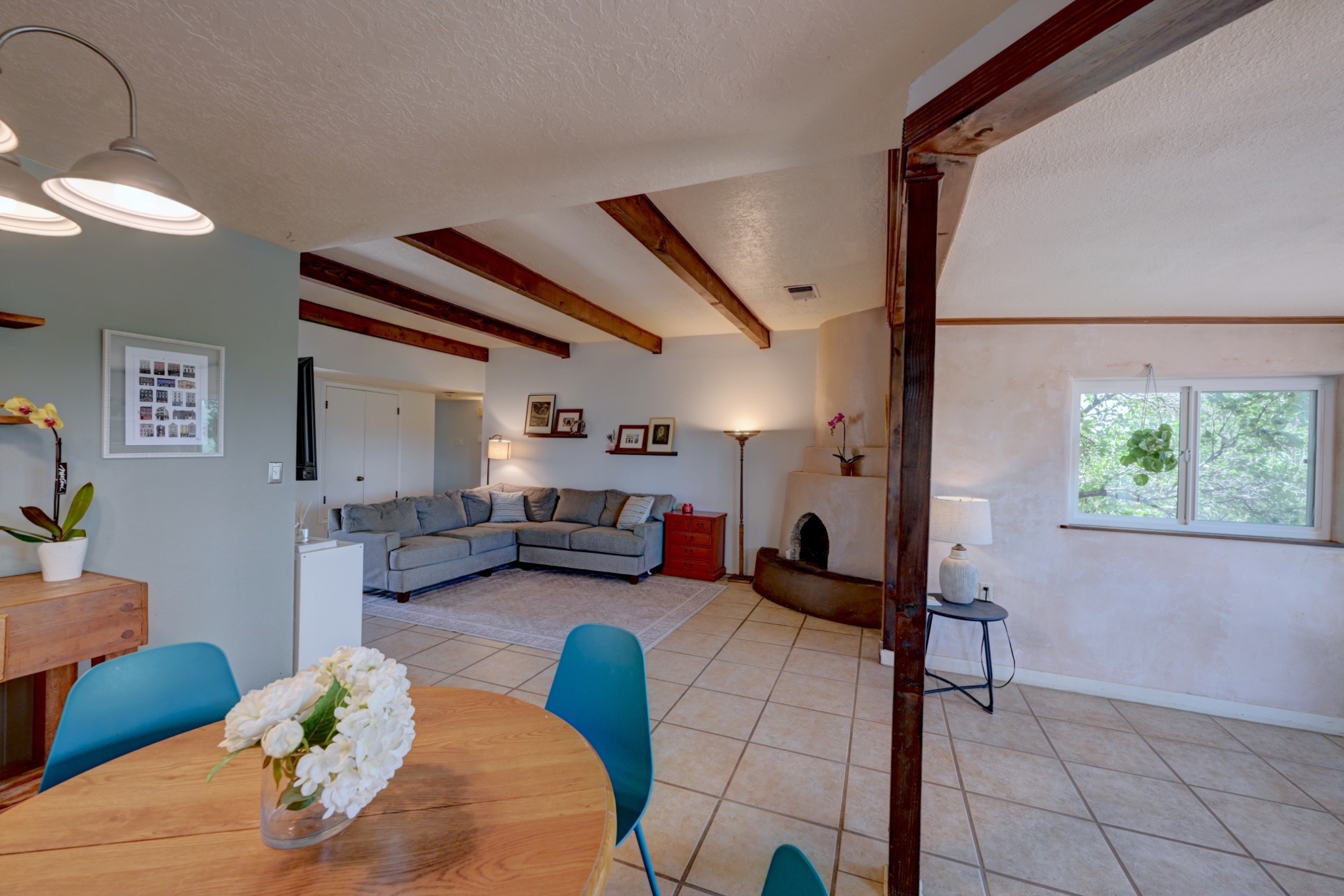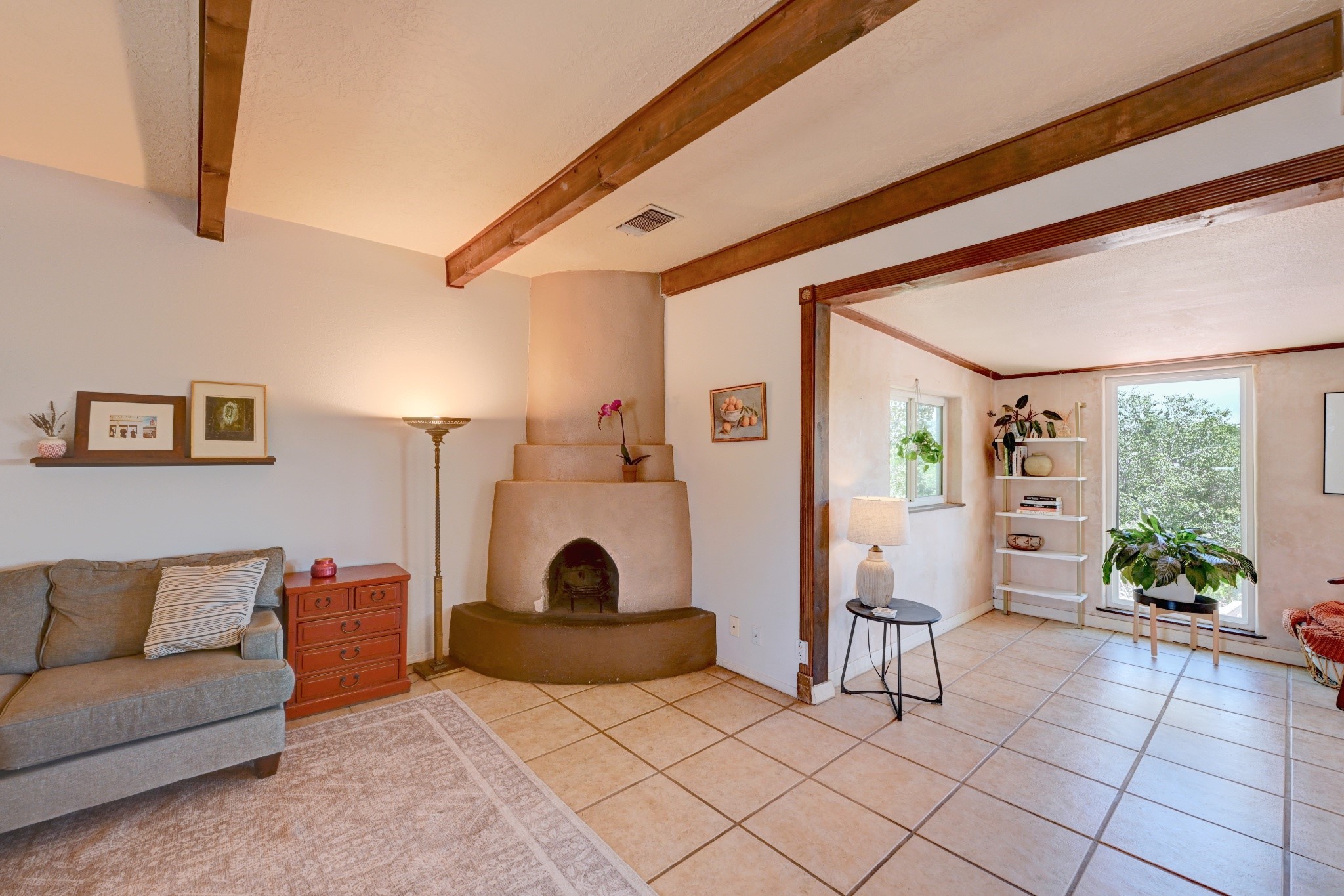 Nestled in a quiet and friendly Santa Fe neighborhood, this updated 3-bedroom, 2-bathroom home blends charm with modern convenience. With 1,154 square feet of interior space, the layout offers an easy flow between living, dining, and kitchen areas--ideal for everyday living and entertaining. A kiva fireplace adds cozy Southwestern character, perfect for curling up during those cool desert nights.Step outside and enjoy a private, spacious lot adorned with peach, pear, and cherry trees, plus perennial plants that return each year. A drip irrigation system helps keep them--and your weekends--low-maintenance. The two-car garage features newly installed doors as of 2024, pairing functionality with curb appeal.The kitchen was completely remodeled in 2020 and boasts a new refrigerator and Bosch dishwasher, while both bathrooms received full renovations in 2023. You'll also enjoy the benefits of smart climate control with a programmable thermostat, an evaporative cooler, and efficient windows installed in 2017 that help keep things comfortable year-round. Floating shelves and built-in bookshelves offer both storage and style touches throughout the home.Located just minutes from conveniences like Albertson's Supermarket and Santa Fe High School, the home's location also puts you a short trip from Dr. Martin Luther King Jr. Park--ideal for weekend strolls or playful afternoons. Commuting? Zia Road Station is nearby, making travel a breeze, whether you're heading into town or venturing further out.Thoughtfully maintained and tastefully updated, this home offers a great balance between comfort, location, and character. Whether you're planting roots or seeking a cozy retreat with fruit trees and plenty of sunshine, this property could be your perfect fit. Don't forget to check out the 3D Walkthrough and Drone Video.