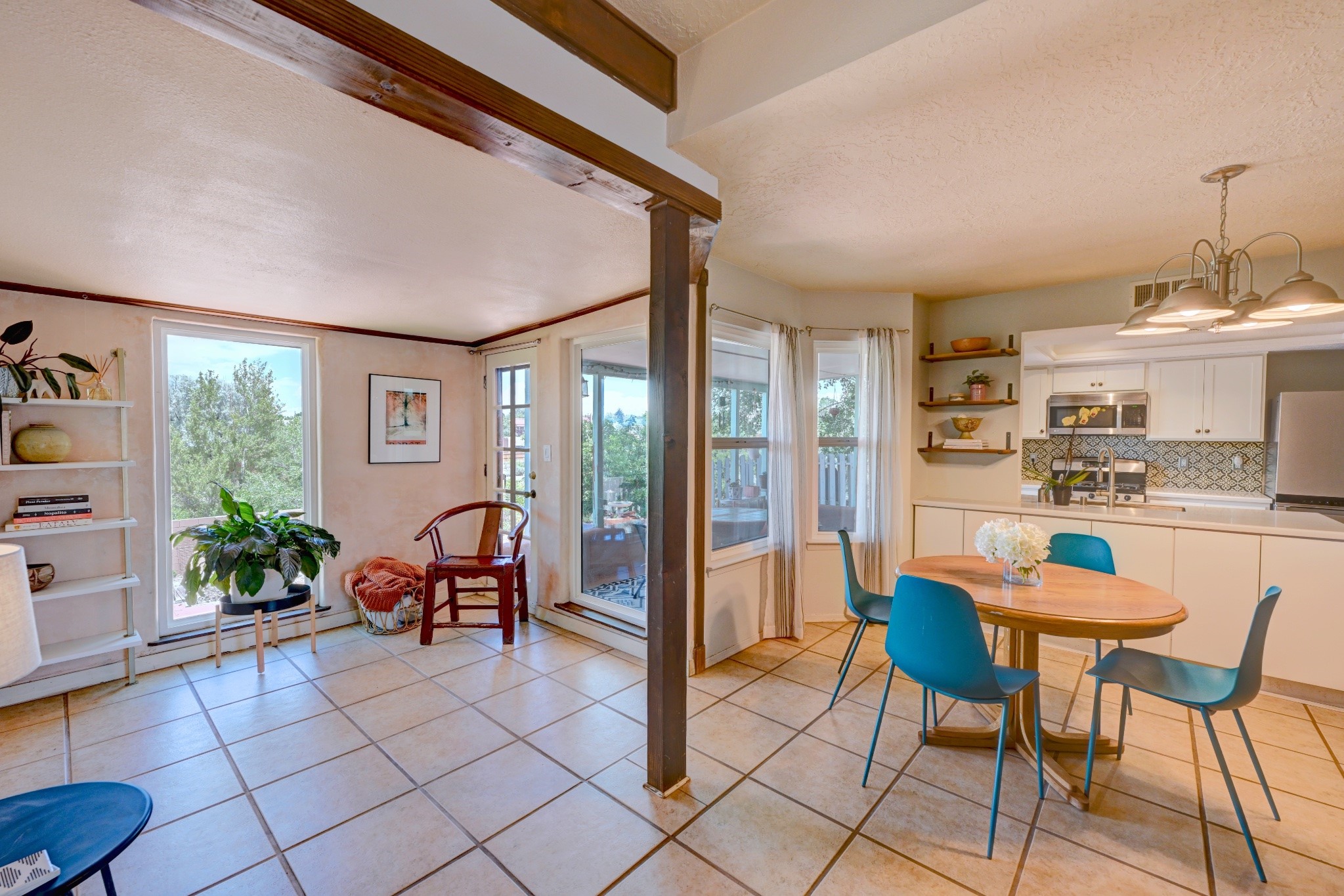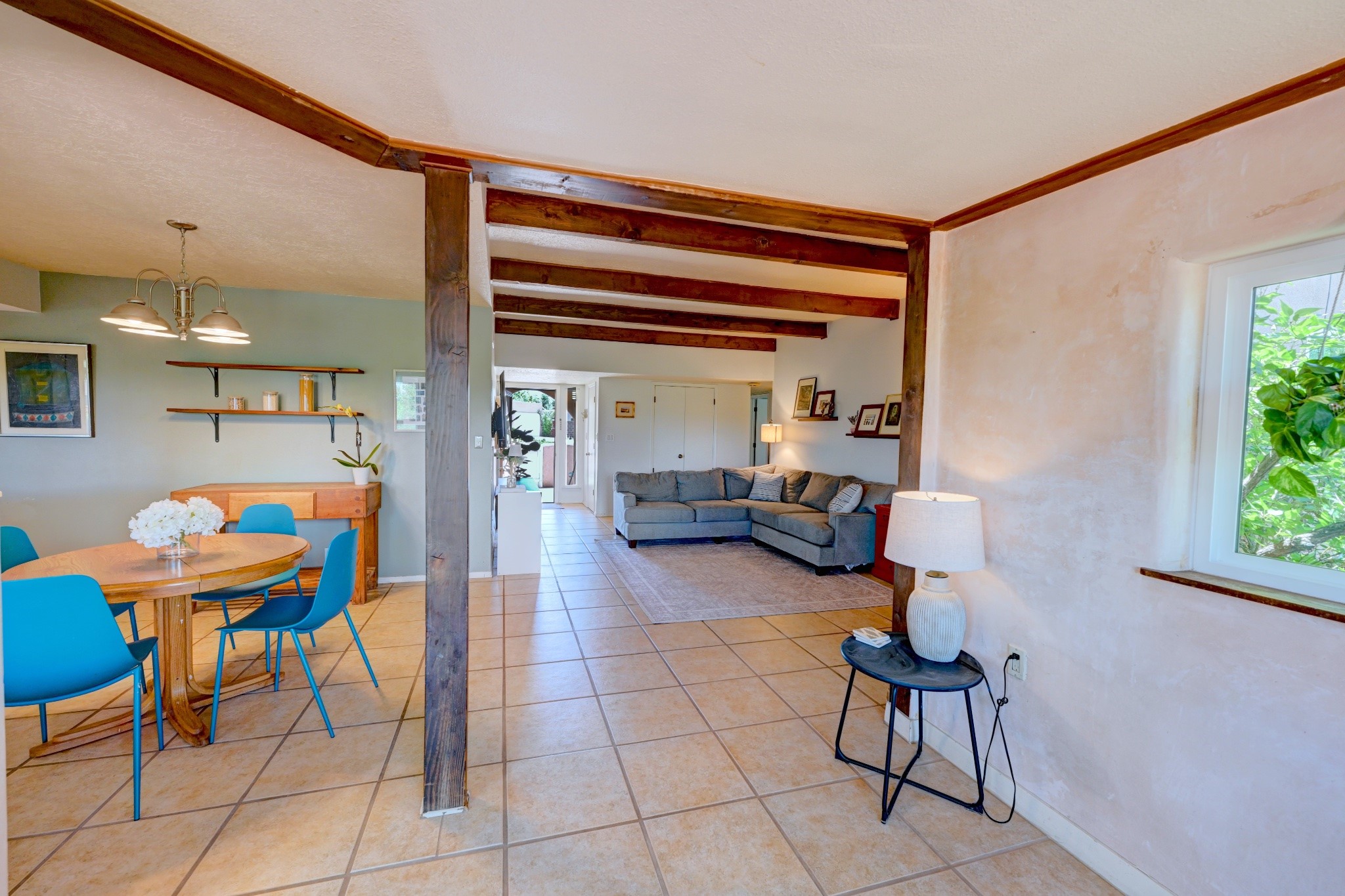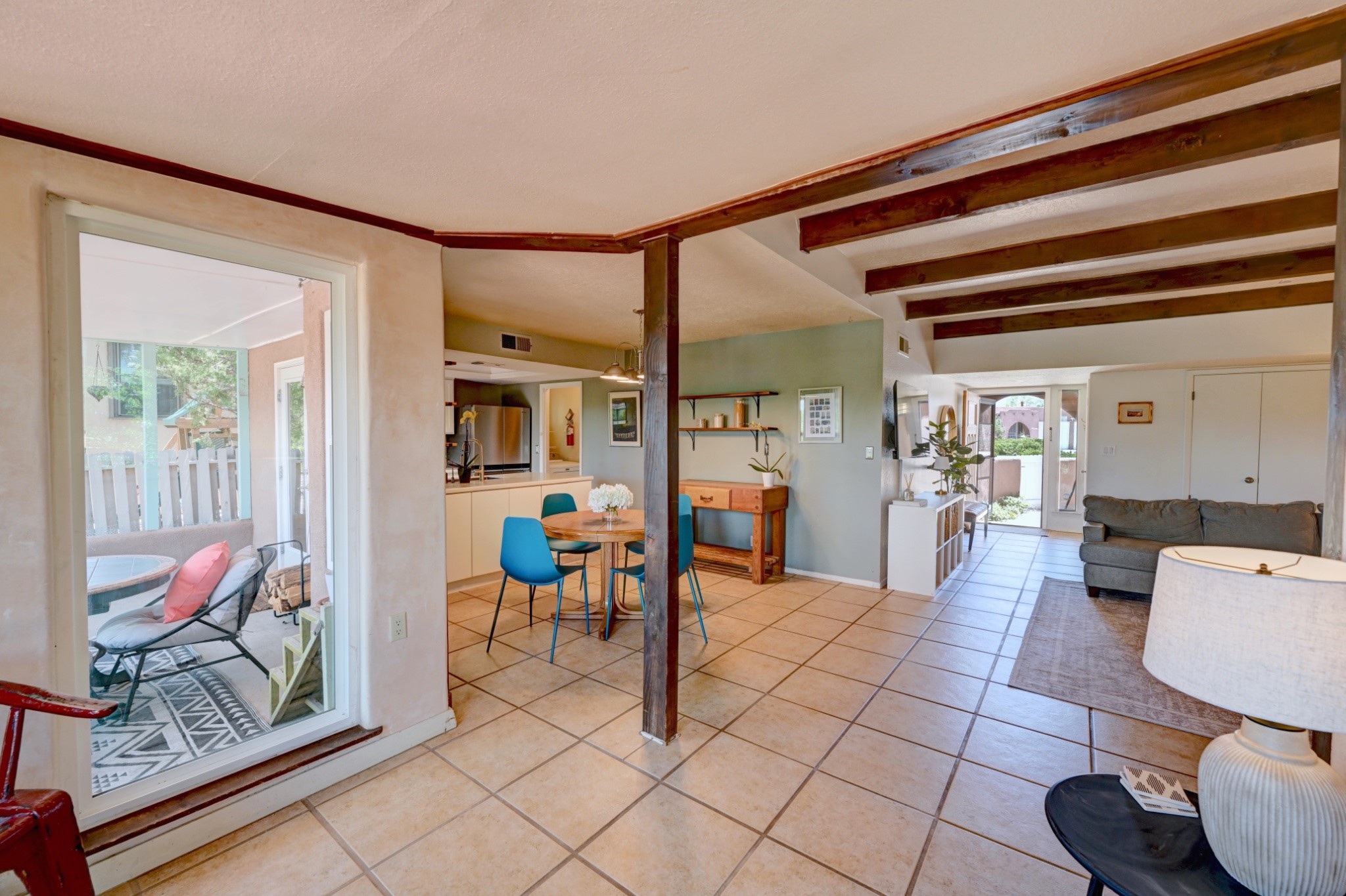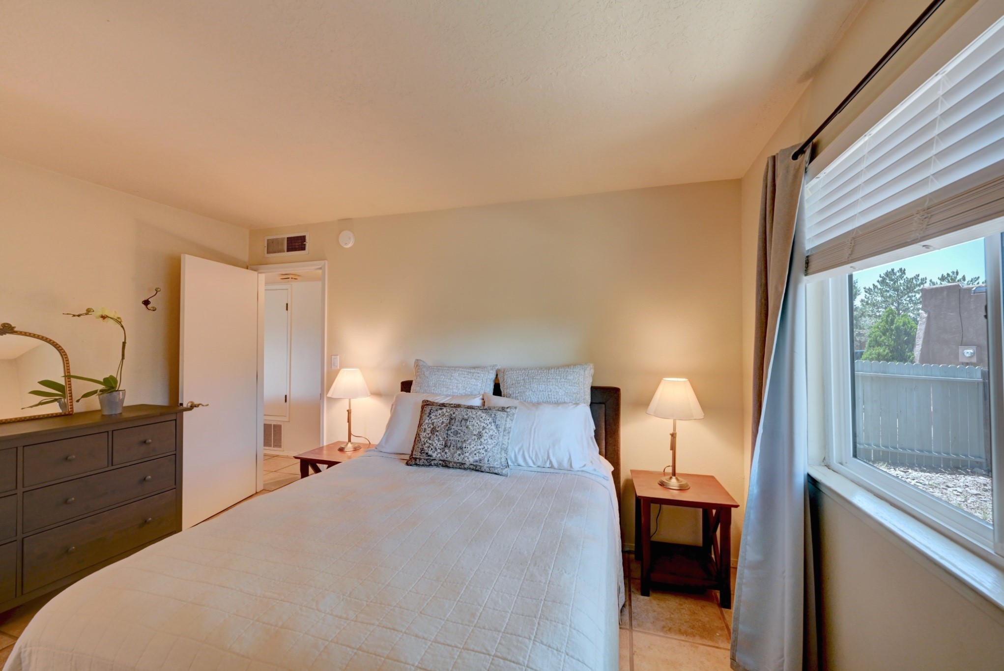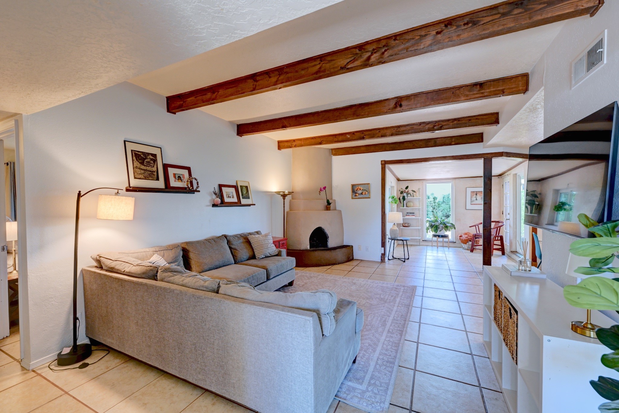 Nestled in a quiet and friendly Santa Fe neighborhood, this updated 3-bedroom, 2-bathroom home blends charm with modern convenience. With 1,154 square feet of interior space, the layout offers an easy flow between living, dining, and kitchen areas--ideal for everyday living and entertaining. A kiva fireplace adds cozy Southwestern character, perfect for curling up during those cool desert nights.Step outside and enjoy a private, spacious lot adorned with peach, pear, and cherry trees, plus perennial plants that return each year. A drip irrigation system helps keep them--and your weekends--low-maintenance. The two-car garage features newly installed doors as of 2024, pairing functionality with curb appeal.The kitchen was completely remodeled in 2020 and boasts a new refrigerator and Bosch dishwasher, while both bathrooms received full renovations in 2023. You'll also enjoy the benefits of smart climate control with a programmable thermostat, an evaporative cooler, and efficient windows installed in 2017 that help keep things comfortable year-round. Floating shelves and built-in bookshelves offer both storage and style touches throughout the home.Located just minutes from conveniences like Albertson's Supermarket and Santa Fe High School, the home's location also puts you a short trip from Dr. Martin Luther King Jr. Park--ideal for weekend strolls or playful afternoons. Commuting? Zia Road Station is nearby, making travel a breeze, whether you're heading into town or venturing further out.Thoughtfully maintained and tastefully updated, this home offers a great balance between comfort, location, and character. Whether you're planting roots or seeking a cozy retreat with fruit trees and plenty of sunshine, this property could be your perfect fit. Don't forget to check out the 3D Walkthrough and Drone Video.